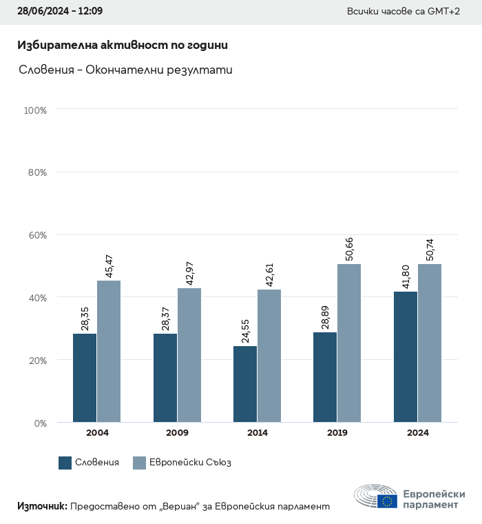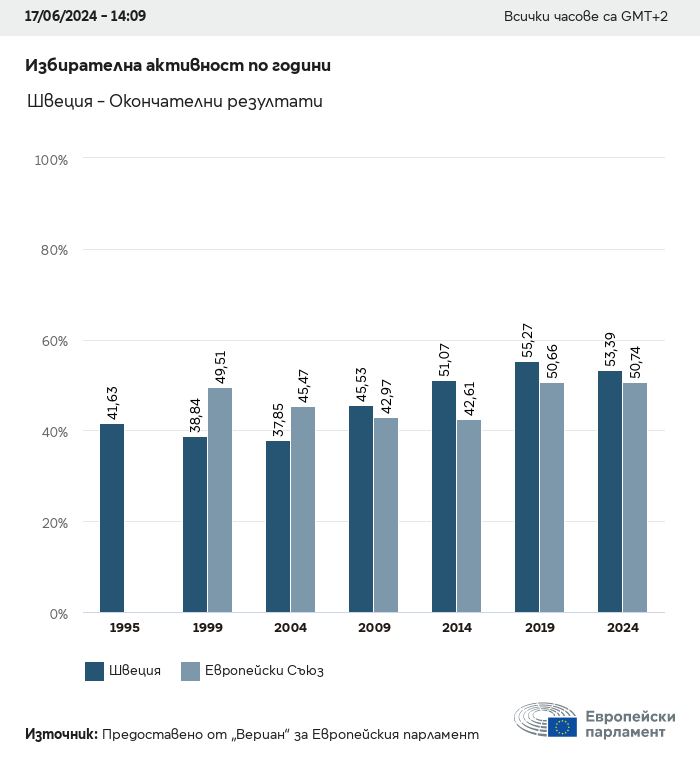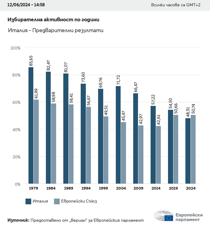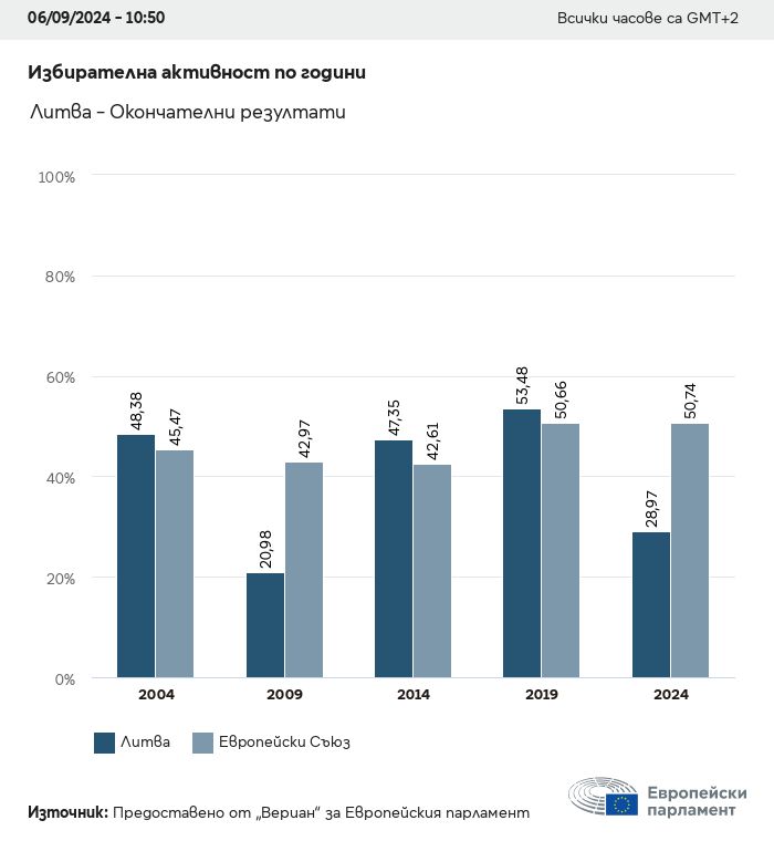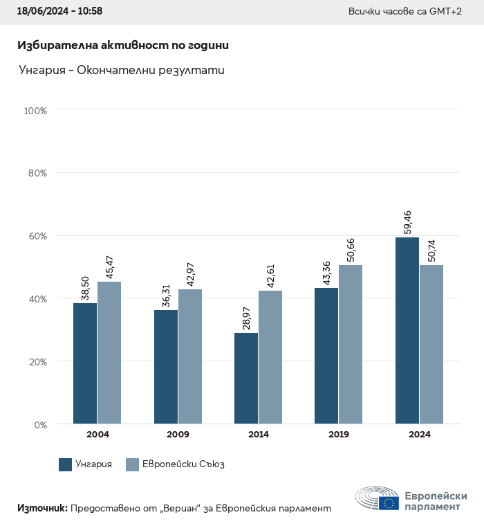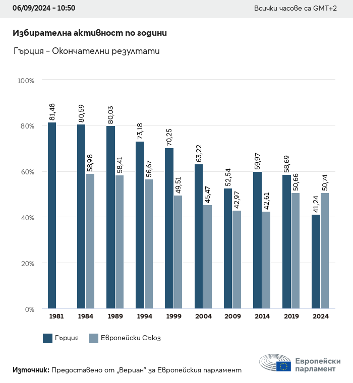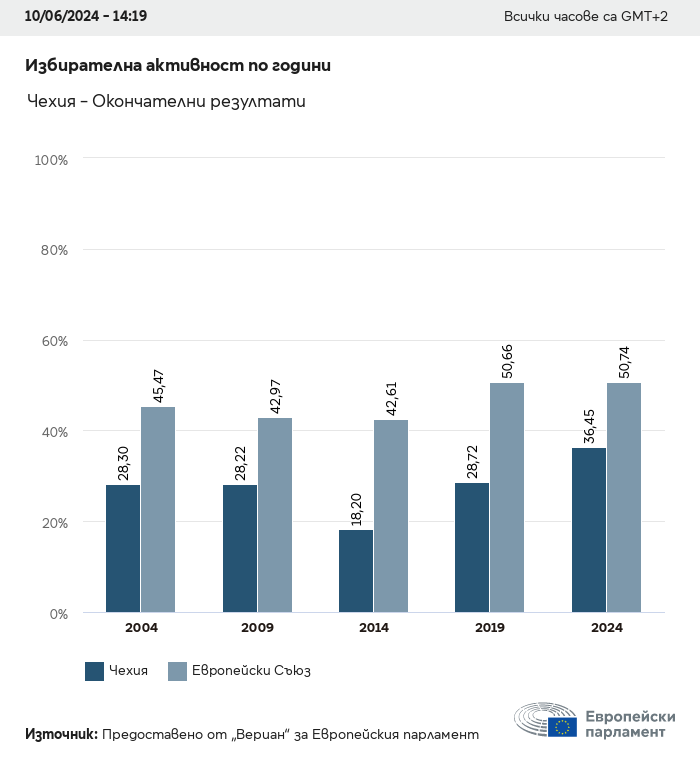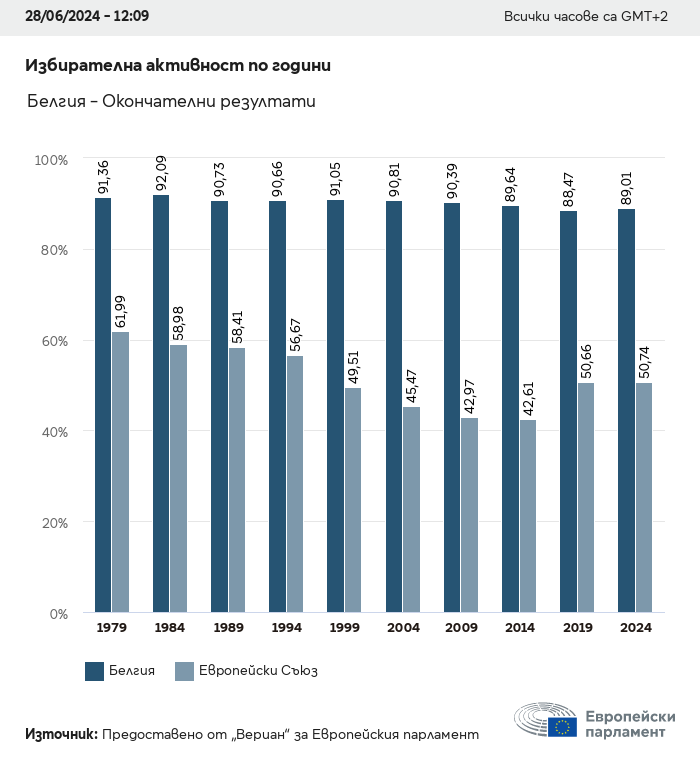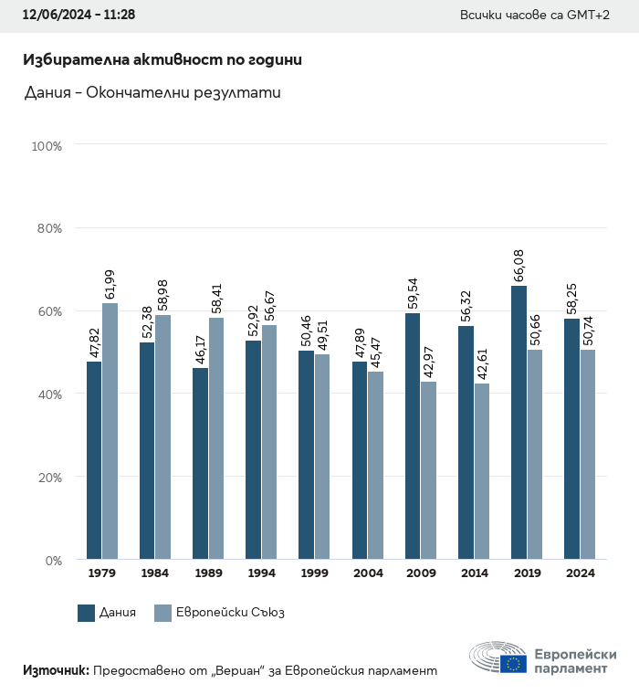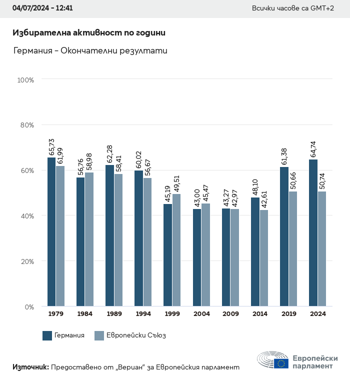 Изборните резултати за всички европейски избори от 1979 г. насам са достъпни по-долу в различни формати за изтегляне. Обърнете внимание, че наличните за изтегляне файлове се предоставят заедно с прикачен към тях цифров подпис. Тези подписи могат да бъдат валидирани с помощта на това удостоверение, което на свой ред може да бъде потвърдено със следната удостоверителна верига . Данни за европейските избори от 2024 г. json Общи Етикети (38 Ko) - Подпис Избирателна активност (32 Ko) - Подпис Данни за съотношение между половете (7 Ko) - Подпис Политически групи (40 Ko) - Подпис Национални партии (110 Ko) - Подпис Данни от европейските избори (1 Ko) - Подпис Изборни резултати be (7 Ko) - Подпис fbe (4 Ko) - Подпис gbe (2 Ko) - Подпис wbe (3 Ko) - Подпис bg (5 Ko) - Подпис cz (7 Ko) - Подпис dk (5 Ko) - Подпис de (8 Ko) - Подпис ee (4 Ko) - Подпис ie (5 Ko) - Подпис el (5 Ko) - Подпис es (7 Ko) - Подпис fr (8 Ko) - Подпис hr (3 Ko) - Подпис it (6 Ko) - Подпис cy (3 Ko) - Подпис lv (5 Ko) - Подпис lt (5 Ko) - Подпис lu (4 Ko) - Подпис hu (5 Ko) - Подпис mt (2 Ko) - Подпис nl (6 Ko) - Подпис at (3 Ko) - Подпис pl (7 Ko) - Подпис pt (5 Ko) - Подпис ro (5 Ko) - Подпис si (4 Ko) - Подпис sk (5 Ko) - Подпис fi (4 Ko) - Подпис se (4 Ko) - Подпис xml Общи Етикети (63 Ko) - Подпис Избирателна активност (40 Ko) - Подпис Данни за съотношение между половете (10 Ko) - Подпис Политически групи (64 Ko) - Подпис Национални партии (123 Ko) - Подпис Данни от европейските избори (2 Ko) - Подпис Изборни резултати be (10 Ko) - Подпис fbe (6 Ko) - Подпис gbe (3 Ko) - Подпис wbe (5 Ko) - Подпис bg (7 Ko) - Подпис cz (10 Ko) - Подпис dk (7 Ko) - Подпис de (11 Ko) - Подпис ee (6 Ko) - Подпис ie (7 Ko) - Подпис el (7 Ko) - Подпис es (11 Ko) - Подпис fr (12 Ko) - Подпис hr (5 Ko) - Подпис it (9 Ko) - Подпис cy (5 Ko) - Подпис lv (7 Ko) - Подпис lt (7 Ko) - Подпис lu (6 Ko) - Подпис hu (7 Ko) - Подпис mt (3 Ko) - Подпис nl (9 Ko) - Подпис at (5 Ko) - Подпис pl (10 Ko) - Подпис pt (7 Ko) - Подпис ro (8 Ko) - Подпис si (5 Ko) - Подпис sk (7 Ko) - Подпис fi (6 Ko) - Подпис se (6 Ko) - Подпис csv Избирателна активност Избирателна активност в ЕС (1 Ko) - Подпис Избирателна активност по държави (5 Ko) - Подпис Етикети (15 Ko) - Подпис Данни за съотношение между половете Съотношение между половете в ЕС (1 Ko) - Подпис Съотношение между мъжете и жените по държави (2 Ko) - Подпис Политически групи (16 Ko) - Подпис Национални партии (27 Ko) - Подпис Резултати по национални партии be (1 Ko) - Подпис fbe (1 Ko) - Подпис gbe (1 Ko) - Подпис wbe (1 Ko) - Подпис bg (1 Ko) - Подпис cz (1 Ko) - Подпис dk (1 Ko) - Подпис de (1 Ko) - Подпис ee (1 Ko) - Подпис ie (1 Ko) - Подпис el (1 Ko) - Подпис es (1 Ko) - Подпис fr (1 Ko) - Подпис hr (1 Ko) - Подпис it (1 Ko) - Подпис cy (1 Ko) - Подпис lv (1 Ko) - Подпис lt (1 Ko) - Подпис lu (1 Ko) - Подпис hu (1 Ko) - Подпис mt (1 Ko) - Подпис nl (1 Ko) - Подпис at (1 Ko) - Подпис pl (1 Ko) - Подпис pt (1 Ko) - Подпис ro (1 Ko) - Подпис si (1 Ko) - Подпис sk (1 Ko) - Подпис fi (1 Ko) - Подпис se (1 Ko) - Подпис Резултати по политически групи EU (1 Ko) - Подпис be (1 Ko) - Подпис fbe (1 Ko) - Подпис gbe (1 Ko) - Подпис wbe (1 Ko) - Подпис bg (1 Ko) - Подпис cz (1 Ko) - Подпис dk (1 Ko) - Подпис de (1 Ko) - Подпис ee (1 Ko) - Подпис ie (1 Ko) - Подпис el (1 Ko) - Подпис es (1 Ko) - Подпис fr (1 Ko) - Подпис hr (1 Ko) - Подпис it (1 Ko) - Подпис cy (1 Ko) - Подпис lv (1 Ko) - Подпис lt (1 Ko) - Подпис lu (1 Ko) - Подпис hu (1 Ko) - Подпис mt (1 Ko) - Подпис nl (1 Ko) - Подпис at (1 Ko) - Подпис pl (1 Ko) - Подпис pt (1 Ko) - Подпис ro (1 Ko) - Подпис si (1 Ko) - Подпис sk (1 Ko) - Подпис fi (1 Ko) - Подпис se (1 Ko) - Подпис Разбивка по национални партии и политически групи be (1 Ko) - Подпис fbe (1 Ko) - Подпис gbe (1 Ko) - Подпис wbe (1 Ko) - Подпис bg (1 Ko) - Подпис cz (1 Ko) - Подпис dk (1 Ko) - Подпис de (1 Ko) - Подпис ee (1 Ko) - Подпис ie (1 Ko) - Подпис el (1 Ko) - Подпис es (1 Ko) - Подпис fr (1 Ko) - Подпис hr (1 Ko) - Подпис it (1 Ko) - Подпис cy (1 Ko) - Подпис lv (1 Ko) - Подпис lt (1 Ko) - Подпис lu (1 Ko) - Подпис hu (1 Ko) - Подпис mt (1 Ko) - Под