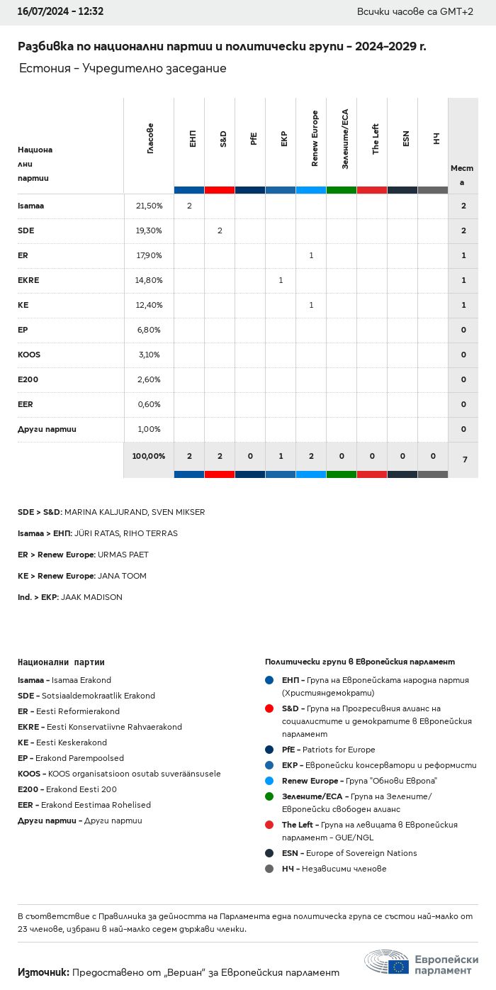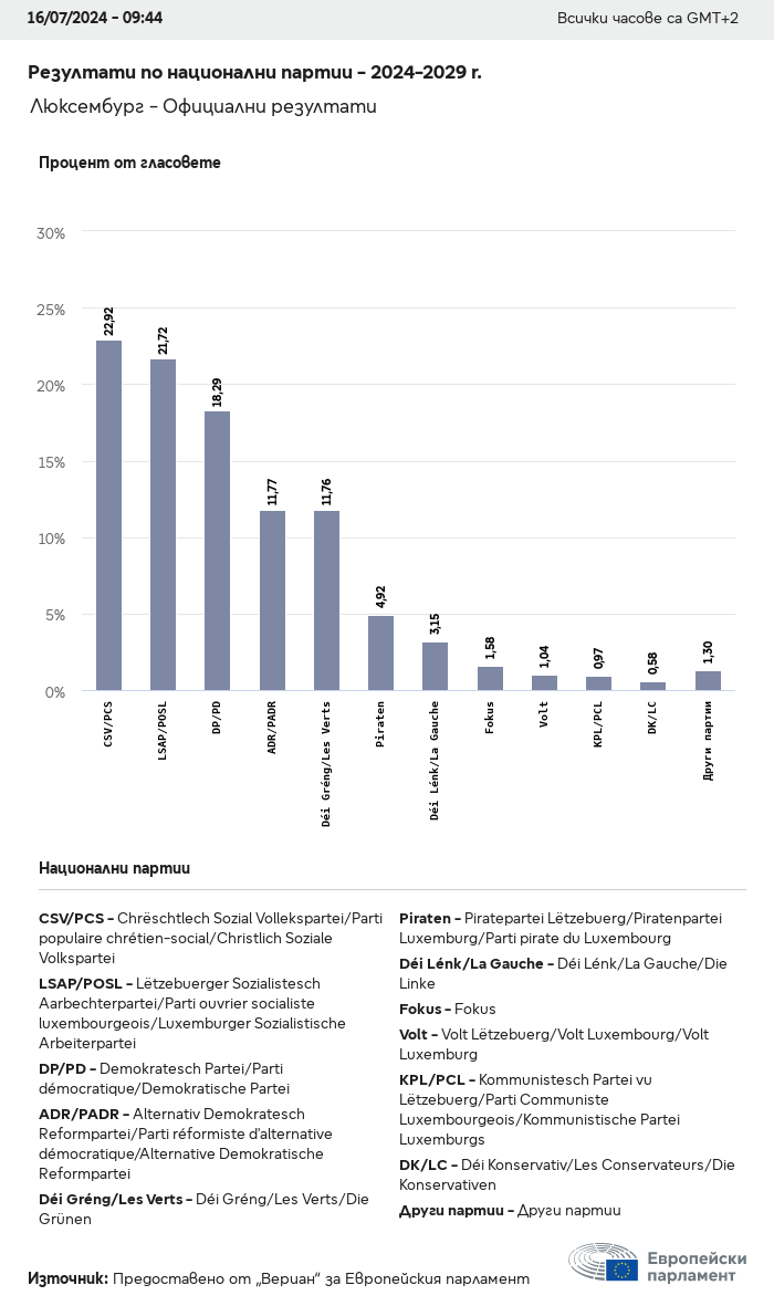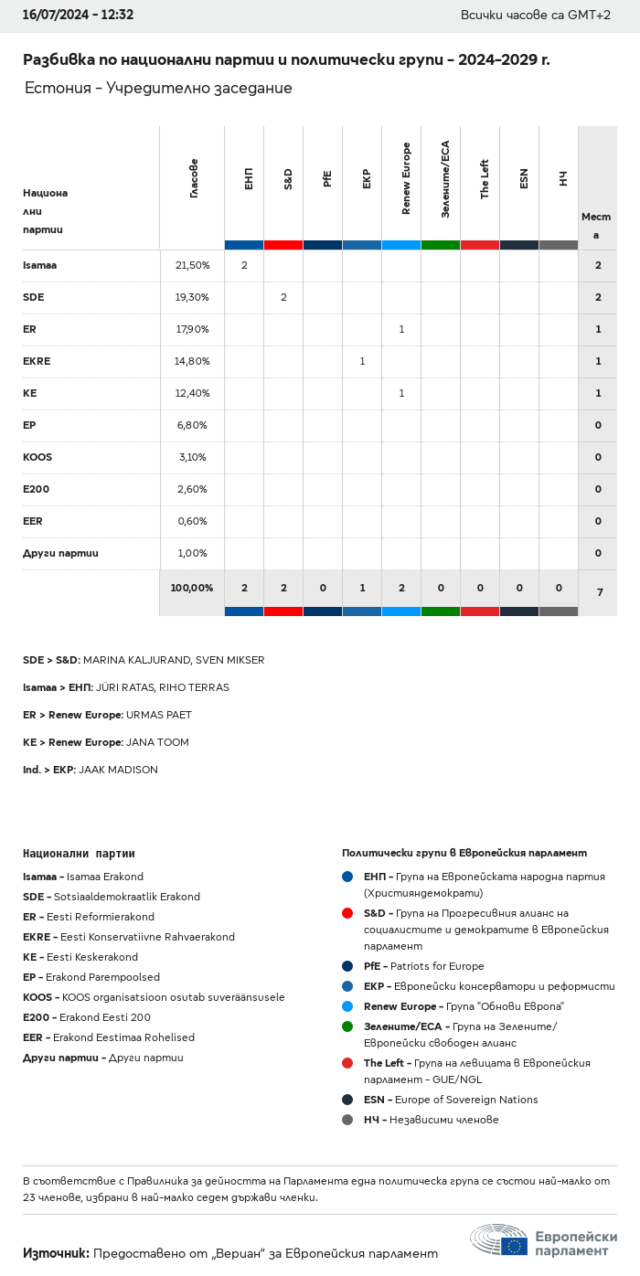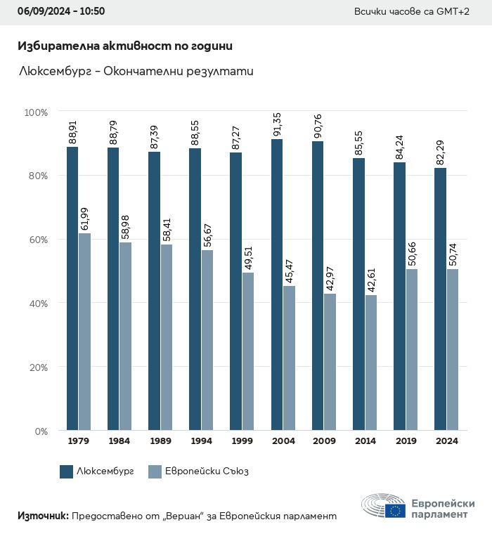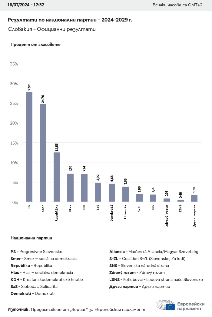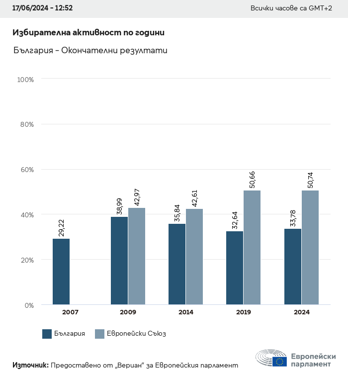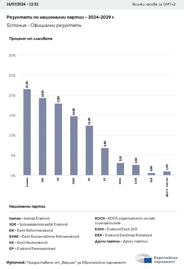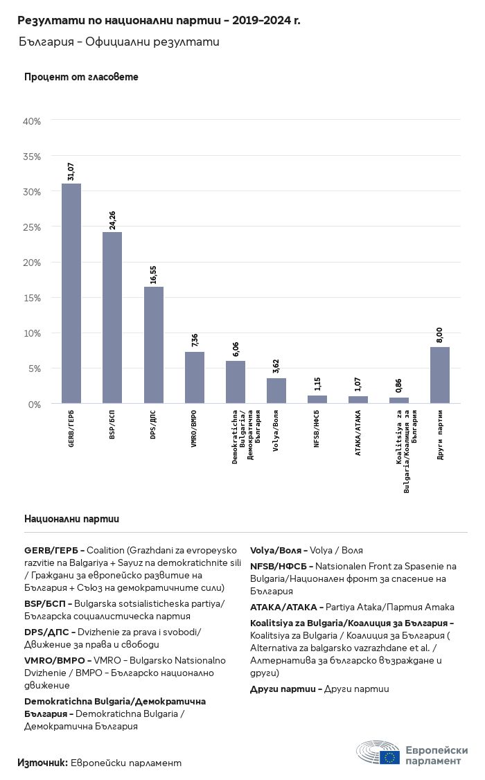 Изборните резултати за всички европейски избори от 1979 г. насам са достъпни по-долу в различни формати за изтегляне. Обърнете внимание, че наличните за изтегляне файлове се предоставят заедно с прикачен към тях цифров подпис. Тези подписи могат да бъдат валидирани с помощта на това удостоверение, което на свой ред може да бъде потвърдено със следната удостоверителна верига . Данни за европейските избори от 2024 г. json Общи Етикети (38 Ko) - Подпис Избирателна активност (32 Ko) - Подпис Данни за съотношение между половете (7 Ko) - Подпис Политически групи (40 Ko) - Подпис Национални партии (110 Ko) - Подпис Данни от европейските избори (1 Ko) - Подпис Изборни резултати be (7 Ko) - Подпис fbe (4 Ko) - Подпис gbe (2 Ko) - Подпис wbe (3 Ko) - Подпис bg (5 Ko) - Подпис cz (7 Ko) - Подпис dk (5 Ko) - Подпис de (8 Ko) - Подпис ee (4 Ko) - Подпис ie (5 Ko) - Подпис el (5 Ko) - Подпис es (7 Ko) - Подпис fr (8 Ko) - Подпис hr (3 Ko) - Подпис it (6 Ko) - Подпис cy (3 Ko) - Подпис lv (5 Ko) - Подпис lt (5 Ko) - Подпис lu (4 Ko) - Подпис hu (5 Ko) - Подпис mt (2 Ko) - Подпис nl (6 Ko) - Подпис at (3 Ko) - Подпис pl (7 Ko) - Подпис pt (5 Ko) - Подпис ro (5 Ko) - Подпис si (4 Ko) - Подпис sk (5 Ko) - Подпис fi (4 Ko) - Подпис se (4 Ko) - Подпис xml Общи Етикети (63 Ko) - Подпис Избирателна активност (40 Ko) - Подпис Данни за съотношение между половете (10 Ko) - Подпис Политически групи (64 Ko) - Подпис Национални партии (123 Ko) - Подпис Данни от европейските избори (2 Ko) - Подпис Изборни резултати be (10 Ko) - Подпис fbe (6 Ko) - Подпис gbe (3 Ko) - Подпис wbe (5 Ko) - Подпис bg (7 Ko) - Подпис cz (10 Ko) - Подпис dk (7 Ko) - Подпис de (11 Ko) - Подпис ee (6 Ko) - Подпис ie (7 Ko) - Подпис el (7 Ko) - Подпис es (11 Ko) - Подпис fr (12 Ko) - Подпис hr (5 Ko) - Подпис it (9 Ko) - Подпис cy (5 Ko) - Подпис lv (7 Ko) - Подпис lt (7 Ko) - Подпис lu (6 Ko) - Подпис hu (7 Ko) - Подпис mt (3 Ko) - Подпис nl (9 Ko) - Подпис at (5 Ko) - Подпис pl (10 Ko) - Подпис pt (7 Ko) - Подпис ro (8 Ko) - Подпис si (5 Ko) - Подпис sk (7 Ko) - Подпис fi (6 Ko) - Подпис se (6 Ko) - Подпис csv Избирателна активност Избирателна активност в ЕС (1 Ko) - Подпис Избирателна активност по държави (5 Ko) - Подпис Етикети (15 Ko) - Подпис Данни за съотношение между половете Съотношение между половете в ЕС (1 Ko) - Подпис Съотношение между мъжете и жените по държави (2 Ko) - Подпис Политически групи (16 Ko) - Подпис Национални партии (27 Ko) - Подпис Резултати по национални партии be (1 Ko) - Подпис fbe (1 Ko) - Подпис gbe (1 Ko) - Подпис wbe (1 Ko) - Подпис bg (1 Ko) - Подпис cz (1 Ko) - Подпис dk (1 Ko) - Подпис de (1 Ko) - Подпис ee (1 Ko) - Подпис ie (1 Ko) - Подпис el (1 Ko) - Подпис es (1 Ko) - Подпис fr (1 Ko) - Подпис hr (1 Ko) - Подпис it (1 Ko) - Подпис cy (1 Ko) - Подпис lv (1 Ko) - Подпис lt (1 Ko) - Подпис lu (1 Ko) - Подпис hu (1 Ko) - Подпис mt (1 Ko) - Подпис nl (1 Ko) - Подпис at (1 Ko) - Подпис pl (1 Ko) - Подпис pt (1 Ko) - Подпис ro (1 Ko) - Подпис si (1 Ko) - Подпис sk (1 Ko) - Подпис fi (1 Ko) - Подпис se (1 Ko) - Подпис Резултати по политически групи EU (1 Ko) - Подпис be (1 Ko) - Подпис fbe (1 Ko) - Подпис gbe (1 Ko) - Подпис wbe (1 Ko) - Подпис bg (1 Ko) - Подпис cz (1 Ko) - Подпис dk (1 Ko) - Подпис de (1 Ko) - Подпис ee (1 Ko) - Подпис ie (1 Ko) - Подпис el (1 Ko) - Подпис es (1 Ko) - Подпис fr (1 Ko) - Подпис hr (1 Ko) - Подпис it (1 Ko) - Подпис cy (1 Ko) - Подпис lv (1 Ko) - Подпис lt (1 Ko) - Подпис lu (1 Ko) - Подпис hu (1 Ko) - Подпис mt (1 Ko) - Подпис nl (1 Ko) - Подпис at (1 Ko) - Подпис pl (1 Ko) - Подпис pt (1 Ko) - Подпис ro (1 Ko) - Подпис si (1 Ko) - Подпис sk (1 Ko) - Подпис fi (1 Ko) - Подпис se (1 Ko) - Подпис Разбивка по национални партии и политически групи be (1 Ko) - Подпис fbe (1 Ko) - Подпис gbe (1 Ko) - Подпис wbe (1 Ko) - Подпис bg (1 Ko) - Подпис cz (1 Ko) - Подпис dk (1 Ko) - Подпис de (1 Ko) - Подпис ee (1 Ko) - Подпис ie (1 Ko) - Подпис el (1 Ko) - Подпис es (1 Ko) - Подпис fr (1 Ko) - Подпис hr (1 Ko) - Подпис it (1 Ko) - Подпис cy (1 Ko) - Подпис lv (1 Ko) - Подпис lt (1 Ko) - Подпис lu (1 Ko) - Подпис hu (1 Ko) - Подпис mt (1 Ko) - Под