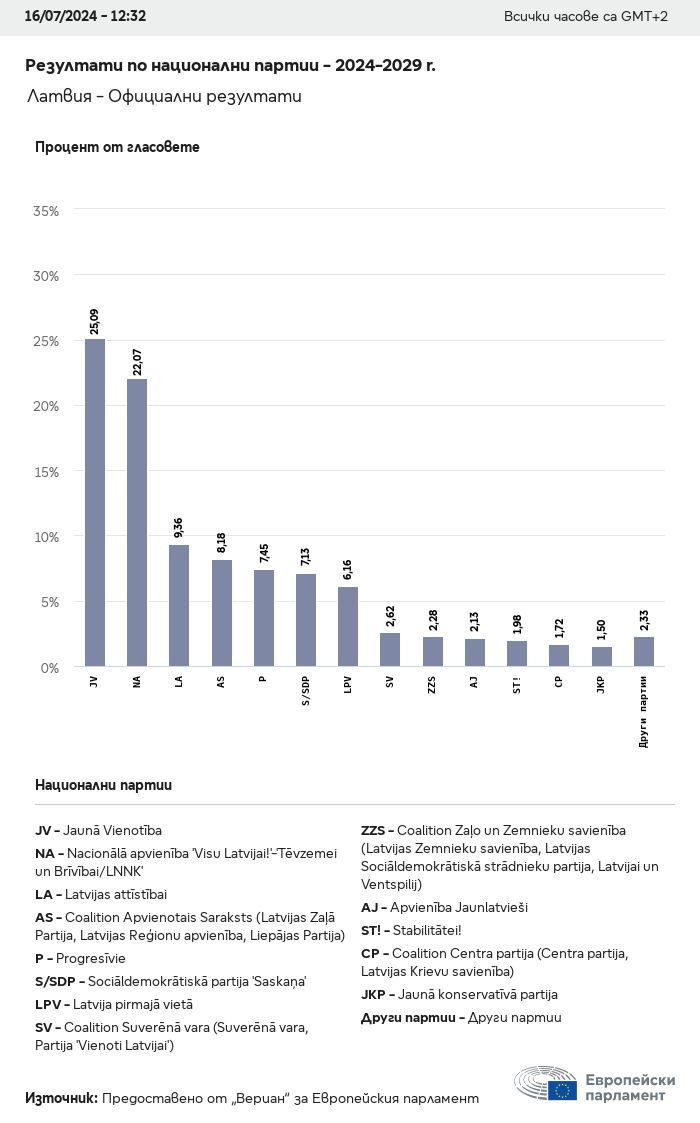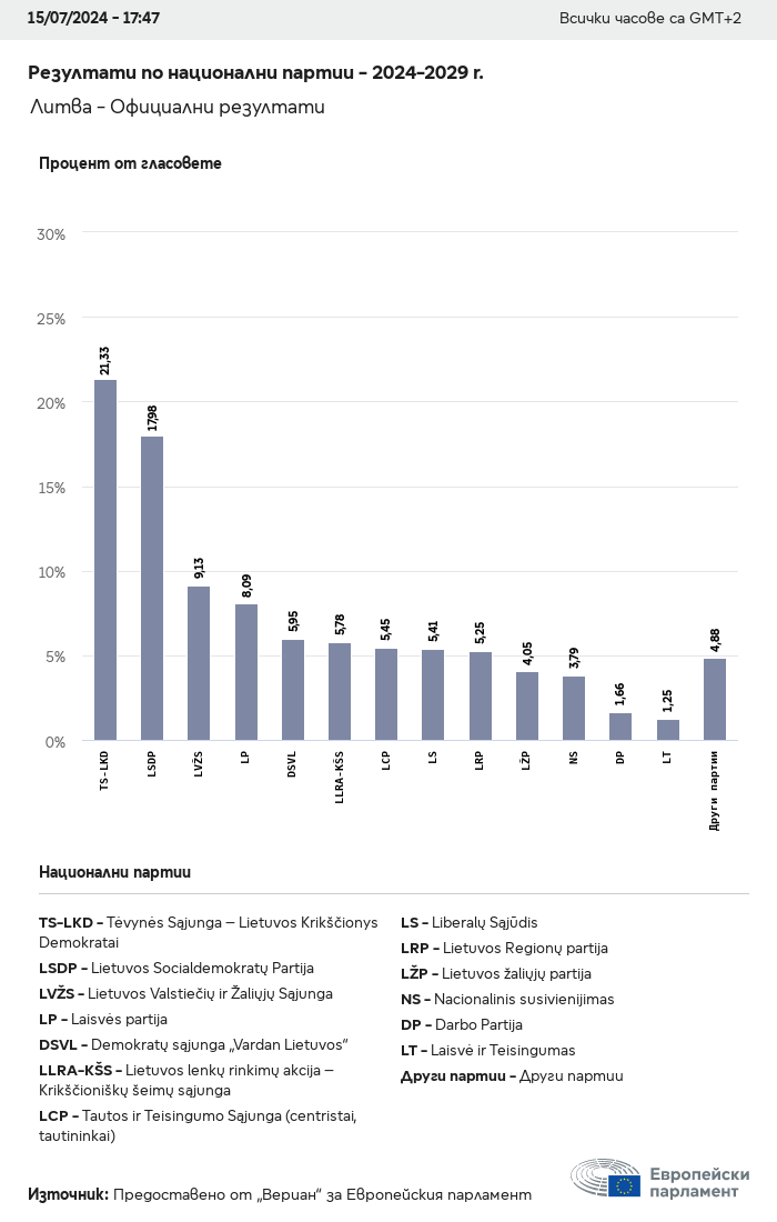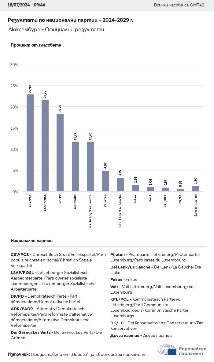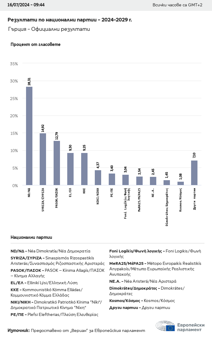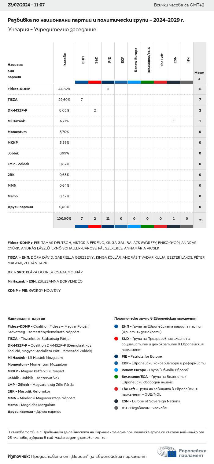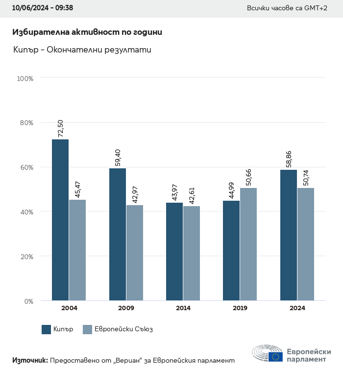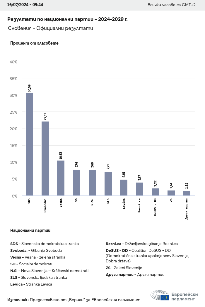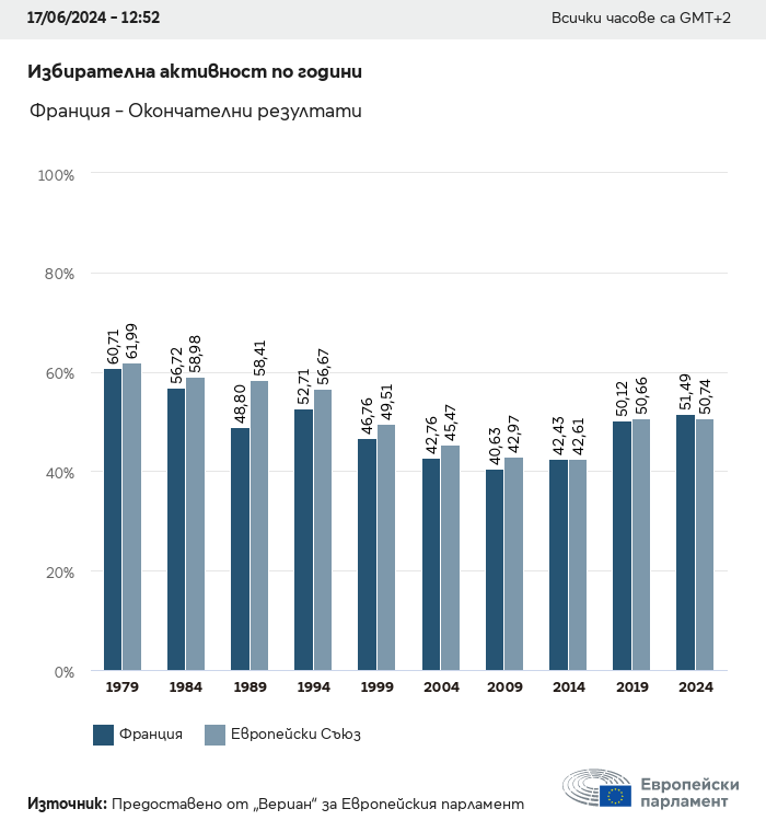 Изборните резултати за всички европейски избори от 1979 г. насам са достъпни по-долу в различни формати за изтегляне. Обърнете внимание, че наличните за изтегляне файлове се предоставят заедно с прикачен към тях цифров подпис. Тези подписи могат да бъдат валидирани с помощта на това удостоверение, което на свой ред може да бъде потвърдено със следната удостоверителна верига . Данни за европейските избори от 2024 г. json Общи Етикети (38 Ko) - Подпис Избирателна активност (32 Ko) - Подпис Данни за съотношение между половете (7 Ko) - Подпис Политически групи (40 Ko) - Подпис Национални партии (110 Ko) - Подпис Данни от европейските избори (1 Ko) - Подпис Изборни резултати be (7 Ko) - Подпис fbe (4 Ko) - Подпис gbe (2 Ko) - Подпис wbe (3 Ko) - Подпис bg (5 Ko) - Подпис cz (7 Ko) - Подпис dk (5 Ko) - Подпис de (8 Ko) - Подпис ee (4 Ko) - Подпис ie (5 Ko) - Подпис el (5 Ko) - Подпис es (7 Ko) - Подпис fr (8 Ko) - Подпис hr (3 Ko) - Подпис it (6 Ko) - Подпис cy (3 Ko) - Подпис lv (5 Ko) - Подпис lt (5 Ko) - Подпис lu (4 Ko) - Подпис hu (5 Ko) - Подпис mt (2 Ko) - Подпис nl (6 Ko) - Подпис at (3 Ko) - Подпис pl (7 Ko) - Подпис pt (5 Ko) - Подпис ro (5 Ko) - Подпис si (4 Ko) - Подпис sk (5 Ko) - Подпис fi (4 Ko) - Подпис se (4 Ko) - Подпис xml Общи Етикети (63 Ko) - Подпис Избирателна активност (40 Ko) - Подпис Данни за съотношение между половете (10 Ko) - Подпис Политически групи (64 Ko) - Подпис Национални партии (123 Ko) - Подпис Данни от европейските избори (2 Ko) - Подпис Изборни резултати be (10 Ko) - Подпис fbe (6 Ko) - Подпис gbe (3 Ko) - Подпис wbe (5 Ko) - Подпис bg (7 Ko) - Подпис cz (10 Ko) - Подпис dk (7 Ko) - Подпис de (11 Ko) - Подпис ee (6 Ko) - Подпис ie (7 Ko) - Подпис el (7 Ko) - Подпис es (11 Ko) - Подпис fr (12 Ko) - Подпис hr (5 Ko) - Подпис it (9 Ko) - Подпис cy (5 Ko) - Подпис lv (7 Ko) - Подпис lt (7 Ko) - Подпис lu (6 Ko) - Подпис hu (7 Ko) - Подпис mt (3 Ko) - Подпис nl (9 Ko) - Подпис at (5 Ko) - Подпис pl (10 Ko) - Подпис pt (7 Ko) - Подпис ro (8 Ko) - Подпис si (5 Ko) - Подпис sk (7 Ko) - Подпис fi (6 Ko) - Подпис se (6 Ko) - Подпис csv Избирателна активност Избирателна активност в ЕС (1 Ko) - Подпис Избирателна активност по държави (5 Ko) - Подпис Етикети (15 Ko) - Подпис Данни за съотношение между половете Съотношение между половете в ЕС (1 Ko) - Подпис Съотношение между мъжете и жените по държави (2 Ko) - Подпис Политически групи (16 Ko) - Подпис Национални партии (27 Ko) - Подпис Резултати по национални партии be (1 Ko) - Подпис fbe (1 Ko) - Подпис gbe (1 Ko) - Подпис wbe (1 Ko) - Подпис bg (1 Ko) - Подпис cz (1 Ko) - Подпис dk (1 Ko) - Подпис de (1 Ko) - Подпис ee (1 Ko) - Подпис ie (1 Ko) - Подпис el (1 Ko) - Подпис es (1 Ko) - Подпис fr (1 Ko) - Подпис hr (1 Ko) - Подпис it (1 Ko) - Подпис cy (1 Ko) - Подпис lv (1 Ko) - Подпис lt (1 Ko) - Подпис lu (1 Ko) - Подпис hu (1 Ko) - Подпис mt (1 Ko) - Подпис nl (1 Ko) - Подпис at (1 Ko) - Подпис pl (1 Ko) - Подпис pt (1 Ko) - Подпис ro (1 Ko) - Подпис si (1 Ko) - Подпис sk (1 Ko) - Подпис fi (1 Ko) - Подпис se (1 Ko) - Подпис Резултати по политически групи EU (1 Ko) - Подпис be (1 Ko) - Подпис fbe (1 Ko) - Подпис gbe (1 Ko) - Подпис wbe (1 Ko) - Подпис bg (1 Ko) - Подпис cz (1 Ko) - Подпис dk (1 Ko) - Подпис de (1 Ko) - Подпис ee (1 Ko) - Подпис ie (1 Ko) - Подпис el (1 Ko) - Подпис es (1 Ko) - Подпис fr (1 Ko) - Подпис hr (1 Ko) - Подпис it (1 Ko) - Подпис cy (1 Ko) - Подпис lv (1 Ko) - Подпис lt (1 Ko) - Подпис lu (1 Ko) - Подпис hu (1 Ko) - Подпис mt (1 Ko) - Подпис nl (1 Ko) - Подпис at (1 Ko) - Подпис pl (1 Ko) - Подпис pt (1 Ko) - Подпис ro (1 Ko) - Подпис si (1 Ko) - Подпис sk (1 Ko) - Подпис fi (1 Ko) - Подпис se (1 Ko) - Подпис Разбивка по национални партии и политически групи be (1 Ko) - Подпис fbe (1 Ko) - Подпис gbe (1 Ko) - Подпис wbe (1 Ko) - Подпис bg (1 Ko) - Подпис cz (1 Ko) - Подпис dk (1 Ko) - Подпис de (1 Ko) - Подпис ee (1 Ko) - Подпис ie (1 Ko) - Подпис el (1 Ko) - Подпис es (1 Ko) - Подпис fr (1 Ko) - Подпис hr (1 Ko) - Подпис it (1 Ko) - Подпис cy (1 Ko) - Подпис lv (1 Ko) - Подпис lt (1 Ko) - Подпис lu (1 Ko) - Подпис hu (1 Ko) - Подпис mt (1 Ko) - Под