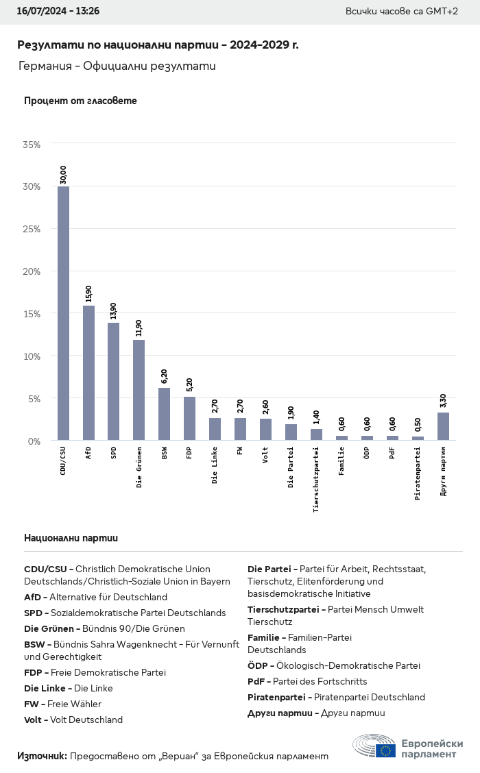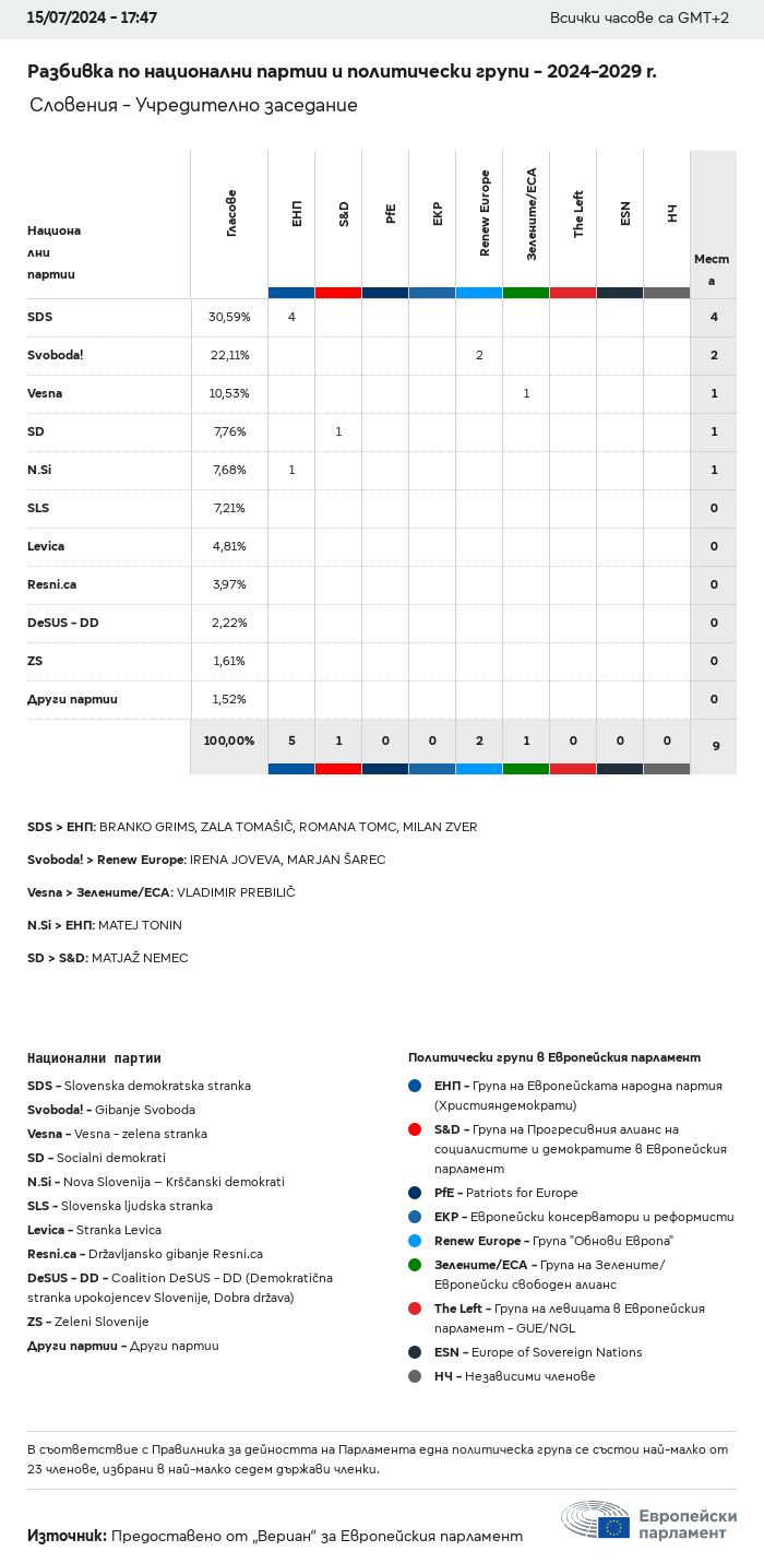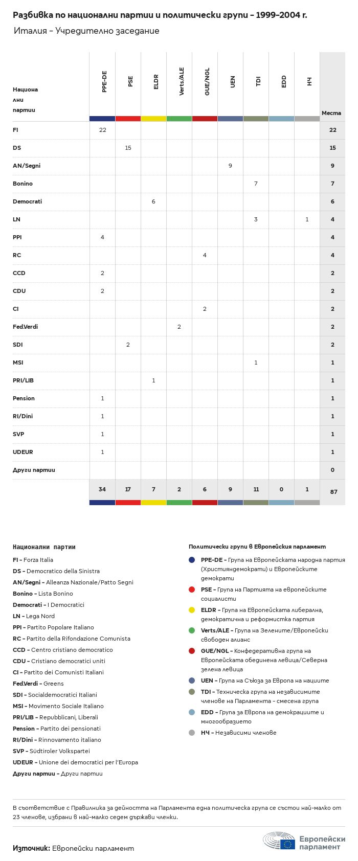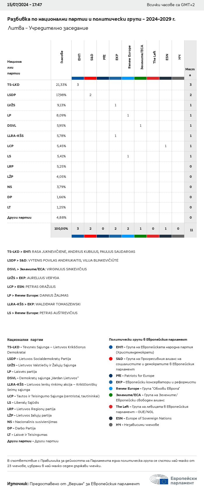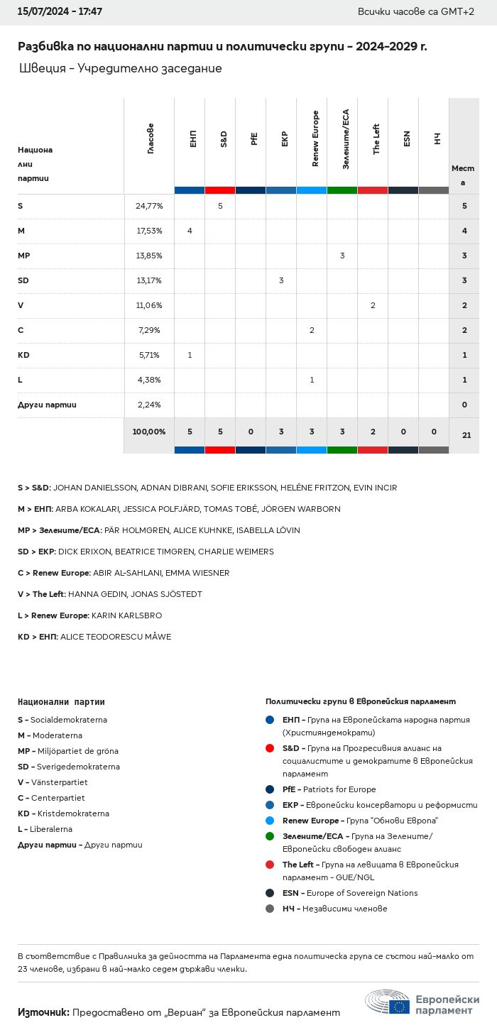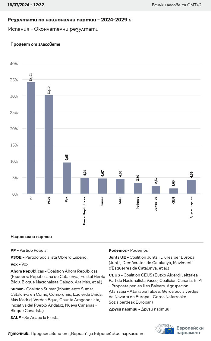 Изборните резултати за всички европейски избори от 1979 г. насам са достъпни по-долу в различни формати за изтегляне. Обърнете внимание, че наличните за изтегляне файлове се предоставят заедно с прикачен към тях цифров подпис. Тези подписи могат да бъдат валидирани с помощта на това удостоверение, което на свой ред може да бъде потвърдено със следната удостоверителна верига . Данни за европейските избори от 2024 г. json Общи Етикети (38 Ko) - Подпис Избирателна активност (32 Ko) - Подпис Данни за съотношение между половете (7 Ko) - Подпис Политически групи (40 Ko) - Подпис Национални партии (110 Ko) - Подпис Данни от европейските избори (1 Ko) - Подпис Изборни резултати be (7 Ko) - Подпис fbe (4 Ko) - Подпис gbe (2 Ko) - Подпис wbe (3 Ko) - Подпис bg (5 Ko) - Подпис cz (7 Ko) - Подпис dk (5 Ko) - Подпис de (8 Ko) - Подпис ee (4 Ko) - Подпис ie (5 Ko) - Подпис el (5 Ko) - Подпис es (7 Ko) - Подпис fr (8 Ko) - Подпис hr (3 Ko) - Подпис it (6 Ko) - Подпис cy (3 Ko) - Подпис lv (5 Ko) - Подпис lt (5 Ko) - Подпис lu (4 Ko) - Подпис hu (5 Ko) - Подпис mt (2 Ko) - Подпис nl (6 Ko) - Подпис at (3 Ko) - Подпис pl (7 Ko) - Подпис pt (5 Ko) - Подпис ro (5 Ko) - Подпис si (4 Ko) - Подпис sk (5 Ko) - Подпис fi (4 Ko) - Подпис se (4 Ko) - Подпис xml Общи Етикети (63 Ko) - Подпис Избирателна активност (40 Ko) - Подпис Данни за съотношение между половете (10 Ko) - Подпис Политически групи (64 Ko) - Подпис Национални партии (123 Ko) - Подпис Данни от европейските избори (2 Ko) - Подпис Изборни резултати be (10 Ko) - Подпис fbe (6 Ko) - Подпис gbe (3 Ko) - Подпис wbe (5 Ko) - Подпис bg (7 Ko) - Подпис cz (10 Ko) - Подпис dk (7 Ko) - Подпис de (11 Ko) - Подпис ee (6 Ko) - Подпис ie (7 Ko) - Подпис el (7 Ko) - Подпис es (11 Ko) - Подпис fr (12 Ko) - Подпис hr (5 Ko) - Подпис it (9 Ko) - Подпис cy (5 Ko) - Подпис lv (7 Ko) - Подпис lt (7 Ko) - Подпис lu (6 Ko) - Подпис hu (7 Ko) - Подпис mt (3 Ko) - Подпис nl (9 Ko) - Подпис at (5 Ko) - Подпис pl (10 Ko) - Подпис pt (7 Ko) - Подпис ro (8 Ko) - Подпис si (5 Ko) - Подпис sk (7 Ko) - Подпис fi (6 Ko) - Подпис se (6 Ko) - Подпис csv Избирателна активност Избирателна активност в ЕС (1 Ko) - Подпис Избирателна активност по държави (5 Ko) - Подпис Етикети (15 Ko) - Подпис Данни за съотношение между половете Съотношение между половете в ЕС (1 Ko) - Подпис Съотношение между мъжете и жените по държави (2 Ko) - Подпис Политически групи (16 Ko) - Подпис Национални партии (27 Ko) - Подпис Резултати по национални партии be (1 Ko) - Подпис fbe (1 Ko) - Подпис gbe (1 Ko) - Подпис wbe (1 Ko) - Подпис bg (1 Ko) - Подпис cz (1 Ko) - Подпис dk (1 Ko) - Подпис de (1 Ko) - Подпис ee (1 Ko) - Подпис ie (1 Ko) - Подпис el (1 Ko) - Подпис es (1 Ko) - Подпис fr (1 Ko) - Подпис hr (1 Ko) - Подпис it (1 Ko) - Подпис cy (1 Ko) - Подпис lv (1 Ko) - Подпис lt (1 Ko) - Подпис lu (1 Ko) - Подпис hu (1 Ko) - Подпис mt (1 Ko) - Подпис nl (1 Ko) - Подпис at (1 Ko) - Подпис pl (1 Ko) - Подпис pt (1 Ko) - Подпис ro (1 Ko) - Подпис si (1 Ko) - Подпис sk (1 Ko) - Подпис fi (1 Ko) - Подпис se (1 Ko) - Подпис Резултати по политически групи EU (1 Ko) - Подпис be (1 Ko) - Подпис fbe (1 Ko) - Подпис gbe (1 Ko) - Подпис wbe (1 Ko) - Подпис bg (1 Ko) - Подпис cz (1 Ko) - Подпис dk (1 Ko) - Подпис de (1 Ko) - Подпис ee (1 Ko) - Подпис ie (1 Ko) - Подпис el (1 Ko) - Подпис es (1 Ko) - Подпис fr (1 Ko) - Подпис hr (1 Ko) - Подпис it (1 Ko) - Подпис cy (1 Ko) - Подпис lv (1 Ko) - Подпис lt (1 Ko) - Подпис lu (1 Ko) - Подпис hu (1 Ko) - Подпис mt (1 Ko) - Подпис nl (1 Ko) - Подпис at (1 Ko) - Подпис pl (1 Ko) - Подпис pt (1 Ko) - Подпис ro (1 Ko) - Подпис si (1 Ko) - Подпис sk (1 Ko) - Подпис fi (1 Ko) - Подпис se (1 Ko) - Подпис Разбивка по национални партии и политически групи be (1 Ko) - Подпис fbe (1 Ko) - Подпис gbe (1 Ko) - Подпис wbe (1 Ko) - Подпис bg (1 Ko) - Подпис cz (1 Ko) - Подпис dk (1 Ko) - Подпис de (1 Ko) - Подпис ee (1 Ko) - Подпис ie (1 Ko) - Подпис el (1 Ko) - Подпис es (1 Ko) - Подпис fr (1 Ko) - Подпис hr (1 Ko) - Подпис it (1 Ko) - Подпис cy (1 Ko) - Подпис lv (1 Ko) - Подпис lt (1 Ko) - Подпис lu (1 Ko) - Подпис hu (1 Ko) - Подпис mt (1 Ko) - Под