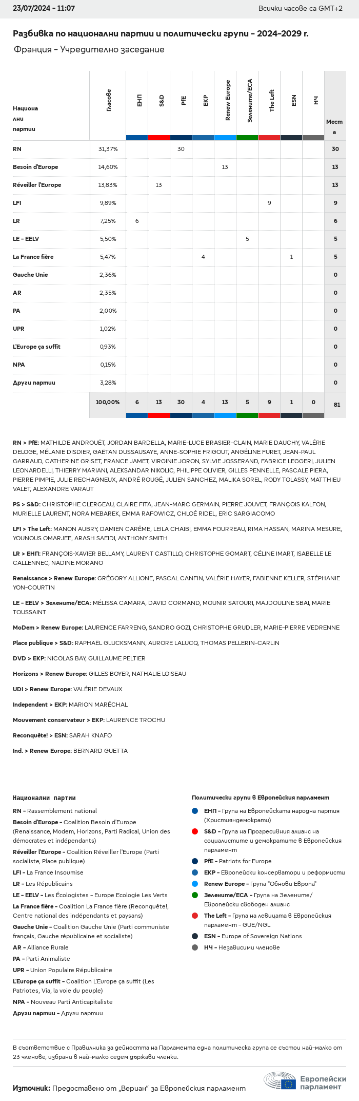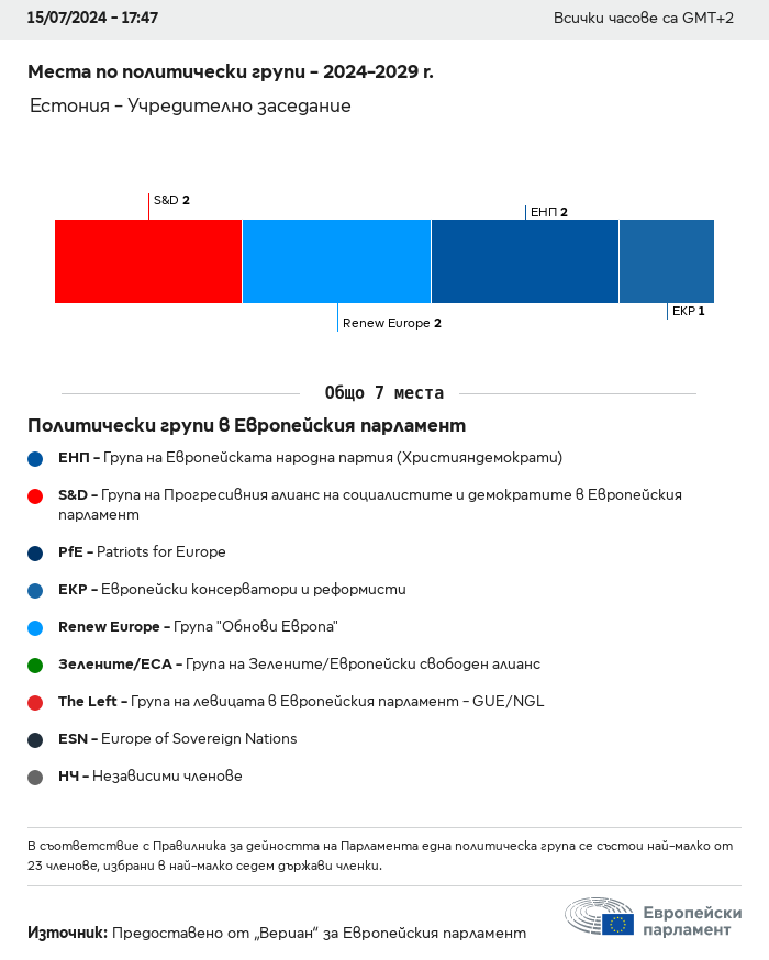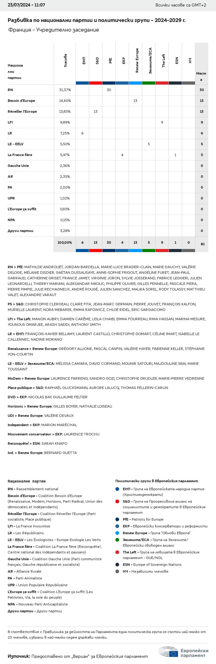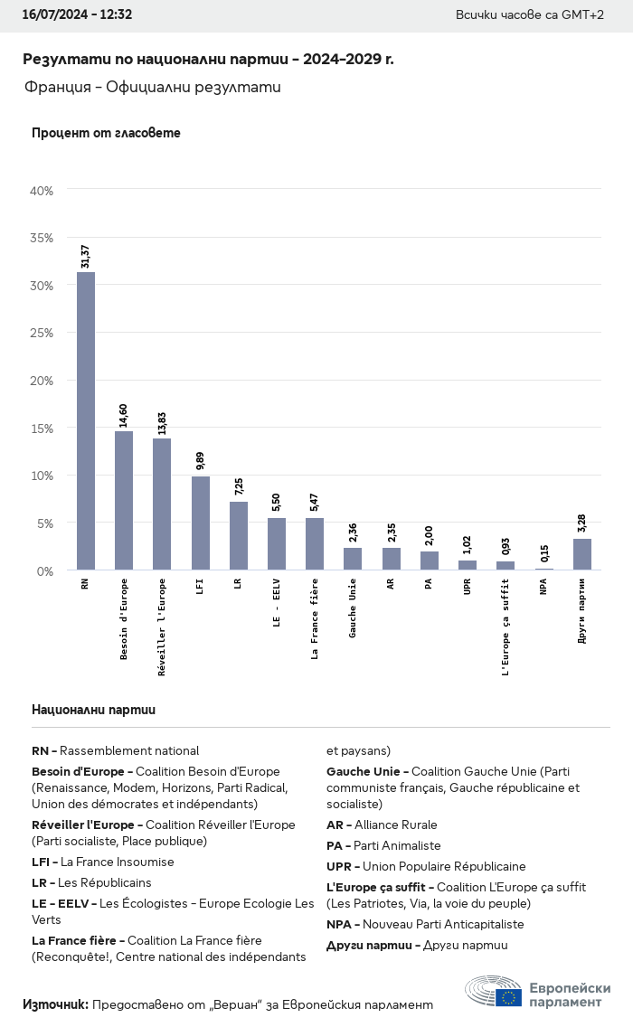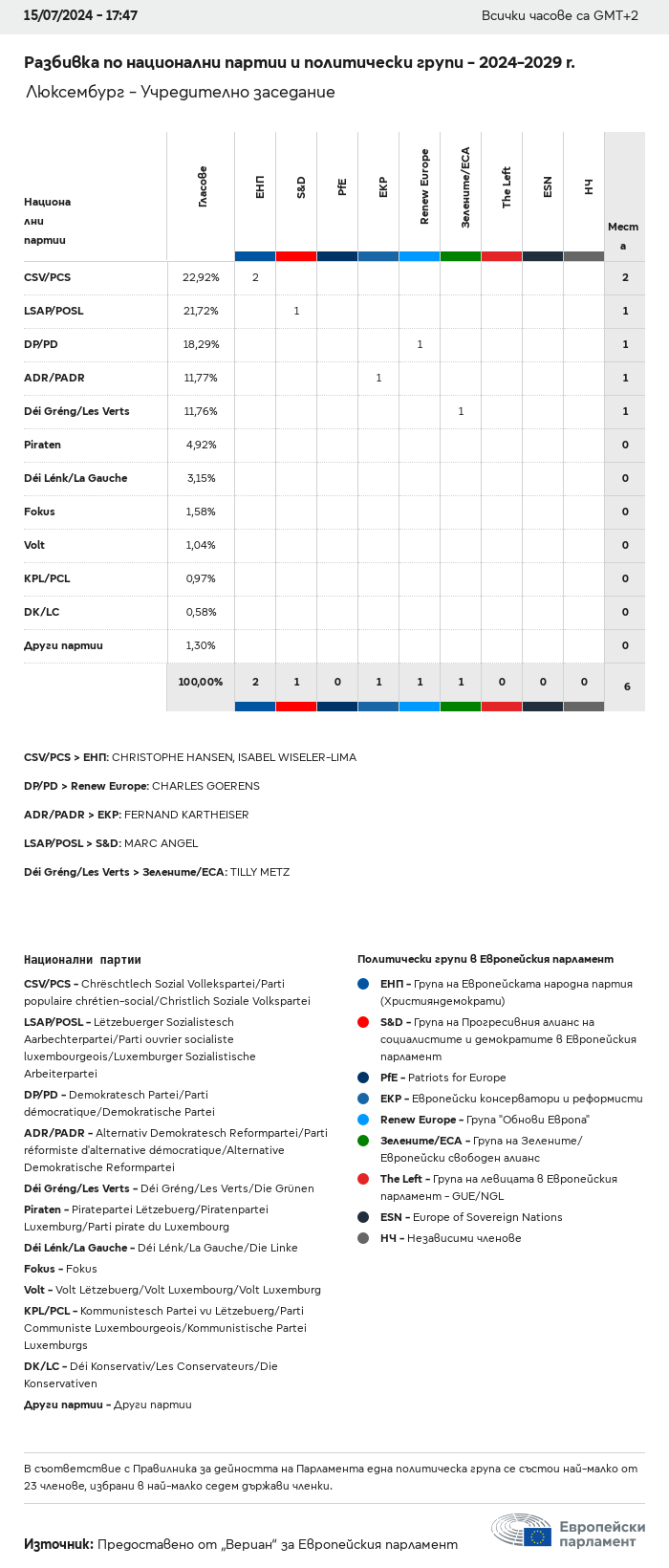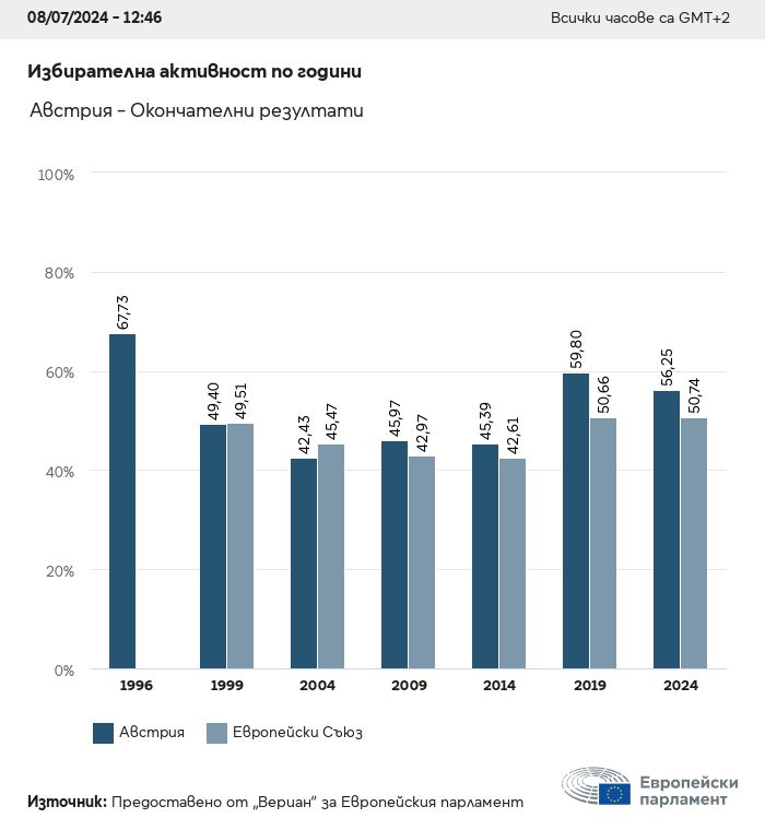 Изборните резултати за всички европейски избори от 1979 г. насам са достъпни по-долу в различни формати за изтегляне. Обърнете внимание, че наличните за изтегляне файлове се предоставят заедно с прикачен към тях цифров подпис. Тези подписи могат да бъдат валидирани с помощта на това удостоверение, което на свой ред може да бъде потвърдено със следната удостоверителна верига . Данни за европейските избори от 2024 г. json Общи Етикети (38 Ko) - Подпис Избирателна активност (32 Ko) - Подпис Данни за съотношение между половете (7 Ko) - Подпис Политически групи (40 Ko) - Подпис Национални партии (110 Ko) - Подпис Данни от европейските избори (1 Ko) - Подпис Изборни резултати be (7 Ko) - Подпис fbe (4 Ko) - Подпис gbe (2 Ko) - Подпис wbe (3 Ko) - Подпис bg (5 Ko) - Подпис cz (7 Ko) - Подпис dk (5 Ko) - Подпис de (8 Ko) - Подпис ee (4 Ko) - Подпис ie (5 Ko) - Подпис el (5 Ko) - Подпис es (7 Ko) - Подпис fr (8 Ko) - Подпис hr (3 Ko) - Подпис it (6 Ko) - Подпис cy (3 Ko) - Подпис lv (5 Ko) - Подпис lt (5 Ko) - Подпис lu (4 Ko) - Подпис hu (5 Ko) - Подпис mt (2 Ko) - Подпис nl (6 Ko) - Подпис at (3 Ko) - Подпис pl (7 Ko) - Подпис pt (5 Ko) - Подпис ro (5 Ko) - Подпис si (4 Ko) - Подпис sk (5 Ko) - Подпис fi (4 Ko) - Подпис se (4 Ko) - Подпис xml Общи Етикети (63 Ko) - Подпис Избирателна активност (40 Ko) - Подпис Данни за съотношение между половете (10 Ko) - Подпис Политически групи (64 Ko) - Подпис Национални партии (123 Ko) - Подпис Данни от европейските избори (2 Ko) - Подпис Изборни резултати be (10 Ko) - Подпис fbe (6 Ko) - Подпис gbe (3 Ko) - Подпис wbe (5 Ko) - Подпис bg (7 Ko) - Подпис cz (10 Ko) - Подпис dk (7 Ko) - Подпис de (11 Ko) - Подпис ee (6 Ko) - Подпис ie (7 Ko) - Подпис el (7 Ko) - Подпис es (11 Ko) - Подпис fr (12 Ko) - Подпис hr (5 Ko) - Подпис it (9 Ko) - Подпис cy (5 Ko) - Подпис lv (7 Ko) - Подпис lt (7 Ko) - Подпис lu (6 Ko) - Подпис hu (7 Ko) - Подпис mt (3 Ko) - Подпис nl (9 Ko) - Подпис at (5 Ko) - Подпис pl (10 Ko) - Подпис pt (7 Ko) - Подпис ro (8 Ko) - Подпис si (5 Ko) - Подпис sk (7 Ko) - Подпис fi (6 Ko) - Подпис se (6 Ko) - Подпис csv Избирателна активност Избирателна активност в ЕС (1 Ko) - Подпис Избирателна активност по държави (5 Ko) - Подпис Етикети (15 Ko) - Подпис Данни за съотношение между половете Съотношение между половете в ЕС (1 Ko) - Подпис Съотношение между мъжете и жените по държави (2 Ko) - Подпис Политически групи (16 Ko) - Подпис Национални партии (27 Ko) - Подпис Резултати по национални партии be (1 Ko) - Подпис fbe (1 Ko) - Подпис gbe (1 Ko) - Подпис wbe (1 Ko) - Подпис bg (1 Ko) - Подпис cz (1 Ko) - Подпис dk (1 Ko) - Подпис de (1 Ko) - Подпис ee (1 Ko) - Подпис ie (1 Ko) - Подпис el (1 Ko) - Подпис es (1 Ko) - Подпис fr (1 Ko) - Подпис hr (1 Ko) - Подпис it (1 Ko) - Подпис cy (1 Ko) - Подпис lv (1 Ko) - Подпис lt (1 Ko) - Подпис lu (1 Ko) - Подпис hu (1 Ko) - Подпис mt (1 Ko) - Подпис nl (1 Ko) - Подпис at (1 Ko) - Подпис pl (1 Ko) - Подпис pt (1 Ko) - Подпис ro (1 Ko) - Подпис si (1 Ko) - Подпис sk (1 Ko) - Подпис fi (1 Ko) - Подпис se (1 Ko) - Подпис Резултати по политически групи EU (1 Ko) - Подпис be (1 Ko) - Подпис fbe (1 Ko) - Подпис gbe (1 Ko) - Подпис wbe (1 Ko) - Подпис bg (1 Ko) - Подпис cz (1 Ko) - Подпис dk (1 Ko) - Подпис de (1 Ko) - Подпис ee (1 Ko) - Подпис ie (1 Ko) - Подпис el (1 Ko) - Подпис es (1 Ko) - Подпис fr (1 Ko) - Подпис hr (1 Ko) - Подпис it (1 Ko) - Подпис cy (1 Ko) - Подпис lv (1 Ko) - Подпис lt (1 Ko) - Подпис lu (1 Ko) - Подпис hu (1 Ko) - Подпис mt (1 Ko) - Подпис nl (1 Ko) - Подпис at (1 Ko) - Подпис pl (1 Ko) - Подпис pt (1 Ko) - Подпис ro (1 Ko) - Подпис si (1 Ko) - Подпис sk (1 Ko) - Подпис fi (1 Ko) - Подпис se (1 Ko) - Подпис Разбивка по национални партии и политически групи be (1 Ko) - Подпис fbe (1 Ko) - Подпис gbe (1 Ko) - Подпис wbe (1 Ko) - Подпис bg (1 Ko) - Подпис cz (1 Ko) - Подпис dk (1 Ko) - Подпис de (1 Ko) - Подпис ee (1 Ko) - Подпис ie (1 Ko) - Подпис el (1 Ko) - Подпис es (1 Ko) - Подпис fr (1 Ko) - Подпис hr (1 Ko) - Подпис it (1 Ko) - Подпис cy (1 Ko) - Подпис lv (1 Ko) - Подпис lt (1 Ko) - Подпис lu (1 Ko) - Подпис hu (1 Ko) - Подпис mt (1 Ko) - Под