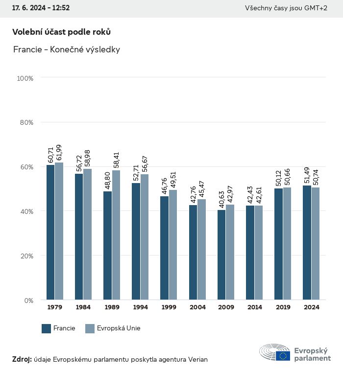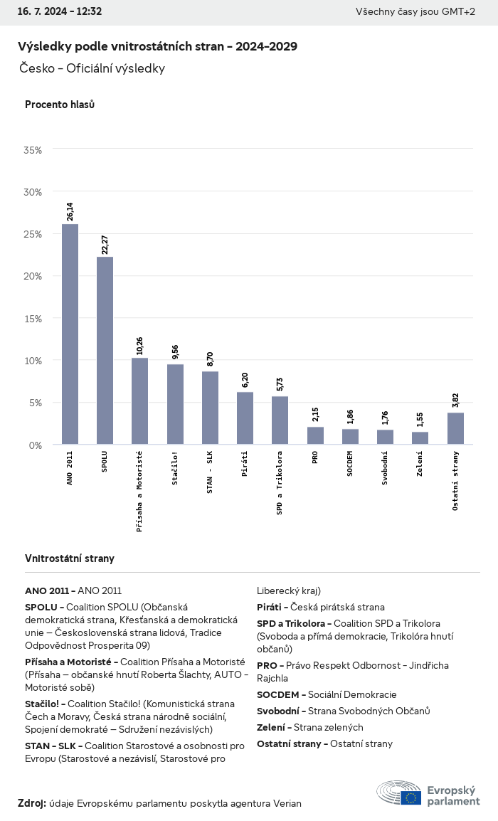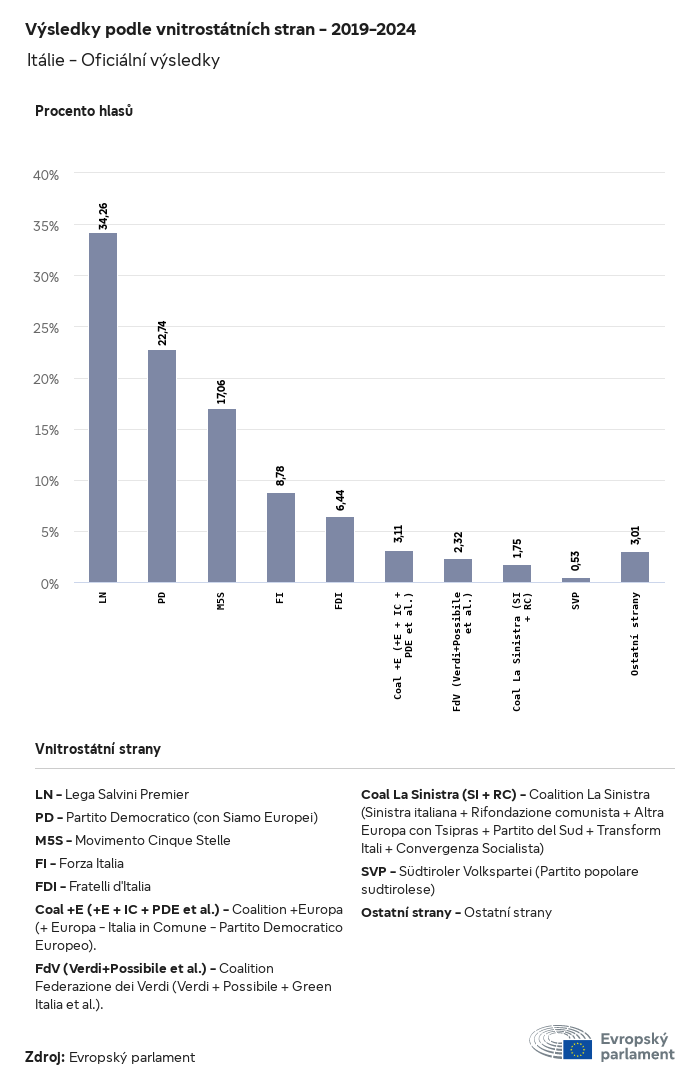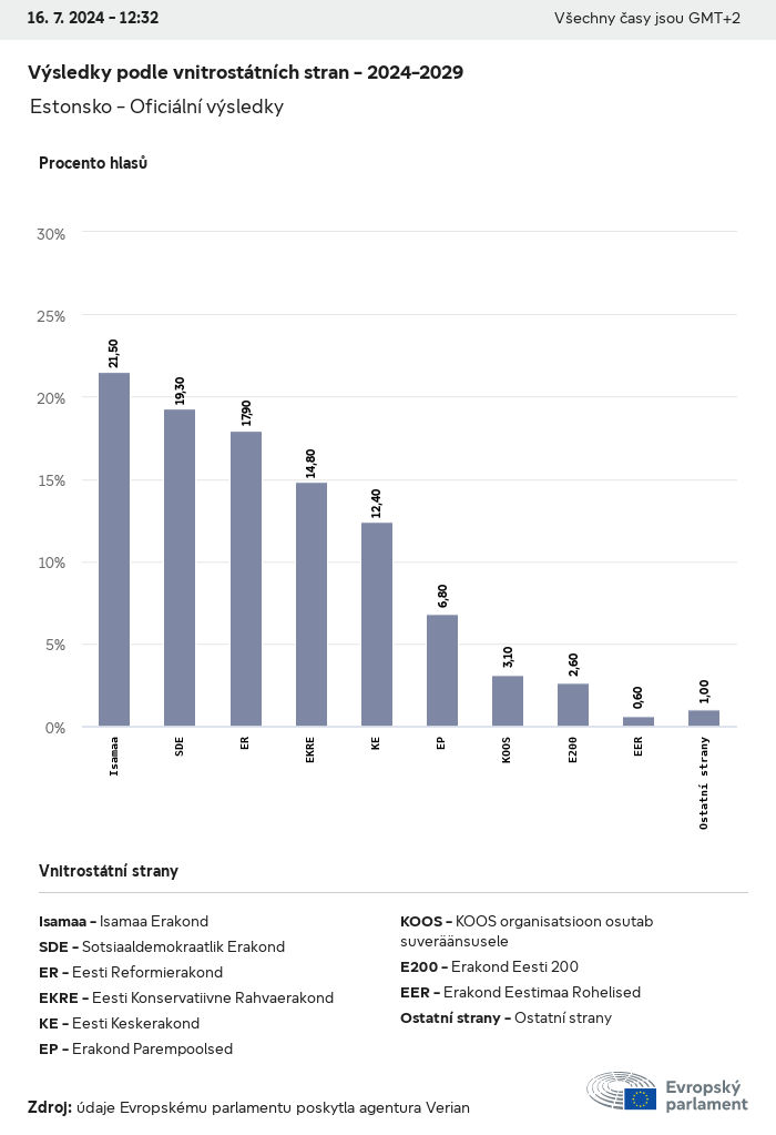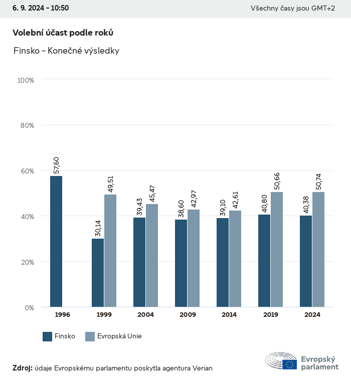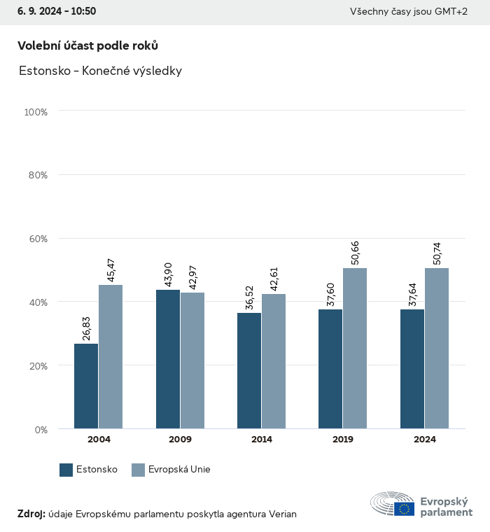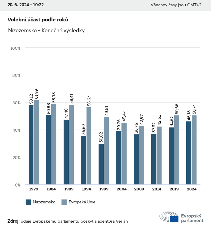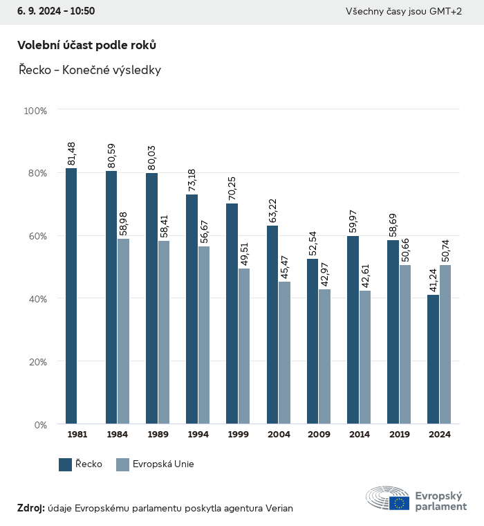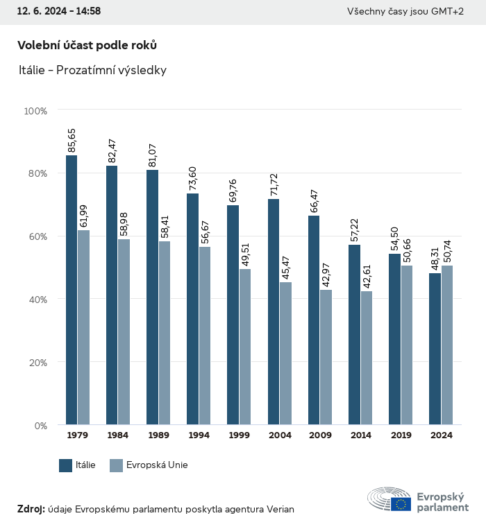 Volební údaje ze všech evropských voleb od roku 1979 jsou k dispozici níže v různých formátech ke stažení. Upozorňujeme, že soubory, které jsou k dispozici ke stažení, jsou poskytovány spolu s digitálním podpisem. Tyto podpisy lze ověřit s pomocí tohoto certifikátu, který lze následovně ověřit s pomocí následujícího řetězce certifikátů. Údaje o evropských volbách 2024. json Společné Štítky (38 Ko) - Podpis Volební účast (32 Ko) - Podpis Údaje o zastoupení mužů a žen (7 Ko) - Podpis Politické skupiny (40 Ko) - Podpis Vnitrostátní strany (110 Ko) - Podpis Údaje o evropských volbách (1 Ko) - Podpis Výsledky voleb be (7 Ko) - Podpis fbe (4 Ko) - Podpis gbe (2 Ko) - Podpis wbe (3 Ko) - Podpis bg (5 Ko) - Podpis cz (7 Ko) - Podpis dk (5 Ko) - Podpis de (8 Ko) - Podpis ee (4 Ko) - Podpis ie (5 Ko) - Podpis el (5 Ko) - Podpis es (7 Ko) - Podpis fr (8 Ko) - Podpis hr (3 Ko) - Podpis it (6 Ko) - Podpis cy (3 Ko) - Podpis lv (5 Ko) - Podpis lt (5 Ko) - Podpis lu (4 Ko) - Podpis hu (5 Ko) - Podpis mt (2 Ko) - Podpis nl (6 Ko) - Podpis at (3 Ko) - Podpis pl (7 Ko) - Podpis pt (5 Ko) - Podpis ro (5 Ko) - Podpis si (4 Ko) - Podpis sk (5 Ko) - Podpis fi (4 Ko) - Podpis se (4 Ko) - Podpis xml Společné Štítky (63 Ko) - Podpis Volební účast (40 Ko) - Podpis Údaje o zastoupení mužů a žen (10 Ko) - Podpis Politické skupiny (64 Ko) - Podpis Vnitrostátní strany (123 Ko) - Podpis Údaje o evropských volbách (2 Ko) - Podpis Výsledky voleb be (10 Ko) - Podpis fbe (6 Ko) - Podpis gbe (3 Ko) - Podpis wbe (5 Ko) - Podpis bg (7 Ko) - Podpis cz (10 Ko) - Podpis dk (7 Ko) - Podpis de (11 Ko) - Podpis ee (6 Ko) - Podpis ie (7 Ko) - Podpis el (7 Ko) - Podpis es (11 Ko) - Podpis fr (12 Ko) - Podpis hr (5 Ko) - Podpis it (9 Ko) - Podpis cy (5 Ko) - Podpis lv (7 Ko) - Podpis lt (7 Ko) - Podpis lu (6 Ko) - Podpis hu (7 Ko) - Podpis mt (3 Ko) - Podpis nl (9 Ko) - Podpis at (5 Ko) - Podpis pl (10 Ko) - Podpis pt (7 Ko) - Podpis ro (8 Ko) - Podpis si (5 Ko) - Podpis sk (7 Ko) - Podpis fi (6 Ko) - Podpis se (6 Ko) - Podpis csv Volební účast Volební účast EU (1 Ko) - Podpis Volební účast podle zemí (5 Ko) - Podpis Štítky (15 Ko) - Podpis Údaje o zastoupení mužů a žen Zastoupení mužů a žen EU (1 Ko) - Podpis Zastoupení mužů a žen podle zemí (2 Ko) - Podpis Politické skupiny (16 Ko) - Podpis Vnitrostátní strany (27 Ko) - Podpis Výsledky podle vnitrostátních stran be (1 Ko) - Podpis fbe (1 Ko) - Podpis gbe (1 Ko) - Podpis wbe (1 Ko) - Podpis bg (1 Ko) - Podpis cz (1 Ko) - Podpis dk (1 Ko) - Podpis de (1 Ko) - Podpis ee (1 Ko) - Podpis ie (1 Ko) - Podpis el (1 Ko) - Podpis es (1 Ko) - Podpis fr (1 Ko) - Podpis hr (1 Ko) - Podpis it (1 Ko) - Podpis cy (1 Ko) - Podpis lv (1 Ko) - Podpis lt (1 Ko) - Podpis lu (1 Ko) - Podpis hu (1 Ko) - Podpis mt (1 Ko) - Podpis nl (1 Ko) - Podpis at (1 Ko) - Podpis pl (1 Ko) - Podpis pt (1 Ko) - Podpis ro (1 Ko) - Podpis si (1 Ko) - Podpis sk (1 Ko) - Podpis fi (1 Ko) - Podpis se (1 Ko) - Podpis Výsledky podle politických skupin EU (1 Ko) - Podpis be (1 Ko) - Podpis fbe (1 Ko) - Podpis gbe (1 Ko) - Podpis wbe (1 Ko) - Podpis bg (1 Ko) - Podpis cz (1 Ko) - Podpis dk (1 Ko) - Podpis de (1 Ko) - Podpis ee (1 Ko) - Podpis ie (1 Ko) - Podpis el (1 Ko) - Podpis es (1 Ko) - Podpis fr (1 Ko) - Podpis hr (1 Ko) - Podpis it (1 Ko) - Podpis cy (1 Ko) - Podpis lv (1 Ko) - Podpis lt (1 Ko) - Podpis lu (1 Ko) - Podpis hu (1 Ko) - Podpis mt (1 Ko) - Podpis nl (1 Ko) - Podpis at (1 Ko) - Podpis pl (1 Ko) - Podpis pt (1 Ko) - Podpis ro (1 Ko) - Podpis si (1 Ko) - Podpis sk (1 Ko) - Podpis fi (1 Ko) - Podpis se (1 Ko) - Podpis Rozdělení podle vnitrostátních stran a politických skupin be (1 Ko) - Podpis fbe (1 Ko) - Podpis gbe (1 Ko) - Podpis wbe (1 Ko) - Podpis bg (1 Ko) - Podpis cz (1 Ko) - Podpis dk (1 Ko) - Podpis de (1 Ko) - Podpis ee (1 Ko) - Podpis ie (1 Ko) - Podpis el (1 Ko) - Podpis es (1 Ko) - Podpis fr (1 Ko) - Podpis hr (1 Ko) - Podpis it (1 Ko) - Podpis cy (1 Ko) - Podpis lv (1 Ko) - Podpis lt (1 Ko) - Podpis lu (1 Ko) - Podpis hu (1 Ko) - Podpis mt (1 Ko) - Podpis nl (1 Ko) - Podpis at (1 Ko) - Podpis pl (1 Ko) - Podpis pt (1 Ko) - Podpis ro (1 Ko) - Podpis si (1 Ko) - Podpis sk (1 Ko) - Podpis fi (1 Ko) - Podpis se (1 Ko) - Podpis jpg Volební účast Volební účast podle roků (~30 Ko) Volební účast podle zemí (~140 Ko) Zastoupení mužů a žen v Evropském parlamentu Zastoupení mužů a žen v EP podle zemí Mapa (~130 Ko) Pruhový graf (~80 Ko) Zastoupení mužů a žen v EP podle roků (~50 Ko) Výsledky voleb Evropské údaje Polokruh (~110 Ko) Evropský parlament (~250 Ko) Vnitrostátní údaje BE Výsledky podle vnitrostátních stran (~90 Ko) Počet křesel podle politických skupin (~70 Ko) Rozdělení podle vnitrostátních stran a politických skupin (~180 Ko) Zastoupení mužů a žen v EP podle roků (~50 Ko) Volební účast podle roků (~50 Ko) FBE Výsledky podle vnitrostátních stran (~90 Ko) Počet křesel podle politických skupin (~70 Ko) Rozdělení podle vnitrostátních stran a politických skupin (~180 Ko) GBE Výsledky podle vnitrostátních stran (~90 Ko) Počet křesel podle politických skupin (~70 Ko) Rozdělení podle vnitrostátních stran a politických skupin (~180 Ko) WBE Výsledky podle vnitrostátních stran (~90 Ko) Počet křesel podle politických skupin (~70 Ko) Rozdělení podle vnitrostátních stran a politických skupin (~180 Ko) BG Výsledky podle vnitrostátních stran (~90 Ko) Počet křesel podle politických skupin (~70 Ko) Rozdělení podle vnitrostátních stran a politických skupin (~180 Ko) Zastoupení mužů a žen v EP podle roků (~50 Ko) Volební účast podle roků (~50 Ko) CZ Výsledky podle vnitrostátních stran (~90 Ko) Počet křesel podle politických skupin (~70 Ko) Rozdělení podle vnitrostátních stran a politických skupin (~180 Ko) Zastoupení mužů a žen v EP podle roků (~50 Ko) Volební účast podle roků (