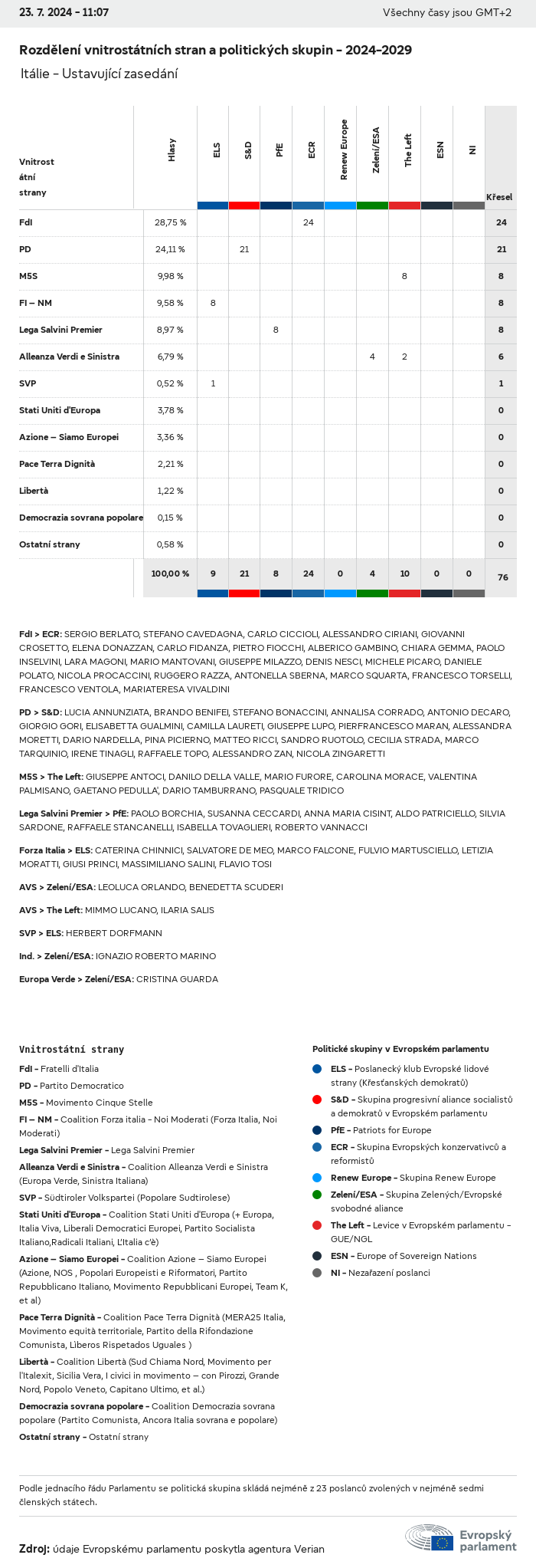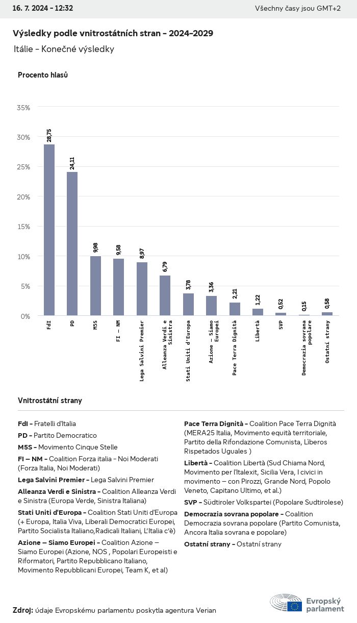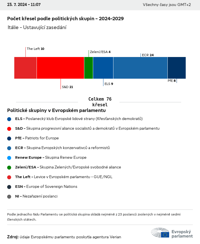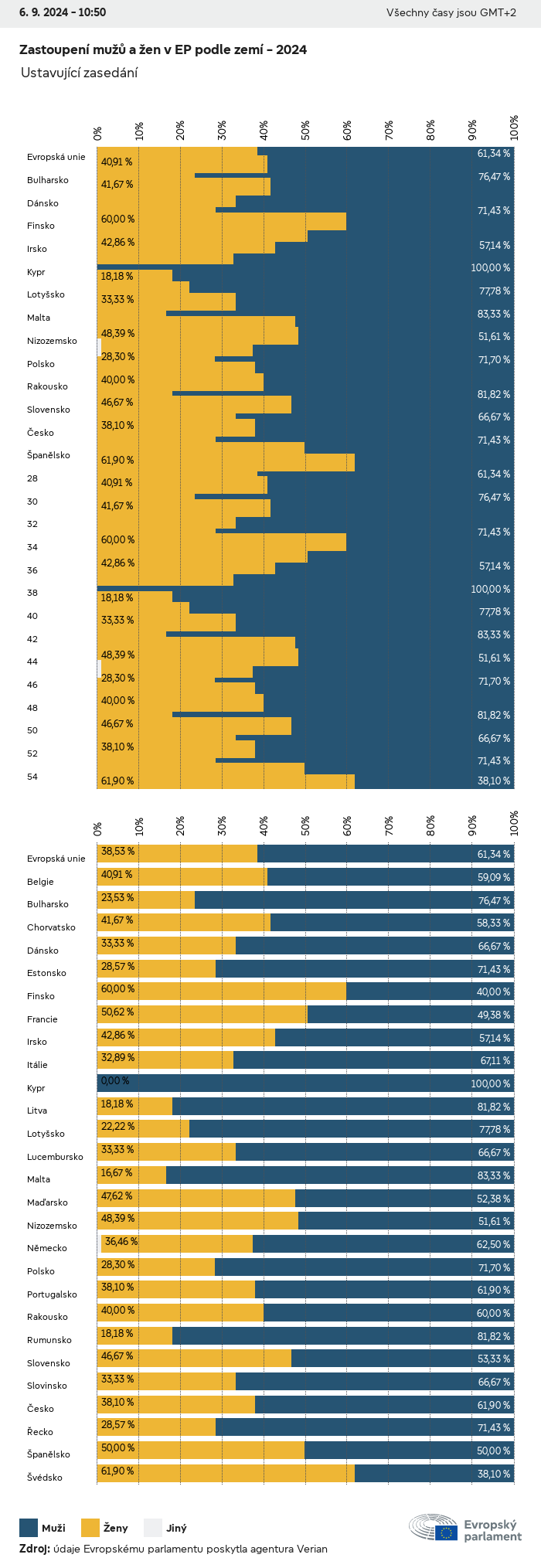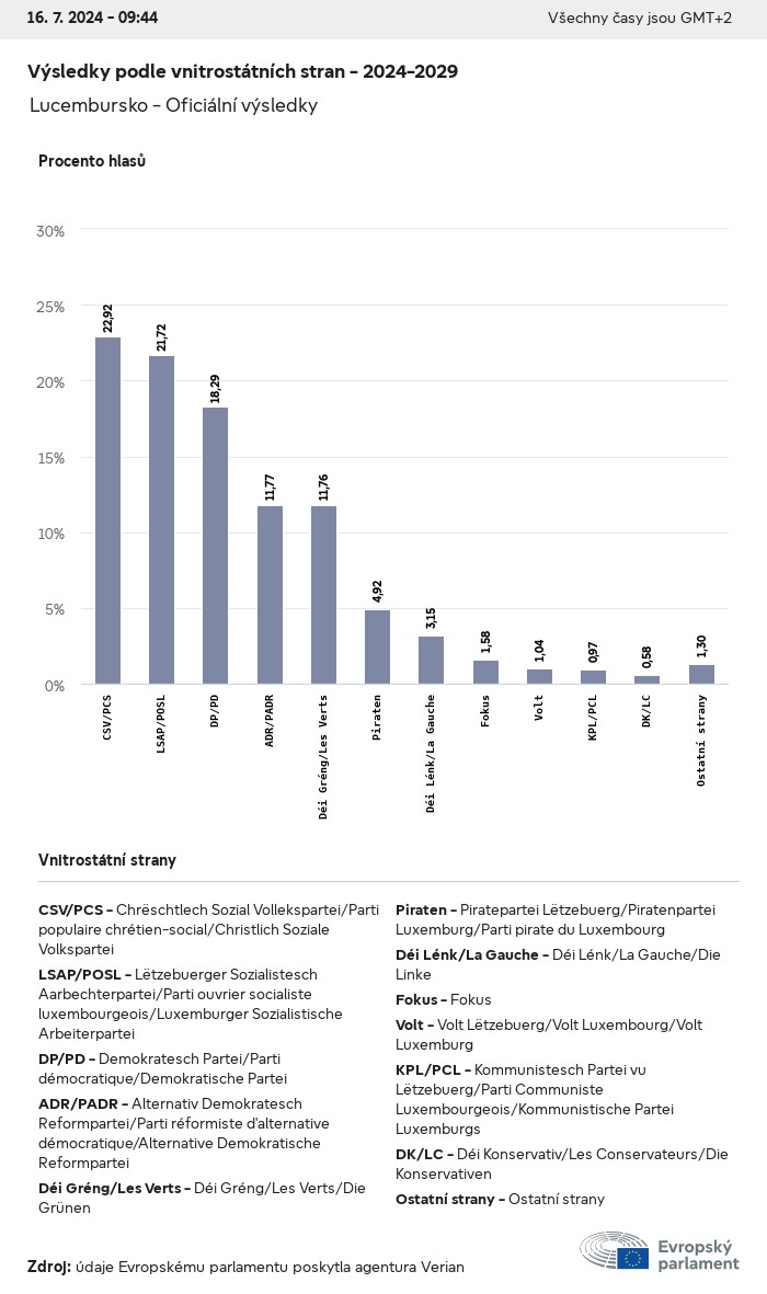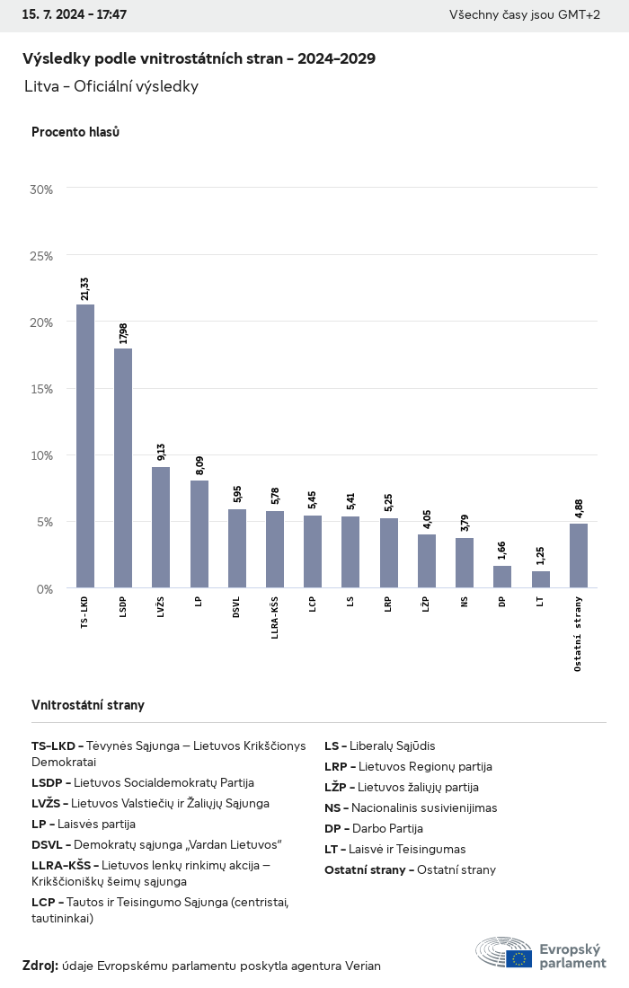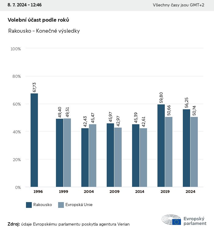Volební údaje ze všech evropských voleb od roku 1979 jsou k dispozici níže v různých formátech ke stažení. Upozorňujeme, že soubory, které jsou k dispozici ke stažení, jsou poskytovány spolu s digitálním podpisem. Tyto podpisy lze ověřit s pomocí tohoto certifikátu, který lze následovně ověřit s pomocí následujícího řetězce certifikátů. Údaje o evropských volbách 2024. json Společné Štítky (38 Ko) - Podpis Volební účast (32 Ko) - Podpis Údaje o zastoupení mužů a žen (7 Ko) - Podpis Politické skupiny (40 Ko) - Podpis Vnitrostátní strany (110 Ko) - Podpis Údaje o evropských volbách (1 Ko) - Podpis Výsledky voleb be (7 Ko) - Podpis fbe (4 Ko) - Podpis gbe (2 Ko) - Podpis wbe (3 Ko) - Podpis bg (5 Ko) - Podpis cz (7 Ko) - Podpis dk (5 Ko) - Podpis de (8 Ko) - Podpis ee (4 Ko) - Podpis ie (5 Ko) - Podpis el (5 Ko) - Podpis es (7 Ko) - Podpis fr (8 Ko) - Podpis hr (3 Ko) - Podpis it (6 Ko) - Podpis cy (3 Ko) - Podpis lv (5 Ko) - Podpis lt (5 Ko) - Podpis lu (4 Ko) - Podpis hu (5 Ko) - Podpis mt (2 Ko) - Podpis nl (6 Ko) - Podpis at (3 Ko) - Podpis pl (7 Ko) - Podpis pt (5 Ko) - Podpis ro (5 Ko) - Podpis si (4 Ko) - Podpis sk (5 Ko) - Podpis fi (4 Ko) - Podpis se (4 Ko) - Podpis xml Společné Štítky (63 Ko) - Podpis Volební účast (40 Ko) - Podpis Údaje o zastoupení mužů a žen (10 Ko) - Podpis Politické skupiny (64 Ko) - Podpis Vnitrostátní strany (123 Ko) - Podpis Údaje o evropských volbách (2 Ko) - Podpis Výsledky voleb be (10 Ko) - Podpis fbe (6 Ko) - Podpis gbe (3 Ko) - Podpis wbe (5 Ko) - Podpis bg (7 Ko) - Podpis cz (10 Ko) - Podpis dk (7 Ko) - Podpis de (11 Ko) - Podpis ee (6 Ko) - Podpis ie (7 Ko) - Podpis el (7 Ko) - Podpis es (11 Ko) - Podpis fr (12 Ko) - Podpis hr (5 Ko) - Podpis it (9 Ko) - Podpis cy (5 Ko) - Podpis lv (7 Ko) - Podpis lt (7 Ko) - Podpis lu (6 Ko) - Podpis hu (7 Ko) - Podpis mt (3 Ko) - Podpis nl (9 Ko) - Podpis at (5 Ko) - Podpis pl (10 Ko) - Podpis pt (7 Ko) - Podpis ro (8 Ko) - Podpis si (5 Ko) - Podpis sk (7 Ko) - Podpis fi (6 Ko) - Podpis se (6 Ko) - Podpis csv Volební účast Volební účast EU (1 Ko) - Podpis Volební účast podle zemí (5 Ko) - Podpis Štítky (15 Ko) - Podpis Údaje o zastoupení mužů a žen Zastoupení mužů a žen EU (1 Ko) - Podpis Zastoupení mužů a žen podle zemí (2 Ko) - Podpis Politické skupiny (16 Ko) - Podpis Vnitrostátní strany (27 Ko) - Podpis Výsledky podle vnitrostátních stran be (1 Ko) - Podpis fbe (1 Ko) - Podpis gbe (1 Ko) - Podpis wbe (1 Ko) - Podpis bg (1 Ko) - Podpis cz (1 Ko) - Podpis dk (1 Ko) - Podpis de (1 Ko) - Podpis ee (1 Ko) - Podpis ie (1 Ko) - Podpis el (1 Ko) - Podpis es (1 Ko) - Podpis fr (1 Ko) - Podpis hr (1 Ko) - Podpis it (1 Ko) - Podpis cy (1 Ko) - Podpis lv (1 Ko) - Podpis lt (1 Ko) - Podpis lu (1 Ko) - Podpis hu (1 Ko) - Podpis mt (1 Ko) - Podpis nl (1 Ko) - Podpis at (1 Ko) - Podpis pl (1 Ko) - Podpis pt (1 Ko) - Podpis ro (1 Ko) - Podpis si (1 Ko) - Podpis sk (1 Ko) - Podpis fi (1 Ko) - Podpis se (1 Ko) - Podpis Výsledky podle politických skupin EU (1 Ko) - Podpis be (1 Ko) - Podpis fbe (1 Ko) - Podpis gbe (1 Ko) - Podpis wbe (1 Ko) - Podpis bg (1 Ko) - Podpis cz (1 Ko) - Podpis dk (1 Ko) - Podpis de (1 Ko) - Podpis ee (1 Ko) - Podpis ie (1 Ko) - Podpis el (1 Ko) - Podpis es (1 Ko) - Podpis fr (1 Ko) - Podpis hr (1 Ko) - Podpis it (1 Ko) - Podpis cy (1 Ko) - Podpis lv (1 Ko) - Podpis lt (1 Ko) - Podpis lu (1 Ko) - Podpis hu (1 Ko) - Podpis mt (1 Ko) - Podpis nl (1 Ko) - Podpis at (1 Ko) - Podpis pl (1 Ko) - Podpis pt (1 Ko) - Podpis ro (1 Ko) - Podpis si (1 Ko) - Podpis sk (1 Ko) - Podpis fi (1 Ko) - Podpis se (1 Ko) - Podpis Rozdělení podle vnitrostátních stran a politických skupin be (1 Ko) - Podpis fbe (1 Ko) - Podpis gbe (1 Ko) - Podpis wbe (1 Ko) - Podpis bg (1 Ko) - Podpis cz (1 Ko) - Podpis dk (1 Ko) - Podpis de (1 Ko) - Podpis ee (1 Ko) - Podpis ie (1 Ko) - Podpis el (1 Ko) - Podpis es (1 Ko) - Podpis fr (1 Ko) - Podpis hr (1 Ko) - Podpis it (1 Ko) - Podpis cy (1 Ko) - Podpis lv (1 Ko) - Podpis lt (1 Ko) - Podpis lu (1 Ko) - Podpis hu (1 Ko) - Podpis mt (1 Ko) - Podpis nl (1 Ko) - Podpis at (1 Ko) - Podpis pl (1 Ko) - Podpis pt (1 Ko) - Podpis ro (1 Ko) - Podpis si (1 Ko) - Podpis sk (1 Ko) - Podpis fi (1 Ko) - Podpis se (1 Ko) - Podpis jpg Volební účast Volební účast podle roků (~30 Ko) Volební účast podle zemí (~140 Ko) Zastoupení mužů a žen v Evropském parlamentu Zastoupení mužů a žen v EP podle zemí Mapa (~130 Ko) Pruhový graf (~80 Ko) Zastoupení mužů a žen v EP podle roků (~50 Ko) Výsledky voleb Evropské údaje Polokruh (~110 Ko) Evropský parlament (~250 Ko) Vnitrostátní údaje BE Výsledky podle vnitrostátních stran (~90 Ko) Počet křesel podle politických skupin (~70 Ko) Rozdělení podle vnitrostátních stran a politických skupin (~180 Ko) Zastoupení mužů a žen v EP podle roků (~50 Ko) Volební účast podle roků (~50 Ko) FBE Výsledky podle vnitrostátních stran (~90 Ko) Počet křesel podle politických skupin (~70 Ko) Rozdělení podle vnitrostátních stran a politických skupin (~180 Ko) GBE Výsledky podle vnitrostátních stran (~90 Ko) Počet křesel podle politických skupin (~70 Ko) Rozdělení podle vnitrostátních stran a politických skupin (~180 Ko) WBE Výsledky podle vnitrostátních stran (~90 Ko) Počet křesel podle politických skupin (~70 Ko) Rozdělení podle vnitrostátních stran a politických skupin (~180 Ko) BG Výsledky podle vnitrostátních stran (~90 Ko) Počet křesel podle politických skupin (~70 Ko) Rozdělení podle vnitrostátních stran a politických skupin (~180 Ko) Zastoupení mužů a žen v EP podle roků (~50 Ko) Volební účast podle roků (~50 Ko) CZ Výsledky podle vnitrostátních stran (~90 Ko) Počet křesel podle politických skupin (~70 Ko) Rozdělení podle vnitrostátních stran a politických skupin (~180 Ko) Zastoupení mužů a žen v EP podle roků (~50 Ko) Volební účast podle roků (