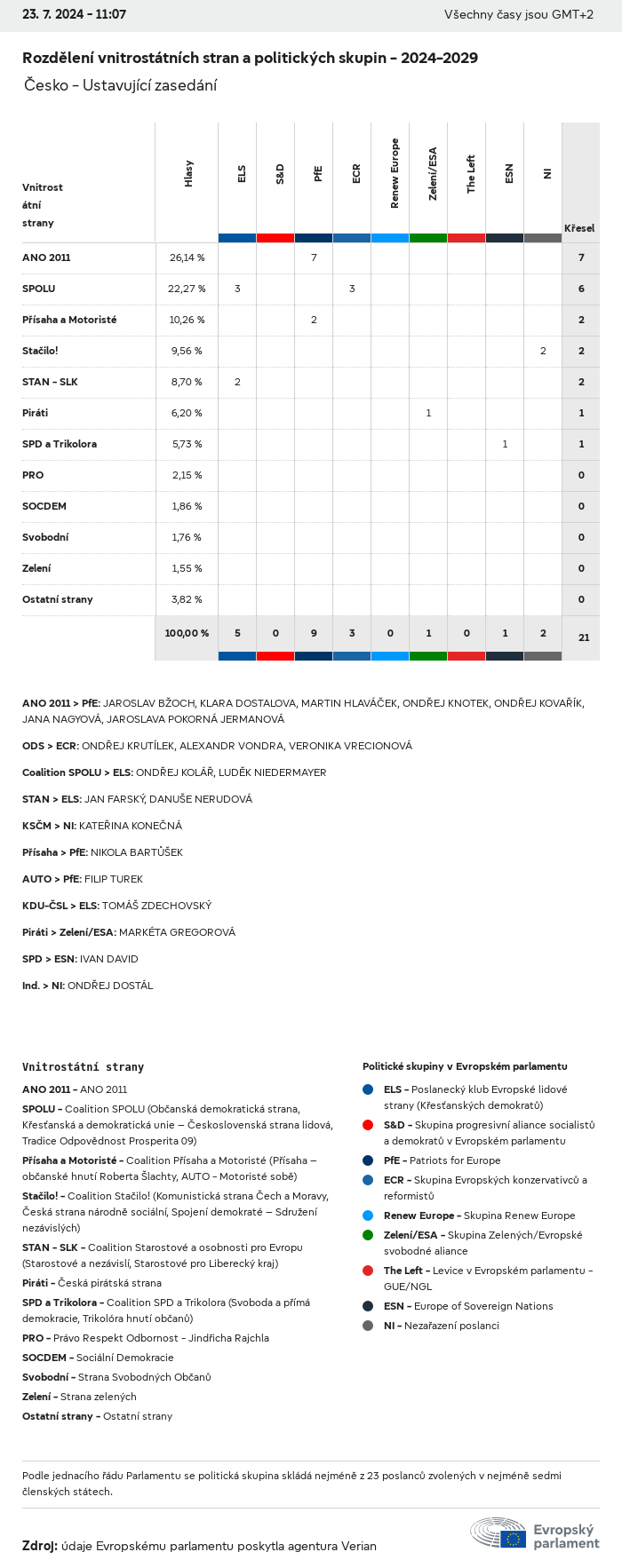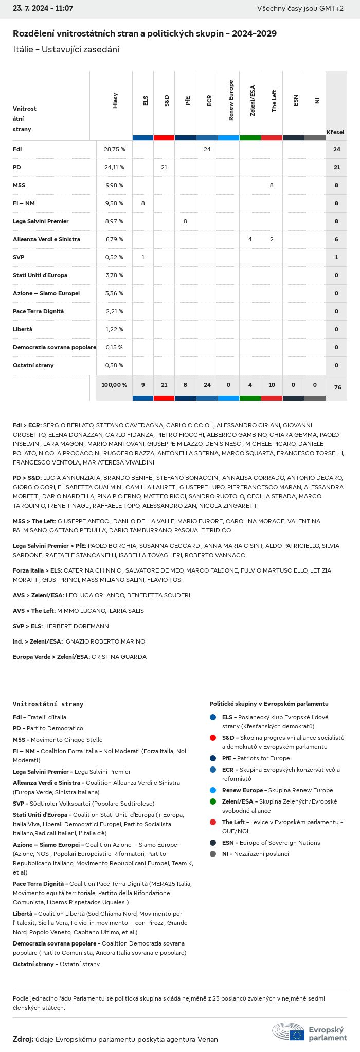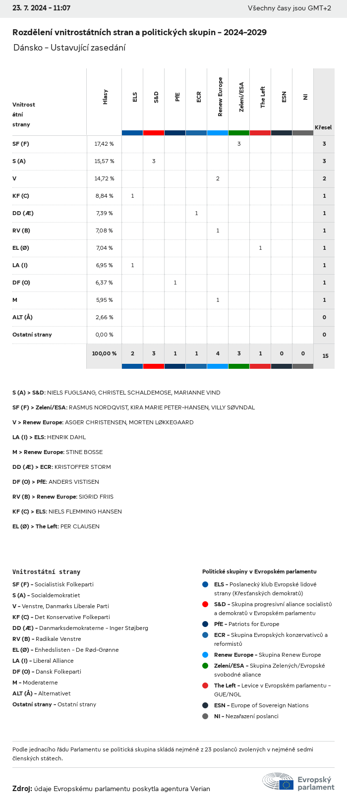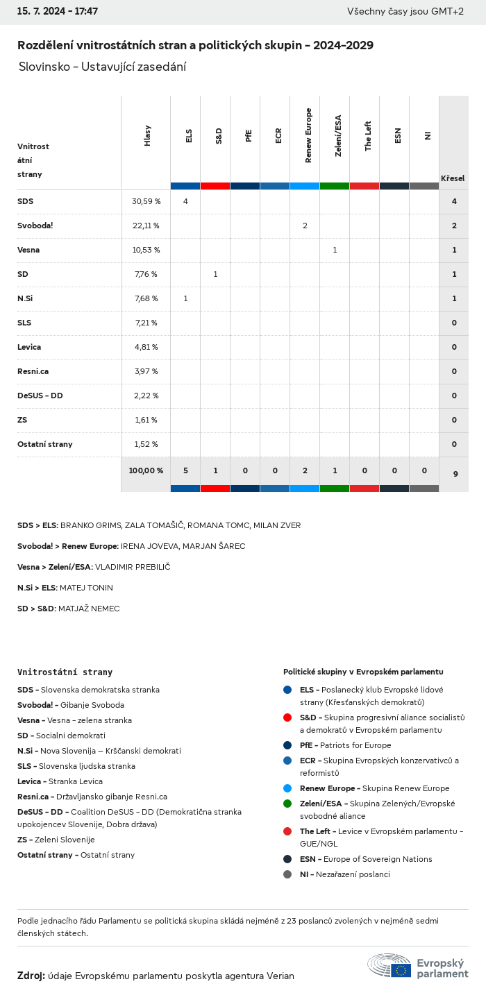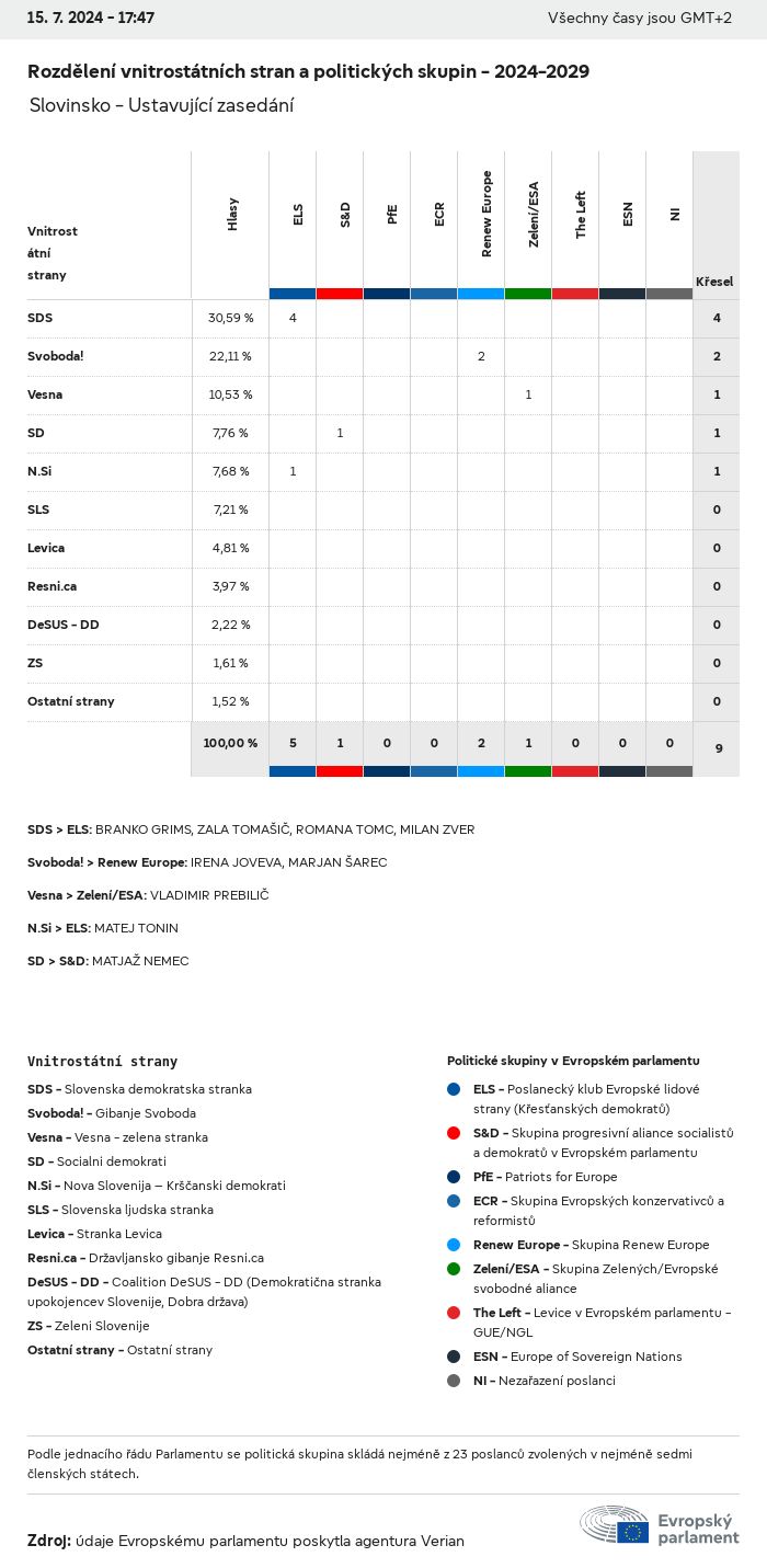 Volební údaje ze všech evropských voleb od roku 1979 jsou k dispozici níže v různých formátech ke stažení. Upozorňujeme, že soubory, které jsou k dispozici ke stažení, jsou poskytovány spolu s digitálním podpisem. Tyto podpisy lze ověřit s pomocí tohoto certifikátu, který lze následovně ověřit s pomocí následujícího řetězce certifikátů. Údaje o evropských volbách 2024. json Společné Štítky (38 Ko) - Podpis Volební účast (32 Ko) - Podpis Údaje o zastoupení mužů a žen (7 Ko) - Podpis Politické skupiny (40 Ko) - Podpis Vnitrostátní strany (110 Ko) - Podpis Údaje o evropských volbách (1 Ko) - Podpis Výsledky voleb be (7 Ko) - Podpis fbe (4 Ko) - Podpis gbe (2 Ko) - Podpis wbe (3 Ko) - Podpis bg (5 Ko) - Podpis cz (7 Ko) - Podpis dk (5 Ko) - Podpis de (8 Ko) - Podpis ee (4 Ko) - Podpis ie (5 Ko) - Podpis el (5 Ko) - Podpis es (7 Ko) - Podpis fr (8 Ko) - Podpis hr (3 Ko) - Podpis it (6 Ko) - Podpis cy (3 Ko) - Podpis lv (5 Ko) - Podpis lt (5 Ko) - Podpis lu (4 Ko) - Podpis hu (5 Ko) - Podpis mt (2 Ko) - Podpis nl (6 Ko) - Podpis at (3 Ko) - Podpis pl (7 Ko) - Podpis pt (5 Ko) - Podpis ro (5 Ko) - Podpis si (4 Ko) - Podpis sk (5 Ko) - Podpis fi (4 Ko) - Podpis se (4 Ko) - Podpis xml Společné Štítky (63 Ko) - Podpis Volební účast (40 Ko) - Podpis Údaje o zastoupení mužů a žen (10 Ko) - Podpis Politické skupiny (64 Ko) - Podpis Vnitrostátní strany (123 Ko) - Podpis Údaje o evropských volbách (2 Ko) - Podpis Výsledky voleb be (10 Ko) - Podpis fbe (6 Ko) - Podpis gbe (3 Ko) - Podpis wbe (5 Ko) - Podpis bg (7 Ko) - Podpis cz (10 Ko) - Podpis dk (7 Ko) - Podpis de (11 Ko) - Podpis ee (6 Ko) - Podpis ie (7 Ko) - Podpis el (7 Ko) - Podpis es (11 Ko) - Podpis fr (12 Ko) - Podpis hr (5 Ko) - Podpis it (9 Ko) - Podpis cy (5 Ko) - Podpis lv (7 Ko) - Podpis lt (7 Ko) - Podpis lu (6 Ko) - Podpis hu (7 Ko) - Podpis mt (3 Ko) - Podpis nl (9 Ko) - Podpis at (5 Ko) - Podpis pl (10 Ko) - Podpis pt (7 Ko) - Podpis ro (8 Ko) - Podpis si (5 Ko) - Podpis sk (7 Ko) - Podpis fi (6 Ko) - Podpis se (6 Ko) - Podpis csv Volební účast Volební účast EU (1 Ko) - Podpis Volební účast podle zemí (5 Ko) - Podpis Štítky (15 Ko) - Podpis Údaje o zastoupení mužů a žen Zastoupení mužů a žen EU (1 Ko) - Podpis Zastoupení mužů a žen podle zemí (2 Ko) - Podpis Politické skupiny (16 Ko) - Podpis Vnitrostátní strany (27 Ko) - Podpis Výsledky podle vnitrostátních stran be (1 Ko) - Podpis fbe (1 Ko) - Podpis gbe (1 Ko) - Podpis wbe (1 Ko) - Podpis bg (1 Ko) - Podpis cz (1 Ko) - Podpis dk (1 Ko) - Podpis de (1 Ko) - Podpis ee (1 Ko) - Podpis ie (1 Ko) - Podpis el (1 Ko) - Podpis es (1 Ko) - Podpis fr (1 Ko) - Podpis hr (1 Ko) - Podpis it (1 Ko) - Podpis cy (1 Ko) - Podpis lv (1 Ko) - Podpis lt (1 Ko) - Podpis lu (1 Ko) - Podpis hu (1 Ko) - Podpis mt (1 Ko) - Podpis nl (1 Ko) - Podpis at (1 Ko) - Podpis pl (1 Ko) - Podpis pt (1 Ko) - Podpis ro (1 Ko) - Podpis si (1 Ko) - Podpis sk (1 Ko) - Podpis fi (1 Ko) - Podpis se (1 Ko) - Podpis Výsledky podle politických skupin EU (1 Ko) - Podpis be (1 Ko) - Podpis fbe (1 Ko) - Podpis gbe (1 Ko) - Podpis wbe (1 Ko) - Podpis bg (1 Ko) - Podpis cz (1 Ko) - Podpis dk (1 Ko) - Podpis de (1 Ko) - Podpis ee (1 Ko) - Podpis ie (1 Ko) - Podpis el (1 Ko) - Podpis es (1 Ko) - Podpis fr (1 Ko) - Podpis hr (1 Ko) - Podpis it (1 Ko) - Podpis cy (1 Ko) - Podpis lv (1 Ko) - Podpis lt (1 Ko) - Podpis lu (1 Ko) - Podpis hu (1 Ko) - Podpis mt (1 Ko) - Podpis nl (1 Ko) - Podpis at (1 Ko) - Podpis pl (1 Ko) - Podpis pt (1 Ko) - Podpis ro (1 Ko) - Podpis si (1 Ko) - Podpis sk (1 Ko) - Podpis fi (1 Ko) - Podpis se (1 Ko) - Podpis Rozdělení podle vnitrostátních stran a politických skupin be (1 Ko) - Podpis fbe (1 Ko) - Podpis gbe (1 Ko) - Podpis wbe (1 Ko) - Podpis bg (1 Ko) - Podpis cz (1 Ko) - Podpis dk (1 Ko) - Podpis de (1 Ko) - Podpis ee (1 Ko) - Podpis ie (1 Ko) - Podpis el (1 Ko) - Podpis es (1 Ko) - Podpis fr (1 Ko) - Podpis hr (1 Ko) - Podpis it (1 Ko) - Podpis cy (1 Ko) - Podpis lv (1 Ko) - Podpis lt (1 Ko) - Podpis lu (1 Ko) - Podpis hu (1 Ko) - Podpis mt (1 Ko) - Podpis nl (1 Ko) - Podpis at (1 Ko) - Podpis pl (1 Ko) - Podpis pt (1 Ko) - Podpis ro (1 Ko) - Podpis si (1 Ko) - Podpis sk (1 Ko) - Podpis fi (1 Ko) - Podpis se (1 Ko) - Podpis jpg Volební účast Volební účast podle roků (~30 Ko) Volební účast podle zemí (~140 Ko) Zastoupení mužů a žen v Evropském parlamentu Zastoupení mužů a žen v EP podle zemí Mapa (~130 Ko) Pruhový graf (~80 Ko) Zastoupení mužů a žen v EP podle roků (~50 Ko) Výsledky voleb Evropské údaje Polokruh (~110 Ko) Evropský parlament (~250 Ko) Vnitrostátní údaje BE Výsledky podle vnitrostátních stran (~90 Ko) Počet křesel podle politických skupin (~70 Ko) Rozdělení podle vnitrostátních stran a politických skupin (~180 Ko) Zastoupení mužů a žen v EP podle roků (~50 Ko) Volební účast podle roků (~50 Ko) FBE Výsledky podle vnitrostátních stran (~90 Ko) Počet křesel podle politických skupin (~70 Ko) Rozdělení podle vnitrostátních stran a politických skupin (~180 Ko) GBE Výsledky podle vnitrostátních stran (~90 Ko) Počet křesel podle politických skupin (~70 Ko) Rozdělení podle vnitrostátních stran a politických skupin (~180 Ko) WBE Výsledky podle vnitrostátních stran (~90 Ko) Počet křesel podle politických skupin (~70 Ko) Rozdělení podle vnitrostátních stran a politických skupin (~180 Ko) BG Výsledky podle vnitrostátních stran (~90 Ko) Počet křesel podle politických skupin (~70 Ko) Rozdělení podle vnitrostátních stran a politických skupin (~180 Ko) Zastoupení mužů a žen v EP podle roků (~50 Ko) Volební účast podle roků (~50 Ko) CZ Výsledky podle vnitrostátních stran (~90 Ko) Počet křesel podle politických skupin (~70 Ko) Rozdělení podle vnitrostátních stran a politických skupin (~180 Ko) Zastoupení mužů a žen v EP podle roků (~50 Ko) Volební účast podle roků (