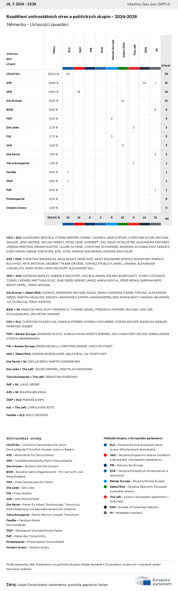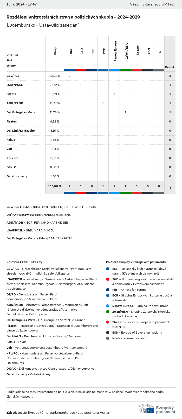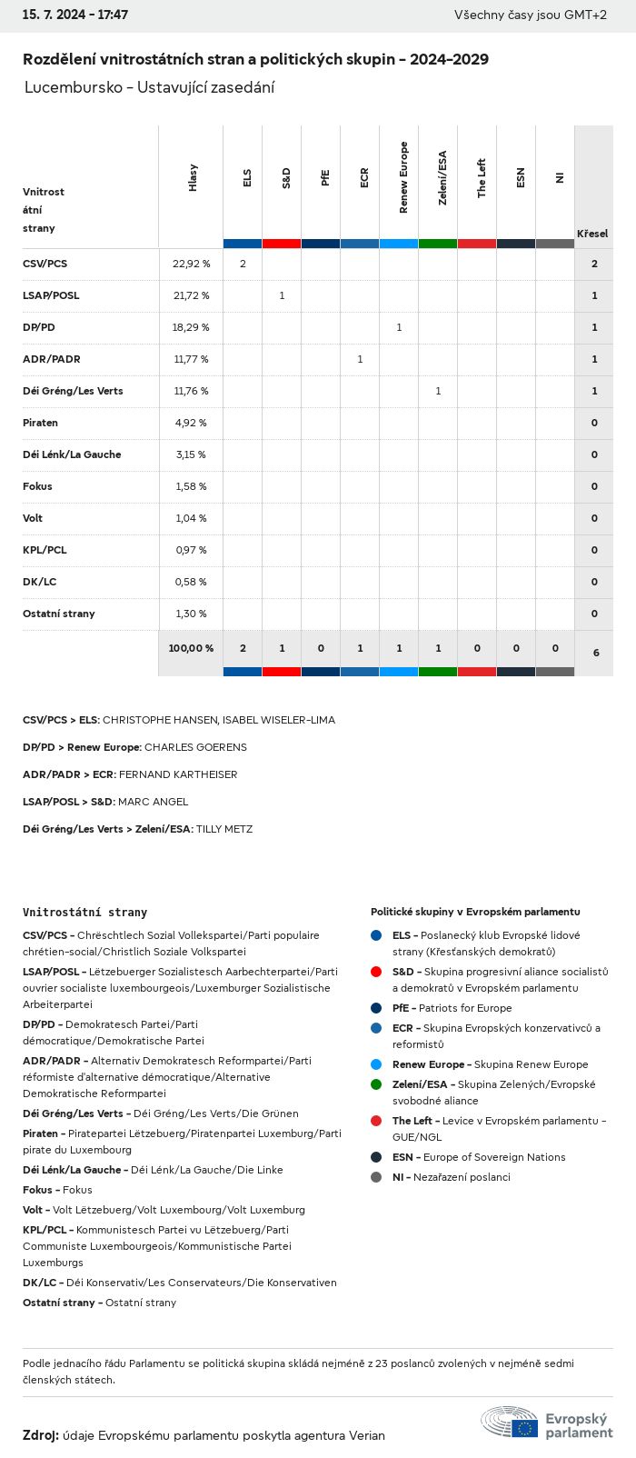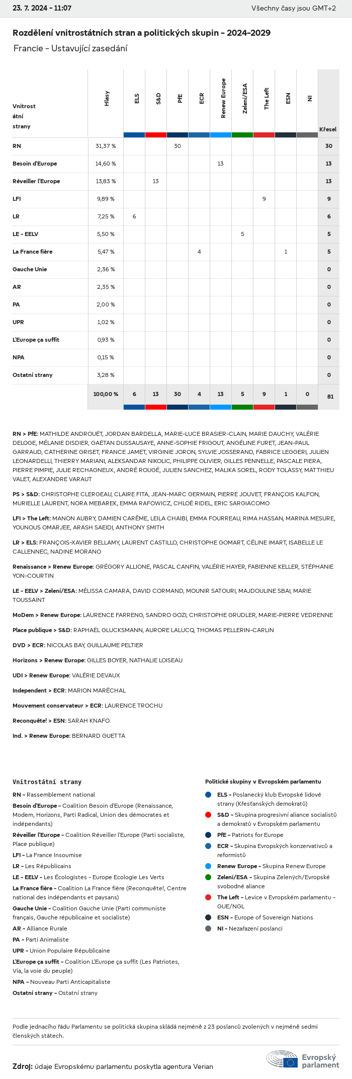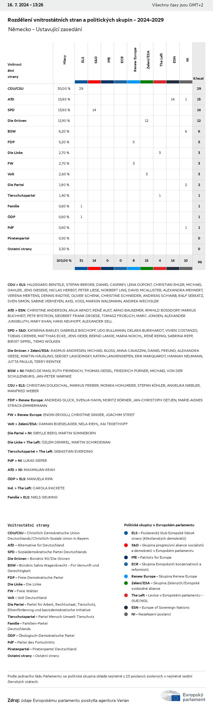 Volební údaje ze všech evropských voleb od roku 1979 jsou k dispozici níže v různých formátech ke stažení. Upozorňujeme, že soubory, které jsou k dispozici ke stažení, jsou poskytovány spolu s digitálním podpisem. Tyto podpisy lze ověřit s pomocí tohoto certifikátu, který lze následovně ověřit s pomocí následujícího řetězce certifikátů. Údaje o evropských volbách 2024. json Společné Štítky (38 Ko) - Podpis Volební účast (32 Ko) - Podpis Údaje o zastoupení mužů a žen (7 Ko) - Podpis Politické skupiny (40 Ko) - Podpis Vnitrostátní strany (110 Ko) - Podpis Údaje o evropských volbách (1 Ko) - Podpis Výsledky voleb be (7 Ko) - Podpis fbe (4 Ko) - Podpis gbe (2 Ko) - Podpis wbe (3 Ko) - Podpis bg (5 Ko) - Podpis cz (7 Ko) - Podpis dk (5 Ko) - Podpis de (8 Ko) - Podpis ee (4 Ko) - Podpis ie (5 Ko) - Podpis el (5 Ko) - Podpis es (7 Ko) - Podpis fr (8 Ko) - Podpis hr (3 Ko) - Podpis it (6 Ko) - Podpis cy (3 Ko) - Podpis lv (5 Ko) - Podpis lt (5 Ko) - Podpis lu (4 Ko) - Podpis hu (5 Ko) - Podpis mt (2 Ko) - Podpis nl (6 Ko) - Podpis at (3 Ko) - Podpis pl (7 Ko) - Podpis pt (5 Ko) - Podpis ro (5 Ko) - Podpis si (4 Ko) - Podpis sk (5 Ko) - Podpis fi (4 Ko) - Podpis se (4 Ko) - Podpis xml Společné Štítky (63 Ko) - Podpis Volební účast (40 Ko) - Podpis Údaje o zastoupení mužů a žen (10 Ko) - Podpis Politické skupiny (64 Ko) - Podpis Vnitrostátní strany (123 Ko) - Podpis Údaje o evropských volbách (2 Ko) - Podpis Výsledky voleb be (10 Ko) - Podpis fbe (6 Ko) - Podpis gbe (3 Ko) - Podpis wbe (5 Ko) - Podpis bg (7 Ko) - Podpis cz (10 Ko) - Podpis dk (7 Ko) - Podpis de (11 Ko) - Podpis ee (6 Ko) - Podpis ie (7 Ko) - Podpis el (7 Ko) - Podpis es (11 Ko) - Podpis fr (12 Ko) - Podpis hr (5 Ko) - Podpis it (9 Ko) - Podpis cy (5 Ko) - Podpis lv (7 Ko) - Podpis lt (7 Ko) - Podpis lu (6 Ko) - Podpis hu (7 Ko) - Podpis mt (3 Ko) - Podpis nl (9 Ko) - Podpis at (5 Ko) - Podpis pl (10 Ko) - Podpis pt (7 Ko) - Podpis ro (8 Ko) - Podpis si (5 Ko) - Podpis sk (7 Ko) - Podpis fi (6 Ko) - Podpis se (6 Ko) - Podpis csv Volební účast Volební účast EU (1 Ko) - Podpis Volební účast podle zemí (5 Ko) - Podpis Štítky (15 Ko) - Podpis Údaje o zastoupení mužů a žen Zastoupení mužů a žen EU (1 Ko) - Podpis Zastoupení mužů a žen podle zemí (2 Ko) - Podpis Politické skupiny (16 Ko) - Podpis Vnitrostátní strany (27 Ko) - Podpis Výsledky podle vnitrostátních stran be (1 Ko) - Podpis fbe (1 Ko) - Podpis gbe (1 Ko) - Podpis wbe (1 Ko) - Podpis bg (1 Ko) - Podpis cz (1 Ko) - Podpis dk (1 Ko) - Podpis de (1 Ko) - Podpis ee (1 Ko) - Podpis ie (1 Ko) - Podpis el (1 Ko) - Podpis es (1 Ko) - Podpis fr (1 Ko) - Podpis hr (1 Ko) - Podpis it (1 Ko) - Podpis cy (1 Ko) - Podpis lv (1 Ko) - Podpis lt (1 Ko) - Podpis lu (1 Ko) - Podpis hu (1 Ko) - Podpis mt (1 Ko) - Podpis nl (1 Ko) - Podpis at (1 Ko) - Podpis pl (1 Ko) - Podpis pt (1 Ko) - Podpis ro (1 Ko) - Podpis si (1 Ko) - Podpis sk (1 Ko) - Podpis fi (1 Ko) - Podpis se (1 Ko) - Podpis Výsledky podle politických skupin EU (1 Ko) - Podpis be (1 Ko) - Podpis fbe (1 Ko) - Podpis gbe (1 Ko) - Podpis wbe (1 Ko) - Podpis bg (1 Ko) - Podpis cz (1 Ko) - Podpis dk (1 Ko) - Podpis de (1 Ko) - Podpis ee (1 Ko) - Podpis ie (1 Ko) - Podpis el (1 Ko) - Podpis es (1 Ko) - Podpis fr (1 Ko) - Podpis hr (1 Ko) - Podpis it (1 Ko) - Podpis cy (1 Ko) - Podpis lv (1 Ko) - Podpis lt (1 Ko) - Podpis lu (1 Ko) - Podpis hu (1 Ko) - Podpis mt (1 Ko) - Podpis nl (1 Ko) - Podpis at (1 Ko) - Podpis pl (1 Ko) - Podpis pt (1 Ko) - Podpis ro (1 Ko) - Podpis si (1 Ko) - Podpis sk (1 Ko) - Podpis fi (1 Ko) - Podpis se (1 Ko) - Podpis Rozdělení podle vnitrostátních stran a politických skupin be (1 Ko) - Podpis fbe (1 Ko) - Podpis gbe (1 Ko) - Podpis wbe (1 Ko) - Podpis bg (1 Ko) - Podpis cz (1 Ko) - Podpis dk (1 Ko) - Podpis de (1 Ko) - Podpis ee (1 Ko) - Podpis ie (1 Ko) - Podpis el (1 Ko) - Podpis es (1 Ko) - Podpis fr (1 Ko) - Podpis hr (1 Ko) - Podpis it (1 Ko) - Podpis cy (1 Ko) - Podpis lv (1 Ko) - Podpis lt (1 Ko) - Podpis lu (1 Ko) - Podpis hu (1 Ko) - Podpis mt (1 Ko) - Podpis nl (1 Ko) - Podpis at (1 Ko) - Podpis pl (1 Ko) - Podpis pt (1 Ko) - Podpis ro (1 Ko) - Podpis si (1 Ko) - Podpis sk (1 Ko) - Podpis fi (1 Ko) - Podpis se (1 Ko) - Podpis jpg Volební účast Volební účast podle roků (~30 Ko) Volební účast podle zemí (~140 Ko) Zastoupení mužů a žen v Evropském parlamentu Zastoupení mužů a žen v EP podle zemí Mapa (~130 Ko) Pruhový graf (~80 Ko) Zastoupení mužů a žen v EP podle roků (~50 Ko) Výsledky voleb Evropské údaje Polokruh (~110 Ko) Evropský parlament (~250 Ko) Vnitrostátní údaje BE Výsledky podle vnitrostátních stran (~90 Ko) Počet křesel podle politických skupin (~70 Ko) Rozdělení podle vnitrostátních stran a politických skupin (~180 Ko) Zastoupení mužů a žen v EP podle roků (~50 Ko) Volební účast podle roků (~50 Ko) FBE Výsledky podle vnitrostátních stran (~90 Ko) Počet křesel podle politických skupin (~70 Ko) Rozdělení podle vnitrostátních stran a politických skupin (~180 Ko) GBE Výsledky podle vnitrostátních stran (~90 Ko) Počet křesel podle politických skupin (~70 Ko) Rozdělení podle vnitrostátních stran a politických skupin (~180 Ko) WBE Výsledky podle vnitrostátních stran (~90 Ko) Počet křesel podle politických skupin (~70 Ko) Rozdělení podle vnitrostátních stran a politických skupin (~180 Ko) BG Výsledky podle vnitrostátních stran (~90 Ko) Počet křesel podle politických skupin (~70 Ko) Rozdělení podle vnitrostátních stran a politických skupin (~180 Ko) Zastoupení mužů a žen v EP podle roků (~50 Ko) Volební účast podle roků (~50 Ko) CZ Výsledky podle vnitrostátních stran (~90 Ko) Počet křesel podle politických skupin (~70 Ko) Rozdělení podle vnitrostátních stran a politických skupin (~180 Ko) Zastoupení mužů a žen v EP podle roků (~50 Ko) Volební účast podle roků (