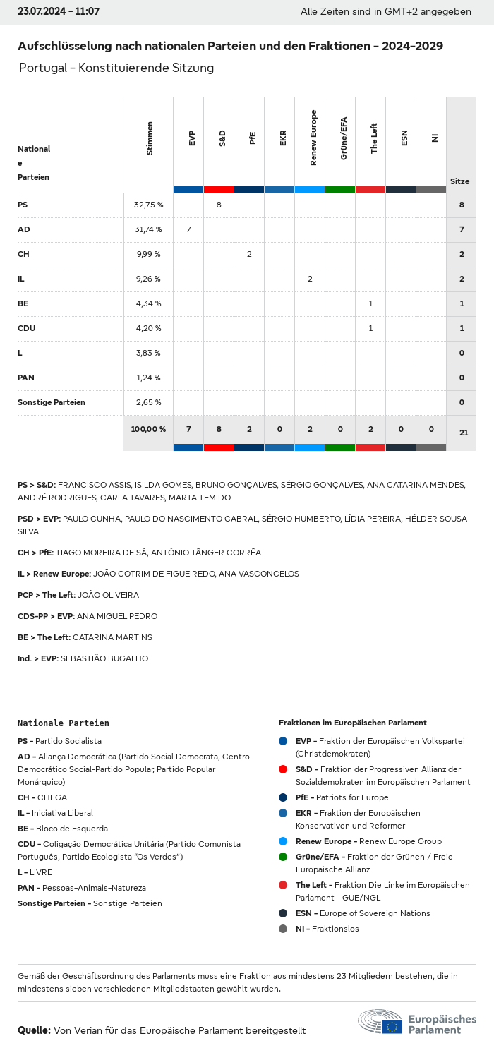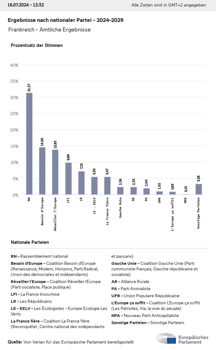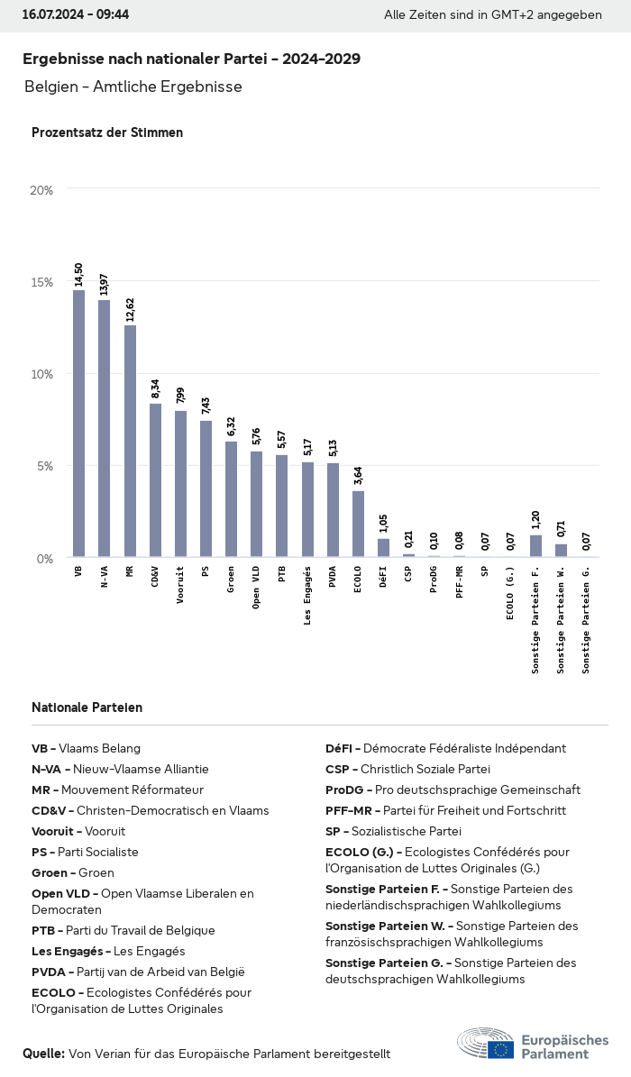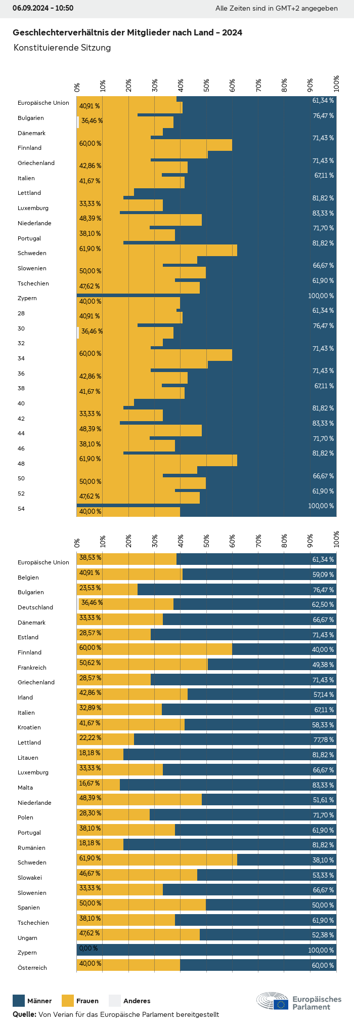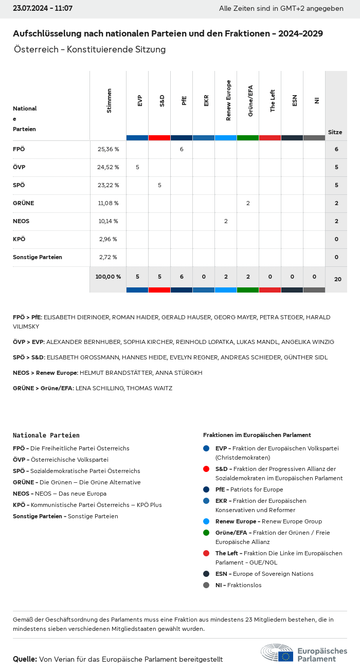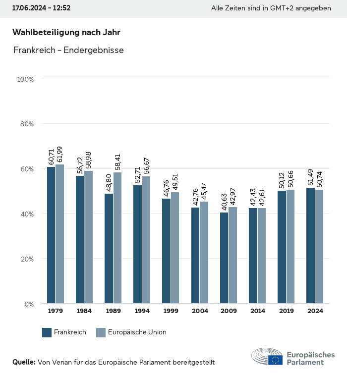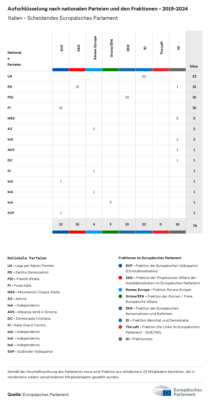 Wahldaten zu jeder Europawahl seit 1979 sind hier in verschiedenen Formaten zum Herunterladen verfügbar. Hinweis: Die zum Herunterladen bereitgestellten Dateien sind mit einer digitalen Signatur versehen. Diese Signaturen können anhand dieses Zertifikats validiert werden, das seinerseits anhand der folgenden Zertifikatskette validiert werden kann. Daten zur Europawahl 2024 json Allgemein Labels (38 Ko) - Signatur Wahlbeteiligung (32 Ko) - Signatur Daten zum Geschlechterverhältnis (7 Ko) - Signatur Fraktionen (40 Ko) - Signatur Nationale Parteien (110 Ko) - Signatur Daten zur Europawahl (1 Ko) - Signatur Wahlergebnisse be (7 Ko) - Signatur fbe (4 Ko) - Signatur gbe (2 Ko) - Signatur wbe (3 Ko) - Signatur bg (5 Ko) - Signatur cz (7 Ko) - Signatur dk (5 Ko) - Signatur de (8 Ko) - Signatur ee (4 Ko) - Signatur ie (5 Ko) - Signatur el (5 Ko) - Signatur es (7 Ko) - Signatur fr (8 Ko) - Signatur hr (3 Ko) - Signatur it (6 Ko) - Signatur cy (3 Ko) - Signatur lv (5 Ko) - Signatur lt (5 Ko) - Signatur lu (4 Ko) - Signatur hu (5 Ko) - Signatur mt (2 Ko) - Signatur nl (6 Ko) - Signatur at (3 Ko) - Signatur pl (7 Ko) - Signatur pt (5 Ko) - Signatur ro (5 Ko) - Signatur si (4 Ko) - Signatur sk (5 Ko) - Signatur fi (4 Ko) - Signatur se (4 Ko) - Signatur xml Allgemein Labels (63 Ko) - Signatur Wahlbeteiligung (40 Ko) - Signatur Daten zum Geschlechterverhältnis (10 Ko) - Signatur Fraktionen (64 Ko) - Signatur Nationale Parteien (123 Ko) - Signatur Daten zur Europawahl (2 Ko) - Signatur Wahlergebnisse be (10 Ko) - Signatur fbe (6 Ko) - Signatur gbe (3 Ko) - Signatur wbe (5 Ko) - Signatur bg (7 Ko) - Signatur cz (10 Ko) - Signatur dk (7 Ko) - Signatur de (11 Ko) - Signatur ee (6 Ko) - Signatur ie (7 Ko) - Signatur el (7 Ko) - Signatur es (11 Ko) - Signatur fr (12 Ko) - Signatur hr (5 Ko) - Signatur it (9 Ko) - Signatur cy (5 Ko) - Signatur lv (7 Ko) - Signatur lt (7 Ko) - Signatur lu (6 Ko) - Signatur hu (7 Ko) - Signatur mt (3 Ko) - Signatur nl (9 Ko) - Signatur at (5 Ko) - Signatur pl (10 Ko) - Signatur pt (7 Ko) - Signatur ro (8 Ko) - Signatur si (5 Ko) - Signatur sk (7 Ko) - Signatur fi (6 Ko) - Signatur se (6 Ko) - Signatur csv Wahlbeteiligung Wahlbeteiligung in der Union (1 Ko) - Signatur Wahlbeteiligung nach Land (5 Ko) - Signatur Labels (15 Ko) - Signatur Daten zum Geschlechterverhältnis Geschlechterverhältnis unionsweit (1 Ko) - Signatur Geschlechterverhältnis nach Land (2 Ko) - Signatur Fraktionen (16 Ko) - Signatur Nationale Parteien (27 Ko) - Signatur Ergebnisse nach nationaler Partei be (1 Ko) - Signatur fbe (1 Ko) - Signatur gbe (1 Ko) - Signatur wbe (1 Ko) - Signatur bg (1 Ko) - Signatur cz (1 Ko) - Signatur dk (1 Ko) - Signatur de (1 Ko) - Signatur ee (1 Ko) - Signatur ie (1 Ko) - Signatur el (1 Ko) - Signatur es (1 Ko) - Signatur fr (1 Ko) - Signatur hr (1 Ko) - Signatur it (1 Ko) - Signatur cy (1 Ko) - Signatur lv (1 Ko) - Signatur lt (1 Ko) - Signatur lu (1 Ko) - Signatur hu (1 Ko) - Signatur mt (1 Ko) - Signatur nl (1 Ko) - Signatur at (1 Ko) - Signatur pl (1 Ko) - Signatur pt (1 Ko) - Signatur ro (1 Ko) - Signatur si (1 Ko) - Signatur sk (1 Ko) - Signatur fi (1 Ko) - Signatur se (1 Ko) - Signatur Ergebnisse nach Fraktion EU (1 Ko) - Signatur be (1 Ko) - Signatur fbe (1 Ko) - Signatur gbe (1 Ko) - Signatur wbe (1 Ko) - Signatur bg (1 Ko) - Signatur cz (1 Ko) - Signatur dk (1 Ko) - Signatur de (1 Ko) - Signatur ee (1 Ko) - Signatur ie (1 Ko) - Signatur el (1 Ko) - Signatur es (1 Ko) - Signatur fr (1 Ko) - Signatur hr (1 Ko) - Signatur it (1 Ko) - Signatur cy (1 Ko) - Signatur lv (1 Ko) - Signatur lt (1 Ko) - Signatur lu (1 Ko) - Signatur hu (1 Ko) - Signatur mt (1 Ko) - Signatur nl (1 Ko) - Signatur at (1 Ko) - Signatur pl (1 Ko) - Signatur pt (1 Ko) - Signatur ro (1 Ko) - Signatur si (1 Ko) - Signatur sk (1 Ko) - Signatur fi (1 Ko) - Signatur se (1 Ko) - Signatur Aufschlüsselung nach nationalen Parteien und Fraktionen be (1 Ko) - Signatur fbe (1 Ko) - Signatur gbe (1 Ko) - Signatur wbe (1 Ko) - Signatur bg (1 Ko) - Signatur cz (1 Ko) - Signatur dk (1 Ko) - Signatur de (1 Ko) - Signatur ee (1 Ko) - Signatur ie (1 Ko) - Signatur el (1 Ko) - Signatur es (1 Ko) - Signatur fr (1 Ko) - Signatur hr (1 Ko) - Signatur it (1 Ko) - Signatur cy (1 Ko) - Signatur lv (1 Ko) - Signatur lt (1 Ko) - Signatur lu (1 Ko) - Signatur hu (1 Ko) - Signatur mt (1 Ko) - Signatur nl (1 Ko) - Signatur at (1 Ko) - Signatur pl (1 Ko) - Signatur pt (1 Ko) - Signatur ro (1 Ko) - Signatur si (1 Ko) - Signatur sk (1 Ko) - Signatur fi (1 Ko) - Signatur se (1 Ko) - Signatur jpg Wahlbeteiligung Wahlbeteiligung nach Jahr (~30 Ko) Wahlbeteiligung nach Land (~140 Ko) Geschlechterverhältnis der Mitglieder Geschlechterverhältnis der Mitglieder nach Land Karte (~130 Ko) Balkendiagramm (~80 Ko) Geschlechterverhältnis der Mitglieder nach Jahr (~50 Ko) Wahlergebnisse Unionsweite Daten Sitzverteilung (~110 Ko) Europäisches Parlament (~250 Ko) Nationale Daten BE Ergebnisse nach nationaler Partei (~90 Ko) Sitze nach Fraktion (~70 Ko) Aufschlüsselung nach nationalen Parteien und Fraktionen (~180 Ko) Geschlechterverhältnis der Mitglieder nach Jahr (~50 Ko) Wahlbeteiligung nach Jahr (~50 Ko) FBE Ergebnisse nach nationaler Partei (~90 Ko) Sitze nach Fraktion (~70 Ko) Aufschlüsselung nach nationalen Parteien und Fraktionen (~180 Ko) GBE Ergebnisse nach nationaler Partei (~90 Ko) Sitze nach Fraktion (~70 Ko) Aufschlüsselung nach nationalen Parteien und Fraktionen (~180 Ko) WBE Ergebnisse nach nationaler Partei (~90 Ko) Sitze nach Fraktion (~70 Ko) Aufschlüsselung nach nationalen Parteien und Fraktionen (~180 Ko) BG Ergebnisse nach nationaler Partei (~90 Ko) Sitze nach Fraktion (~70 Ko) Aufschlüsselung nach nationalen Parteien und Fraktionen (~180 Ko) Geschlechterverhältnis der Mitglieder nach Jahr (~50 Ko) Wahlbeteiligung nach Jahr (~50 Ko) CZ Ergebnisse nach nationaler Partei (~90 Ko) Sitze nach Fraktion (~70 Ko) Aufschlüsselung nach nationalen Parteien und Fraktionen (~180 Ko) Geschlechterverhältnis der Mitglieder nac