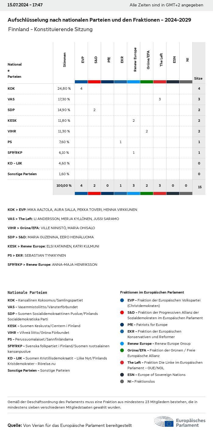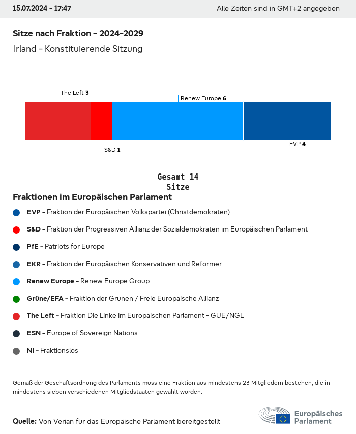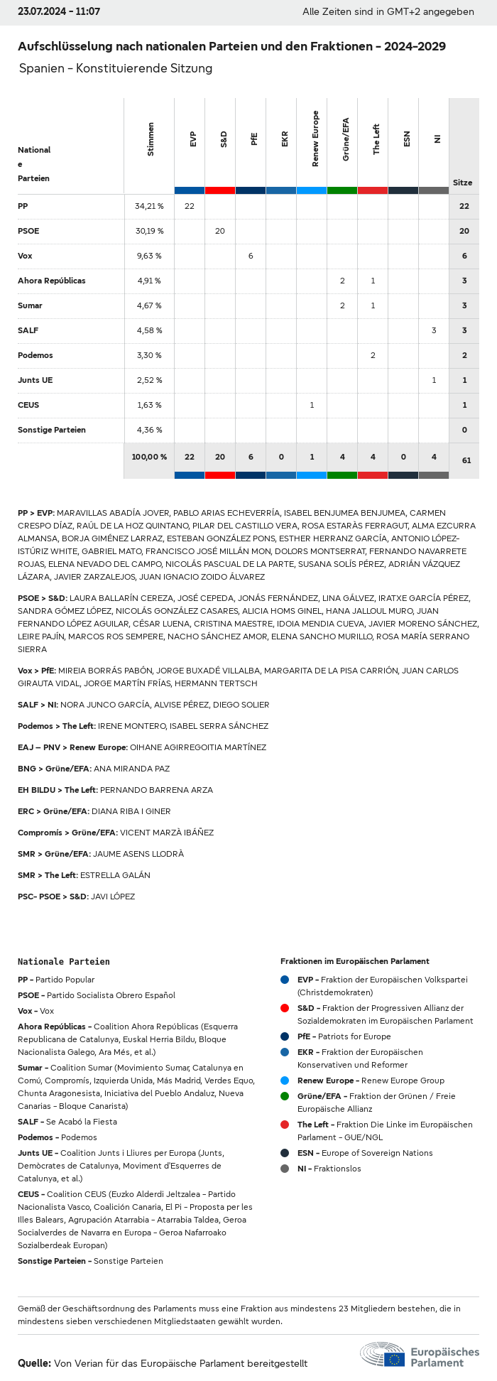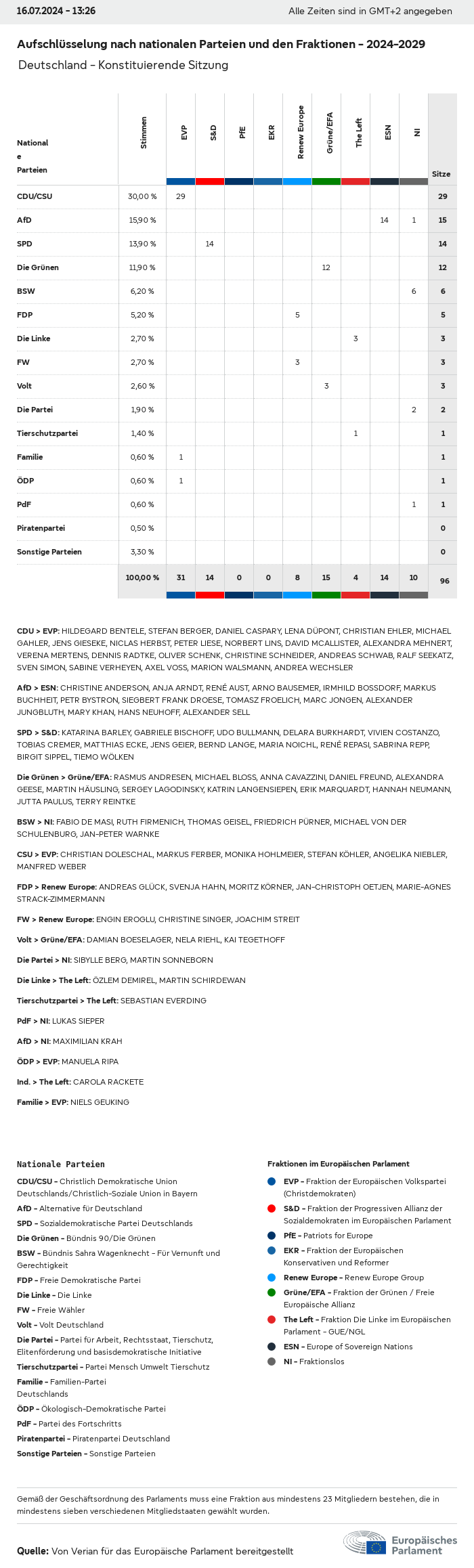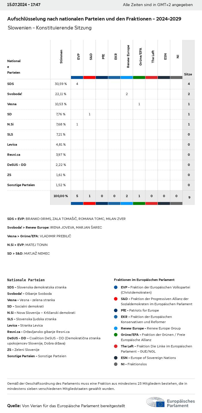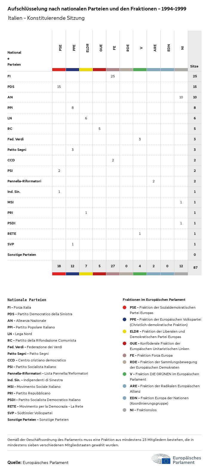 Wahldaten zu jeder Europawahl seit 1979 sind hier in verschiedenen Formaten zum Herunterladen verfügbar. Hinweis: Die zum Herunterladen bereitgestellten Dateien sind mit einer digitalen Signatur versehen. Diese Signaturen können anhand dieses Zertifikats validiert werden, das seinerseits anhand der folgenden Zertifikatskette validiert werden kann. Daten zur Europawahl 2024 json Allgemein Labels (38 Ko) - Signatur Wahlbeteiligung (32 Ko) - Signatur Daten zum Geschlechterverhältnis (7 Ko) - Signatur Fraktionen (40 Ko) - Signatur Nationale Parteien (110 Ko) - Signatur Daten zur Europawahl (1 Ko) - Signatur Wahlergebnisse be (7 Ko) - Signatur fbe (4 Ko) - Signatur gbe (2 Ko) - Signatur wbe (3 Ko) - Signatur bg (5 Ko) - Signatur cz (7 Ko) - Signatur dk (5 Ko) - Signatur de (8 Ko) - Signatur ee (4 Ko) - Signatur ie (5 Ko) - Signatur el (5 Ko) - Signatur es (7 Ko) - Signatur fr (8 Ko) - Signatur hr (3 Ko) - Signatur it (6 Ko) - Signatur cy (3 Ko) - Signatur lv (5 Ko) - Signatur lt (5 Ko) - Signatur lu (4 Ko) - Signatur hu (5 Ko) - Signatur mt (2 Ko) - Signatur nl (6 Ko) - Signatur at (3 Ko) - Signatur pl (7 Ko) - Signatur pt (5 Ko) - Signatur ro (5 Ko) - Signatur si (4 Ko) - Signatur sk (5 Ko) - Signatur fi (4 Ko) - Signatur se (4 Ko) - Signatur xml Allgemein Labels (63 Ko) - Signatur Wahlbeteiligung (40 Ko) - Signatur Daten zum Geschlechterverhältnis (10 Ko) - Signatur Fraktionen (64 Ko) - Signatur Nationale Parteien (123 Ko) - Signatur Daten zur Europawahl (2 Ko) - Signatur Wahlergebnisse be (10 Ko) - Signatur fbe (6 Ko) - Signatur gbe (3 Ko) - Signatur wbe (5 Ko) - Signatur bg (7 Ko) - Signatur cz (10 Ko) - Signatur dk (7 Ko) - Signatur de (11 Ko) - Signatur ee (6 Ko) - Signatur ie (7 Ko) - Signatur el (7 Ko) - Signatur es (11 Ko) - Signatur fr (12 Ko) - Signatur hr (5 Ko) - Signatur it (9 Ko) - Signatur cy (5 Ko) - Signatur lv (7 Ko) - Signatur lt (7 Ko) - Signatur lu (6 Ko) - Signatur hu (7 Ko) - Signatur mt (3 Ko) - Signatur nl (9 Ko) - Signatur at (5 Ko) - Signatur pl (10 Ko) - Signatur pt (7 Ko) - Signatur ro (8 Ko) - Signatur si (5 Ko) - Signatur sk (7 Ko) - Signatur fi (6 Ko) - Signatur se (6 Ko) - Signatur csv Wahlbeteiligung Wahlbeteiligung in der Union (1 Ko) - Signatur Wahlbeteiligung nach Land (5 Ko) - Signatur Labels (15 Ko) - Signatur Daten zum Geschlechterverhältnis Geschlechterverhältnis unionsweit (1 Ko) - Signatur Geschlechterverhältnis nach Land (2 Ko) - Signatur Fraktionen (16 Ko) - Signatur Nationale Parteien (27 Ko) - Signatur Ergebnisse nach nationaler Partei be (1 Ko) - Signatur fbe (1 Ko) - Signatur gbe (1 Ko) - Signatur wbe (1 Ko) - Signatur bg (1 Ko) - Signatur cz (1 Ko) - Signatur dk (1 Ko) - Signatur de (1 Ko) - Signatur ee (1 Ko) - Signatur ie (1 Ko) - Signatur el (1 Ko) - Signatur es (1 Ko) - Signatur fr (1 Ko) - Signatur hr (1 Ko) - Signatur it (1 Ko) - Signatur cy (1 Ko) - Signatur lv (1 Ko) - Signatur lt (1 Ko) - Signatur lu (1 Ko) - Signatur hu (1 Ko) - Signatur mt (1 Ko) - Signatur nl (1 Ko) - Signatur at (1 Ko) - Signatur pl (1 Ko) - Signatur pt (1 Ko) - Signatur ro (1 Ko) - Signatur si (1 Ko) - Signatur sk (1 Ko) - Signatur fi (1 Ko) - Signatur se (1 Ko) - Signatur Ergebnisse nach Fraktion EU (1 Ko) - Signatur be (1 Ko) - Signatur fbe (1 Ko) - Signatur gbe (1 Ko) - Signatur wbe (1 Ko) - Signatur bg (1 Ko) - Signatur cz (1 Ko) - Signatur dk (1 Ko) - Signatur de (1 Ko) - Signatur ee (1 Ko) - Signatur ie (1 Ko) - Signatur el (1 Ko) - Signatur es (1 Ko) - Signatur fr (1 Ko) - Signatur hr (1 Ko) - Signatur it (1 Ko) - Signatur cy (1 Ko) - Signatur lv (1 Ko) - Signatur lt (1 Ko) - Signatur lu (1 Ko) - Signatur hu (1 Ko) - Signatur mt (1 Ko) - Signatur nl (1 Ko) - Signatur at (1 Ko) - Signatur pl (1 Ko) - Signatur pt (1 Ko) - Signatur ro (1 Ko) - Signatur si (1 Ko) - Signatur sk (1 Ko) - Signatur fi (1 Ko) - Signatur se (1 Ko) - Signatur Aufschlüsselung nach nationalen Parteien und Fraktionen be (1 Ko) - Signatur fbe (1 Ko) - Signatur gbe (1 Ko) - Signatur wbe (1 Ko) - Signatur bg (1 Ko) - Signatur cz (1 Ko) - Signatur dk (1 Ko) - Signatur de (1 Ko) - Signatur ee (1 Ko) - Signatur ie (1 Ko) - Signatur el (1 Ko) - Signatur es (1 Ko) - Signatur fr (1 Ko) - Signatur hr (1 Ko) - Signatur it (1 Ko) - Signatur cy (1 Ko) - Signatur lv (1 Ko) - Signatur lt (1 Ko) - Signatur lu (1 Ko) - Signatur hu (1 Ko) - Signatur mt (1 Ko) - Signatur nl (1 Ko) - Signatur at (1 Ko) - Signatur pl (1 Ko) - Signatur pt (1 Ko) - Signatur ro (1 Ko) - Signatur si (1 Ko) - Signatur sk (1 Ko) - Signatur fi (1 Ko) - Signatur se (1 Ko) - Signatur jpg Wahlbeteiligung Wahlbeteiligung nach Jahr (~30 Ko) Wahlbeteiligung nach Land (~140 Ko) Geschlechterverhältnis der Mitglieder Geschlechterverhältnis der Mitglieder nach Land Karte (~130 Ko) Balkendiagramm (~80 Ko) Geschlechterverhältnis der Mitglieder nach Jahr (~50 Ko) Wahlergebnisse Unionsweite Daten Sitzverteilung (~110 Ko) Europäisches Parlament (~250 Ko) Nationale Daten BE Ergebnisse nach nationaler Partei (~90 Ko) Sitze nach Fraktion (~70 Ko) Aufschlüsselung nach nationalen Parteien und Fraktionen (~180 Ko) Geschlechterverhältnis der Mitglieder nach Jahr (~50 Ko) Wahlbeteiligung nach Jahr (~50 Ko) FBE Ergebnisse nach nationaler Partei (~90 Ko) Sitze nach Fraktion (~70 Ko) Aufschlüsselung nach nationalen Parteien und Fraktionen (~180 Ko) GBE Ergebnisse nach nationaler Partei (~90 Ko) Sitze nach Fraktion (~70 Ko) Aufschlüsselung nach nationalen Parteien und Fraktionen (~180 Ko) WBE Ergebnisse nach nationaler Partei (~90 Ko) Sitze nach Fraktion (~70 Ko) Aufschlüsselung nach nationalen Parteien und Fraktionen (~180 Ko) BG Ergebnisse nach nationaler Partei (~90 Ko) Sitze nach Fraktion (~70 Ko) Aufschlüsselung nach nationalen Parteien und Fraktionen (~180 Ko) Geschlechterverhältnis der Mitglieder nach Jahr (~50 Ko) Wahlbeteiligung nach Jahr (~50 Ko) CZ Ergebnisse nach nationaler Partei (~90 Ko) Sitze nach Fraktion (~70 Ko) Aufschlüsselung nach nationalen Parteien und Fraktionen (~180 Ko) Geschlechterverhältnis der Mitglieder nac