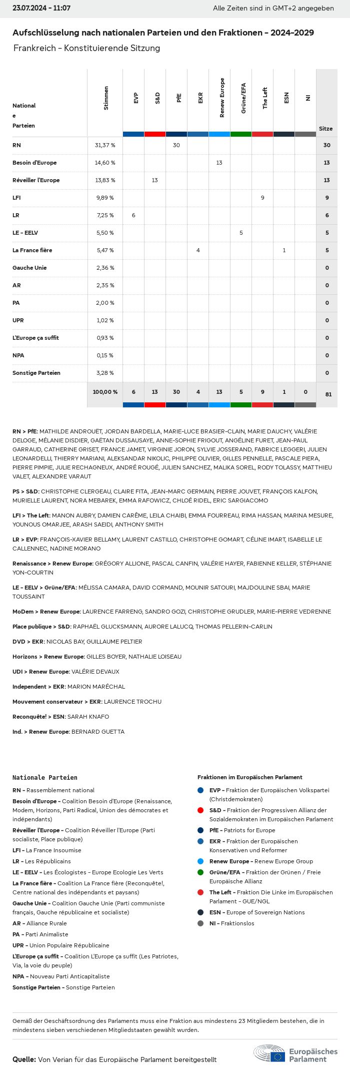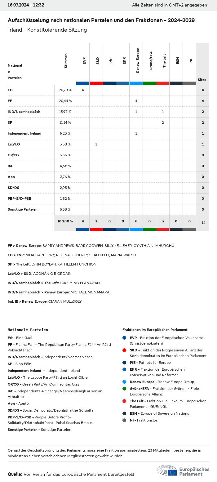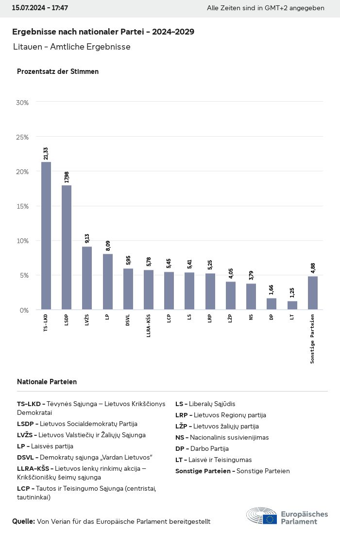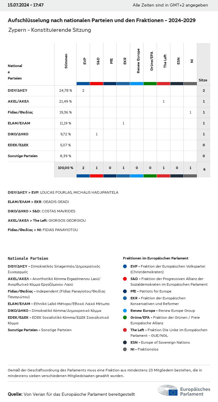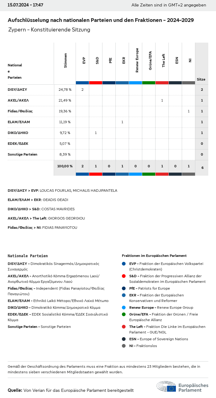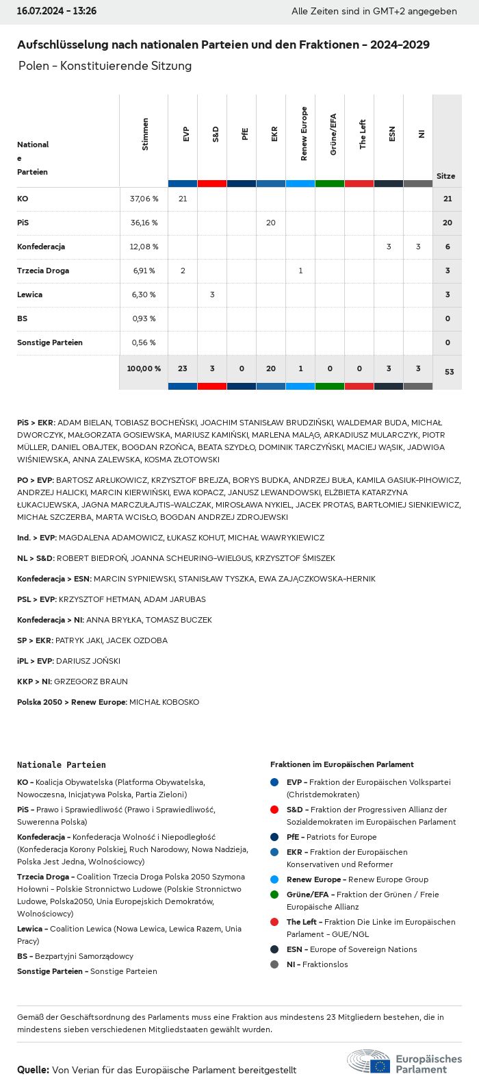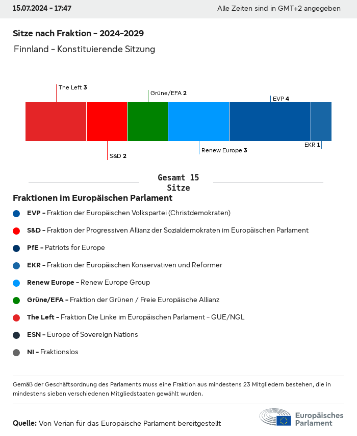 Wahldaten zu jeder Europawahl seit 1979 sind hier in verschiedenen Formaten zum Herunterladen verfügbar. Hinweis: Die zum Herunterladen bereitgestellten Dateien sind mit einer digitalen Signatur versehen. Diese Signaturen können anhand dieses Zertifikats validiert werden, das seinerseits anhand der folgenden Zertifikatskette validiert werden kann. Daten zur Europawahl 2024 json Allgemein Labels (38 Ko) - Signatur Wahlbeteiligung (32 Ko) - Signatur Daten zum Geschlechterverhältnis (7 Ko) - Signatur Fraktionen (40 Ko) - Signatur Nationale Parteien (110 Ko) - Signatur Daten zur Europawahl (1 Ko) - Signatur Wahlergebnisse be (7 Ko) - Signatur fbe (4 Ko) - Signatur gbe (2 Ko) - Signatur wbe (3 Ko) - Signatur bg (5 Ko) - Signatur cz (7 Ko) - Signatur dk (5 Ko) - Signatur de (8 Ko) - Signatur ee (4 Ko) - Signatur ie (5 Ko) - Signatur el (5 Ko) - Signatur es (7 Ko) - Signatur fr (8 Ko) - Signatur hr (3 Ko) - Signatur it (6 Ko) - Signatur cy (3 Ko) - Signatur lv (5 Ko) - Signatur lt (5 Ko) - Signatur lu (4 Ko) - Signatur hu (5 Ko) - Signatur mt (2 Ko) - Signatur nl (6 Ko) - Signatur at (3 Ko) - Signatur pl (7 Ko) - Signatur pt (5 Ko) - Signatur ro (5 Ko) - Signatur si (4 Ko) - Signatur sk (5 Ko) - Signatur fi (4 Ko) - Signatur se (4 Ko) - Signatur xml Allgemein Labels (63 Ko) - Signatur Wahlbeteiligung (40 Ko) - Signatur Daten zum Geschlechterverhältnis (10 Ko) - Signatur Fraktionen (64 Ko) - Signatur Nationale Parteien (123 Ko) - Signatur Daten zur Europawahl (2 Ko) - Signatur Wahlergebnisse be (10 Ko) - Signatur fbe (6 Ko) - Signatur gbe (3 Ko) - Signatur wbe (5 Ko) - Signatur bg (7 Ko) - Signatur cz (10 Ko) - Signatur dk (7 Ko) - Signatur de (11 Ko) - Signatur ee (6 Ko) - Signatur ie (7 Ko) - Signatur el (7 Ko) - Signatur es (11 Ko) - Signatur fr (12 Ko) - Signatur hr (5 Ko) - Signatur it (9 Ko) - Signatur cy (5 Ko) - Signatur lv (7 Ko) - Signatur lt (7 Ko) - Signatur lu (6 Ko) - Signatur hu (7 Ko) - Signatur mt (3 Ko) - Signatur nl (9 Ko) - Signatur at (5 Ko) - Signatur pl (10 Ko) - Signatur pt (7 Ko) - Signatur ro (8 Ko) - Signatur si (5 Ko) - Signatur sk (7 Ko) - Signatur fi (6 Ko) - Signatur se (6 Ko) - Signatur csv Wahlbeteiligung Wahlbeteiligung in der Union (1 Ko) - Signatur Wahlbeteiligung nach Land (5 Ko) - Signatur Labels (15 Ko) - Signatur Daten zum Geschlechterverhältnis Geschlechterverhältnis unionsweit (1 Ko) - Signatur Geschlechterverhältnis nach Land (2 Ko) - Signatur Fraktionen (16 Ko) - Signatur Nationale Parteien (27 Ko) - Signatur Ergebnisse nach nationaler Partei be (1 Ko) - Signatur fbe (1 Ko) - Signatur gbe (1 Ko) - Signatur wbe (1 Ko) - Signatur bg (1 Ko) - Signatur cz (1 Ko) - Signatur dk (1 Ko) - Signatur de (1 Ko) - Signatur ee (1 Ko) - Signatur ie (1 Ko) - Signatur el (1 Ko) - Signatur es (1 Ko) - Signatur fr (1 Ko) - Signatur hr (1 Ko) - Signatur it (1 Ko) - Signatur cy (1 Ko) - Signatur lv (1 Ko) - Signatur lt (1 Ko) - Signatur lu (1 Ko) - Signatur hu (1 Ko) - Signatur mt (1 Ko) - Signatur nl (1 Ko) - Signatur at (1 Ko) - Signatur pl (1 Ko) - Signatur pt (1 Ko) - Signatur ro (1 Ko) - Signatur si (1 Ko) - Signatur sk (1 Ko) - Signatur fi (1 Ko) - Signatur se (1 Ko) - Signatur Ergebnisse nach Fraktion EU (1 Ko) - Signatur be (1 Ko) - Signatur fbe (1 Ko) - Signatur gbe (1 Ko) - Signatur wbe (1 Ko) - Signatur bg (1 Ko) - Signatur cz (1 Ko) - Signatur dk (1 Ko) - Signatur de (1 Ko) - Signatur ee (1 Ko) - Signatur ie (1 Ko) - Signatur el (1 Ko) - Signatur es (1 Ko) - Signatur fr (1 Ko) - Signatur hr (1 Ko) - Signatur it (1 Ko) - Signatur cy (1 Ko) - Signatur lv (1 Ko) - Signatur lt (1 Ko) - Signatur lu (1 Ko) - Signatur hu (1 Ko) - Signatur mt (1 Ko) - Signatur nl (1 Ko) - Signatur at (1 Ko) - Signatur pl (1 Ko) - Signatur pt (1 Ko) - Signatur ro (1 Ko) - Signatur si (1 Ko) - Signatur sk (1 Ko) - Signatur fi (1 Ko) - Signatur se (1 Ko) - Signatur Aufschlüsselung nach nationalen Parteien und Fraktionen be (1 Ko) - Signatur fbe (1 Ko) - Signatur gbe (1 Ko) - Signatur wbe (1 Ko) - Signatur bg (1 Ko) - Signatur cz (1 Ko) - Signatur dk (1 Ko) - Signatur de (1 Ko) - Signatur ee (1 Ko) - Signatur ie (1 Ko) - Signatur el (1 Ko) - Signatur es (1 Ko) - Signatur fr (1 Ko) - Signatur hr (1 Ko) - Signatur it (1 Ko) - Signatur cy (1 Ko) - Signatur lv (1 Ko) - Signatur lt (1 Ko) - Signatur lu (1 Ko) - Signatur hu (1 Ko) - Signatur mt (1 Ko) - Signatur nl (1 Ko) - Signatur at (1 Ko) - Signatur pl (1 Ko) - Signatur pt (1 Ko) - Signatur ro (1 Ko) - Signatur si (1 Ko) - Signatur sk (1 Ko) - Signatur fi (1 Ko) - Signatur se (1 Ko) - Signatur jpg Wahlbeteiligung Wahlbeteiligung nach Jahr (~30 Ko) Wahlbeteiligung nach Land (~140 Ko) Geschlechterverhältnis der Mitglieder Geschlechterverhältnis der Mitglieder nach Land Karte (~130 Ko) Balkendiagramm (~80 Ko) Geschlechterverhältnis der Mitglieder nach Jahr (~50 Ko) Wahlergebnisse Unionsweite Daten Sitzverteilung (~110 Ko) Europäisches Parlament (~250 Ko) Nationale Daten BE Ergebnisse nach nationaler Partei (~90 Ko) Sitze nach Fraktion (~70 Ko) Aufschlüsselung nach nationalen Parteien und Fraktionen (~180 Ko) Geschlechterverhältnis der Mitglieder nach Jahr (~50 Ko) Wahlbeteiligung nach Jahr (~50 Ko) FBE Ergebnisse nach nationaler Partei (~90 Ko) Sitze nach Fraktion (~70 Ko) Aufschlüsselung nach nationalen Parteien und Fraktionen (~180 Ko) GBE Ergebnisse nach nationaler Partei (~90 Ko) Sitze nach Fraktion (~70 Ko) Aufschlüsselung nach nationalen Parteien und Fraktionen (~180 Ko) WBE Ergebnisse nach nationaler Partei (~90 Ko) Sitze nach Fraktion (~70 Ko) Aufschlüsselung nach nationalen Parteien und Fraktionen (~180 Ko) BG Ergebnisse nach nationaler Partei (~90 Ko) Sitze nach Fraktion (~70 Ko) Aufschlüsselung nach nationalen Parteien und Fraktionen (~180 Ko) Geschlechterverhältnis der Mitglieder nach Jahr (~50 Ko) Wahlbeteiligung nach Jahr (~50 Ko) CZ Ergebnisse nach nationaler Partei (~90 Ko) Sitze nach Fraktion (~70 Ko) Aufschlüsselung nach nationalen Parteien und Fraktionen (~180 Ko) Geschlechterverhältnis der Mitglieder nac