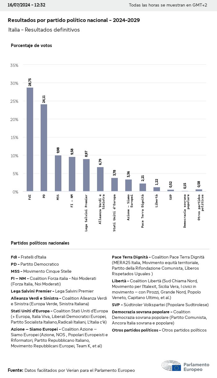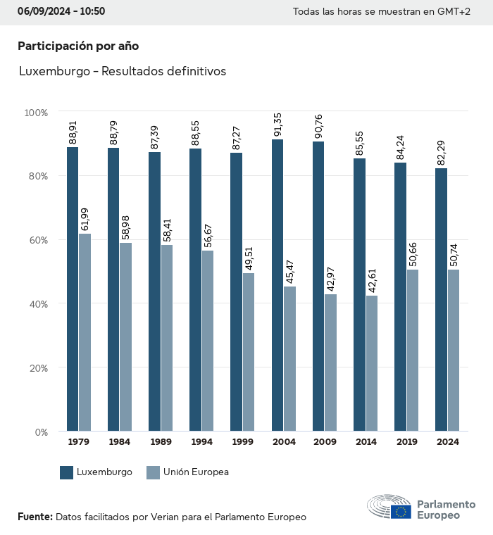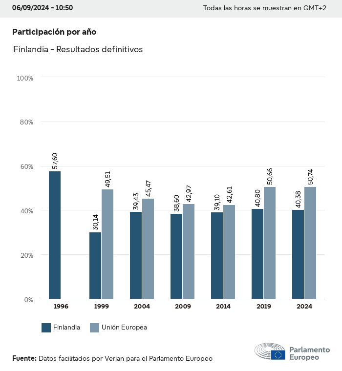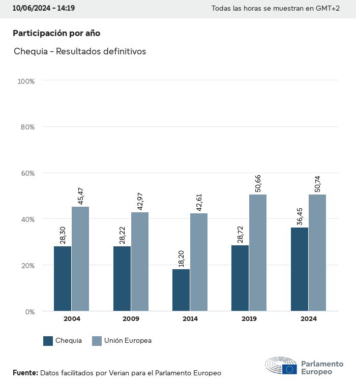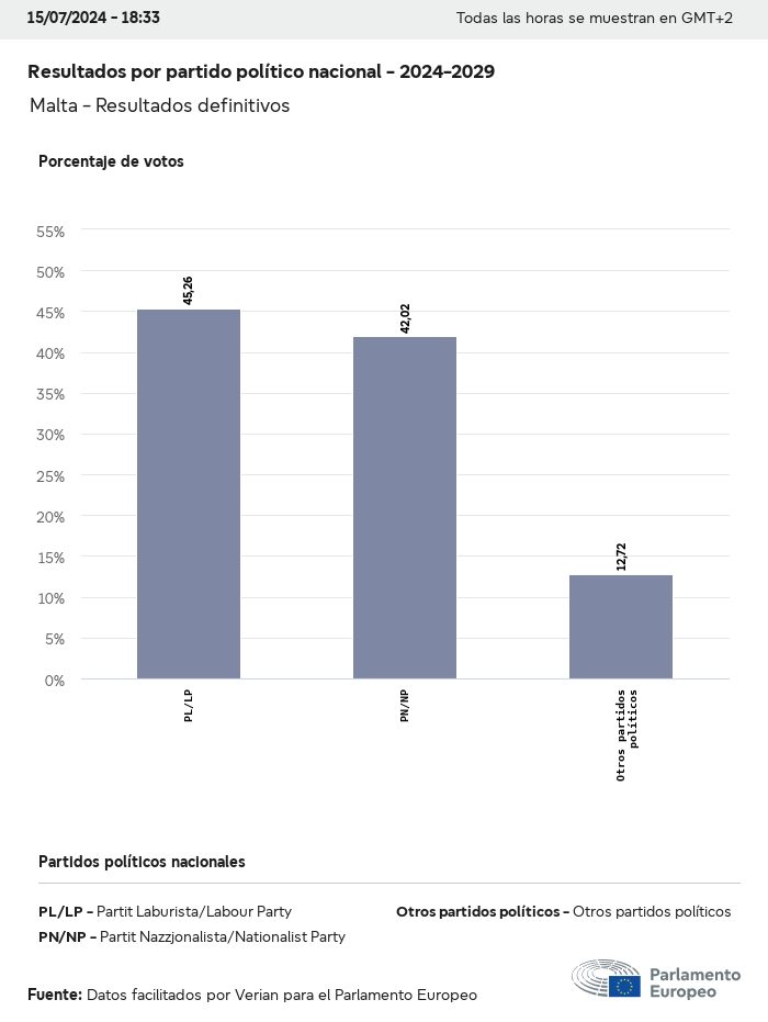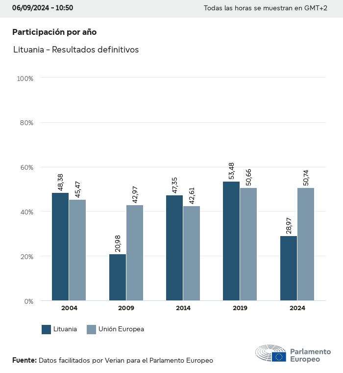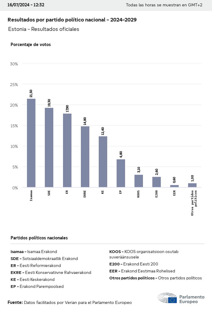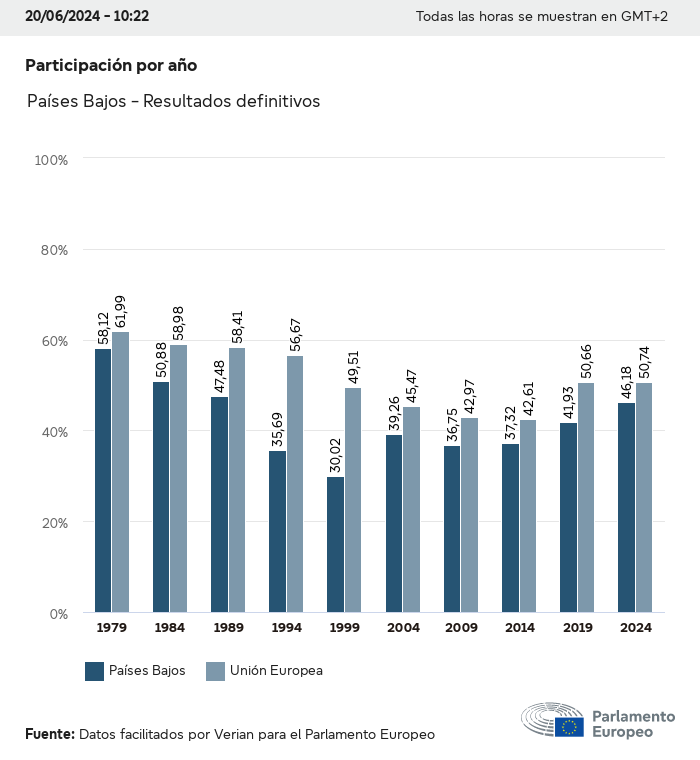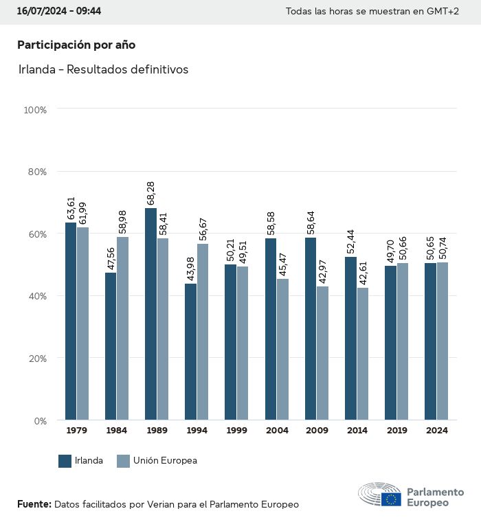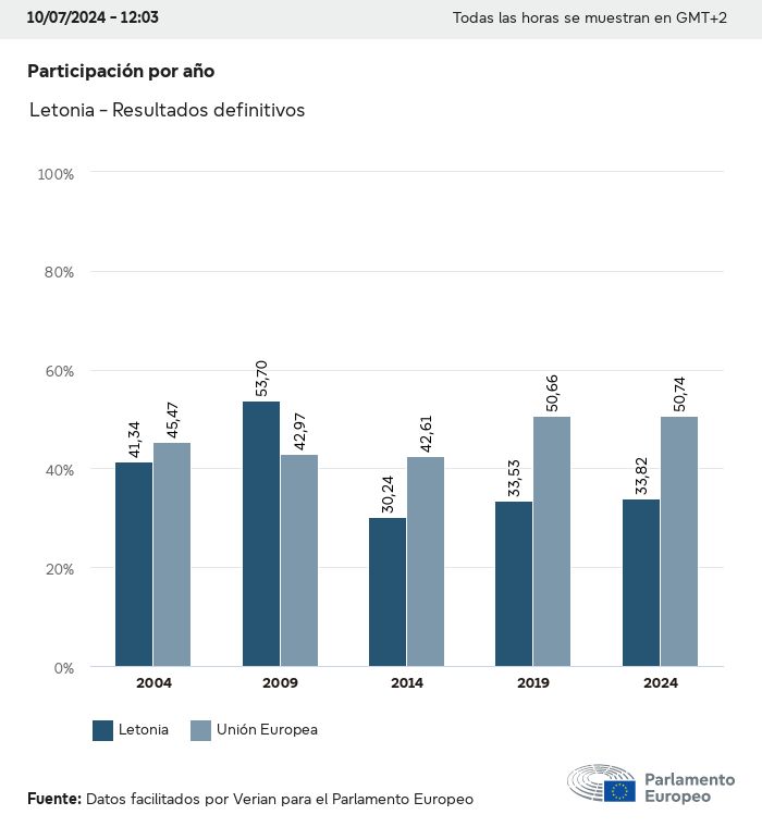 Los datos electorales correspondientes a todas las elecciones europeas celebradas desde 1979 están disponibles aquí y pueden descargarse en diversos formatos. Tenga en cuenta que los archivos disponibles para su descarga llevan al lado una firma digital. Las firmas pueden validarse utilizando este certificado, que a su vez puede validarse utilizando la siguiente cadena de certificados. Datos de las elecciones europeas de 2024. json Común Etiquetas (38 Ko) - Firma Participación electoral (32 Ko) - Firma Datos de equilibrio de género (7 Ko) - Firma Grupos políticos (40 Ko) - Firma Partidos políticos nacionales (110 Ko) - Firma Datos de elecciones europeas (1 Ko) - Firma Resultados de las elecciones be (7 Ko) - Firma fbe (4 Ko) - Firma gbe (2 Ko) - Firma wbe (3 Ko) - Firma bg (5 Ko) - Firma cz (7 Ko) - Firma dk (5 Ko) - Firma de (8 Ko) - Firma ee (4 Ko) - Firma ie (5 Ko) - Firma el (5 Ko) - Firma es (7 Ko) - Firma fr (8 Ko) - Firma hr (3 Ko) - Firma it (6 Ko) - Firma cy (3 Ko) - Firma lv (5 Ko) - Firma lt (5 Ko) - Firma lu (4 Ko) - Firma hu (5 Ko) - Firma mt (2 Ko) - Firma nl (6 Ko) - Firma at (3 Ko) - Firma pl (7 Ko) - Firma pt (5 Ko) - Firma ro (5 Ko) - Firma si (4 Ko) - Firma sk (5 Ko) - Firma fi (4 Ko) - Firma se (4 Ko) - Firma xml Común Etiquetas (63 Ko) - Firma Participación electoral (40 Ko) - Firma Datos de equilibrio de género (10 Ko) - Firma Grupos políticos (64 Ko) - Firma Partidos políticos nacionales (123 Ko) - Firma Datos de elecciones europeas (2 Ko) - Firma Resultados de las elecciones be (10 Ko) - Firma fbe (6 Ko) - Firma gbe (3 Ko) - Firma wbe (5 Ko) - Firma bg (7 Ko) - Firma cz (10 Ko) - Firma dk (7 Ko) - Firma de (11 Ko) - Firma ee (6 Ko) - Firma ie (7 Ko) - Firma el (7 Ko) - Firma es (11 Ko) - Firma fr (12 Ko) - Firma hr (5 Ko) - Firma it (9 Ko) - Firma cy (5 Ko) - Firma lv (7 Ko) - Firma lt (7 Ko) - Firma lu (6 Ko) - Firma hu (7 Ko) - Firma mt (3 Ko) - Firma nl (9 Ko) - Firma at (5 Ko) - Firma pl (10 Ko) - Firma pt (7 Ko) - Firma ro (8 Ko) - Firma si (5 Ko) - Firma sk (7 Ko) - Firma fi (6 Ko) - Firma se (6 Ko) - Firma csv Participación electoral Participación en la UE (1 Ko) - Firma Participación por país (5 Ko) - Firma Etiquetas (15 Ko) - Firma Datos de equilibrio de género Equilibrio de género en la UE (1 Ko) - Firma Equilibrio de género por país (2 Ko) - Firma Grupos políticos (16 Ko) - Firma Partidos políticos nacionales (27 Ko) - Firma Resultado por partido político nacional be (1 Ko) - Firma fbe (1 Ko) - Firma gbe (1 Ko) - Firma wbe (1 Ko) - Firma bg (1 Ko) - Firma cz (1 Ko) - Firma dk (1 Ko) - Firma de (1 Ko) - Firma ee (1 Ko) - Firma ie (1 Ko) - Firma el (1 Ko) - Firma es (1 Ko) - Firma fr (1 Ko) - Firma hr (1 Ko) - Firma it (1 Ko) - Firma cy (1 Ko) - Firma lv (1 Ko) - Firma lt (1 Ko) - Firma lu (1 Ko) - Firma hu (1 Ko) - Firma mt (1 Ko) - Firma nl (1 Ko) - Firma at (1 Ko) - Firma pl (1 Ko) - Firma pt (1 Ko) - Firma ro (1 Ko) - Firma si (1 Ko) - Firma sk (1 Ko) - Firma fi (1 Ko) - Firma se (1 Ko) - Firma Resultados por grupo políticos EU (1 Ko) - Firma be (1 Ko) - Firma fbe (1 Ko) - Firma gbe (1 Ko) - Firma wbe (1 Ko) - Firma bg (1 Ko) - Firma cz (1 Ko) - Firma dk (1 Ko) - Firma de (1 Ko) - Firma ee (1 Ko) - Firma ie (1 Ko) - Firma el (1 Ko) - Firma es (1 Ko) - Firma fr (1 Ko) - Firma hr (1 Ko) - Firma it (1 Ko) - Firma cy (1 Ko) - Firma lv (1 Ko) - Firma lt (1 Ko) - Firma lu (1 Ko) - Firma hu (1 Ko) - Firma mt (1 Ko) - Firma nl (1 Ko) - Firma at (1 Ko) - Firma pl (1 Ko) - Firma pt (1 Ko) - Firma ro (1 Ko) - Firma si (1 Ko) - Firma sk (1 Ko) - Firma fi (1 Ko) - Firma se (1 Ko) - Firma Escaños por partidos políticos nacionales y grupos políticos be (1 Ko) - Firma fbe (1 Ko) - Firma gbe (1 Ko) - Firma wbe (1 Ko) - Firma bg (1 Ko) - Firma cz (1 Ko) - Firma dk (1 Ko) - Firma de (1 Ko) - Firma ee (1 Ko) - Firma ie (1 Ko) - Firma el (1 Ko) - Firma es (1 Ko) - Firma fr (1 Ko) - Firma hr (1 Ko) - Firma it (1 Ko) - Firma cy (1 Ko) - Firma lv (1 Ko) - Firma lt (1 Ko) - Firma lu (1 Ko) - Firma hu (1 Ko) - Firma mt (1 Ko) - Firma nl (1 Ko) - Firma at (1 Ko) - Firma pl (1 Ko) - Firma pt (1 Ko) - Firma ro (1 Ko) - Firma si (1 Ko) - Firma sk (1 Ko) - Firma fi (1 Ko) - Firma se (1 Ko) - Firma jpg Participación electoral Participación por año (~30 Ko) Participación por país (~140 Ko) Equilibrio de género entre eurodiputados Equilibrio de género entre eurodiputados por país Mapa (~130 Ko) Gráfico de barras (~80 Ko) Equilibrio de género entre eurodiputados por año (~50 Ko) Resultados de las elecciones Datos europeos Hemiciclo (~110 Ko) Parlamento Europeo (~250 Ko) Datos nacionales BE Resultado por partido político nacional (~90 Ko) Escaños por grupo político (~70 Ko) Escaños por partidos políticos nacionales y grupos políticos (~180 Ko) Equilibrio de género entre eurodiputados por año (~50 Ko) Participación por año (~50 Ko) FBE Resultado por partido político nacional (~90 Ko) Escaños por grupo político (~70 Ko) Escaños por partidos políticos nacionales y grupos políticos (~180 Ko) GBE Resultado por partido político nacional (~90 Ko) Escaños por grupo político (~70 Ko) Escaños por partidos políticos nacionales y grupos políticos (~180 Ko) WBE Resultado por partido político nacional (~90 Ko) Escaños por grupo político (~70 Ko) Escaños por partidos políticos nacionales y grupos políticos (~180 Ko) BG Resultado por partido político nacional (~90 Ko) Escaños por grupo político (~70 Ko) Escaños por partidos políticos nacionales y grupos políticos (~180 Ko) Equilibrio de género entre eurodiputados por año (~50 Ko) Participación por año (~50 Ko) CZ Resultado por partido político nacional (~90 Ko) Escaños por grupo político (~70 Ko) Escaños por partidos políticos nacionales y grupos políticos (~180 Ko) Equilibrio de género entre eurodiputados por año (~50 Ko) Participación por año (~50 Ko) DK Resultado por partido político nacional (~90 Ko) Escaños por grupo político (~70 Ko) Escaños por partidos pol