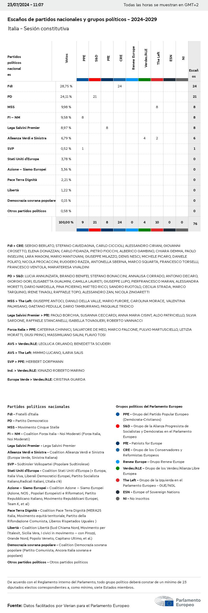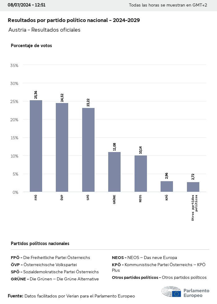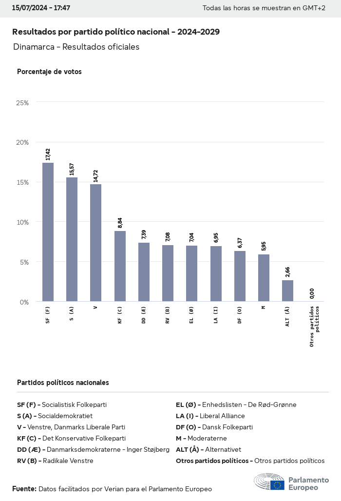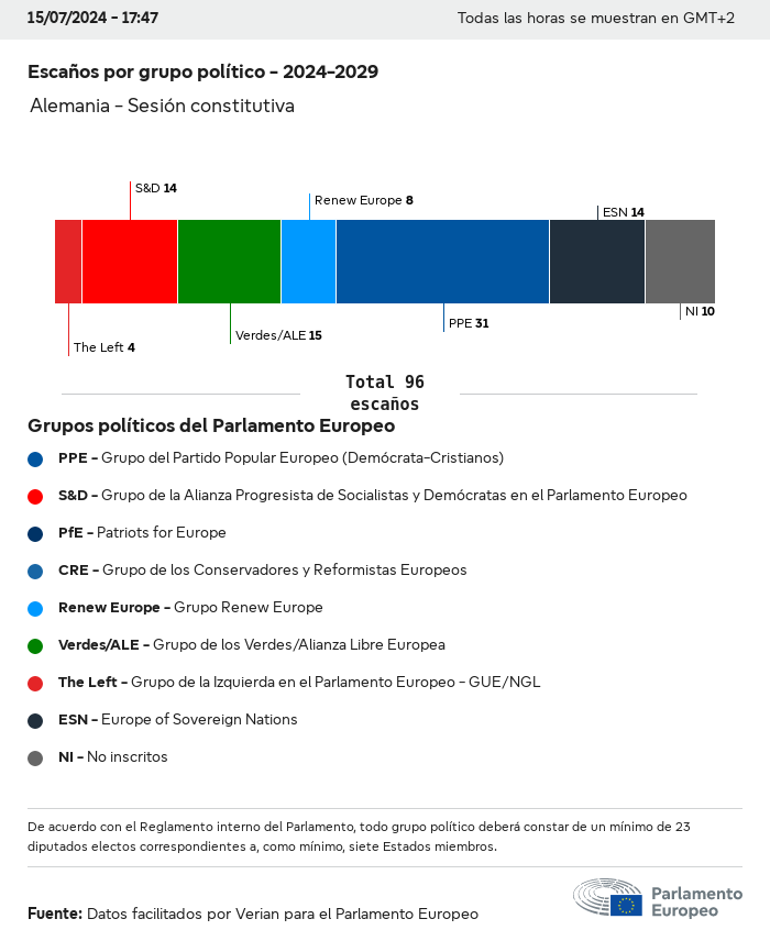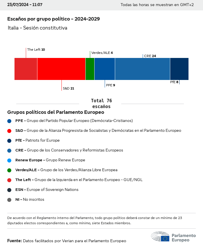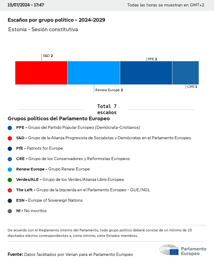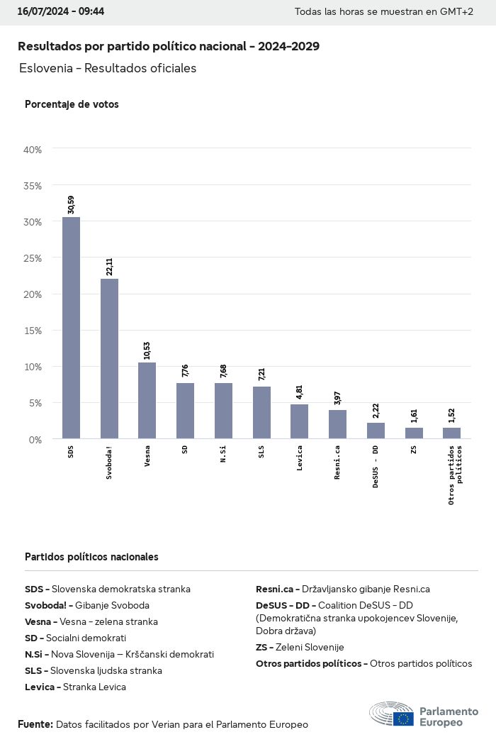 Los datos electorales correspondientes a todas las elecciones europeas celebradas desde 1979 están disponibles aquí y pueden descargarse en diversos formatos. Tenga en cuenta que los archivos disponibles para su descarga llevan al lado una firma digital. Las firmas pueden validarse utilizando este certificado, que a su vez puede validarse utilizando la siguiente cadena de certificados. Datos de las elecciones europeas de 2024. json Común Etiquetas (38 Ko) - Firma Participación electoral (32 Ko) - Firma Datos de equilibrio de género (7 Ko) - Firma Grupos políticos (40 Ko) - Firma Partidos políticos nacionales (110 Ko) - Firma Datos de elecciones europeas (1 Ko) - Firma Resultados de las elecciones be (7 Ko) - Firma fbe (4 Ko) - Firma gbe (2 Ko) - Firma wbe (3 Ko) - Firma bg (5 Ko) - Firma cz (7 Ko) - Firma dk (5 Ko) - Firma de (8 Ko) - Firma ee (4 Ko) - Firma ie (5 Ko) - Firma el (5 Ko) - Firma es (7 Ko) - Firma fr (8 Ko) - Firma hr (3 Ko) - Firma it (6 Ko) - Firma cy (3 Ko) - Firma lv (5 Ko) - Firma lt (5 Ko) - Firma lu (4 Ko) - Firma hu (5 Ko) - Firma mt (2 Ko) - Firma nl (6 Ko) - Firma at (3 Ko) - Firma pl (7 Ko) - Firma pt (5 Ko) - Firma ro (5 Ko) - Firma si (4 Ko) - Firma sk (5 Ko) - Firma fi (4 Ko) - Firma se (4 Ko) - Firma xml Común Etiquetas (63 Ko) - Firma Participación electoral (40 Ko) - Firma Datos de equilibrio de género (10 Ko) - Firma Grupos políticos (64 Ko) - Firma Partidos políticos nacionales (123 Ko) - Firma Datos de elecciones europeas (2 Ko) - Firma Resultados de las elecciones be (10 Ko) - Firma fbe (6 Ko) - Firma gbe (3 Ko) - Firma wbe (5 Ko) - Firma bg (7 Ko) - Firma cz (10 Ko) - Firma dk (7 Ko) - Firma de (11 Ko) - Firma ee (6 Ko) - Firma ie (7 Ko) - Firma el (7 Ko) - Firma es (11 Ko) - Firma fr (12 Ko) - Firma hr (5 Ko) - Firma it (9 Ko) - Firma cy (5 Ko) - Firma lv (7 Ko) - Firma lt (7 Ko) - Firma lu (6 Ko) - Firma hu (7 Ko) - Firma mt (3 Ko) - Firma nl (9 Ko) - Firma at (5 Ko) - Firma pl (10 Ko) - Firma pt (7 Ko) - Firma ro (8 Ko) - Firma si (5 Ko) - Firma sk (7 Ko) - Firma fi (6 Ko) - Firma se (6 Ko) - Firma csv Participación electoral Participación en la UE (1 Ko) - Firma Participación por país (5 Ko) - Firma Etiquetas (15 Ko) - Firma Datos de equilibrio de género Equilibrio de género en la UE (1 Ko) - Firma Equilibrio de género por país (2 Ko) - Firma Grupos políticos (16 Ko) - Firma Partidos políticos nacionales (27 Ko) - Firma Resultado por partido político nacional be (1 Ko) - Firma fbe (1 Ko) - Firma gbe (1 Ko) - Firma wbe (1 Ko) - Firma bg (1 Ko) - Firma cz (1 Ko) - Firma dk (1 Ko) - Firma de (1 Ko) - Firma ee (1 Ko) - Firma ie (1 Ko) - Firma el (1 Ko) - Firma es (1 Ko) - Firma fr (1 Ko) - Firma hr (1 Ko) - Firma it (1 Ko) - Firma cy (1 Ko) - Firma lv (1 Ko) - Firma lt (1 Ko) - Firma lu (1 Ko) - Firma hu (1 Ko) - Firma mt (1 Ko) - Firma nl (1 Ko) - Firma at (1 Ko) - Firma pl (1 Ko) - Firma pt (1 Ko) - Firma ro (1 Ko) - Firma si (1 Ko) - Firma sk (1 Ko) - Firma fi (1 Ko) - Firma se (1 Ko) - Firma Resultados por grupo políticos EU (1 Ko) - Firma be (1 Ko) - Firma fbe (1 Ko) - Firma gbe (1 Ko) - Firma wbe (1 Ko) - Firma bg (1 Ko) - Firma cz (1 Ko) - Firma dk (1 Ko) - Firma de (1 Ko) - Firma ee (1 Ko) - Firma ie (1 Ko) - Firma el (1 Ko) - Firma es (1 Ko) - Firma fr (1 Ko) - Firma hr (1 Ko) - Firma it (1 Ko) - Firma cy (1 Ko) - Firma lv (1 Ko) - Firma lt (1 Ko) - Firma lu (1 Ko) - Firma hu (1 Ko) - Firma mt (1 Ko) - Firma nl (1 Ko) - Firma at (1 Ko) - Firma pl (1 Ko) - Firma pt (1 Ko) - Firma ro (1 Ko) - Firma si (1 Ko) - Firma sk (1 Ko) - Firma fi (1 Ko) - Firma se (1 Ko) - Firma Escaños por partidos políticos nacionales y grupos políticos be (1 Ko) - Firma fbe (1 Ko) - Firma gbe (1 Ko) - Firma wbe (1 Ko) - Firma bg (1 Ko) - Firma cz (1 Ko) - Firma dk (1 Ko) - Firma de (1 Ko) - Firma ee (1 Ko) - Firma ie (1 Ko) - Firma el (1 Ko) - Firma es (1 Ko) - Firma fr (1 Ko) - Firma hr (1 Ko) - Firma it (1 Ko) - Firma cy (1 Ko) - Firma lv (1 Ko) - Firma lt (1 Ko) - Firma lu (1 Ko) - Firma hu (1 Ko) - Firma mt (1 Ko) - Firma nl (1 Ko) - Firma at (1 Ko) - Firma pl (1 Ko) - Firma pt (1 Ko) - Firma ro (1 Ko) - Firma si (1 Ko) - Firma sk (1 Ko) - Firma fi (1 Ko) - Firma se (1 Ko) - Firma jpg Participación electoral Participación por año (~30 Ko) Participación por país (~140 Ko) Equilibrio de género entre eurodiputados Equilibrio de género entre eurodiputados por país Mapa (~130 Ko) Gráfico de barras (~80 Ko) Equilibrio de género entre eurodiputados por año (~50 Ko) Resultados de las elecciones Datos europeos Hemiciclo (~110 Ko) Parlamento Europeo (~250 Ko) Datos nacionales BE Resultado por partido político nacional (~90 Ko) Escaños por grupo político (~70 Ko) Escaños por partidos políticos nacionales y grupos políticos (~180 Ko) Equilibrio de género entre eurodiputados por año (~50 Ko) Participación por año (~50 Ko) FBE Resultado por partido político nacional (~90 Ko) Escaños por grupo político (~70 Ko) Escaños por partidos políticos nacionales y grupos políticos (~180 Ko) GBE Resultado por partido político nacional (~90 Ko) Escaños por grupo político (~70 Ko) Escaños por partidos políticos nacionales y grupos políticos (~180 Ko) WBE Resultado por partido político nacional (~90 Ko) Escaños por grupo político (~70 Ko) Escaños por partidos políticos nacionales y grupos políticos (~180 Ko) BG Resultado por partido político nacional (~90 Ko) Escaños por grupo político (~70 Ko) Escaños por partidos políticos nacionales y grupos políticos (~180 Ko) Equilibrio de género entre eurodiputados por año (~50 Ko) Participación por año (~50 Ko) CZ Resultado por partido político nacional (~90 Ko) Escaños por grupo político (~70 Ko) Escaños por partidos políticos nacionales y grupos políticos (~180 Ko) Equilibrio de género entre eurodiputados por año (~50 Ko) Participación por año (~50 Ko) DK Resultado por partido político nacional (~90 Ko) Escaños por grupo político (~70 Ko) Escaños por partidos pol