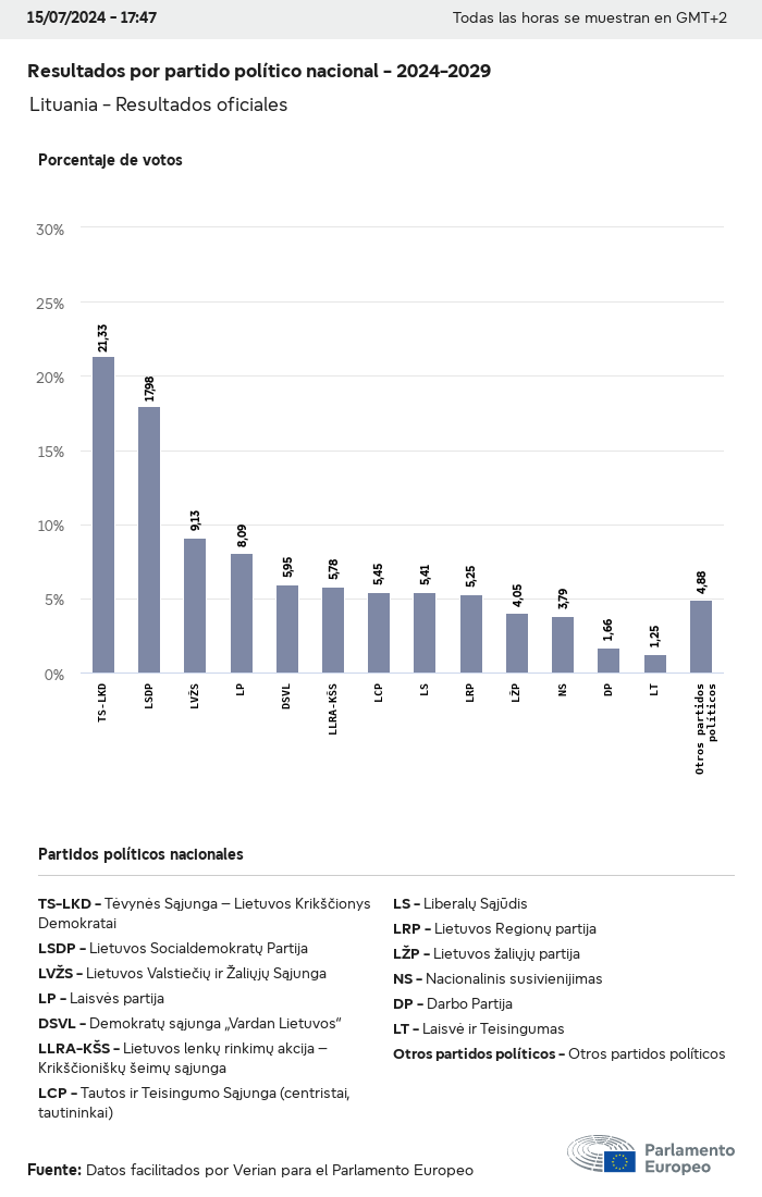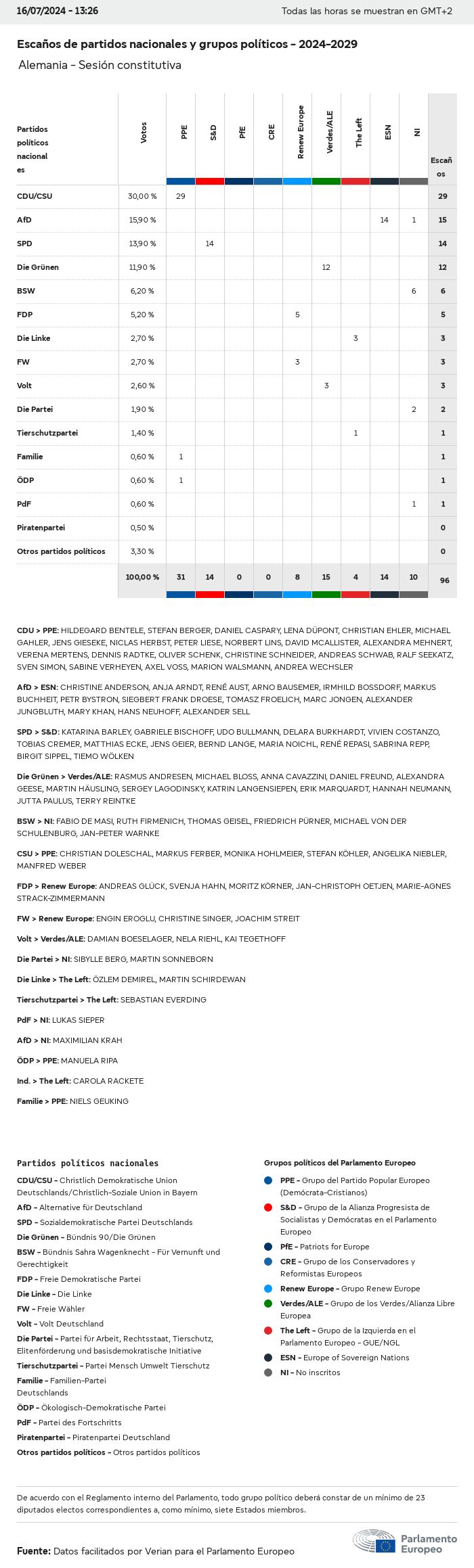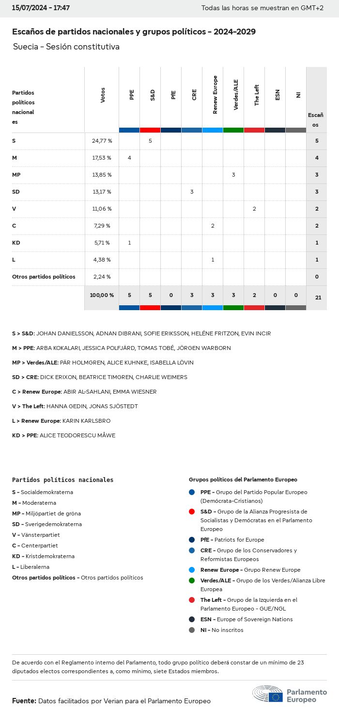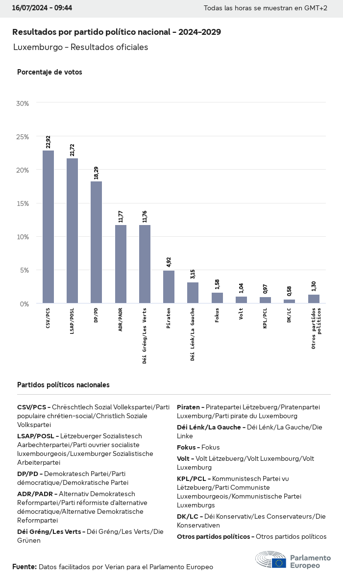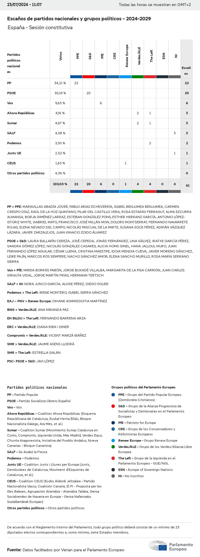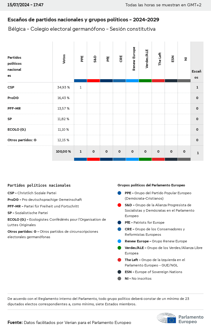 Los datos electorales correspondientes a todas las elecciones europeas celebradas desde 1979 están disponibles aquí y pueden descargarse en diversos formatos. Tenga en cuenta que los archivos disponibles para su descarga llevan al lado una firma digital. Las firmas pueden validarse utilizando este certificado, que a su vez puede validarse utilizando la siguiente cadena de certificados. Datos de las elecciones europeas de 2024. json Común Etiquetas (38 Ko) - Firma Participación electoral (32 Ko) - Firma Datos de equilibrio de género (7 Ko) - Firma Grupos políticos (40 Ko) - Firma Partidos políticos nacionales (110 Ko) - Firma Datos de elecciones europeas (1 Ko) - Firma Resultados de las elecciones be (7 Ko) - Firma fbe (4 Ko) - Firma gbe (2 Ko) - Firma wbe (3 Ko) - Firma bg (5 Ko) - Firma cz (7 Ko) - Firma dk (5 Ko) - Firma de (8 Ko) - Firma ee (4 Ko) - Firma ie (5 Ko) - Firma el (5 Ko) - Firma es (7 Ko) - Firma fr (8 Ko) - Firma hr (3 Ko) - Firma it (6 Ko) - Firma cy (3 Ko) - Firma lv (5 Ko) - Firma lt (5 Ko) - Firma lu (4 Ko) - Firma hu (5 Ko) - Firma mt (2 Ko) - Firma nl (6 Ko) - Firma at (3 Ko) - Firma pl (7 Ko) - Firma pt (5 Ko) - Firma ro (5 Ko) - Firma si (4 Ko) - Firma sk (5 Ko) - Firma fi (4 Ko) - Firma se (4 Ko) - Firma xml Común Etiquetas (63 Ko) - Firma Participación electoral (40 Ko) - Firma Datos de equilibrio de género (10 Ko) - Firma Grupos políticos (64 Ko) - Firma Partidos políticos nacionales (123 Ko) - Firma Datos de elecciones europeas (2 Ko) - Firma Resultados de las elecciones be (10 Ko) - Firma fbe (6 Ko) - Firma gbe (3 Ko) - Firma wbe (5 Ko) - Firma bg (7 Ko) - Firma cz (10 Ko) - Firma dk (7 Ko) - Firma de (11 Ko) - Firma ee (6 Ko) - Firma ie (7 Ko) - Firma el (7 Ko) - Firma es (11 Ko) - Firma fr (12 Ko) - Firma hr (5 Ko) - Firma it (9 Ko) - Firma cy (5 Ko) - Firma lv (7 Ko) - Firma lt (7 Ko) - Firma lu (6 Ko) - Firma hu (7 Ko) - Firma mt (3 Ko) - Firma nl (9 Ko) - Firma at (5 Ko) - Firma pl (10 Ko) - Firma pt (7 Ko) - Firma ro (8 Ko) - Firma si (5 Ko) - Firma sk (7 Ko) - Firma fi (6 Ko) - Firma se (6 Ko) - Firma csv Participación electoral Participación en la UE (1 Ko) - Firma Participación por país (5 Ko) - Firma Etiquetas (15 Ko) - Firma Datos de equilibrio de género Equilibrio de género en la UE (1 Ko) - Firma Equilibrio de género por país (2 Ko) - Firma Grupos políticos (16 Ko) - Firma Partidos políticos nacionales (27 Ko) - Firma Resultado por partido político nacional be (1 Ko) - Firma fbe (1 Ko) - Firma gbe (1 Ko) - Firma wbe (1 Ko) - Firma bg (1 Ko) - Firma cz (1 Ko) - Firma dk (1 Ko) - Firma de (1 Ko) - Firma ee (1 Ko) - Firma ie (1 Ko) - Firma el (1 Ko) - Firma es (1 Ko) - Firma fr (1 Ko) - Firma hr (1 Ko) - Firma it (1 Ko) - Firma cy (1 Ko) - Firma lv (1 Ko) - Firma lt (1 Ko) - Firma lu (1 Ko) - Firma hu (1 Ko) - Firma mt (1 Ko) - Firma nl (1 Ko) - Firma at (1 Ko) - Firma pl (1 Ko) - Firma pt (1 Ko) - Firma ro (1 Ko) - Firma si (1 Ko) - Firma sk (1 Ko) - Firma fi (1 Ko) - Firma se (1 Ko) - Firma Resultados por grupo políticos EU (1 Ko) - Firma be (1 Ko) - Firma fbe (1 Ko) - Firma gbe (1 Ko) - Firma wbe (1 Ko) - Firma bg (1 Ko) - Firma cz (1 Ko) - Firma dk (1 Ko) - Firma de (1 Ko) - Firma ee (1 Ko) - Firma ie (1 Ko) - Firma el (1 Ko) - Firma es (1 Ko) - Firma fr (1 Ko) - Firma hr (1 Ko) - Firma it (1 Ko) - Firma cy (1 Ko) - Firma lv (1 Ko) - Firma lt (1 Ko) - Firma lu (1 Ko) - Firma hu (1 Ko) - Firma mt (1 Ko) - Firma nl (1 Ko) - Firma at (1 Ko) - Firma pl (1 Ko) - Firma pt (1 Ko) - Firma ro (1 Ko) - Firma si (1 Ko) - Firma sk (1 Ko) - Firma fi (1 Ko) - Firma se (1 Ko) - Firma Escaños por partidos políticos nacionales y grupos políticos be (1 Ko) - Firma fbe (1 Ko) - Firma gbe (1 Ko) - Firma wbe (1 Ko) - Firma bg (1 Ko) - Firma cz (1 Ko) - Firma dk (1 Ko) - Firma de (1 Ko) - Firma ee (1 Ko) - Firma ie (1 Ko) - Firma el (1 Ko) - Firma es (1 Ko) - Firma fr (1 Ko) - Firma hr (1 Ko) - Firma it (1 Ko) - Firma cy (1 Ko) - Firma lv (1 Ko) - Firma lt (1 Ko) - Firma lu (1 Ko) - Firma hu (1 Ko) - Firma mt (1 Ko) - Firma nl (1 Ko) - Firma at (1 Ko) - Firma pl (1 Ko) - Firma pt (1 Ko) - Firma ro (1 Ko) - Firma si (1 Ko) - Firma sk (1 Ko) - Firma fi (1 Ko) - Firma se (1 Ko) - Firma jpg Participación electoral Participación por año (~30 Ko) Participación por país (~140 Ko) Equilibrio de género entre eurodiputados Equilibrio de género entre eurodiputados por país Mapa (~130 Ko) Gráfico de barras (~80 Ko) Equilibrio de género entre eurodiputados por año (~50 Ko) Resultados de las elecciones Datos europeos Hemiciclo (~110 Ko) Parlamento Europeo (~250 Ko) Datos nacionales BE Resultado por partido político nacional (~90 Ko) Escaños por grupo político (~70 Ko) Escaños por partidos políticos nacionales y grupos políticos (~180 Ko) Equilibrio de género entre eurodiputados por año (~50 Ko) Participación por año (~50 Ko) FBE Resultado por partido político nacional (~90 Ko) Escaños por grupo político (~70 Ko) Escaños por partidos políticos nacionales y grupos políticos (~180 Ko) GBE Resultado por partido político nacional (~90 Ko) Escaños por grupo político (~70 Ko) Escaños por partidos políticos nacionales y grupos políticos (~180 Ko) WBE Resultado por partido político nacional (~90 Ko) Escaños por grupo político (~70 Ko) Escaños por partidos políticos nacionales y grupos políticos (~180 Ko) BG Resultado por partido político nacional (~90 Ko) Escaños por grupo político (~70 Ko) Escaños por partidos políticos nacionales y grupos políticos (~180 Ko) Equilibrio de género entre eurodiputados por año (~50 Ko) Participación por año (~50 Ko) CZ Resultado por partido político nacional (~90 Ko) Escaños por grupo político (~70 Ko) Escaños por partidos políticos nacionales y grupos políticos (~180 Ko) Equilibrio de género entre eurodiputados por año (~50 Ko) Participación por año (~50 Ko) DK Resultado por partido político nacional (~90 Ko) Escaños por grupo político (~70 Ko) Escaños por partidos pol