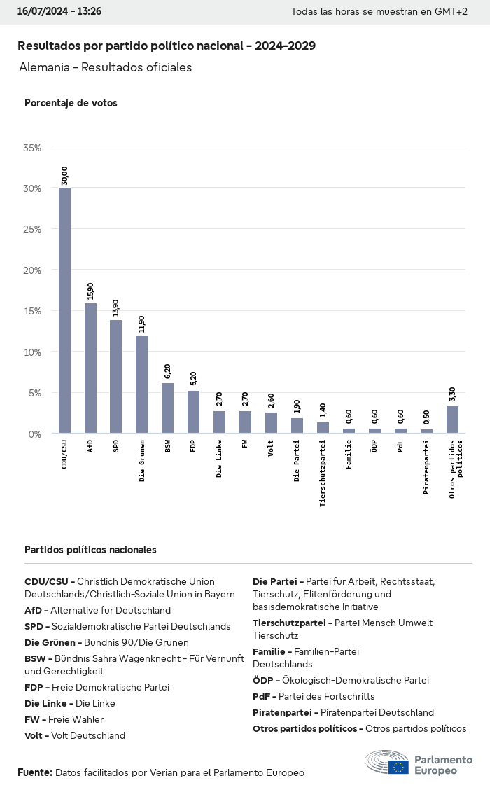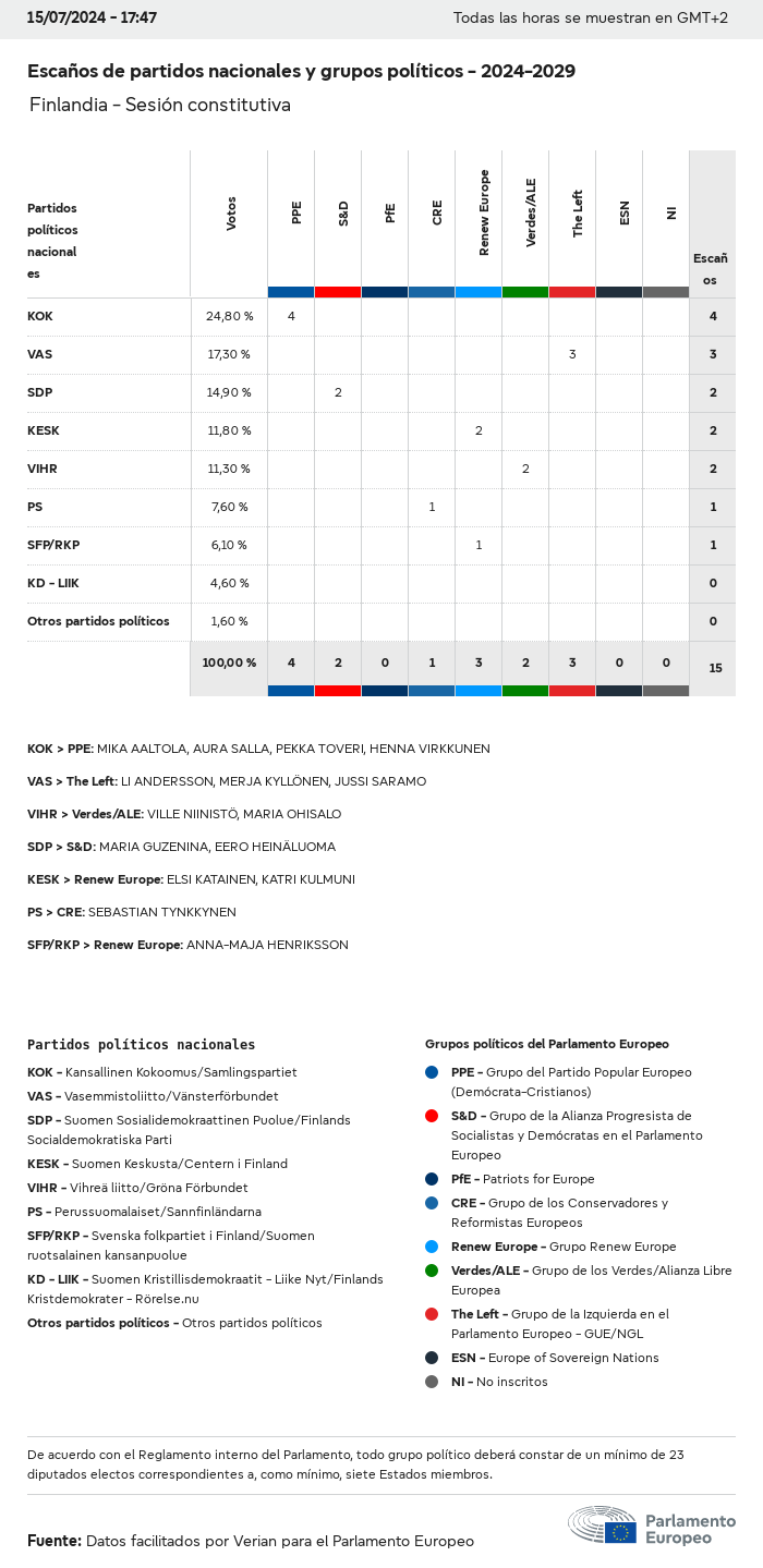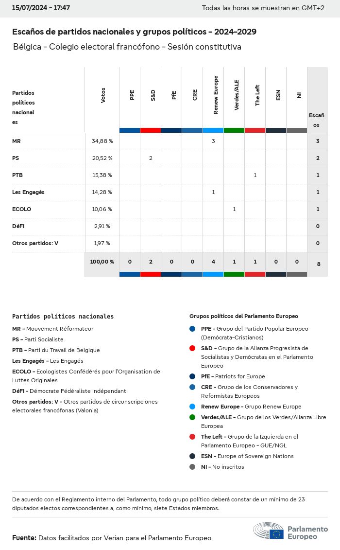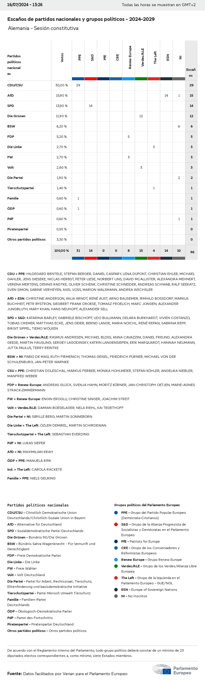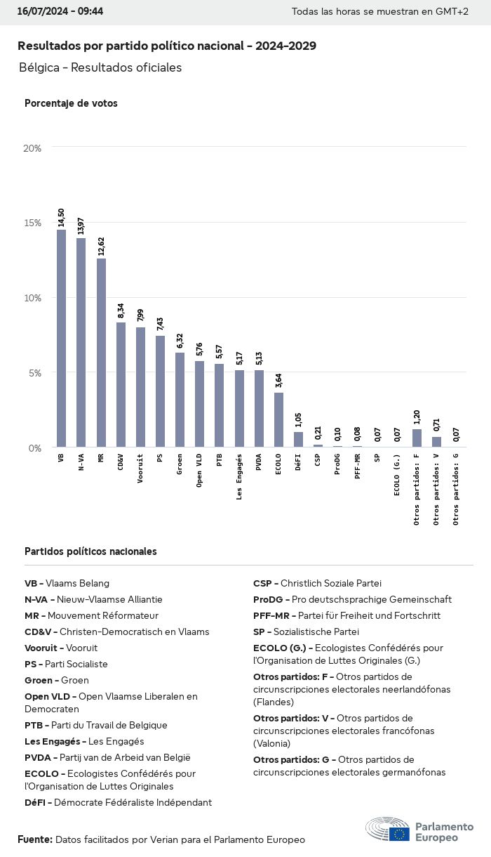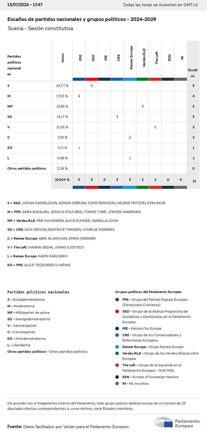 Los datos electorales correspondientes a todas las elecciones europeas celebradas desde 1979 están disponibles aquí y pueden descargarse en diversos formatos. Tenga en cuenta que los archivos disponibles para su descarga llevan al lado una firma digital. Las firmas pueden validarse utilizando este certificado, que a su vez puede validarse utilizando la siguiente cadena de certificados. Datos de las elecciones europeas de 2024. json Común Etiquetas (38 Ko) - Firma Participación electoral (32 Ko) - Firma Datos de equilibrio de género (7 Ko) - Firma Grupos políticos (40 Ko) - Firma Partidos políticos nacionales (110 Ko) - Firma Datos de elecciones europeas (1 Ko) - Firma Resultados de las elecciones be (7 Ko) - Firma fbe (4 Ko) - Firma gbe (2 Ko) - Firma wbe (3 Ko) - Firma bg (5 Ko) - Firma cz (7 Ko) - Firma dk (5 Ko) - Firma de (8 Ko) - Firma ee (4 Ko) - Firma ie (5 Ko) - Firma el (5 Ko) - Firma es (7 Ko) - Firma fr (8 Ko) - Firma hr (3 Ko) - Firma it (6 Ko) - Firma cy (3 Ko) - Firma lv (5 Ko) - Firma lt (5 Ko) - Firma lu (4 Ko) - Firma hu (5 Ko) - Firma mt (2 Ko) - Firma nl (6 Ko) - Firma at (3 Ko) - Firma pl (7 Ko) - Firma pt (5 Ko) - Firma ro (5 Ko) - Firma si (4 Ko) - Firma sk (5 Ko) - Firma fi (4 Ko) - Firma se (4 Ko) - Firma xml Común Etiquetas (63 Ko) - Firma Participación electoral (40 Ko) - Firma Datos de equilibrio de género (10 Ko) - Firma Grupos políticos (64 Ko) - Firma Partidos políticos nacionales (123 Ko) - Firma Datos de elecciones europeas (2 Ko) - Firma Resultados de las elecciones be (10 Ko) - Firma fbe (6 Ko) - Firma gbe (3 Ko) - Firma wbe (5 Ko) - Firma bg (7 Ko) - Firma cz (10 Ko) - Firma dk (7 Ko) - Firma de (11 Ko) - Firma ee (6 Ko) - Firma ie (7 Ko) - Firma el (7 Ko) - Firma es (11 Ko) - Firma fr (12 Ko) - Firma hr (5 Ko) - Firma it (9 Ko) - Firma cy (5 Ko) - Firma lv (7 Ko) - Firma lt (7 Ko) - Firma lu (6 Ko) - Firma hu (7 Ko) - Firma mt (3 Ko) - Firma nl (9 Ko) - Firma at (5 Ko) - Firma pl (10 Ko) - Firma pt (7 Ko) - Firma ro (8 Ko) - Firma si (5 Ko) - Firma sk (7 Ko) - Firma fi (6 Ko) - Firma se (6 Ko) - Firma csv Participación electoral Participación en la UE (1 Ko) - Firma Participación por país (5 Ko) - Firma Etiquetas (15 Ko) - Firma Datos de equilibrio de género Equilibrio de género en la UE (1 Ko) - Firma Equilibrio de género por país (2 Ko) - Firma Grupos políticos (16 Ko) - Firma Partidos políticos nacionales (27 Ko) - Firma Resultado por partido político nacional be (1 Ko) - Firma fbe (1 Ko) - Firma gbe (1 Ko) - Firma wbe (1 Ko) - Firma bg (1 Ko) - Firma cz (1 Ko) - Firma dk (1 Ko) - Firma de (1 Ko) - Firma ee (1 Ko) - Firma ie (1 Ko) - Firma el (1 Ko) - Firma es (1 Ko) - Firma fr (1 Ko) - Firma hr (1 Ko) - Firma it (1 Ko) - Firma cy (1 Ko) - Firma lv (1 Ko) - Firma lt (1 Ko) - Firma lu (1 Ko) - Firma hu (1 Ko) - Firma mt (1 Ko) - Firma nl (1 Ko) - Firma at (1 Ko) - Firma pl (1 Ko) - Firma pt (1 Ko) - Firma ro (1 Ko) - Firma si (1 Ko) - Firma sk (1 Ko) - Firma fi (1 Ko) - Firma se (1 Ko) - Firma Resultados por grupo políticos EU (1 Ko) - Firma be (1 Ko) - Firma fbe (1 Ko) - Firma gbe (1 Ko) - Firma wbe (1 Ko) - Firma bg (1 Ko) - Firma cz (1 Ko) - Firma dk (1 Ko) - Firma de (1 Ko) - Firma ee (1 Ko) - Firma ie (1 Ko) - Firma el (1 Ko) - Firma es (1 Ko) - Firma fr (1 Ko) - Firma hr (1 Ko) - Firma it (1 Ko) - Firma cy (1 Ko) - Firma lv (1 Ko) - Firma lt (1 Ko) - Firma lu (1 Ko) - Firma hu (1 Ko) - Firma mt (1 Ko) - Firma nl (1 Ko) - Firma at (1 Ko) - Firma pl (1 Ko) - Firma pt (1 Ko) - Firma ro (1 Ko) - Firma si (1 Ko) - Firma sk (1 Ko) - Firma fi (1 Ko) - Firma se (1 Ko) - Firma Escaños por partidos políticos nacionales y grupos políticos be (1 Ko) - Firma fbe (1 Ko) - Firma gbe (1 Ko) - Firma wbe (1 Ko) - Firma bg (1 Ko) - Firma cz (1 Ko) - Firma dk (1 Ko) - Firma de (1 Ko) - Firma ee (1 Ko) - Firma ie (1 Ko) - Firma el (1 Ko) - Firma es (1 Ko) - Firma fr (1 Ko) - Firma hr (1 Ko) - Firma it (1 Ko) - Firma cy (1 Ko) - Firma lv (1 Ko) - Firma lt (1 Ko) - Firma lu (1 Ko) - Firma hu (1 Ko) - Firma mt (1 Ko) - Firma nl (1 Ko) - Firma at (1 Ko) - Firma pl (1 Ko) - Firma pt (1 Ko) - Firma ro (1 Ko) - Firma si (1 Ko) - Firma sk (1 Ko) - Firma fi (1 Ko) - Firma se (1 Ko) - Firma jpg Participación electoral Participación por año (~30 Ko) Participación por país (~140 Ko) Equilibrio de género entre eurodiputados Equilibrio de género entre eurodiputados por país Mapa (~130 Ko) Gráfico de barras (~80 Ko) Equilibrio de género entre eurodiputados por año (~50 Ko) Resultados de las elecciones Datos europeos Hemiciclo (~110 Ko) Parlamento Europeo (~250 Ko) Datos nacionales BE Resultado por partido político nacional (~90 Ko) Escaños por grupo político (~70 Ko) Escaños por partidos políticos nacionales y grupos políticos (~180 Ko) Equilibrio de género entre eurodiputados por año (~50 Ko) Participación por año (~50 Ko) FBE Resultado por partido político nacional (~90 Ko) Escaños por grupo político (~70 Ko) Escaños por partidos políticos nacionales y grupos políticos (~180 Ko) GBE Resultado por partido político nacional (~90 Ko) Escaños por grupo político (~70 Ko) Escaños por partidos políticos nacionales y grupos políticos (~180 Ko) WBE Resultado por partido político nacional (~90 Ko) Escaños por grupo político (~70 Ko) Escaños por partidos políticos nacionales y grupos políticos (~180 Ko) BG Resultado por partido político nacional (~90 Ko) Escaños por grupo político (~70 Ko) Escaños por partidos políticos nacionales y grupos políticos (~180 Ko) Equilibrio de género entre eurodiputados por año (~50 Ko) Participación por año (~50 Ko) CZ Resultado por partido político nacional (~90 Ko) Escaños por grupo político (~70 Ko) Escaños por partidos políticos nacionales y grupos políticos (~180 Ko) Equilibrio de género entre eurodiputados por año (~50 Ko) Participación por año (~50 Ko) DK Resultado por partido político nacional (~90 Ko) Escaños por grupo político (~70 Ko) Escaños por partidos pol