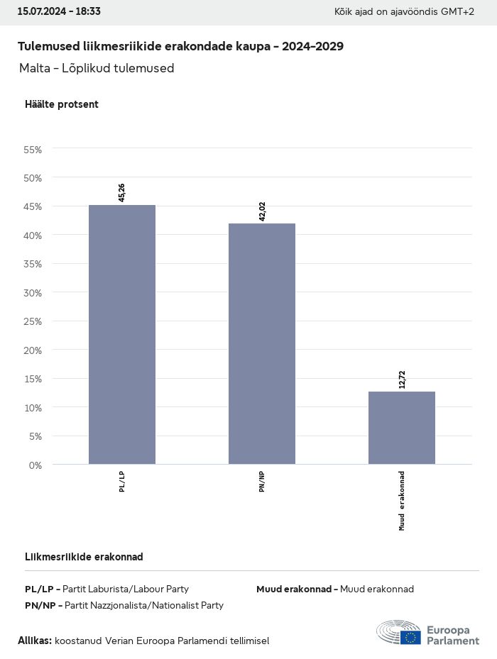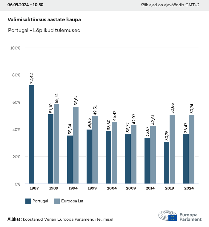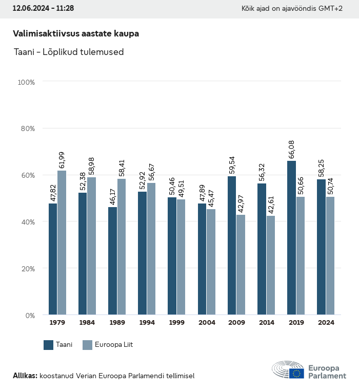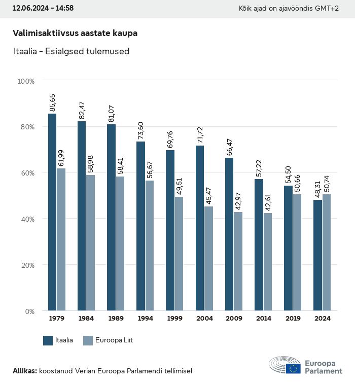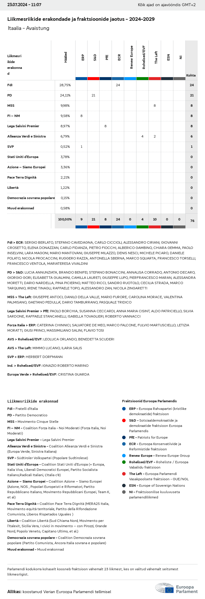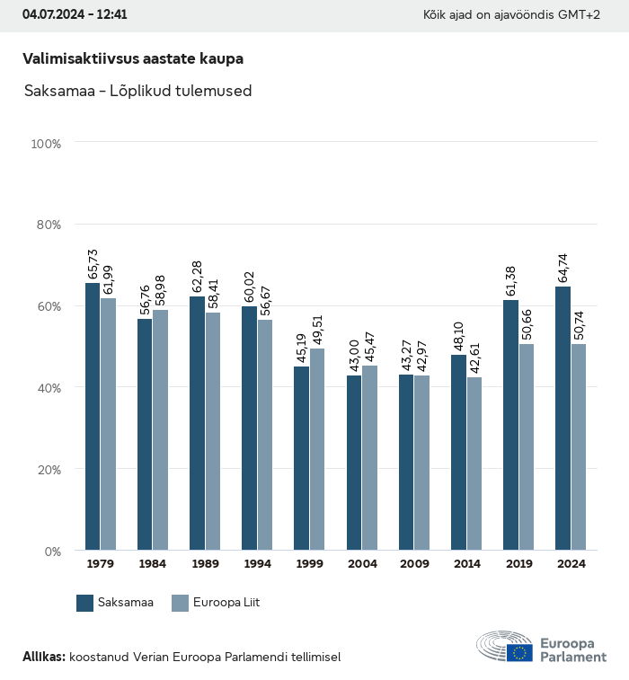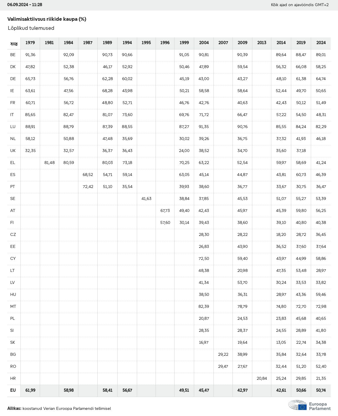 Allpool on kõigis vormingutes allalaadimiseks Euroopa Parlamendi valimiste andmed alates 1979. aastast. Allalaaditavade failide kõrval on digiallkirja koht. Neid allkirju saab kinnitada selle sertifikaadi abil, mida saab omakorda kinnitada järgmise sertifikaadiahela abil. Euroopa Parlamendi 2024. aasta valimiste andmed. json Üldine Sildid (38 Ko) - Allkiri Valimisaktiivsus (32 Ko) - Allkiri Soolise jaotuse andmed (7 Ko) - Allkiri Fraktsioonid (40 Ko) - Allkiri Liikmesriikide erakonnad (110 Ko) - Allkiri Euroopa Parlamendi valimiste andmed (1 Ko) - Allkiri Valimistulemused be (7 Ko) - Allkiri fbe (4 Ko) - Allkiri gbe (2 Ko) - Allkiri wbe (3 Ko) - Allkiri bg (5 Ko) - Allkiri cz (7 Ko) - Allkiri dk (5 Ko) - Allkiri de (8 Ko) - Allkiri ee (4 Ko) - Allkiri ie (5 Ko) - Allkiri el (5 Ko) - Allkiri es (7 Ko) - Allkiri fr (8 Ko) - Allkiri hr (3 Ko) - Allkiri it (6 Ko) - Allkiri cy (3 Ko) - Allkiri lv (5 Ko) - Allkiri lt (5 Ko) - Allkiri lu (4 Ko) - Allkiri hu (5 Ko) - Allkiri mt (2 Ko) - Allkiri nl (6 Ko) - Allkiri at (3 Ko) - Allkiri pl (7 Ko) - Allkiri pt (5 Ko) - Allkiri ro (5 Ko) - Allkiri si (4 Ko) - Allkiri sk (5 Ko) - Allkiri fi (4 Ko) - Allkiri se (4 Ko) - Allkiri xml Üldine Sildid (63 Ko) - Allkiri Valimisaktiivsus (40 Ko) - Allkiri Soolise jaotuse andmed (10 Ko) - Allkiri Fraktsioonid (64 Ko) - Allkiri Liikmesriikide erakonnad (123 Ko) - Allkiri Euroopa Parlamendi valimiste andmed (2 Ko) - Allkiri Valimistulemused be (10 Ko) - Allkiri fbe (6 Ko) - Allkiri gbe (3 Ko) - Allkiri wbe (5 Ko) - Allkiri bg (7 Ko) - Allkiri cz (10 Ko) - Allkiri dk (7 Ko) - Allkiri de (11 Ko) - Allkiri ee (6 Ko) - Allkiri ie (7 Ko) - Allkiri el (7 Ko) - Allkiri es (11 Ko) - Allkiri fr (12 Ko) - Allkiri hr (5 Ko) - Allkiri it (9 Ko) - Allkiri cy (5 Ko) - Allkiri lv (7 Ko) - Allkiri lt (7 Ko) - Allkiri lu (6 Ko) - Allkiri hu (7 Ko) - Allkiri mt (3 Ko) - Allkiri nl (9 Ko) - Allkiri at (5 Ko) - Allkiri pl (10 Ko) - Allkiri pt (7 Ko) - Allkiri ro (8 Ko) - Allkiri si (5 Ko) - Allkiri sk (7 Ko) - Allkiri fi (6 Ko) - Allkiri se (6 Ko) - Allkiri csv Valimisaktiivsus Valimisaktiivsus ELis (1 Ko) - Allkiri Valimisaktiivsus riikide kaupa (5 Ko) - Allkiri Sildid (15 Ko) - Allkiri Soolise jaotuse andmed Sooline jaotus ELis (1 Ko) - Allkiri Sooline jaotus riikide kaupa (2 Ko) - Allkiri Fraktsioonid (16 Ko) - Allkiri Liikmesriikide erakonnad (27 Ko) - Allkiri Tulemused liikmesriikide erakondade kaupa be (1 Ko) - Allkiri fbe (1 Ko) - Allkiri gbe (1 Ko) - Allkiri wbe (1 Ko) - Allkiri bg (1 Ko) - Allkiri cz (1 Ko) - Allkiri dk (1 Ko) - Allkiri de (1 Ko) - Allkiri ee (1 Ko) - Allkiri ie (1 Ko) - Allkiri el (1 Ko) - Allkiri es (1 Ko) - Allkiri fr (1 Ko) - Allkiri hr (1 Ko) - Allkiri it (1 Ko) - Allkiri cy (1 Ko) - Allkiri lv (1 Ko) - Allkiri lt (1 Ko) - Allkiri lu (1 Ko) - Allkiri hu (1 Ko) - Allkiri mt (1 Ko) - Allkiri nl (1 Ko) - Allkiri at (1 Ko) - Allkiri pl (1 Ko) - Allkiri pt (1 Ko) - Allkiri ro (1 Ko) - Allkiri si (1 Ko) - Allkiri sk (1 Ko) - Allkiri fi (1 Ko) - Allkiri se (1 Ko) - Allkiri Tulemused fraktsioonide kaupa EU (1 Ko) - Allkiri be (1 Ko) - Allkiri fbe (1 Ko) - Allkiri gbe (1 Ko) - Allkiri wbe (1 Ko) - Allkiri bg (1 Ko) - Allkiri cz (1 Ko) - Allkiri dk (1 Ko) - Allkiri de (1 Ko) - Allkiri ee (1 Ko) - Allkiri ie (1 Ko) - Allkiri el (1 Ko) - Allkiri es (1 Ko) - Allkiri fr (1 Ko) - Allkiri hr (1 Ko) - Allkiri it (1 Ko) - Allkiri cy (1 Ko) - Allkiri lv (1 Ko) - Allkiri lt (1 Ko) - Allkiri lu (1 Ko) - Allkiri hu (1 Ko) - Allkiri mt (1 Ko) - Allkiri nl (1 Ko) - Allkiri at (1 Ko) - Allkiri pl (1 Ko) - Allkiri pt (1 Ko) - Allkiri ro (1 Ko) - Allkiri si (1 Ko) - Allkiri sk (1 Ko) - Allkiri fi (1 Ko) - Allkiri se (1 Ko) - Allkiri Jaotus liikmesriikide erakondade ja fraktsioonide kaupa be (1 Ko) - Allkiri fbe (1 Ko) - Allkiri gbe (1 Ko) - Allkiri wbe (1 Ko) - Allkiri bg (1 Ko) - Allkiri cz (1 Ko) - Allkiri dk (1 Ko) - Allkiri de (1 Ko) - Allkiri ee (1 Ko) - Allkiri ie (1 Ko) - Allkiri el (1 Ko) - Allkiri es (1 Ko) - Allkiri fr (1 Ko) - Allkiri hr (1 Ko) - Allkiri it (1 Ko) - Allkiri cy (1 Ko) - Allkiri lv (1 Ko) - Allkiri lt (1 Ko) - Allkiri lu (1 Ko) - Allkiri hu (1 Ko) - Allkiri mt (1 Ko) - Allkiri nl (1 Ko) - Allkiri at (1 Ko) - Allkiri pl (1 Ko) - Allkiri pt (1 Ko) - Allkiri ro (1 Ko) - Allkiri si (1 Ko) - Allkiri sk (1 Ko) - Allkiri fi (1 Ko) - Allkiri se (1 Ko) - Allkiri jpg Valimisaktiivsus Valimisaktiivsus aastate kaupa (~30 Ko) Valimisaktiivsus riikide kaupa (~140 Ko) Sooline jaotus Euroopa Parlamendis Sooline jaotus Euroopa Parlamendis riikide kaupa Kaart (~130 Ko) Tulpdiagramm (~80 Ko) Sooline jaotus Euroopa Parlamendis aastate kaupa (~50 Ko) Valimistulemused Üleeuroopalised andmed Istungisaal (~110 Ko) Euroopa Parlament (~250 Ko) Liikmesriikide andmed BE Tulemused liikmesriikide erakondade kaupa (~90 Ko) Kohad fraktsioonide kaupa (~70 Ko) Jaotus liikmesriikide erakondade ja fraktsioonide kaupa (~180 Ko) Sooline jaotus Euroopa Parlamendis aastate kaupa (~50 Ko) Valimisaktiivsus aastate kaupa (~50 Ko) FBE Tulemused liikmesriikide erakondade kaupa (~90 Ko) Kohad fraktsioonide kaupa (~70 Ko) Jaotus liikmesriikide erakondade ja fraktsioonide kaupa (~180 Ko) GBE Tulemused liikmesriikide erakondade kaupa (~90 Ko) Kohad fraktsioonide kaupa (~70 Ko) Jaotus liikmesriikide erakondade ja fraktsioonide kaupa (~180 Ko) WBE Tulemused liikmesriikide erakondade kaupa (~90 Ko) Kohad fraktsioonide kaupa (~70 Ko) Jaotus liikmesriikide erakondade ja fraktsioonide kaupa (~180 Ko) BG Tulemused liikmesriikide erakondade kaupa (~90 Ko) Kohad fraktsioonide kaupa (~70 Ko) Jaotus liikmesriikide erakondade ja fraktsioonide kaupa (~180 Ko) Sooline jaotus Euroopa Parlamendis aastate kaupa (~50 Ko) Valimisaktiivsus aastate kaupa (~50 Ko) CZ Tulemused liikmesriikide erakondade kaupa (~90 Ko) Kohad fraktsioonide kaupa (~70 Ko) Jaotus liikmesriikide erakondade ja fraktsioonide kaupa (~180 Ko) Sooline jaotus Euroopa Parlamendis aastate kaupa (~50 Ko) Valimisaktiivsus aastate kaupa (~50 Ko) DK Tulemused liikmesriikide erakondade kaupa (~90 Ko) K