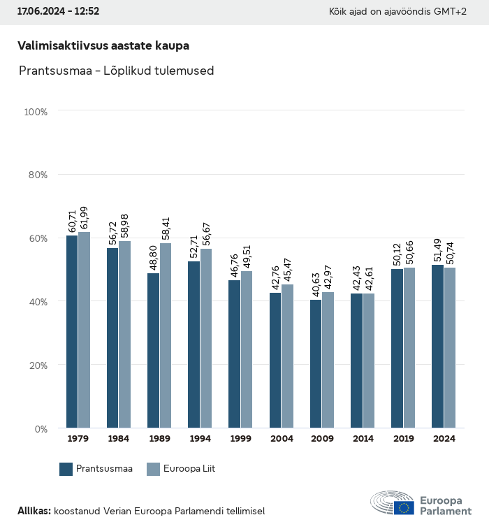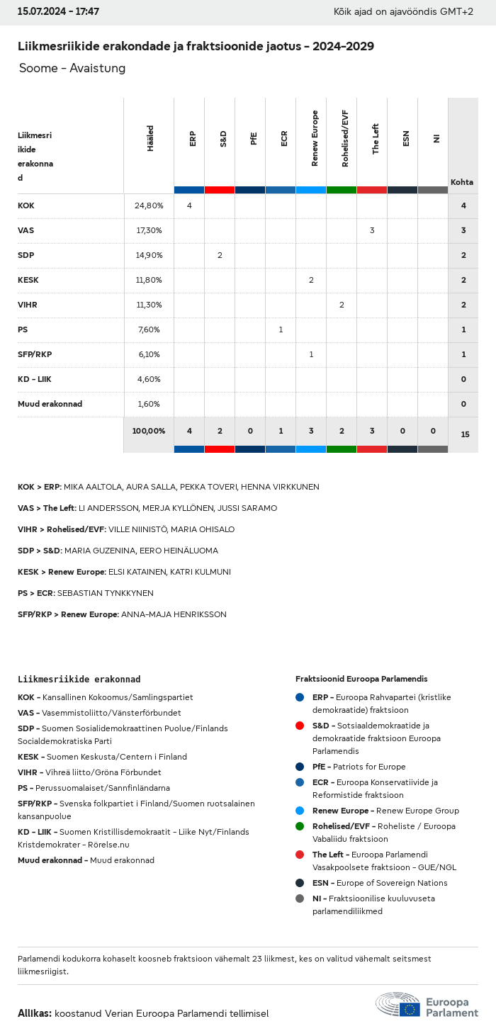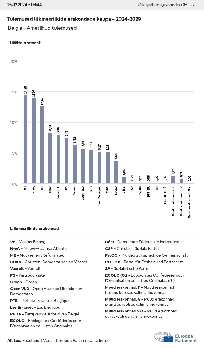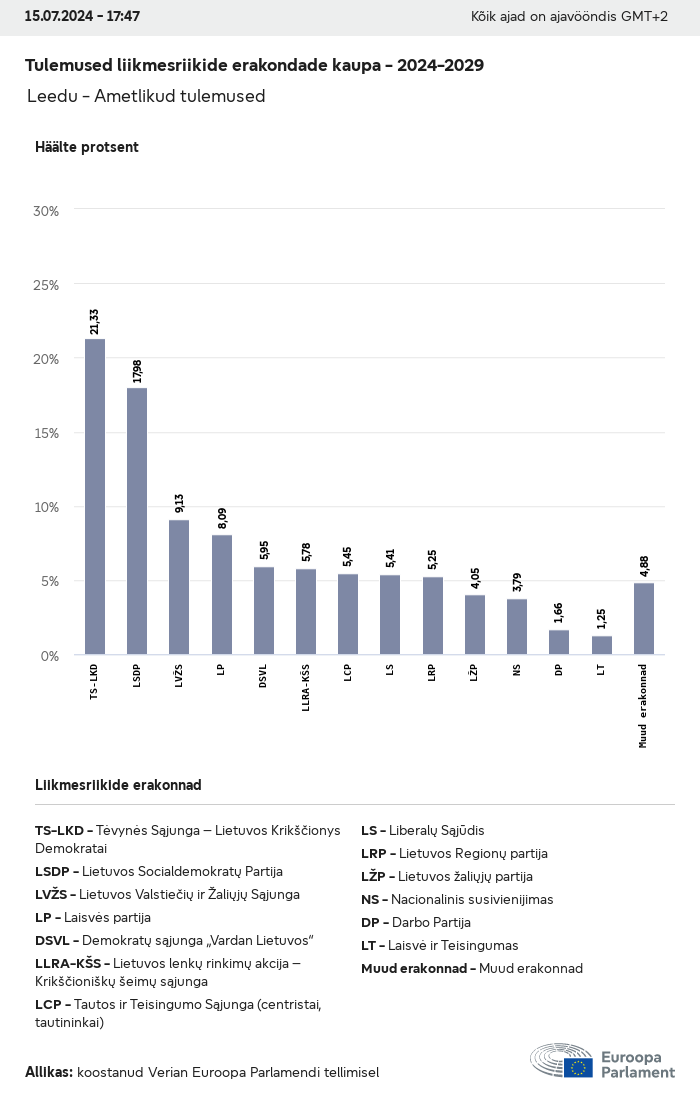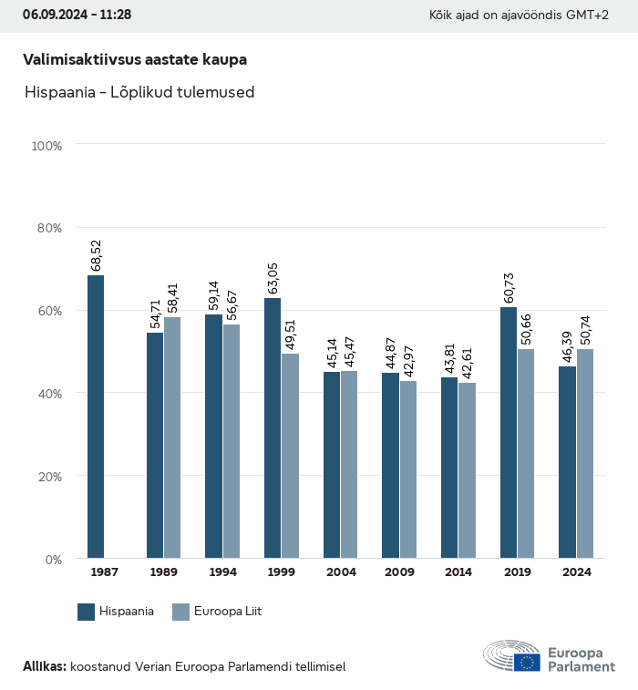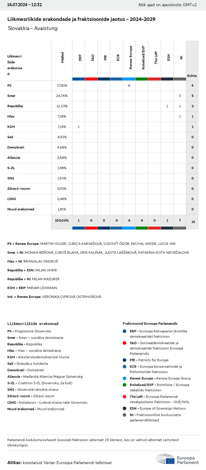 Allpool on kõigis vormingutes allalaadimiseks Euroopa Parlamendi valimiste andmed alates 1979. aastast. Allalaaditavade failide kõrval on digiallkirja koht. Neid allkirju saab kinnitada selle sertifikaadi abil, mida saab omakorda kinnitada järgmise sertifikaadiahela abil. Euroopa Parlamendi 2024. aasta valimiste andmed. json Üldine Sildid (38 Ko) - Allkiri Valimisaktiivsus (32 Ko) - Allkiri Soolise jaotuse andmed (7 Ko) - Allkiri Fraktsioonid (40 Ko) - Allkiri Liikmesriikide erakonnad (110 Ko) - Allkiri Euroopa Parlamendi valimiste andmed (1 Ko) - Allkiri Valimistulemused be (7 Ko) - Allkiri fbe (4 Ko) - Allkiri gbe (2 Ko) - Allkiri wbe (3 Ko) - Allkiri bg (5 Ko) - Allkiri cz (7 Ko) - Allkiri dk (5 Ko) - Allkiri de (8 Ko) - Allkiri ee (4 Ko) - Allkiri ie (5 Ko) - Allkiri el (5 Ko) - Allkiri es (7 Ko) - Allkiri fr (8 Ko) - Allkiri hr (3 Ko) - Allkiri it (6 Ko) - Allkiri cy (3 Ko) - Allkiri lv (5 Ko) - Allkiri lt (5 Ko) - Allkiri lu (4 Ko) - Allkiri hu (5 Ko) - Allkiri mt (2 Ko) - Allkiri nl (6 Ko) - Allkiri at (3 Ko) - Allkiri pl (7 Ko) - Allkiri pt (5 Ko) - Allkiri ro (5 Ko) - Allkiri si (4 Ko) - Allkiri sk (5 Ko) - Allkiri fi (4 Ko) - Allkiri se (4 Ko) - Allkiri xml Üldine Sildid (63 Ko) - Allkiri Valimisaktiivsus (40 Ko) - Allkiri Soolise jaotuse andmed (10 Ko) - Allkiri Fraktsioonid (64 Ko) - Allkiri Liikmesriikide erakonnad (123 Ko) - Allkiri Euroopa Parlamendi valimiste andmed (2 Ko) - Allkiri Valimistulemused be (10 Ko) - Allkiri fbe (6 Ko) - Allkiri gbe (3 Ko) - Allkiri wbe (5 Ko) - Allkiri bg (7 Ko) - Allkiri cz (10 Ko) - Allkiri dk (7 Ko) - Allkiri de (11 Ko) - Allkiri ee (6 Ko) - Allkiri ie (7 Ko) - Allkiri el (7 Ko) - Allkiri es (11 Ko) - Allkiri fr (12 Ko) - Allkiri hr (5 Ko) - Allkiri it (9 Ko) - Allkiri cy (5 Ko) - Allkiri lv (7 Ko) - Allkiri lt (7 Ko) - Allkiri lu (6 Ko) - Allkiri hu (7 Ko) - Allkiri mt (3 Ko) - Allkiri nl (9 Ko) - Allkiri at (5 Ko) - Allkiri pl (10 Ko) - Allkiri pt (7 Ko) - Allkiri ro (8 Ko) - Allkiri si (5 Ko) - Allkiri sk (7 Ko) - Allkiri fi (6 Ko) - Allkiri se (6 Ko) - Allkiri csv Valimisaktiivsus Valimisaktiivsus ELis (1 Ko) - Allkiri Valimisaktiivsus riikide kaupa (5 Ko) - Allkiri Sildid (15 Ko) - Allkiri Soolise jaotuse andmed Sooline jaotus ELis (1 Ko) - Allkiri Sooline jaotus riikide kaupa (2 Ko) - Allkiri Fraktsioonid (16 Ko) - Allkiri Liikmesriikide erakonnad (27 Ko) - Allkiri Tulemused liikmesriikide erakondade kaupa be (1 Ko) - Allkiri fbe (1 Ko) - Allkiri gbe (1 Ko) - Allkiri wbe (1 Ko) - Allkiri bg (1 Ko) - Allkiri cz (1 Ko) - Allkiri dk (1 Ko) - Allkiri de (1 Ko) - Allkiri ee (1 Ko) - Allkiri ie (1 Ko) - Allkiri el (1 Ko) - Allkiri es (1 Ko) - Allkiri fr (1 Ko) - Allkiri hr (1 Ko) - Allkiri it (1 Ko) - Allkiri cy (1 Ko) - Allkiri lv (1 Ko) - Allkiri lt (1 Ko) - Allkiri lu (1 Ko) - Allkiri hu (1 Ko) - Allkiri mt (1 Ko) - Allkiri nl (1 Ko) - Allkiri at (1 Ko) - Allkiri pl (1 Ko) - Allkiri pt (1 Ko) - Allkiri ro (1 Ko) - Allkiri si (1 Ko) - Allkiri sk (1 Ko) - Allkiri fi (1 Ko) - Allkiri se (1 Ko) - Allkiri Tulemused fraktsioonide kaupa EU (1 Ko) - Allkiri be (1 Ko) - Allkiri fbe (1 Ko) - Allkiri gbe (1 Ko) - Allkiri wbe (1 Ko) - Allkiri bg (1 Ko) - Allkiri cz (1 Ko) - Allkiri dk (1 Ko) - Allkiri de (1 Ko) - Allkiri ee (1 Ko) - Allkiri ie (1 Ko) - Allkiri el (1 Ko) - Allkiri es (1 Ko) - Allkiri fr (1 Ko) - Allkiri hr (1 Ko) - Allkiri it (1 Ko) - Allkiri cy (1 Ko) - Allkiri lv (1 Ko) - Allkiri lt (1 Ko) - Allkiri lu (1 Ko) - Allkiri hu (1 Ko) - Allkiri mt (1 Ko) - Allkiri nl (1 Ko) - Allkiri at (1 Ko) - Allkiri pl (1 Ko) - Allkiri pt (1 Ko) - Allkiri ro (1 Ko) - Allkiri si (1 Ko) - Allkiri sk (1 Ko) - Allkiri fi (1 Ko) - Allkiri se (1 Ko) - Allkiri Jaotus liikmesriikide erakondade ja fraktsioonide kaupa be (1 Ko) - Allkiri fbe (1 Ko) - Allkiri gbe (1 Ko) - Allkiri wbe (1 Ko) - Allkiri bg (1 Ko) - Allkiri cz (1 Ko) - Allkiri dk (1 Ko) - Allkiri de (1 Ko) - Allkiri ee (1 Ko) - Allkiri ie (1 Ko) - Allkiri el (1 Ko) - Allkiri es (1 Ko) - Allkiri fr (1 Ko) - Allkiri hr (1 Ko) - Allkiri it (1 Ko) - Allkiri cy (1 Ko) - Allkiri lv (1 Ko) - Allkiri lt (1 Ko) - Allkiri lu (1 Ko) - Allkiri hu (1 Ko) - Allkiri mt (1 Ko) - Allkiri nl (1 Ko) - Allkiri at (1 Ko) - Allkiri pl (1 Ko) - Allkiri pt (1 Ko) - Allkiri ro (1 Ko) - Allkiri si (1 Ko) - Allkiri sk (1 Ko) - Allkiri fi (1 Ko) - Allkiri se (1 Ko) - Allkiri jpg Valimisaktiivsus Valimisaktiivsus aastate kaupa (~30 Ko) Valimisaktiivsus riikide kaupa (~140 Ko) Sooline jaotus Euroopa Parlamendis Sooline jaotus Euroopa Parlamendis riikide kaupa Kaart (~130 Ko) Tulpdiagramm (~80 Ko) Sooline jaotus Euroopa Parlamendis aastate kaupa (~50 Ko) Valimistulemused Üleeuroopalised andmed Istungisaal (~110 Ko) Euroopa Parlament (~250 Ko) Liikmesriikide andmed BE Tulemused liikmesriikide erakondade kaupa (~90 Ko) Kohad fraktsioonide kaupa (~70 Ko) Jaotus liikmesriikide erakondade ja fraktsioonide kaupa (~180 Ko) Sooline jaotus Euroopa Parlamendis aastate kaupa (~50 Ko) Valimisaktiivsus aastate kaupa (~50 Ko) FBE Tulemused liikmesriikide erakondade kaupa (~90 Ko) Kohad fraktsioonide kaupa (~70 Ko) Jaotus liikmesriikide erakondade ja fraktsioonide kaupa (~180 Ko) GBE Tulemused liikmesriikide erakondade kaupa (~90 Ko) Kohad fraktsioonide kaupa (~70 Ko) Jaotus liikmesriikide erakondade ja fraktsioonide kaupa (~180 Ko) WBE Tulemused liikmesriikide erakondade kaupa (~90 Ko) Kohad fraktsioonide kaupa (~70 Ko) Jaotus liikmesriikide erakondade ja fraktsioonide kaupa (~180 Ko) BG Tulemused liikmesriikide erakondade kaupa (~90 Ko) Kohad fraktsioonide kaupa (~70 Ko) Jaotus liikmesriikide erakondade ja fraktsioonide kaupa (~180 Ko) Sooline jaotus Euroopa Parlamendis aastate kaupa (~50 Ko) Valimisaktiivsus aastate kaupa (~50 Ko) CZ Tulemused liikmesriikide erakondade kaupa (~90 Ko) Kohad fraktsioonide kaupa (~70 Ko) Jaotus liikmesriikide erakondade ja fraktsioonide kaupa (~180 Ko) Sooline jaotus Euroopa Parlamendis aastate kaupa (~50 Ko) Valimisaktiivsus aastate kaupa (~50 Ko) DK Tulemused liikmesriikide erakondade kaupa (~90 Ko) K