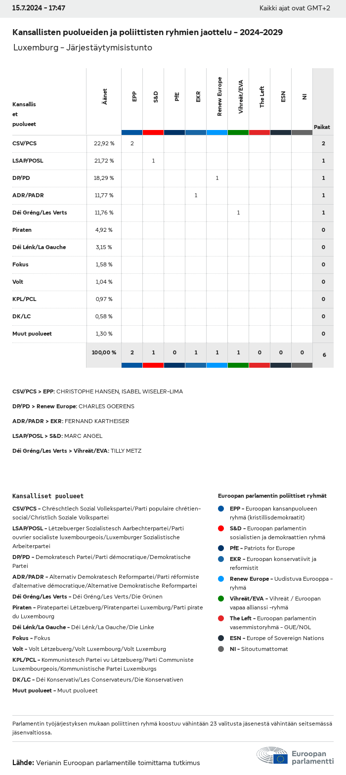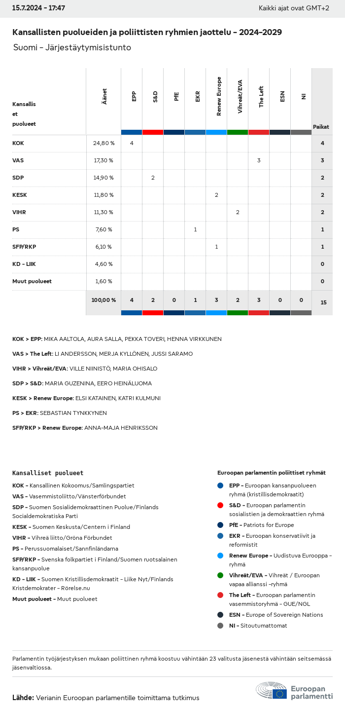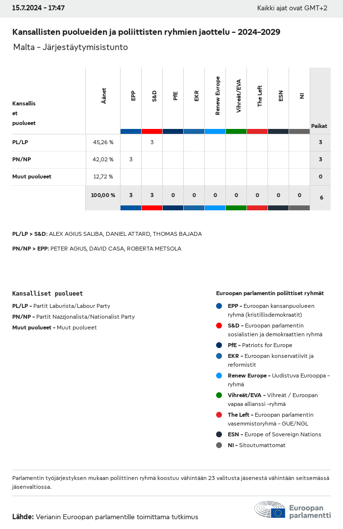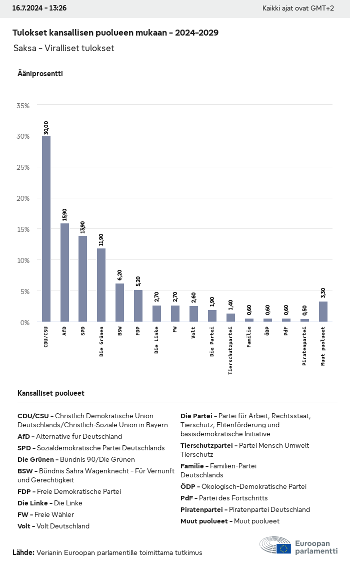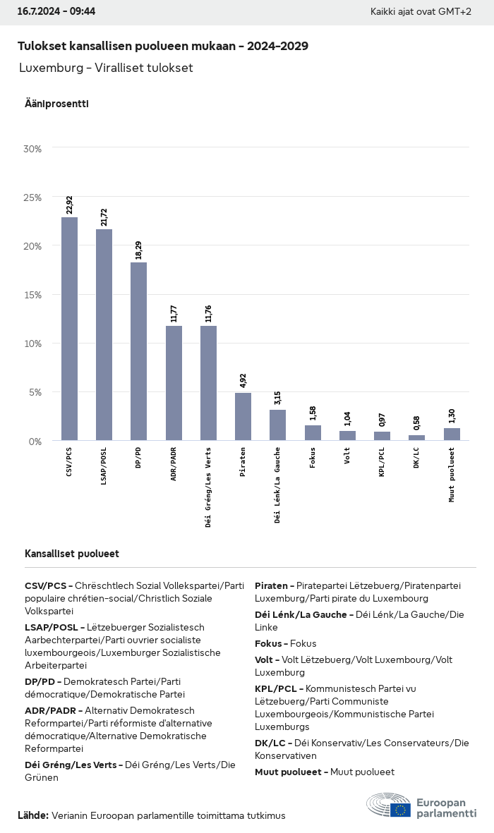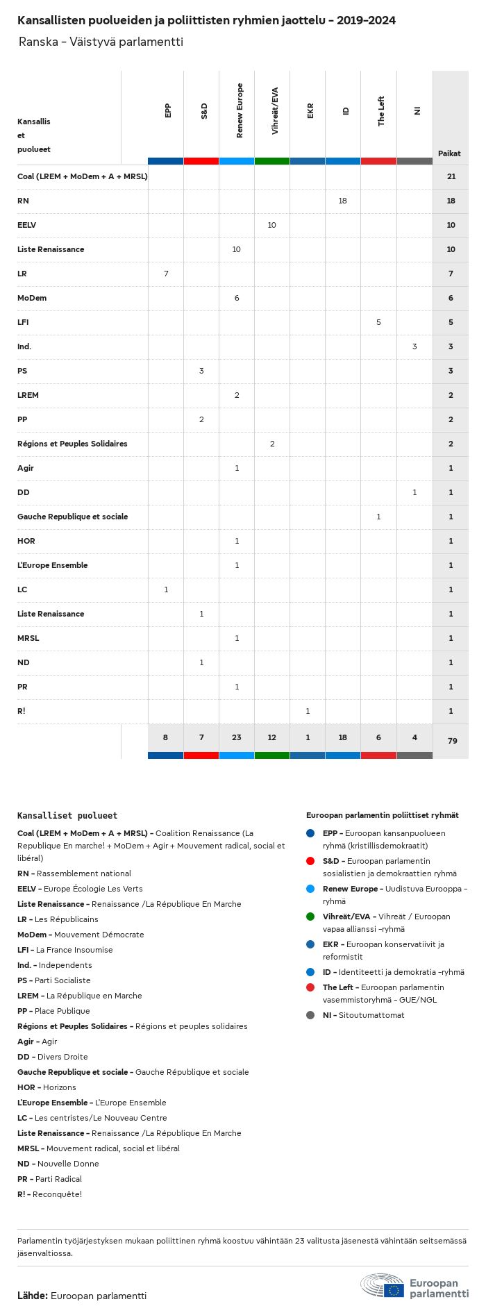 Kaikkien eurovaalien vaalitiedot vuodesta 1979 alkaen voidaan ladata alta erilaisissa tiedostomuodoissa. Huomaa, että ladattavien tiedostojen ohessa on paikka digitaaliselle allekirjoitukselle. Nämä allekirjoitukset voidaan vahvistaa tällä todistuksella, joka voidaan puolestaan vahvistaa seuraavalla todistusketjulla. Tietoa vuoden 2024 EU-vaaleista. json Yleistä Nimikkeet (38 Ko) - Allekirjoitus Äänestysprosentti (32 Ko) - Allekirjoitus Sukupuolijakaumatietoa (7 Ko) - Allekirjoitus Poliittiset ryhmät (40 Ko) - Allekirjoitus Kansalliset puolueet (110 Ko) - Allekirjoitus Tietoa EU-vaaleista (1 Ko) - Allekirjoitus Vaalitulokset be (7 Ko) - Allekirjoitus fbe (4 Ko) - Allekirjoitus gbe (2 Ko) - Allekirjoitus wbe (3 Ko) - Allekirjoitus bg (5 Ko) - Allekirjoitus cz (7 Ko) - Allekirjoitus dk (5 Ko) - Allekirjoitus de (8 Ko) - Allekirjoitus ee (4 Ko) - Allekirjoitus ie (5 Ko) - Allekirjoitus el (5 Ko) - Allekirjoitus es (7 Ko) - Allekirjoitus fr (8 Ko) - Allekirjoitus hr (3 Ko) - Allekirjoitus it (6 Ko) - Allekirjoitus cy (3 Ko) - Allekirjoitus lv (5 Ko) - Allekirjoitus lt (5 Ko) - Allekirjoitus lu (4 Ko) - Allekirjoitus hu (5 Ko) - Allekirjoitus mt (2 Ko) - Allekirjoitus nl (6 Ko) - Allekirjoitus at (3 Ko) - Allekirjoitus pl (7 Ko) - Allekirjoitus pt (5 Ko) - Allekirjoitus ro (5 Ko) - Allekirjoitus si (4 Ko) - Allekirjoitus sk (5 Ko) - Allekirjoitus fi (4 Ko) - Allekirjoitus se (4 Ko) - Allekirjoitus xml Yleistä Nimikkeet (63 Ko) - Allekirjoitus Äänestysprosentti (40 Ko) - Allekirjoitus Sukupuolijakaumatietoa (10 Ko) - Allekirjoitus Poliittiset ryhmät (64 Ko) - Allekirjoitus Kansalliset puolueet (123 Ko) - Allekirjoitus Tietoa EU-vaaleista (2 Ko) - Allekirjoitus Vaalitulokset be (10 Ko) - Allekirjoitus fbe (6 Ko) - Allekirjoitus gbe (3 Ko) - Allekirjoitus wbe (5 Ko) - Allekirjoitus bg (7 Ko) - Allekirjoitus cz (10 Ko) - Allekirjoitus dk (7 Ko) - Allekirjoitus de (11 Ko) - Allekirjoitus ee (6 Ko) - Allekirjoitus ie (7 Ko) - Allekirjoitus el (7 Ko) - Allekirjoitus es (11 Ko) - Allekirjoitus fr (12 Ko) - Allekirjoitus hr (5 Ko) - Allekirjoitus it (9 Ko) - Allekirjoitus cy (5 Ko) - Allekirjoitus lv (7 Ko) - Allekirjoitus lt (7 Ko) - Allekirjoitus lu (6 Ko) - Allekirjoitus hu (7 Ko) - Allekirjoitus mt (3 Ko) - Allekirjoitus nl (9 Ko) - Allekirjoitus at (5 Ko) - Allekirjoitus pl (10 Ko) - Allekirjoitus pt (7 Ko) - Allekirjoitus ro (8 Ko) - Allekirjoitus si (5 Ko) - Allekirjoitus sk (7 Ko) - Allekirjoitus fi (6 Ko) - Allekirjoitus se (6 Ko) - Allekirjoitus csv Äänestysprosentti Äänestysprosentti EU (1 Ko) - Allekirjoitus Äänestysprosentti maittain (5 Ko) - Allekirjoitus Nimikkeet (15 Ko) - Allekirjoitus Sukupuolijakaumatietoa Sukupuolijakauma EU (1 Ko) - Allekirjoitus Sukupuolijakauma maittain (2 Ko) - Allekirjoitus Poliittiset ryhmät (16 Ko) - Allekirjoitus Kansalliset puolueet (27 Ko) - Allekirjoitus Tulokset kansallisen puolueen mukaan be (1 Ko) - Allekirjoitus fbe (1 Ko) - Allekirjoitus gbe (1 Ko) - Allekirjoitus wbe (1 Ko) - Allekirjoitus bg (1 Ko) - Allekirjoitus cz (1 Ko) - Allekirjoitus dk (1 Ko) - Allekirjoitus de (1 Ko) - Allekirjoitus ee (1 Ko) - Allekirjoitus ie (1 Ko) - Allekirjoitus el (1 Ko) - Allekirjoitus es (1 Ko) - Allekirjoitus fr (1 Ko) - Allekirjoitus hr (1 Ko) - Allekirjoitus it (1 Ko) - Allekirjoitus cy (1 Ko) - Allekirjoitus lv (1 Ko) - Allekirjoitus lt (1 Ko) - Allekirjoitus lu (1 Ko) - Allekirjoitus hu (1 Ko) - Allekirjoitus mt (1 Ko) - Allekirjoitus nl (1 Ko) - Allekirjoitus at (1 Ko) - Allekirjoitus pl (1 Ko) - Allekirjoitus pt (1 Ko) - Allekirjoitus ro (1 Ko) - Allekirjoitus si (1 Ko) - Allekirjoitus sk (1 Ko) - Allekirjoitus fi (1 Ko) - Allekirjoitus se (1 Ko) - Allekirjoitus Tulokset poliittisen ryhmän mukaan EU (1 Ko) - Allekirjoitus be (1 Ko) - Allekirjoitus fbe (1 Ko) - Allekirjoitus gbe (1 Ko) - Allekirjoitus wbe (1 Ko) - Allekirjoitus bg (1 Ko) - Allekirjoitus cz (1 Ko) - Allekirjoitus dk (1 Ko) - Allekirjoitus de (1 Ko) - Allekirjoitus ee (1 Ko) - Allekirjoitus ie (1 Ko) - Allekirjoitus el (1 Ko) - Allekirjoitus es (1 Ko) - Allekirjoitus fr (1 Ko) - Allekirjoitus hr (1 Ko) - Allekirjoitus it (1 Ko) - Allekirjoitus cy (1 Ko) - Allekirjoitus lv (1 Ko) - Allekirjoitus lt (1 Ko) - Allekirjoitus lu (1 Ko) - Allekirjoitus hu (1 Ko) - Allekirjoitus mt (1 Ko) - Allekirjoitus nl (1 Ko) - Allekirjoitus at (1 Ko) - Allekirjoitus pl (1 Ko) - Allekirjoitus pt (1 Ko) - Allekirjoitus ro (1 Ko) - Allekirjoitus si (1 Ko) - Allekirjoitus sk (1 Ko) - Allekirjoitus fi (1 Ko) - Allekirjoitus se (1 Ko) - Allekirjoitus Jaottelu kansallisten puolueiden ja poliittisten ryhmien mukaan be (1 Ko) - Allekirjoitus fbe (1 Ko) - Allekirjoitus gbe (1 Ko) - Allekirjoitus wbe (1 Ko) - Allekirjoitus bg (1 Ko) - Allekirjoitus cz (1 Ko) - Allekirjoitus dk (1 Ko) - Allekirjoitus de (1 Ko) - Allekirjoitus ee (1 Ko) - Allekirjoitus ie (1 Ko) - Allekirjoitus el (1 Ko) - Allekirjoitus es (1 Ko) - Allekirjoitus fr (1 Ko) - Allekirjoitus hr (1 Ko) - Allekirjoitus it (1 Ko) - Allekirjoitus cy (1 Ko) - Allekirjoitus lv (1 Ko) - Allekirjoitus lt (1 Ko) - Allekirjoitus lu (1 Ko) - Allekirjoitus hu (1 Ko) - Allekirjoitus mt (1 Ko) - Allekirjoitus nl (1 Ko) - Allekirjoitus at (1 Ko) - Allekirjoitus pl (1 Ko) - Allekirjoitus pt (1 Ko) - Allekirjoitus ro (1 Ko) - Allekirjoitus si (1 Ko) - Allekirjoitus sk (1 Ko) - Allekirjoitus fi (1 Ko) - Allekirjoitus se (1 Ko) - Allekirjoitus jpg Äänestysprosentti Äänestysprosentti vuosittain (~30 Ko) Äänestysprosentti maittain (~140 Ko) Meppien sukupuolijakauma Meppien sukupuolijakauma maittain Kartta (~130 Ko) Pylväsdiagrammi (~80 Ko) Meppien sukupuolijakauma vuosittain (~50 Ko) Vaalitulokset Eurooppaa koskevat tiedot Istuntosali (~110 Ko) Euroopan parlamentti (~250 Ko) Kansalliset tiedot BE Tulokset kansallisen puolueen mukaan (~90 Ko) Paikat poliittisen ryhmän mukaan (~70 Ko) Jaottelu kansallisten puolueiden ja poliittisten ryhmien mukaan (~180 Ko) Meppien sukupuolijakauma vuosittain (~50 Ko) Äänestysprosentti vuosittain (~50 Ko) FBE Tulokset kan