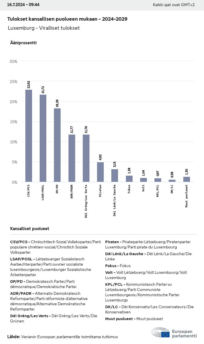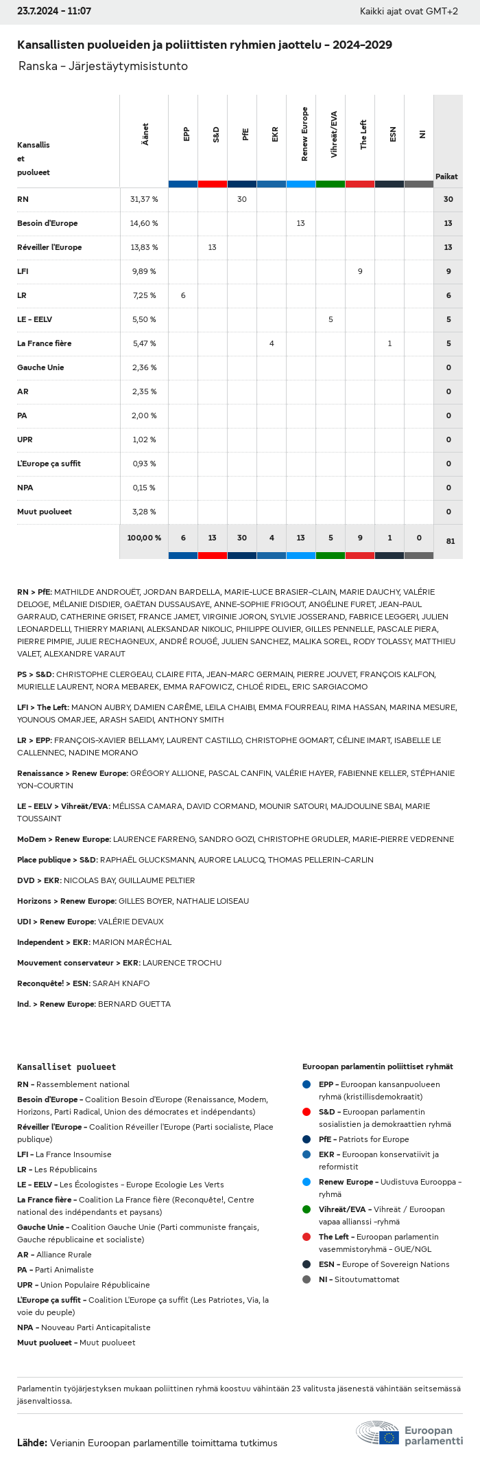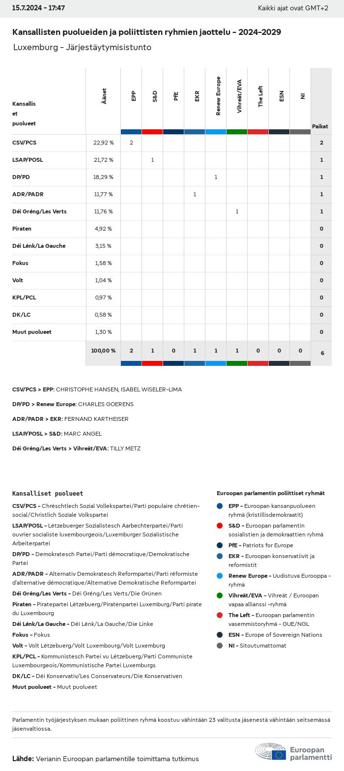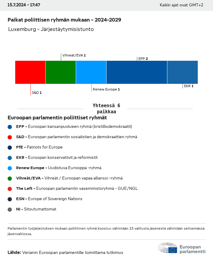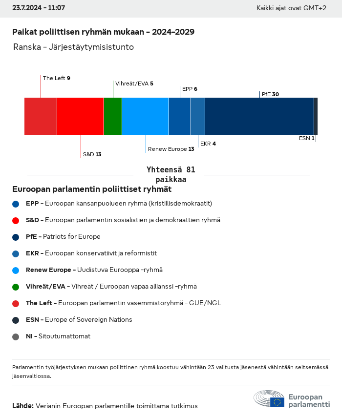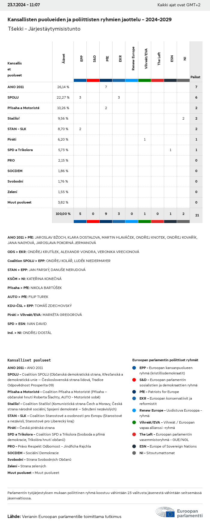 Kaikkien eurovaalien vaalitiedot vuodesta 1979 alkaen voidaan ladata alta erilaisissa tiedostomuodoissa. Huomaa, että ladattavien tiedostojen ohessa on paikka digitaaliselle allekirjoitukselle. Nämä allekirjoitukset voidaan vahvistaa tällä todistuksella, joka voidaan puolestaan vahvistaa seuraavalla todistusketjulla. Tietoa vuoden 2024 EU-vaaleista. json Yleistä Nimikkeet (38 Ko) - Allekirjoitus Äänestysprosentti (32 Ko) - Allekirjoitus Sukupuolijakaumatietoa (7 Ko) - Allekirjoitus Poliittiset ryhmät (40 Ko) - Allekirjoitus Kansalliset puolueet (110 Ko) - Allekirjoitus Tietoa EU-vaaleista (1 Ko) - Allekirjoitus Vaalitulokset be (7 Ko) - Allekirjoitus fbe (4 Ko) - Allekirjoitus gbe (2 Ko) - Allekirjoitus wbe (3 Ko) - Allekirjoitus bg (5 Ko) - Allekirjoitus cz (7 Ko) - Allekirjoitus dk (5 Ko) - Allekirjoitus de (8 Ko) - Allekirjoitus ee (4 Ko) - Allekirjoitus ie (5 Ko) - Allekirjoitus el (5 Ko) - Allekirjoitus es (7 Ko) - Allekirjoitus fr (8 Ko) - Allekirjoitus hr (3 Ko) - Allekirjoitus it (6 Ko) - Allekirjoitus cy (3 Ko) - Allekirjoitus lv (5 Ko) - Allekirjoitus lt (5 Ko) - Allekirjoitus lu (4 Ko) - Allekirjoitus hu (5 Ko) - Allekirjoitus mt (2 Ko) - Allekirjoitus nl (6 Ko) - Allekirjoitus at (3 Ko) - Allekirjoitus pl (7 Ko) - Allekirjoitus pt (5 Ko) - Allekirjoitus ro (5 Ko) - Allekirjoitus si (4 Ko) - Allekirjoitus sk (5 Ko) - Allekirjoitus fi (4 Ko) - Allekirjoitus se (4 Ko) - Allekirjoitus xml Yleistä Nimikkeet (63 Ko) - Allekirjoitus Äänestysprosentti (40 Ko) - Allekirjoitus Sukupuolijakaumatietoa (10 Ko) - Allekirjoitus Poliittiset ryhmät (64 Ko) - Allekirjoitus Kansalliset puolueet (123 Ko) - Allekirjoitus Tietoa EU-vaaleista (2 Ko) - Allekirjoitus Vaalitulokset be (10 Ko) - Allekirjoitus fbe (6 Ko) - Allekirjoitus gbe (3 Ko) - Allekirjoitus wbe (5 Ko) - Allekirjoitus bg (7 Ko) - Allekirjoitus cz (10 Ko) - Allekirjoitus dk (7 Ko) - Allekirjoitus de (11 Ko) - Allekirjoitus ee (6 Ko) - Allekirjoitus ie (7 Ko) - Allekirjoitus el (7 Ko) - Allekirjoitus es (11 Ko) - Allekirjoitus fr (12 Ko) - Allekirjoitus hr (5 Ko) - Allekirjoitus it (9 Ko) - Allekirjoitus cy (5 Ko) - Allekirjoitus lv (7 Ko) - Allekirjoitus lt (7 Ko) - Allekirjoitus lu (6 Ko) - Allekirjoitus hu (7 Ko) - Allekirjoitus mt (3 Ko) - Allekirjoitus nl (9 Ko) - Allekirjoitus at (5 Ko) - Allekirjoitus pl (10 Ko) - Allekirjoitus pt (7 Ko) - Allekirjoitus ro (8 Ko) - Allekirjoitus si (5 Ko) - Allekirjoitus sk (7 Ko) - Allekirjoitus fi (6 Ko) - Allekirjoitus se (6 Ko) - Allekirjoitus csv Äänestysprosentti Äänestysprosentti EU (1 Ko) - Allekirjoitus Äänestysprosentti maittain (5 Ko) - Allekirjoitus Nimikkeet (15 Ko) - Allekirjoitus Sukupuolijakaumatietoa Sukupuolijakauma EU (1 Ko) - Allekirjoitus Sukupuolijakauma maittain (2 Ko) - Allekirjoitus Poliittiset ryhmät (16 Ko) - Allekirjoitus Kansalliset puolueet (27 Ko) - Allekirjoitus Tulokset kansallisen puolueen mukaan be (1 Ko) - Allekirjoitus fbe (1 Ko) - Allekirjoitus gbe (1 Ko) - Allekirjoitus wbe (1 Ko) - Allekirjoitus bg (1 Ko) - Allekirjoitus cz (1 Ko) - Allekirjoitus dk (1 Ko) - Allekirjoitus de (1 Ko) - Allekirjoitus ee (1 Ko) - Allekirjoitus ie (1 Ko) - Allekirjoitus el (1 Ko) - Allekirjoitus es (1 Ko) - Allekirjoitus fr (1 Ko) - Allekirjoitus hr (1 Ko) - Allekirjoitus it (1 Ko) - Allekirjoitus cy (1 Ko) - Allekirjoitus lv (1 Ko) - Allekirjoitus lt (1 Ko) - Allekirjoitus lu (1 Ko) - Allekirjoitus hu (1 Ko) - Allekirjoitus mt (1 Ko) - Allekirjoitus nl (1 Ko) - Allekirjoitus at (1 Ko) - Allekirjoitus pl (1 Ko) - Allekirjoitus pt (1 Ko) - Allekirjoitus ro (1 Ko) - Allekirjoitus si (1 Ko) - Allekirjoitus sk (1 Ko) - Allekirjoitus fi (1 Ko) - Allekirjoitus se (1 Ko) - Allekirjoitus Tulokset poliittisen ryhmän mukaan EU (1 Ko) - Allekirjoitus be (1 Ko) - Allekirjoitus fbe (1 Ko) - Allekirjoitus gbe (1 Ko) - Allekirjoitus wbe (1 Ko) - Allekirjoitus bg (1 Ko) - Allekirjoitus cz (1 Ko) - Allekirjoitus dk (1 Ko) - Allekirjoitus de (1 Ko) - Allekirjoitus ee (1 Ko) - Allekirjoitus ie (1 Ko) - Allekirjoitus el (1 Ko) - Allekirjoitus es (1 Ko) - Allekirjoitus fr (1 Ko) - Allekirjoitus hr (1 Ko) - Allekirjoitus it (1 Ko) - Allekirjoitus cy (1 Ko) - Allekirjoitus lv (1 Ko) - Allekirjoitus lt (1 Ko) - Allekirjoitus lu (1 Ko) - Allekirjoitus hu (1 Ko) - Allekirjoitus mt (1 Ko) - Allekirjoitus nl (1 Ko) - Allekirjoitus at (1 Ko) - Allekirjoitus pl (1 Ko) - Allekirjoitus pt (1 Ko) - Allekirjoitus ro (1 Ko) - Allekirjoitus si (1 Ko) - Allekirjoitus sk (1 Ko) - Allekirjoitus fi (1 Ko) - Allekirjoitus se (1 Ko) - Allekirjoitus Jaottelu kansallisten puolueiden ja poliittisten ryhmien mukaan be (1 Ko) - Allekirjoitus fbe (1 Ko) - Allekirjoitus gbe (1 Ko) - Allekirjoitus wbe (1 Ko) - Allekirjoitus bg (1 Ko) - Allekirjoitus cz (1 Ko) - Allekirjoitus dk (1 Ko) - Allekirjoitus de (1 Ko) - Allekirjoitus ee (1 Ko) - Allekirjoitus ie (1 Ko) - Allekirjoitus el (1 Ko) - Allekirjoitus es (1 Ko) - Allekirjoitus fr (1 Ko) - Allekirjoitus hr (1 Ko) - Allekirjoitus it (1 Ko) - Allekirjoitus cy (1 Ko) - Allekirjoitus lv (1 Ko) - Allekirjoitus lt (1 Ko) - Allekirjoitus lu (1 Ko) - Allekirjoitus hu (1 Ko) - Allekirjoitus mt (1 Ko) - Allekirjoitus nl (1 Ko) - Allekirjoitus at (1 Ko) - Allekirjoitus pl (1 Ko) - Allekirjoitus pt (1 Ko) - Allekirjoitus ro (1 Ko) - Allekirjoitus si (1 Ko) - Allekirjoitus sk (1 Ko) - Allekirjoitus fi (1 Ko) - Allekirjoitus se (1 Ko) - Allekirjoitus jpg Äänestysprosentti Äänestysprosentti vuosittain (~30 Ko) Äänestysprosentti maittain (~140 Ko) Meppien sukupuolijakauma Meppien sukupuolijakauma maittain Kartta (~130 Ko) Pylväsdiagrammi (~80 Ko) Meppien sukupuolijakauma vuosittain (~50 Ko) Vaalitulokset Eurooppaa koskevat tiedot Istuntosali (~110 Ko) Euroopan parlamentti (~250 Ko) Kansalliset tiedot BE Tulokset kansallisen puolueen mukaan (~90 Ko) Paikat poliittisen ryhmän mukaan (~70 Ko) Jaottelu kansallisten puolueiden ja poliittisten ryhmien mukaan (~180 Ko) Meppien sukupuolijakauma vuosittain (~50 Ko) Äänestysprosentti vuosittain (~50 Ko) FBE Tulokset kan
