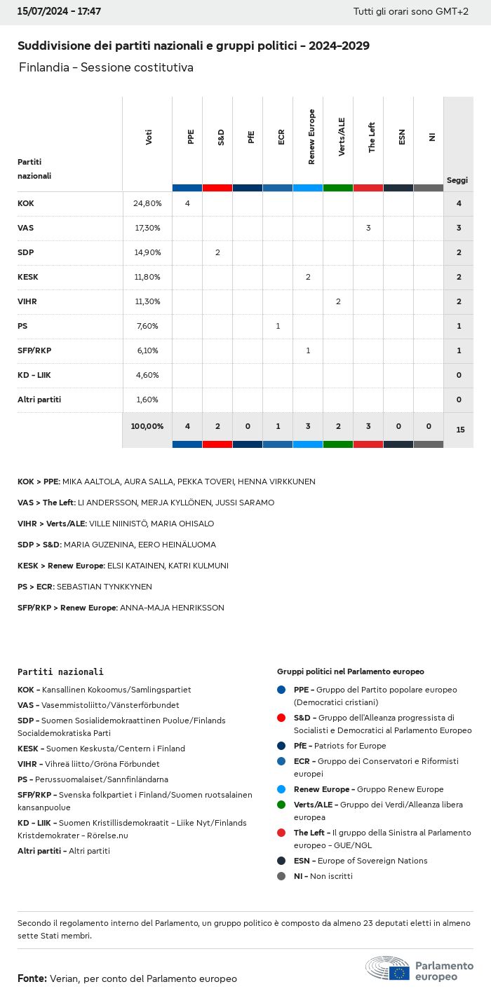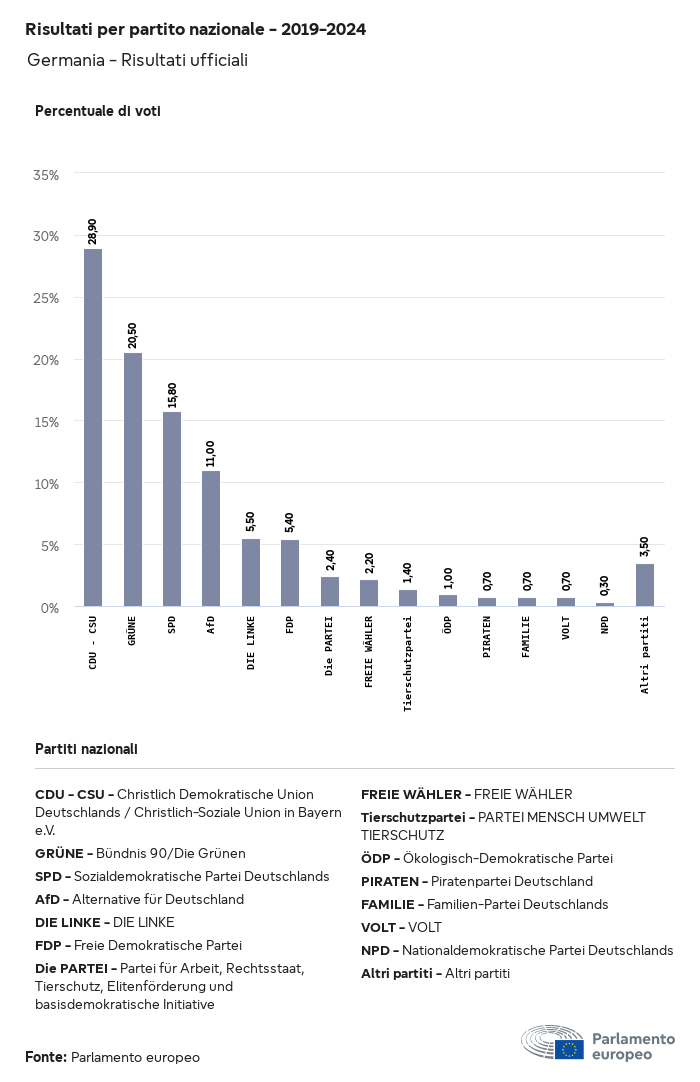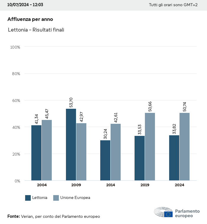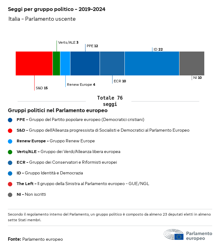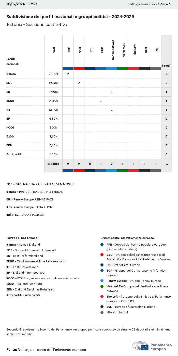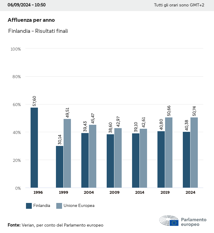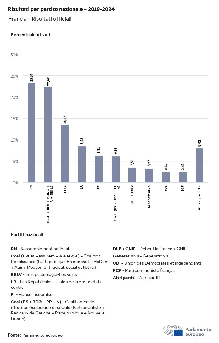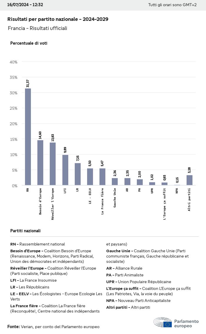 I dati elettorali, per tutte le elezioni europee dal 1979, possono essere scaricati qui sotto in diversi formati. Tenere presente che i file disponibili per il download vengono forniti con una firma digitale accanto ad essi. Le firme possono essere convalidate utilizzando questo certificato, che a sua volta può essere convalidato utilizzando la seguente catena di certificati. Dati delle elezioni europee del 2024. json Comune Etichette (38 Ko) - Firma Affluenza (32 Ko) - Firma Dati sull'equilibrio di genere (7 Ko) - Firma Gruppi politici (40 Ko) - Firma Partiti nazionali (110 Ko) - Firma Dati delle elezioni europee (1 Ko) - Firma Risultati delle elezioni be (7 Ko) - Firma fbe (4 Ko) - Firma gbe (2 Ko) - Firma wbe (3 Ko) - Firma bg (5 Ko) - Firma cz (7 Ko) - Firma dk (5 Ko) - Firma de (8 Ko) - Firma ee (4 Ko) - Firma ie (5 Ko) - Firma el (5 Ko) - Firma es (7 Ko) - Firma fr (8 Ko) - Firma hr (3 Ko) - Firma it (6 Ko) - Firma cy (3 Ko) - Firma lv (5 Ko) - Firma lt (5 Ko) - Firma lu (4 Ko) - Firma hu (5 Ko) - Firma mt (2 Ko) - Firma nl (6 Ko) - Firma at (3 Ko) - Firma pl (7 Ko) - Firma pt (5 Ko) - Firma ro (5 Ko) - Firma si (4 Ko) - Firma sk (5 Ko) - Firma fi (4 Ko) - Firma se (4 Ko) - Firma xml Comune Etichette (63 Ko) - Firma Affluenza (40 Ko) - Firma Dati sull'equilibrio di genere (10 Ko) - Firma Gruppi politici (64 Ko) - Firma Partiti nazionali (123 Ko) - Firma Dati delle elezioni europee (2 Ko) - Firma Risultati delle elezioni be (10 Ko) - Firma fbe (6 Ko) - Firma gbe (3 Ko) - Firma wbe (5 Ko) - Firma bg (7 Ko) - Firma cz (10 Ko) - Firma dk (7 Ko) - Firma de (11 Ko) - Firma ee (6 Ko) - Firma ie (7 Ko) - Firma el (7 Ko) - Firma es (11 Ko) - Firma fr (12 Ko) - Firma hr (5 Ko) - Firma it (9 Ko) - Firma cy (5 Ko) - Firma lv (7 Ko) - Firma lt (7 Ko) - Firma lu (6 Ko) - Firma hu (7 Ko) - Firma mt (3 Ko) - Firma nl (9 Ko) - Firma at (5 Ko) - Firma pl (10 Ko) - Firma pt (7 Ko) - Firma ro (8 Ko) - Firma si (5 Ko) - Firma sk (7 Ko) - Firma fi (6 Ko) - Firma se (6 Ko) - Firma csv Affluenza Affluenza UE (1 Ko) - Firma Affluenza per paese (5 Ko) - Firma Etichette (15 Ko) - Firma Dati sull'equilibrio di genere Equilibrio di genere UE (1 Ko) - Firma Equilibrio di genere per paese (2 Ko) - Firma Gruppi politici (16 Ko) - Firma Partiti nazionali (27 Ko) - Firma Risultati per partito nazionale be (1 Ko) - Firma fbe (1 Ko) - Firma gbe (1 Ko) - Firma wbe (1 Ko) - Firma bg (1 Ko) - Firma cz (1 Ko) - Firma dk (1 Ko) - Firma de (1 Ko) - Firma ee (1 Ko) - Firma ie (1 Ko) - Firma el (1 Ko) - Firma es (1 Ko) - Firma fr (1 Ko) - Firma hr (1 Ko) - Firma it (1 Ko) - Firma cy (1 Ko) - Firma lv (1 Ko) - Firma lt (1 Ko) - Firma lu (1 Ko) - Firma hu (1 Ko) - Firma mt (1 Ko) - Firma nl (1 Ko) - Firma at (1 Ko) - Firma pl (1 Ko) - Firma pt (1 Ko) - Firma ro (1 Ko) - Firma si (1 Ko) - Firma sk (1 Ko) - Firma fi (1 Ko) - Firma se (1 Ko) - Firma Risultati per gruppo politico EU (1 Ko) - Firma be (1 Ko) - Firma fbe (1 Ko) - Firma gbe (1 Ko) - Firma wbe (1 Ko) - Firma bg (1 Ko) - Firma cz (1 Ko) - Firma dk (1 Ko) - Firma de (1 Ko) - Firma ee (1 Ko) - Firma ie (1 Ko) - Firma el (1 Ko) - Firma es (1 Ko) - Firma fr (1 Ko) - Firma hr (1 Ko) - Firma it (1 Ko) - Firma cy (1 Ko) - Firma lv (1 Ko) - Firma lt (1 Ko) - Firma lu (1 Ko) - Firma hu (1 Ko) - Firma mt (1 Ko) - Firma nl (1 Ko) - Firma at (1 Ko) - Firma pl (1 Ko) - Firma pt (1 Ko) - Firma ro (1 Ko) - Firma si (1 Ko) - Firma sk (1 Ko) - Firma fi (1 Ko) - Firma se (1 Ko) - Firma Suddivisione per partiti nazionali e gruppi politici be (1 Ko) - Firma fbe (1 Ko) - Firma gbe (1 Ko) - Firma wbe (1 Ko) - Firma bg (1 Ko) - Firma cz (1 Ko) - Firma dk (1 Ko) - Firma de (1 Ko) - Firma ee (1 Ko) - Firma ie (1 Ko) - Firma el (1 Ko) - Firma es (1 Ko) - Firma fr (1 Ko) - Firma hr (1 Ko) - Firma it (1 Ko) - Firma cy (1 Ko) - Firma lv (1 Ko) - Firma lt (1 Ko) - Firma lu (1 Ko) - Firma hu (1 Ko) - Firma mt (1 Ko) - Firma nl (1 Ko) - Firma at (1 Ko) - Firma pl (1 Ko) - Firma pt (1 Ko) - Firma ro (1 Ko) - Firma si (1 Ko) - Firma sk (1 Ko) - Firma fi (1 Ko) - Firma se (1 Ko) - Firma jpg Affluenza Affluenza per anno (~30 Ko) Affluenza per paese (~140 Ko) Equilibrio di genere degli eurodeputati Equilibrio di genere degli eurodeputati per paese Mappa (~130 Ko) Grafico a barre (~80 Ko) Equilibrio di genere degli eurodeputati per anno (~50 Ko) Risultati delle elezioni Dati europei Emiciclo (~110 Ko) Parlamento europeo (~250 Ko) Dati nazionali BE Risultati per partito nazionale (~90 Ko) Seggi per gruppo politico (~70 Ko) Suddivisione per partiti nazionali e gruppi politici (~180 Ko) Equilibrio di genere degli eurodeputati per anno (~50 Ko) Affluenza per anno (~50 Ko) FBE Risultati per partito nazionale (~90 Ko) Seggi per gruppo politico (~70 Ko) Suddivisione per partiti nazionali e gruppi politici (~180 Ko) GBE Risultati per partito nazionale (~90 Ko) Seggi per gruppo politico (~70 Ko) Suddivisione per partiti nazionali e gruppi politici (~180 Ko) WBE Risultati per partito nazionale (~90 Ko) Seggi per gruppo politico (~70 Ko) Suddivisione per partiti nazionali e gruppi politici (~180 Ko) BG Risultati per partito nazionale (~90 Ko) Seggi per gruppo politico (~70 Ko) Suddivisione per partiti nazionali e gruppi politici (~180 Ko) Equilibrio di genere degli eurodeputati per anno (~50 Ko) Affluenza per anno (~50 Ko) CZ Risultati per partito nazionale (~90 Ko) Seggi per gruppo politico (~70 Ko) Suddivisione per partiti nazionali e gruppi politici (~180 Ko) Equilibrio di genere degli eurodeputati per anno (~50 Ko) Affluenza per anno (~50 Ko) DK Risultati per partito nazionale (~90 Ko) Seggi per gruppo politico (~70 Ko) Suddivisione per partiti nazionali e gruppi politici (~180 Ko) Equilibrio di genere degli eurodeputati per anno (~50 Ko) Affluenza per anno (~50 Ko) DE Risultati per partito nazionale (~90 Ko) Seggi per gruppo politico (~70 Ko) Suddivisione per partiti nazionali e gruppi politici (~180 Ko) Equilibrio di genere degli eurodeputati per anno (~50 Ko) Affluenza per anno (~50 Ko) EE Risultati per parti