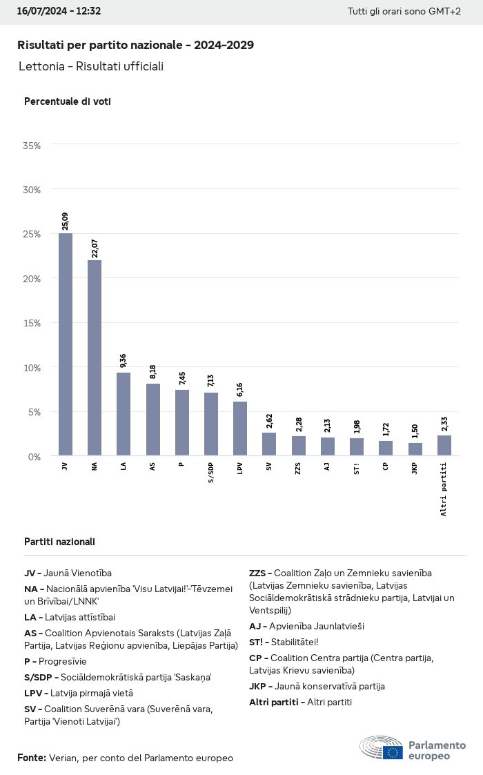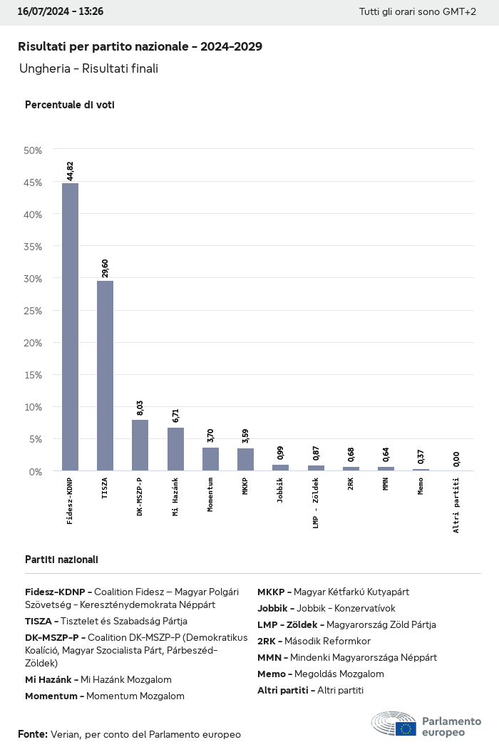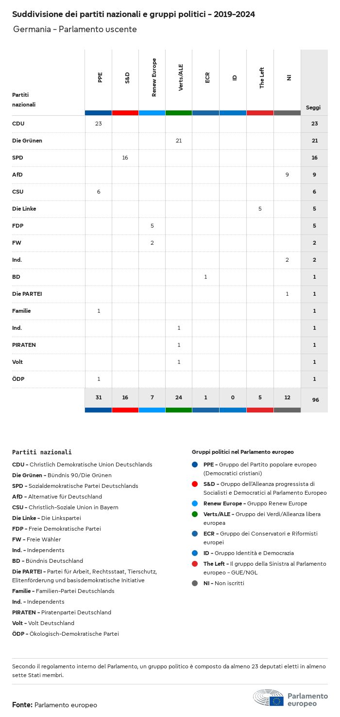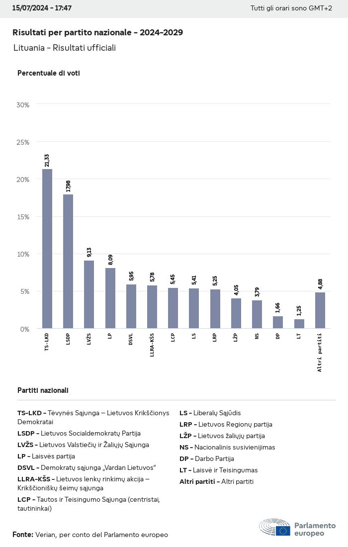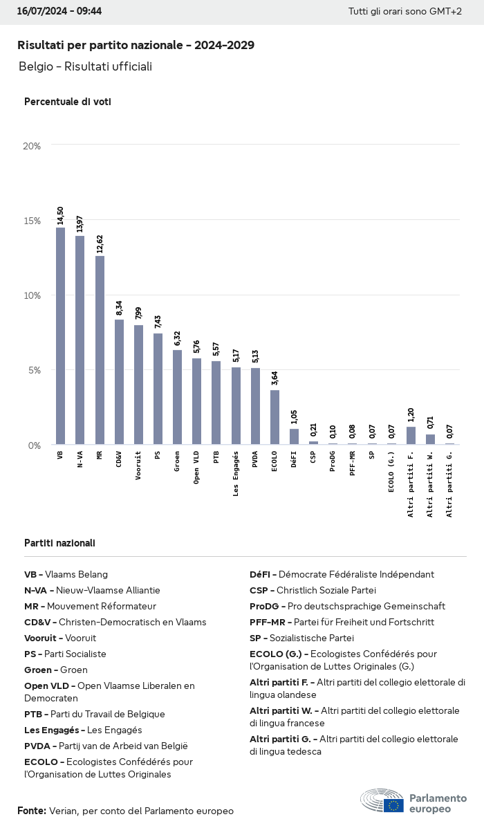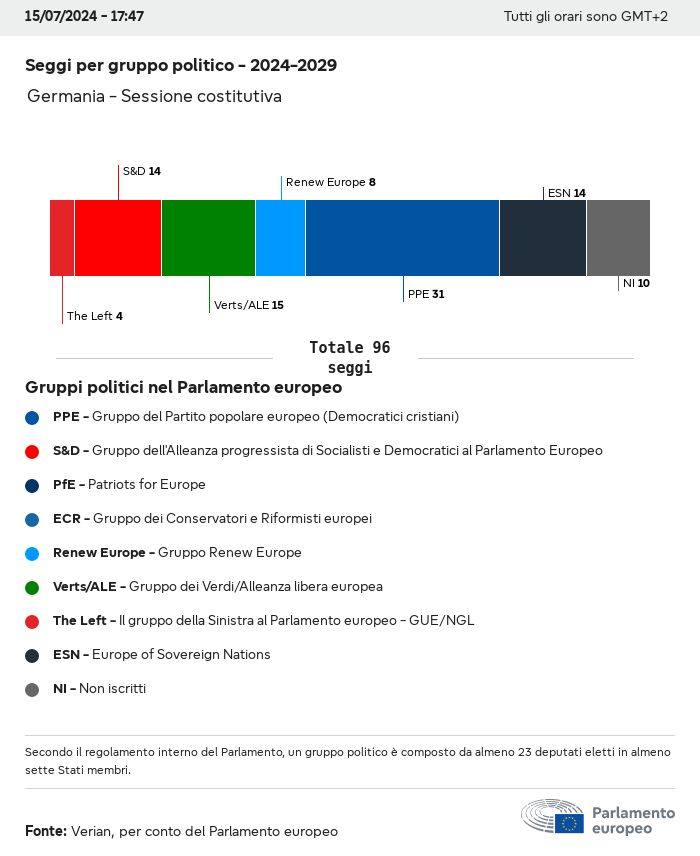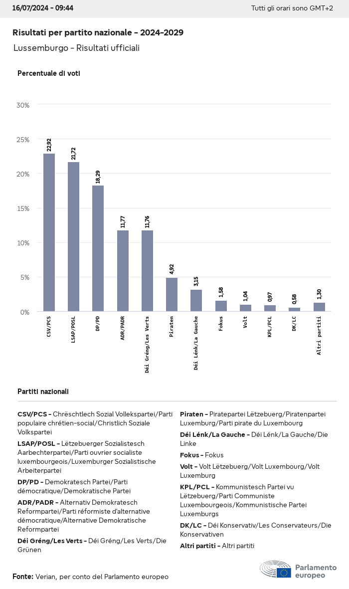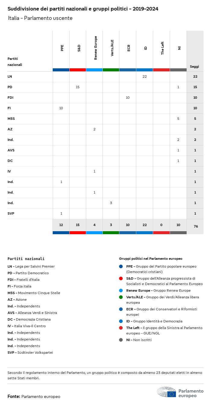 I dati elettorali, per tutte le elezioni europee dal 1979, possono essere scaricati qui sotto in diversi formati. Tenere presente che i file disponibili per il download vengono forniti con una firma digitale accanto ad essi. Le firme possono essere convalidate utilizzando questo certificato, che a sua volta può essere convalidato utilizzando la seguente catena di certificati. Dati delle elezioni europee del 2024. json Comune Etichette (38 Ko) - Firma Affluenza (32 Ko) - Firma Dati sull'equilibrio di genere (7 Ko) - Firma Gruppi politici (40 Ko) - Firma Partiti nazionali (110 Ko) - Firma Dati delle elezioni europee (1 Ko) - Firma Risultati delle elezioni be (7 Ko) - Firma fbe (4 Ko) - Firma gbe (2 Ko) - Firma wbe (3 Ko) - Firma bg (5 Ko) - Firma cz (7 Ko) - Firma dk (5 Ko) - Firma de (8 Ko) - Firma ee (4 Ko) - Firma ie (5 Ko) - Firma el (5 Ko) - Firma es (7 Ko) - Firma fr (8 Ko) - Firma hr (3 Ko) - Firma it (6 Ko) - Firma cy (3 Ko) - Firma lv (5 Ko) - Firma lt (5 Ko) - Firma lu (4 Ko) - Firma hu (5 Ko) - Firma mt (2 Ko) - Firma nl (6 Ko) - Firma at (3 Ko) - Firma pl (7 Ko) - Firma pt (5 Ko) - Firma ro (5 Ko) - Firma si (4 Ko) - Firma sk (5 Ko) - Firma fi (4 Ko) - Firma se (4 Ko) - Firma xml Comune Etichette (63 Ko) - Firma Affluenza (40 Ko) - Firma Dati sull'equilibrio di genere (10 Ko) - Firma Gruppi politici (64 Ko) - Firma Partiti nazionali (123 Ko) - Firma Dati delle elezioni europee (2 Ko) - Firma Risultati delle elezioni be (10 Ko) - Firma fbe (6 Ko) - Firma gbe (3 Ko) - Firma wbe (5 Ko) - Firma bg (7 Ko) - Firma cz (10 Ko) - Firma dk (7 Ko) - Firma de (11 Ko) - Firma ee (6 Ko) - Firma ie (7 Ko) - Firma el (7 Ko) - Firma es (11 Ko) - Firma fr (12 Ko) - Firma hr (5 Ko) - Firma it (9 Ko) - Firma cy (5 Ko) - Firma lv (7 Ko) - Firma lt (7 Ko) - Firma lu (6 Ko) - Firma hu (7 Ko) - Firma mt (3 Ko) - Firma nl (9 Ko) - Firma at (5 Ko) - Firma pl (10 Ko) - Firma pt (7 Ko) - Firma ro (8 Ko) - Firma si (5 Ko) - Firma sk (7 Ko) - Firma fi (6 Ko) - Firma se (6 Ko) - Firma csv Affluenza Affluenza UE (1 Ko) - Firma Affluenza per paese (5 Ko) - Firma Etichette (15 Ko) - Firma Dati sull'equilibrio di genere Equilibrio di genere UE (1 Ko) - Firma Equilibrio di genere per paese (2 Ko) - Firma Gruppi politici (16 Ko) - Firma Partiti nazionali (27 Ko) - Firma Risultati per partito nazionale be (1 Ko) - Firma fbe (1 Ko) - Firma gbe (1 Ko) - Firma wbe (1 Ko) - Firma bg (1 Ko) - Firma cz (1 Ko) - Firma dk (1 Ko) - Firma de (1 Ko) - Firma ee (1 Ko) - Firma ie (1 Ko) - Firma el (1 Ko) - Firma es (1 Ko) - Firma fr (1 Ko) - Firma hr (1 Ko) - Firma it (1 Ko) - Firma cy (1 Ko) - Firma lv (1 Ko) - Firma lt (1 Ko) - Firma lu (1 Ko) - Firma hu (1 Ko) - Firma mt (1 Ko) - Firma nl (1 Ko) - Firma at (1 Ko) - Firma pl (1 Ko) - Firma pt (1 Ko) - Firma ro (1 Ko) - Firma si (1 Ko) - Firma sk (1 Ko) - Firma fi (1 Ko) - Firma se (1 Ko) - Firma Risultati per gruppo politico EU (1 Ko) - Firma be (1 Ko) - Firma fbe (1 Ko) - Firma gbe (1 Ko) - Firma wbe (1 Ko) - Firma bg (1 Ko) - Firma cz (1 Ko) - Firma dk (1 Ko) - Firma de (1 Ko) - Firma ee (1 Ko) - Firma ie (1 Ko) - Firma el (1 Ko) - Firma es (1 Ko) - Firma fr (1 Ko) - Firma hr (1 Ko) - Firma it (1 Ko) - Firma cy (1 Ko) - Firma lv (1 Ko) - Firma lt (1 Ko) - Firma lu (1 Ko) - Firma hu (1 Ko) - Firma mt (1 Ko) - Firma nl (1 Ko) - Firma at (1 Ko) - Firma pl (1 Ko) - Firma pt (1 Ko) - Firma ro (1 Ko) - Firma si (1 Ko) - Firma sk (1 Ko) - Firma fi (1 Ko) - Firma se (1 Ko) - Firma Suddivisione per partiti nazionali e gruppi politici be (1 Ko) - Firma fbe (1 Ko) - Firma gbe (1 Ko) - Firma wbe (1 Ko) - Firma bg (1 Ko) - Firma cz (1 Ko) - Firma dk (1 Ko) - Firma de (1 Ko) - Firma ee (1 Ko) - Firma ie (1 Ko) - Firma el (1 Ko) - Firma es (1 Ko) - Firma fr (1 Ko) - Firma hr (1 Ko) - Firma it (1 Ko) - Firma cy (1 Ko) - Firma lv (1 Ko) - Firma lt (1 Ko) - Firma lu (1 Ko) - Firma hu (1 Ko) - Firma mt (1 Ko) - Firma nl (1 Ko) - Firma at (1 Ko) - Firma pl (1 Ko) - Firma pt (1 Ko) - Firma ro (1 Ko) - Firma si (1 Ko) - Firma sk (1 Ko) - Firma fi (1 Ko) - Firma se (1 Ko) - Firma jpg Affluenza Affluenza per anno (~30 Ko) Affluenza per paese (~140 Ko) Equilibrio di genere degli eurodeputati Equilibrio di genere degli eurodeputati per paese Mappa (~130 Ko) Grafico a barre (~80 Ko) Equilibrio di genere degli eurodeputati per anno (~50 Ko) Risultati delle elezioni Dati europei Emiciclo (~110 Ko) Parlamento europeo (~250 Ko) Dati nazionali BE Risultati per partito nazionale (~90 Ko) Seggi per gruppo politico (~70 Ko) Suddivisione per partiti nazionali e gruppi politici (~180 Ko) Equilibrio di genere degli eurodeputati per anno (~50 Ko) Affluenza per anno (~50 Ko) FBE Risultati per partito nazionale (~90 Ko) Seggi per gruppo politico (~70 Ko) Suddivisione per partiti nazionali e gruppi politici (~180 Ko) GBE Risultati per partito nazionale (~90 Ko) Seggi per gruppo politico (~70 Ko) Suddivisione per partiti nazionali e gruppi politici (~180 Ko) WBE Risultati per partito nazionale (~90 Ko) Seggi per gruppo politico (~70 Ko) Suddivisione per partiti nazionali e gruppi politici (~180 Ko) BG Risultati per partito nazionale (~90 Ko) Seggi per gruppo politico (~70 Ko) Suddivisione per partiti nazionali e gruppi politici (~180 Ko) Equilibrio di genere degli eurodeputati per anno (~50 Ko) Affluenza per anno (~50 Ko) CZ Risultati per partito nazionale (~90 Ko) Seggi per gruppo politico (~70 Ko) Suddivisione per partiti nazionali e gruppi politici (~180 Ko) Equilibrio di genere degli eurodeputati per anno (~50 Ko) Affluenza per anno (~50 Ko) DK Risultati per partito nazionale (~90 Ko) Seggi per gruppo politico (~70 Ko) Suddivisione per partiti nazionali e gruppi politici (~180 Ko) Equilibrio di genere degli eurodeputati per anno (~50 Ko) Affluenza per anno (~50 Ko) DE Risultati per partito nazionale (~90 Ko) Seggi per gruppo politico (~70 Ko) Suddivisione per partiti nazionali e gruppi politici (~180 Ko) Equilibrio di genere degli eurodeputati per anno (~50 Ko) Affluenza per anno (~50 Ko) EE Risultati per parti