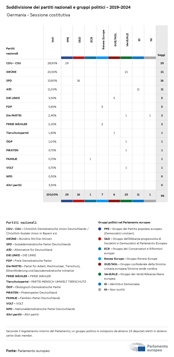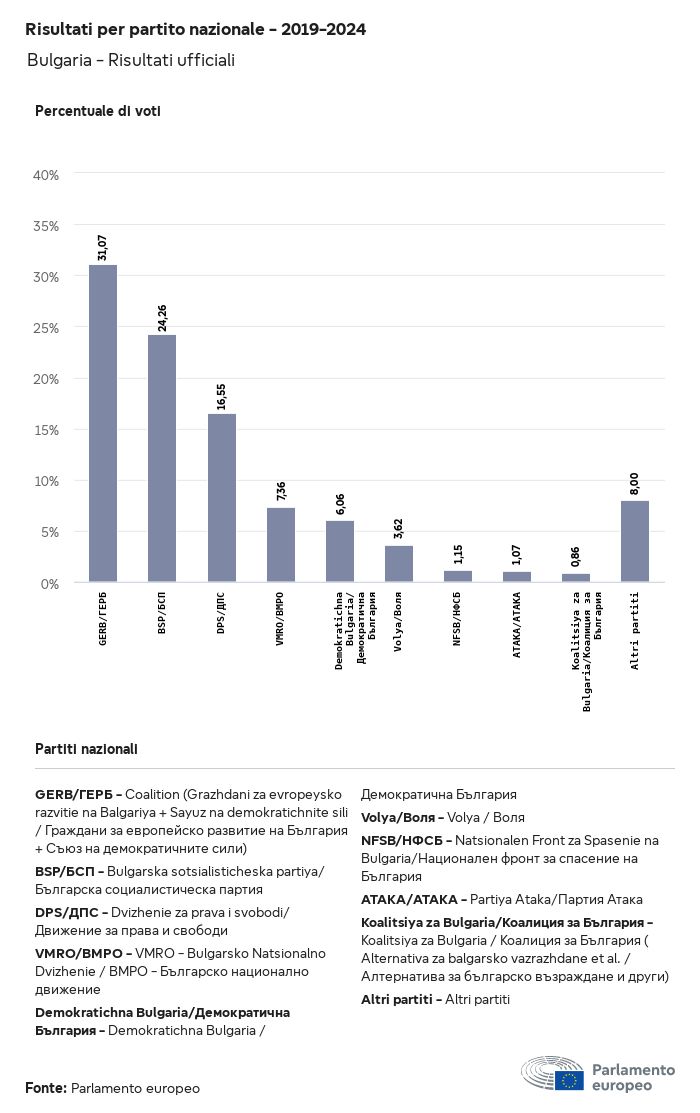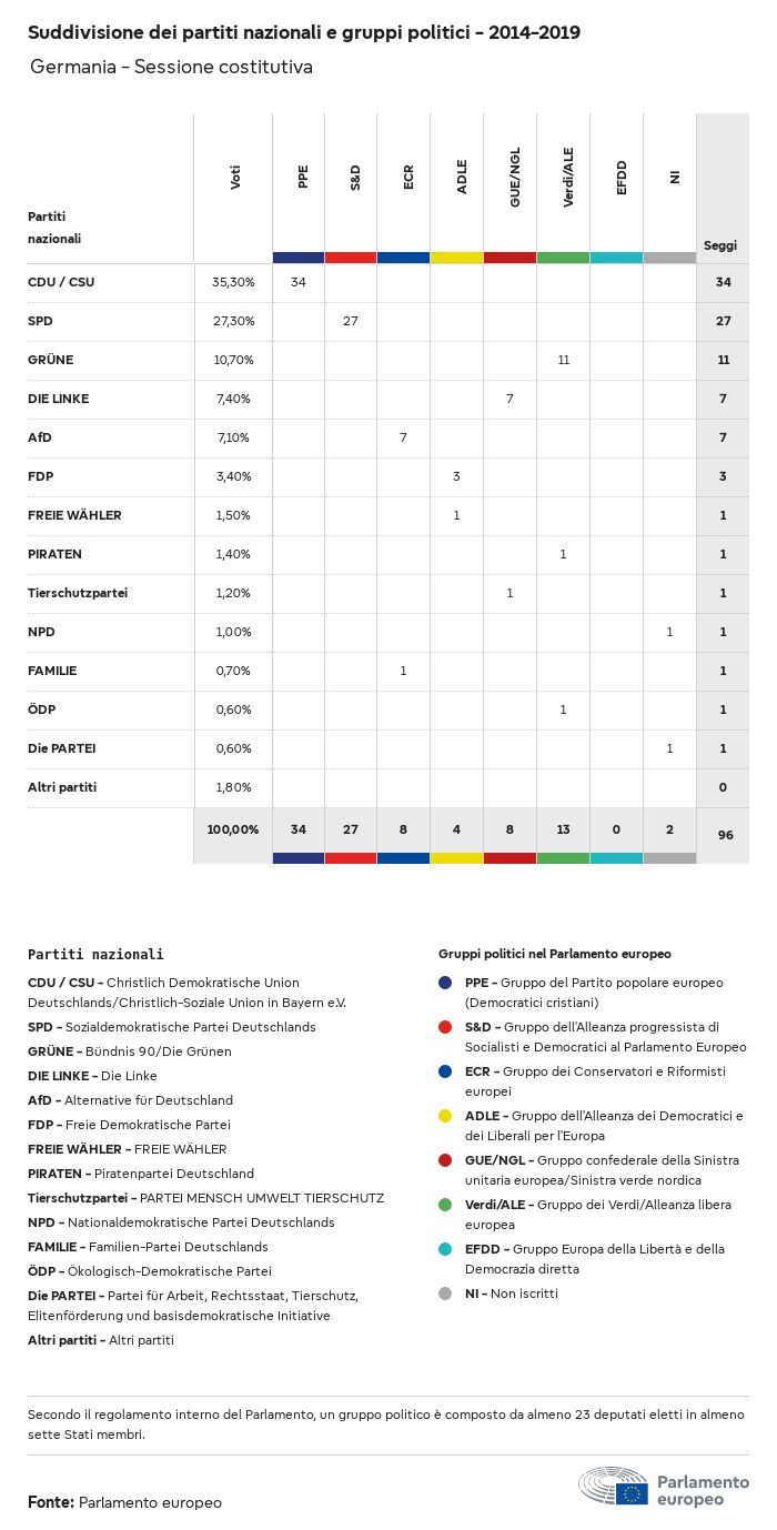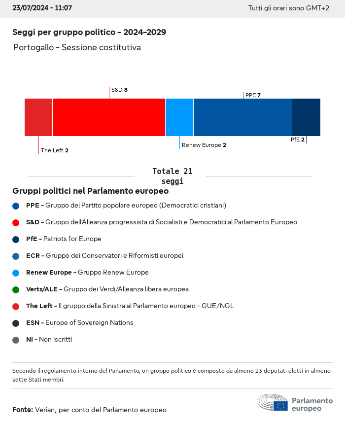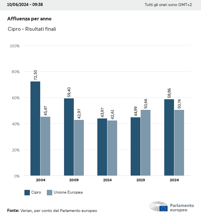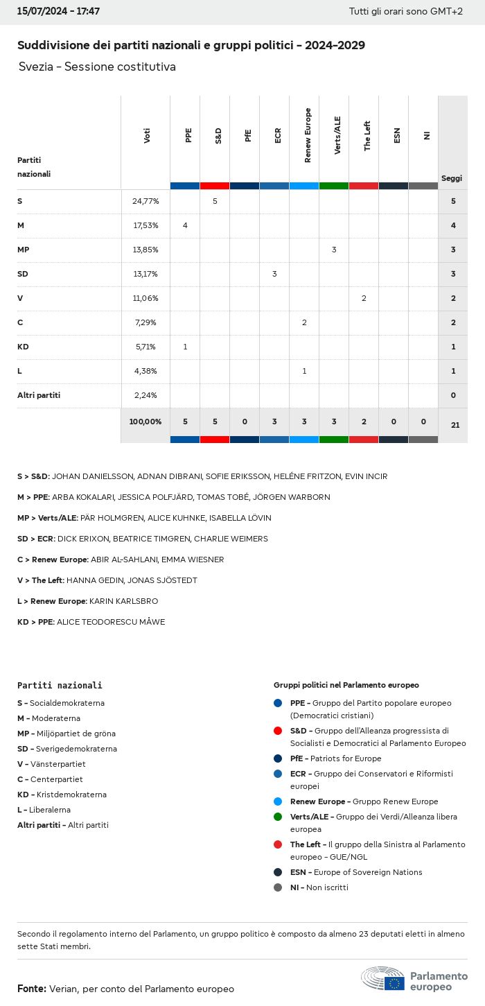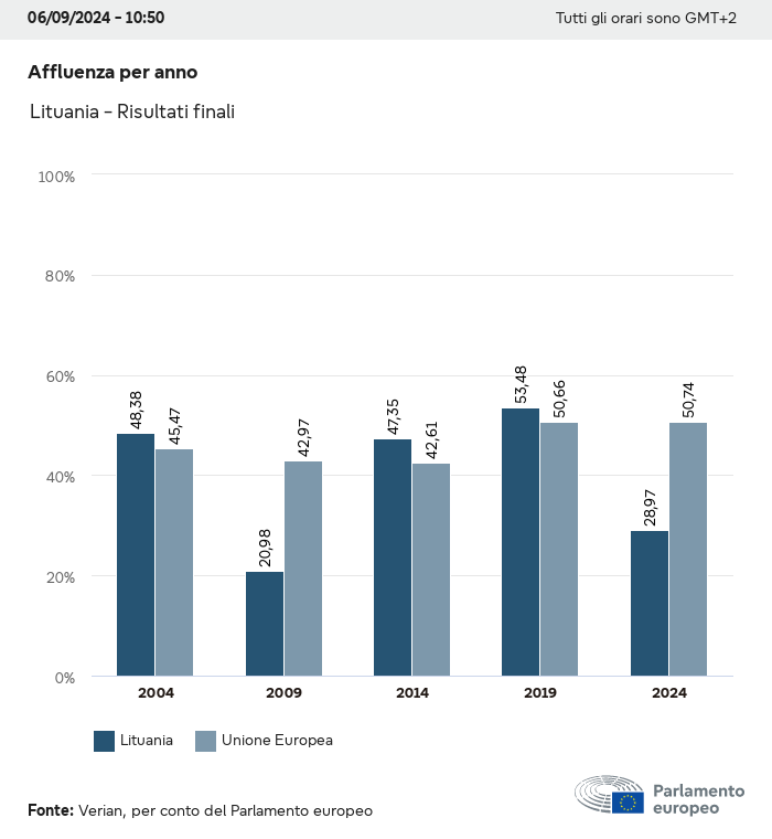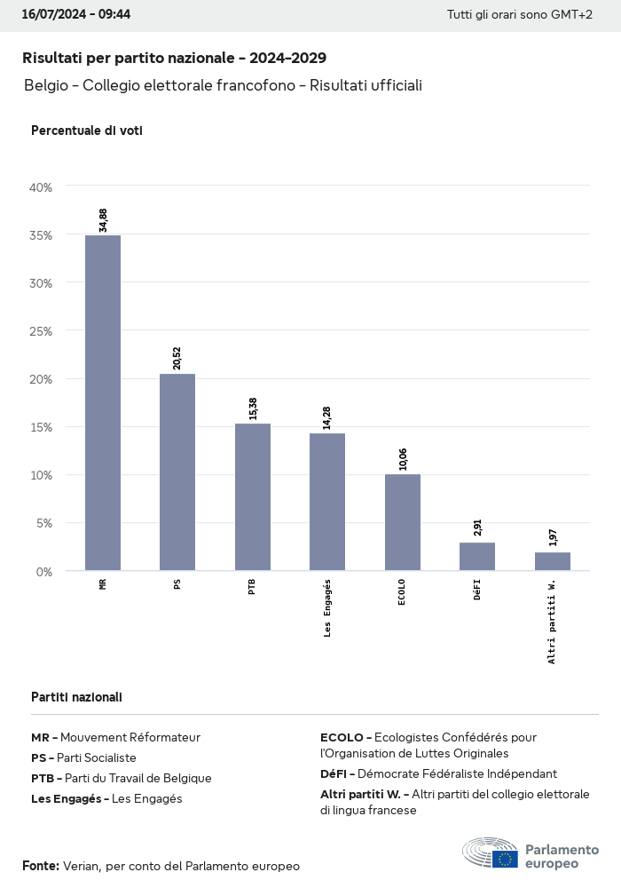 I dati elettorali, per tutte le elezioni europee dal 1979, possono essere scaricati qui sotto in diversi formati. Tenere presente che i file disponibili per il download vengono forniti con una firma digitale accanto ad essi. Le firme possono essere convalidate utilizzando questo certificato, che a sua volta può essere convalidato utilizzando la seguente catena di certificati. Dati delle elezioni europee del 2024. json Comune Etichette (38 Ko) - Firma Affluenza (32 Ko) - Firma Dati sull'equilibrio di genere (7 Ko) - Firma Gruppi politici (40 Ko) - Firma Partiti nazionali (110 Ko) - Firma Dati delle elezioni europee (1 Ko) - Firma Risultati delle elezioni be (7 Ko) - Firma fbe (4 Ko) - Firma gbe (2 Ko) - Firma wbe (3 Ko) - Firma bg (5 Ko) - Firma cz (7 Ko) - Firma dk (5 Ko) - Firma de (8 Ko) - Firma ee (4 Ko) - Firma ie (5 Ko) - Firma el (5 Ko) - Firma es (7 Ko) - Firma fr (8 Ko) - Firma hr (3 Ko) - Firma it (6 Ko) - Firma cy (3 Ko) - Firma lv (5 Ko) - Firma lt (5 Ko) - Firma lu (4 Ko) - Firma hu (5 Ko) - Firma mt (2 Ko) - Firma nl (6 Ko) - Firma at (3 Ko) - Firma pl (7 Ko) - Firma pt (5 Ko) - Firma ro (5 Ko) - Firma si (4 Ko) - Firma sk (5 Ko) - Firma fi (4 Ko) - Firma se (4 Ko) - Firma xml Comune Etichette (63 Ko) - Firma Affluenza (40 Ko) - Firma Dati sull'equilibrio di genere (10 Ko) - Firma Gruppi politici (64 Ko) - Firma Partiti nazionali (123 Ko) - Firma Dati delle elezioni europee (2 Ko) - Firma Risultati delle elezioni be (10 Ko) - Firma fbe (6 Ko) - Firma gbe (3 Ko) - Firma wbe (5 Ko) - Firma bg (7 Ko) - Firma cz (10 Ko) - Firma dk (7 Ko) - Firma de (11 Ko) - Firma ee (6 Ko) - Firma ie (7 Ko) - Firma el (7 Ko) - Firma es (11 Ko) - Firma fr (12 Ko) - Firma hr (5 Ko) - Firma it (9 Ko) - Firma cy (5 Ko) - Firma lv (7 Ko) - Firma lt (7 Ko) - Firma lu (6 Ko) - Firma hu (7 Ko) - Firma mt (3 Ko) - Firma nl (9 Ko) - Firma at (5 Ko) - Firma pl (10 Ko) - Firma pt (7 Ko) - Firma ro (8 Ko) - Firma si (5 Ko) - Firma sk (7 Ko) - Firma fi (6 Ko) - Firma se (6 Ko) - Firma csv Affluenza Affluenza UE (1 Ko) - Firma Affluenza per paese (5 Ko) - Firma Etichette (15 Ko) - Firma Dati sull'equilibrio di genere Equilibrio di genere UE (1 Ko) - Firma Equilibrio di genere per paese (2 Ko) - Firma Gruppi politici (16 Ko) - Firma Partiti nazionali (27 Ko) - Firma Risultati per partito nazionale be (1 Ko) - Firma fbe (1 Ko) - Firma gbe (1 Ko) - Firma wbe (1 Ko) - Firma bg (1 Ko) - Firma cz (1 Ko) - Firma dk (1 Ko) - Firma de (1 Ko) - Firma ee (1 Ko) - Firma ie (1 Ko) - Firma el (1 Ko) - Firma es (1 Ko) - Firma fr (1 Ko) - Firma hr (1 Ko) - Firma it (1 Ko) - Firma cy (1 Ko) - Firma lv (1 Ko) - Firma lt (1 Ko) - Firma lu (1 Ko) - Firma hu (1 Ko) - Firma mt (1 Ko) - Firma nl (1 Ko) - Firma at (1 Ko) - Firma pl (1 Ko) - Firma pt (1 Ko) - Firma ro (1 Ko) - Firma si (1 Ko) - Firma sk (1 Ko) - Firma fi (1 Ko) - Firma se (1 Ko) - Firma Risultati per gruppo politico EU (1 Ko) - Firma be (1 Ko) - Firma fbe (1 Ko) - Firma gbe (1 Ko) - Firma wbe (1 Ko) - Firma bg (1 Ko) - Firma cz (1 Ko) - Firma dk (1 Ko) - Firma de (1 Ko) - Firma ee (1 Ko) - Firma ie (1 Ko) - Firma el (1 Ko) - Firma es (1 Ko) - Firma fr (1 Ko) - Firma hr (1 Ko) - Firma it (1 Ko) - Firma cy (1 Ko) - Firma lv (1 Ko) - Firma lt (1 Ko) - Firma lu (1 Ko) - Firma hu (1 Ko) - Firma mt (1 Ko) - Firma nl (1 Ko) - Firma at (1 Ko) - Firma pl (1 Ko) - Firma pt (1 Ko) - Firma ro (1 Ko) - Firma si (1 Ko) - Firma sk (1 Ko) - Firma fi (1 Ko) - Firma se (1 Ko) - Firma Suddivisione per partiti nazionali e gruppi politici be (1 Ko) - Firma fbe (1 Ko) - Firma gbe (1 Ko) - Firma wbe (1 Ko) - Firma bg (1 Ko) - Firma cz (1 Ko) - Firma dk (1 Ko) - Firma de (1 Ko) - Firma ee (1 Ko) - Firma ie (1 Ko) - Firma el (1 Ko) - Firma es (1 Ko) - Firma fr (1 Ko) - Firma hr (1 Ko) - Firma it (1 Ko) - Firma cy (1 Ko) - Firma lv (1 Ko) - Firma lt (1 Ko) - Firma lu (1 Ko) - Firma hu (1 Ko) - Firma mt (1 Ko) - Firma nl (1 Ko) - Firma at (1 Ko) - Firma pl (1 Ko) - Firma pt (1 Ko) - Firma ro (1 Ko) - Firma si (1 Ko) - Firma sk (1 Ko) - Firma fi (1 Ko) - Firma se (1 Ko) - Firma jpg Affluenza Affluenza per anno (~30 Ko) Affluenza per paese (~140 Ko) Equilibrio di genere degli eurodeputati Equilibrio di genere degli eurodeputati per paese Mappa (~130 Ko) Grafico a barre (~80 Ko) Equilibrio di genere degli eurodeputati per anno (~50 Ko) Risultati delle elezioni Dati europei Emiciclo (~110 Ko) Parlamento europeo (~250 Ko) Dati nazionali BE Risultati per partito nazionale (~90 Ko) Seggi per gruppo politico (~70 Ko) Suddivisione per partiti nazionali e gruppi politici (~180 Ko) Equilibrio di genere degli eurodeputati per anno (~50 Ko) Affluenza per anno (~50 Ko) FBE Risultati per partito nazionale (~90 Ko) Seggi per gruppo politico (~70 Ko) Suddivisione per partiti nazionali e gruppi politici (~180 Ko) GBE Risultati per partito nazionale (~90 Ko) Seggi per gruppo politico (~70 Ko) Suddivisione per partiti nazionali e gruppi politici (~180 Ko) WBE Risultati per partito nazionale (~90 Ko) Seggi per gruppo politico (~70 Ko) Suddivisione per partiti nazionali e gruppi politici (~180 Ko) BG Risultati per partito nazionale (~90 Ko) Seggi per gruppo politico (~70 Ko) Suddivisione per partiti nazionali e gruppi politici (~180 Ko) Equilibrio di genere degli eurodeputati per anno (~50 Ko) Affluenza per anno (~50 Ko) CZ Risultati per partito nazionale (~90 Ko) Seggi per gruppo politico (~70 Ko) Suddivisione per partiti nazionali e gruppi politici (~180 Ko) Equilibrio di genere degli eurodeputati per anno (~50 Ko) Affluenza per anno (~50 Ko) DK Risultati per partito nazionale (~90 Ko) Seggi per gruppo politico (~70 Ko) Suddivisione per partiti nazionali e gruppi politici (~180 Ko) Equilibrio di genere degli eurodeputati per anno (~50 Ko) Affluenza per anno (~50 Ko) DE Risultati per partito nazionale (~90 Ko) Seggi per gruppo politico (~70 Ko) Suddivisione per partiti nazionali e gruppi politici (~180 Ko) Equilibrio di genere degli eurodeputati per anno (~50 Ko) Affluenza per anno (~50 Ko) EE Risultati per parti