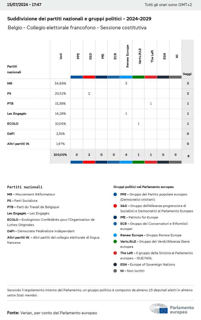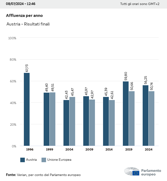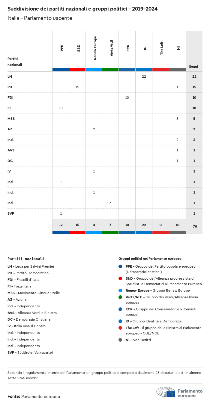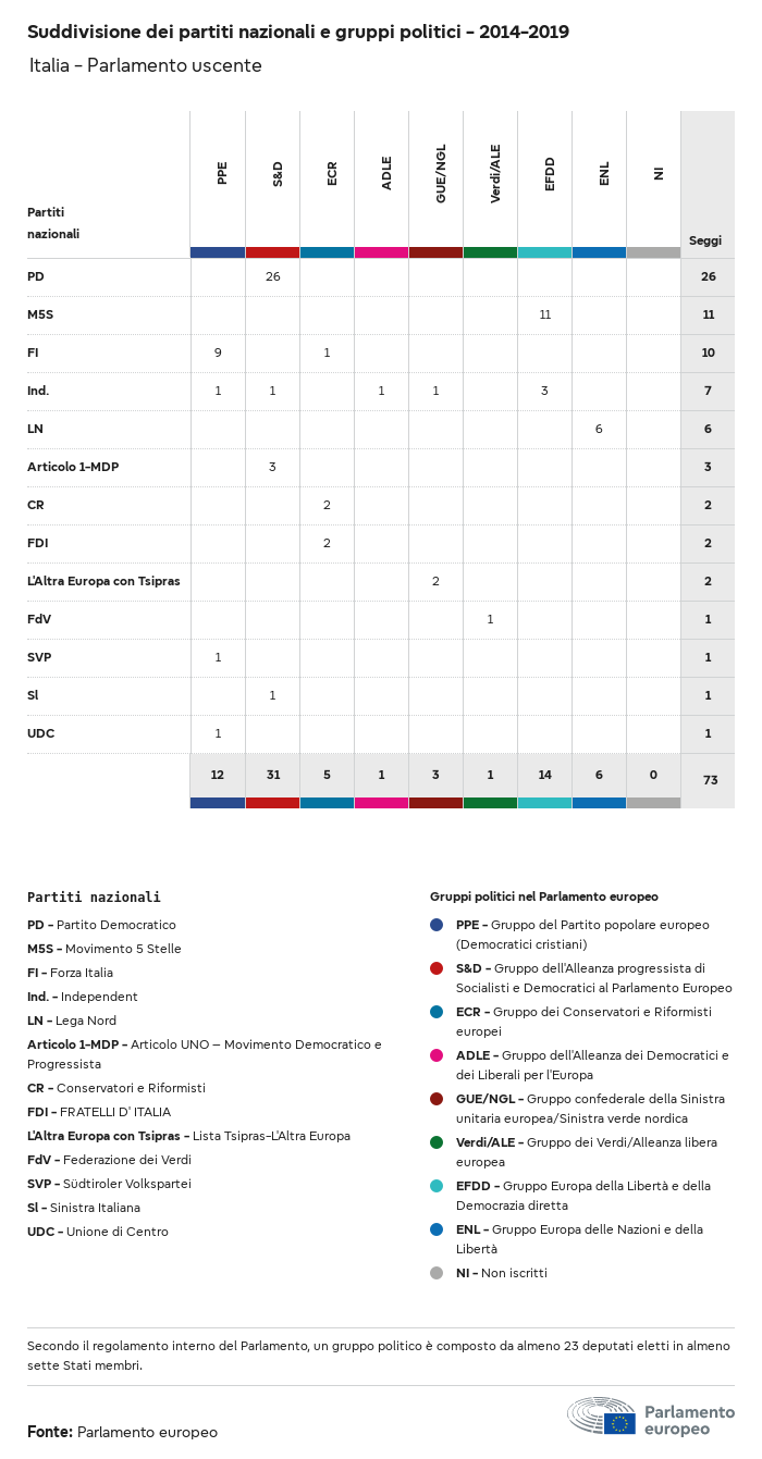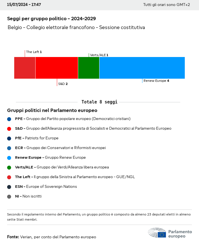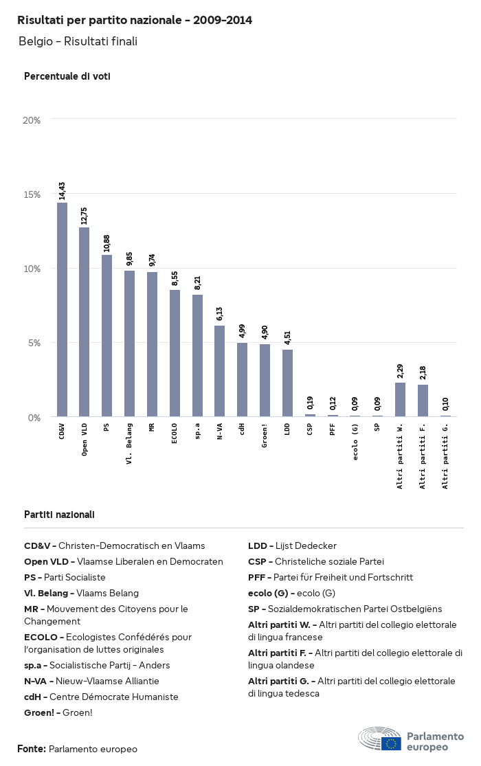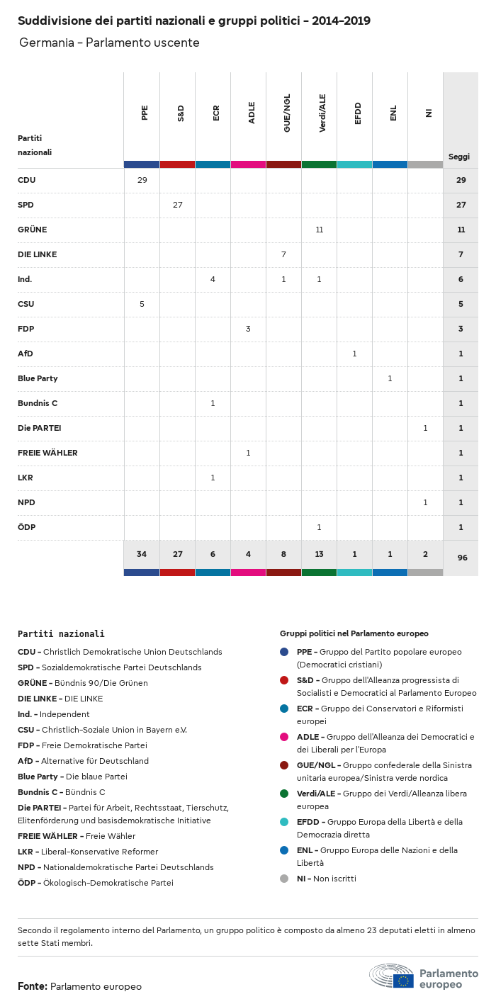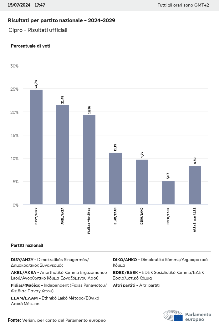 I dati elettorali, per tutte le elezioni europee dal 1979, possono essere scaricati qui sotto in diversi formati. Tenere presente che i file disponibili per il download vengono forniti con una firma digitale accanto ad essi. Le firme possono essere convalidate utilizzando questo certificato, che a sua volta può essere convalidato utilizzando la seguente catena di certificati. Dati delle elezioni europee del 2024. json Comune Etichette (38 Ko) - Firma Affluenza (32 Ko) - Firma Dati sull'equilibrio di genere (7 Ko) - Firma Gruppi politici (40 Ko) - Firma Partiti nazionali (110 Ko) - Firma Dati delle elezioni europee (1 Ko) - Firma Risultati delle elezioni be (7 Ko) - Firma fbe (4 Ko) - Firma gbe (2 Ko) - Firma wbe (3 Ko) - Firma bg (5 Ko) - Firma cz (7 Ko) - Firma dk (5 Ko) - Firma de (8 Ko) - Firma ee (4 Ko) - Firma ie (5 Ko) - Firma el (5 Ko) - Firma es (7 Ko) - Firma fr (8 Ko) - Firma hr (3 Ko) - Firma it (6 Ko) - Firma cy (3 Ko) - Firma lv (5 Ko) - Firma lt (5 Ko) - Firma lu (4 Ko) - Firma hu (5 Ko) - Firma mt (2 Ko) - Firma nl (6 Ko) - Firma at (3 Ko) - Firma pl (7 Ko) - Firma pt (5 Ko) - Firma ro (5 Ko) - Firma si (4 Ko) - Firma sk (5 Ko) - Firma fi (4 Ko) - Firma se (4 Ko) - Firma xml Comune Etichette (63 Ko) - Firma Affluenza (40 Ko) - Firma Dati sull'equilibrio di genere (10 Ko) - Firma Gruppi politici (64 Ko) - Firma Partiti nazionali (123 Ko) - Firma Dati delle elezioni europee (2 Ko) - Firma Risultati delle elezioni be (10 Ko) - Firma fbe (6 Ko) - Firma gbe (3 Ko) - Firma wbe (5 Ko) - Firma bg (7 Ko) - Firma cz (10 Ko) - Firma dk (7 Ko) - Firma de (11 Ko) - Firma ee (6 Ko) - Firma ie (7 Ko) - Firma el (7 Ko) - Firma es (11 Ko) - Firma fr (12 Ko) - Firma hr (5 Ko) - Firma it (9 Ko) - Firma cy (5 Ko) - Firma lv (7 Ko) - Firma lt (7 Ko) - Firma lu (6 Ko) - Firma hu (7 Ko) - Firma mt (3 Ko) - Firma nl (9 Ko) - Firma at (5 Ko) - Firma pl (10 Ko) - Firma pt (7 Ko) - Firma ro (8 Ko) - Firma si (5 Ko) - Firma sk (7 Ko) - Firma fi (6 Ko) - Firma se (6 Ko) - Firma csv Affluenza Affluenza UE (1 Ko) - Firma Affluenza per paese (5 Ko) - Firma Etichette (15 Ko) - Firma Dati sull'equilibrio di genere Equilibrio di genere UE (1 Ko) - Firma Equilibrio di genere per paese (2 Ko) - Firma Gruppi politici (16 Ko) - Firma Partiti nazionali (27 Ko) - Firma Risultati per partito nazionale be (1 Ko) - Firma fbe (1 Ko) - Firma gbe (1 Ko) - Firma wbe (1 Ko) - Firma bg (1 Ko) - Firma cz (1 Ko) - Firma dk (1 Ko) - Firma de (1 Ko) - Firma ee (1 Ko) - Firma ie (1 Ko) - Firma el (1 Ko) - Firma es (1 Ko) - Firma fr (1 Ko) - Firma hr (1 Ko) - Firma it (1 Ko) - Firma cy (1 Ko) - Firma lv (1 Ko) - Firma lt (1 Ko) - Firma lu (1 Ko) - Firma hu (1 Ko) - Firma mt (1 Ko) - Firma nl (1 Ko) - Firma at (1 Ko) - Firma pl (1 Ko) - Firma pt (1 Ko) - Firma ro (1 Ko) - Firma si (1 Ko) - Firma sk (1 Ko) - Firma fi (1 Ko) - Firma se (1 Ko) - Firma Risultati per gruppo politico EU (1 Ko) - Firma be (1 Ko) - Firma fbe (1 Ko) - Firma gbe (1 Ko) - Firma wbe (1 Ko) - Firma bg (1 Ko) - Firma cz (1 Ko) - Firma dk (1 Ko) - Firma de (1 Ko) - Firma ee (1 Ko) - Firma ie (1 Ko) - Firma el (1 Ko) - Firma es (1 Ko) - Firma fr (1 Ko) - Firma hr (1 Ko) - Firma it (1 Ko) - Firma cy (1 Ko) - Firma lv (1 Ko) - Firma lt (1 Ko) - Firma lu (1 Ko) - Firma hu (1 Ko) - Firma mt (1 Ko) - Firma nl (1 Ko) - Firma at (1 Ko) - Firma pl (1 Ko) - Firma pt (1 Ko) - Firma ro (1 Ko) - Firma si (1 Ko) - Firma sk (1 Ko) - Firma fi (1 Ko) - Firma se (1 Ko) - Firma Suddivisione per partiti nazionali e gruppi politici be (1 Ko) - Firma fbe (1 Ko) - Firma gbe (1 Ko) - Firma wbe (1 Ko) - Firma bg (1 Ko) - Firma cz (1 Ko) - Firma dk (1 Ko) - Firma de (1 Ko) - Firma ee (1 Ko) - Firma ie (1 Ko) - Firma el (1 Ko) - Firma es (1 Ko) - Firma fr (1 Ko) - Firma hr (1 Ko) - Firma it (1 Ko) - Firma cy (1 Ko) - Firma lv (1 Ko) - Firma lt (1 Ko) - Firma lu (1 Ko) - Firma hu (1 Ko) - Firma mt (1 Ko) - Firma nl (1 Ko) - Firma at (1 Ko) - Firma pl (1 Ko) - Firma pt (1 Ko) - Firma ro (1 Ko) - Firma si (1 Ko) - Firma sk (1 Ko) - Firma fi (1 Ko) - Firma se (1 Ko) - Firma jpg Affluenza Affluenza per anno (~30 Ko) Affluenza per paese (~140 Ko) Equilibrio di genere degli eurodeputati Equilibrio di genere degli eurodeputati per paese Mappa (~130 Ko) Grafico a barre (~80 Ko) Equilibrio di genere degli eurodeputati per anno (~50 Ko) Risultati delle elezioni Dati europei Emiciclo (~110 Ko) Parlamento europeo (~250 Ko) Dati nazionali BE Risultati per partito nazionale (~90 Ko) Seggi per gruppo politico (~70 Ko) Suddivisione per partiti nazionali e gruppi politici (~180 Ko) Equilibrio di genere degli eurodeputati per anno (~50 Ko) Affluenza per anno (~50 Ko) FBE Risultati per partito nazionale (~90 Ko) Seggi per gruppo politico (~70 Ko) Suddivisione per partiti nazionali e gruppi politici (~180 Ko) GBE Risultati per partito nazionale (~90 Ko) Seggi per gruppo politico (~70 Ko) Suddivisione per partiti nazionali e gruppi politici (~180 Ko) WBE Risultati per partito nazionale (~90 Ko) Seggi per gruppo politico (~70 Ko) Suddivisione per partiti nazionali e gruppi politici (~180 Ko) BG Risultati per partito nazionale (~90 Ko) Seggi per gruppo politico (~70 Ko) Suddivisione per partiti nazionali e gruppi politici (~180 Ko) Equilibrio di genere degli eurodeputati per anno (~50 Ko) Affluenza per anno (~50 Ko) CZ Risultati per partito nazionale (~90 Ko) Seggi per gruppo politico (~70 Ko) Suddivisione per partiti nazionali e gruppi politici (~180 Ko) Equilibrio di genere degli eurodeputati per anno (~50 Ko) Affluenza per anno (~50 Ko) DK Risultati per partito nazionale (~90 Ko) Seggi per gruppo politico (~70 Ko) Suddivisione per partiti nazionali e gruppi politici (~180 Ko) Equilibrio di genere degli eurodeputati per anno (~50 Ko) Affluenza per anno (~50 Ko) DE Risultati per partito nazionale (~90 Ko) Seggi per gruppo politico (~70 Ko) Suddivisione per partiti nazionali e gruppi politici (~180 Ko) Equilibrio di genere degli eurodeputati per anno (~50 Ko) Affluenza per anno (~50 Ko) EE Risultati per parti