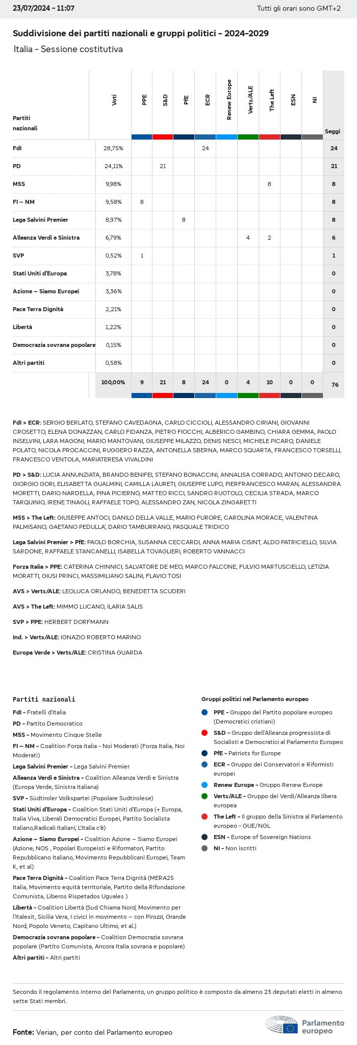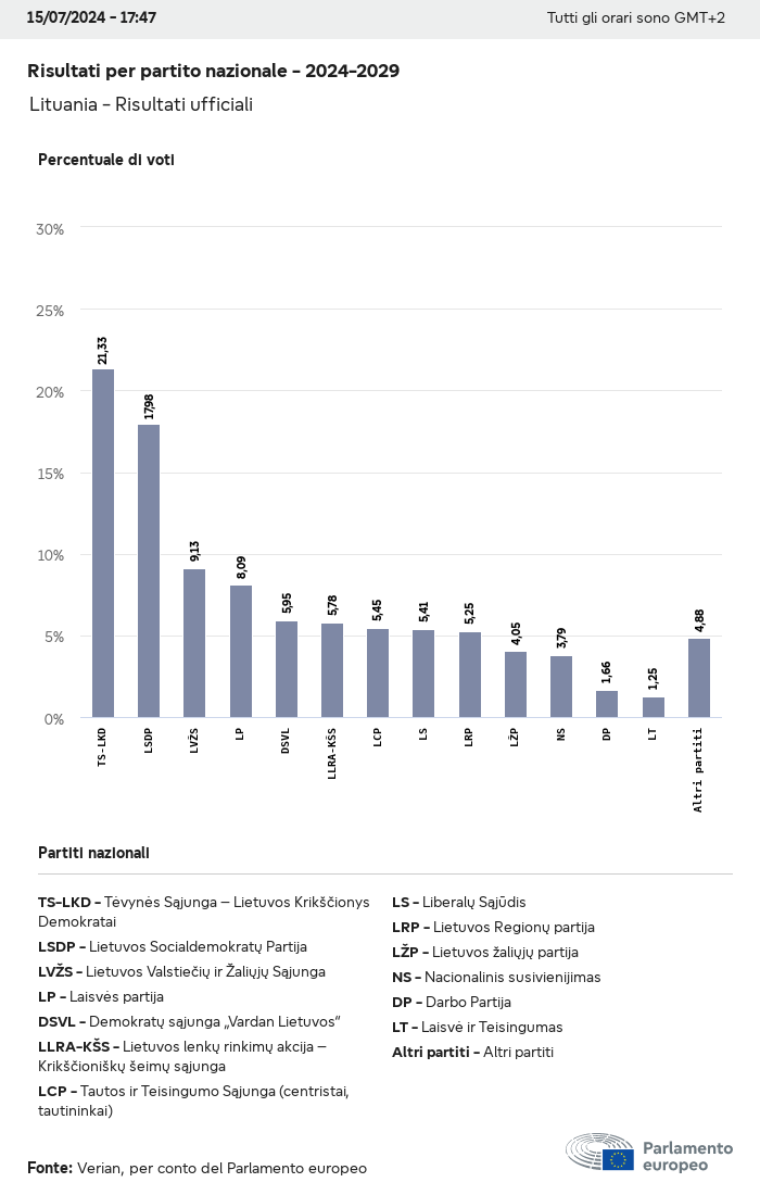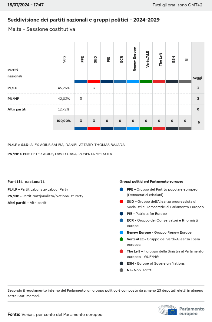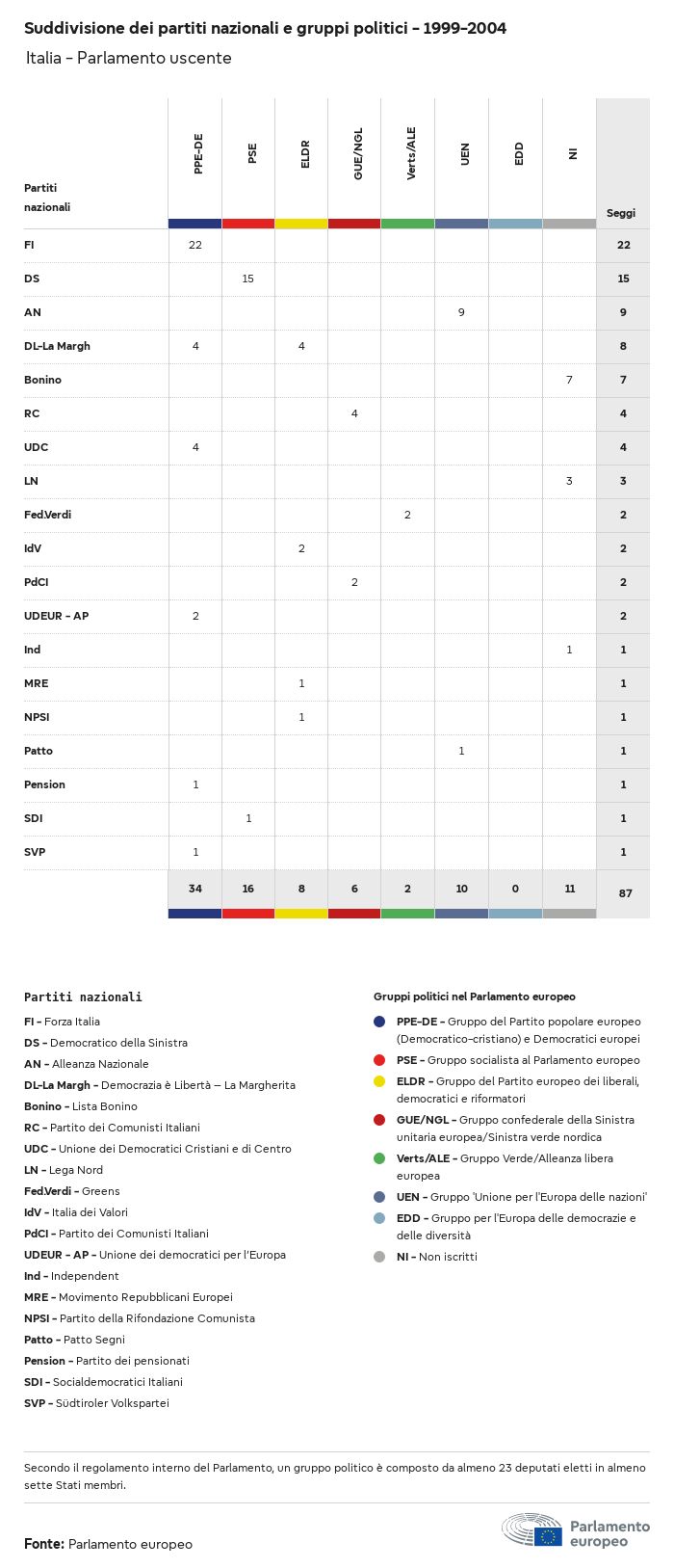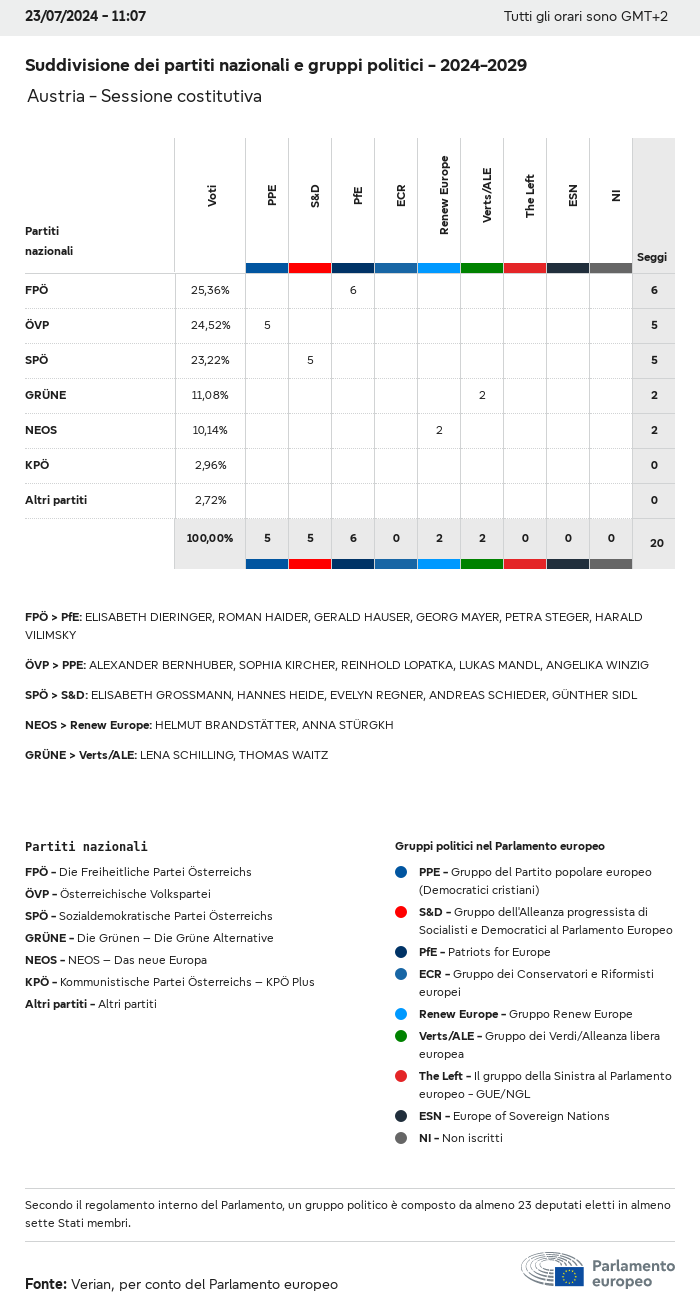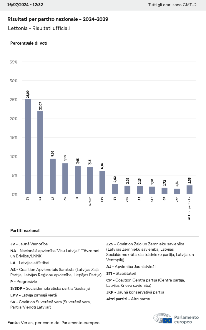 I dati elettorali, per tutte le elezioni europee dal 1979, possono essere scaricati qui sotto in diversi formati. Tenere presente che i file disponibili per il download vengono forniti con una firma digitale accanto ad essi. Le firme possono essere convalidate utilizzando questo certificato, che a sua volta può essere convalidato utilizzando la seguente catena di certificati. Dati delle elezioni europee del 2024. json Comune Etichette (38 Ko) - Firma Affluenza (32 Ko) - Firma Dati sull'equilibrio di genere (7 Ko) - Firma Gruppi politici (40 Ko) - Firma Partiti nazionali (110 Ko) - Firma Dati delle elezioni europee (1 Ko) - Firma Risultati delle elezioni be (7 Ko) - Firma fbe (4 Ko) - Firma gbe (2 Ko) - Firma wbe (3 Ko) - Firma bg (5 Ko) - Firma cz (7 Ko) - Firma dk (5 Ko) - Firma de (8 Ko) - Firma ee (4 Ko) - Firma ie (5 Ko) - Firma el (5 Ko) - Firma es (7 Ko) - Firma fr (8 Ko) - Firma hr (3 Ko) - Firma it (6 Ko) - Firma cy (3 Ko) - Firma lv (5 Ko) - Firma lt (5 Ko) - Firma lu (4 Ko) - Firma hu (5 Ko) - Firma mt (2 Ko) - Firma nl (6 Ko) - Firma at (3 Ko) - Firma pl (7 Ko) - Firma pt (5 Ko) - Firma ro (5 Ko) - Firma si (4 Ko) - Firma sk (5 Ko) - Firma fi (4 Ko) - Firma se (4 Ko) - Firma xml Comune Etichette (63 Ko) - Firma Affluenza (40 Ko) - Firma Dati sull'equilibrio di genere (10 Ko) - Firma Gruppi politici (64 Ko) - Firma Partiti nazionali (123 Ko) - Firma Dati delle elezioni europee (2 Ko) - Firma Risultati delle elezioni be (10 Ko) - Firma fbe (6 Ko) - Firma gbe (3 Ko) - Firma wbe (5 Ko) - Firma bg (7 Ko) - Firma cz (10 Ko) - Firma dk (7 Ko) - Firma de (11 Ko) - Firma ee (6 Ko) - Firma ie (7 Ko) - Firma el (7 Ko) - Firma es (11 Ko) - Firma fr (12 Ko) - Firma hr (5 Ko) - Firma it (9 Ko) - Firma cy (5 Ko) - Firma lv (7 Ko) - Firma lt (7 Ko) - Firma lu (6 Ko) - Firma hu (7 Ko) - Firma mt (3 Ko) - Firma nl (9 Ko) - Firma at (5 Ko) - Firma pl (10 Ko) - Firma pt (7 Ko) - Firma ro (8 Ko) - Firma si (5 Ko) - Firma sk (7 Ko) - Firma fi (6 Ko) - Firma se (6 Ko) - Firma csv Affluenza Affluenza UE (1 Ko) - Firma Affluenza per paese (5 Ko) - Firma Etichette (15 Ko) - Firma Dati sull'equilibrio di genere Equilibrio di genere UE (1 Ko) - Firma Equilibrio di genere per paese (2 Ko) - Firma Gruppi politici (16 Ko) - Firma Partiti nazionali (27 Ko) - Firma Risultati per partito nazionale be (1 Ko) - Firma fbe (1 Ko) - Firma gbe (1 Ko) - Firma wbe (1 Ko) - Firma bg (1 Ko) - Firma cz (1 Ko) - Firma dk (1 Ko) - Firma de (1 Ko) - Firma ee (1 Ko) - Firma ie (1 Ko) - Firma el (1 Ko) - Firma es (1 Ko) - Firma fr (1 Ko) - Firma hr (1 Ko) - Firma it (1 Ko) - Firma cy (1 Ko) - Firma lv (1 Ko) - Firma lt (1 Ko) - Firma lu (1 Ko) - Firma hu (1 Ko) - Firma mt (1 Ko) - Firma nl (1 Ko) - Firma at (1 Ko) - Firma pl (1 Ko) - Firma pt (1 Ko) - Firma ro (1 Ko) - Firma si (1 Ko) - Firma sk (1 Ko) - Firma fi (1 Ko) - Firma se (1 Ko) - Firma Risultati per gruppo politico EU (1 Ko) - Firma be (1 Ko) - Firma fbe (1 Ko) - Firma gbe (1 Ko) - Firma wbe (1 Ko) - Firma bg (1 Ko) - Firma cz (1 Ko) - Firma dk (1 Ko) - Firma de (1 Ko) - Firma ee (1 Ko) - Firma ie (1 Ko) - Firma el (1 Ko) - Firma es (1 Ko) - Firma fr (1 Ko) - Firma hr (1 Ko) - Firma it (1 Ko) - Firma cy (1 Ko) - Firma lv (1 Ko) - Firma lt (1 Ko) - Firma lu (1 Ko) - Firma hu (1 Ko) - Firma mt (1 Ko) - Firma nl (1 Ko) - Firma at (1 Ko) - Firma pl (1 Ko) - Firma pt (1 Ko) - Firma ro (1 Ko) - Firma si (1 Ko) - Firma sk (1 Ko) - Firma fi (1 Ko) - Firma se (1 Ko) - Firma Suddivisione per partiti nazionali e gruppi politici be (1 Ko) - Firma fbe (1 Ko) - Firma gbe (1 Ko) - Firma wbe (1 Ko) - Firma bg (1 Ko) - Firma cz (1 Ko) - Firma dk (1 Ko) - Firma de (1 Ko) - Firma ee (1 Ko) - Firma ie (1 Ko) - Firma el (1 Ko) - Firma es (1 Ko) - Firma fr (1 Ko) - Firma hr (1 Ko) - Firma it (1 Ko) - Firma cy (1 Ko) - Firma lv (1 Ko) - Firma lt (1 Ko) - Firma lu (1 Ko) - Firma hu (1 Ko) - Firma mt (1 Ko) - Firma nl (1 Ko) - Firma at (1 Ko) - Firma pl (1 Ko) - Firma pt (1 Ko) - Firma ro (1 Ko) - Firma si (1 Ko) - Firma sk (1 Ko) - Firma fi (1 Ko) - Firma se (1 Ko) - Firma jpg Affluenza Affluenza per anno (~30 Ko) Affluenza per paese (~140 Ko) Equilibrio di genere degli eurodeputati Equilibrio di genere degli eurodeputati per paese Mappa (~130 Ko) Grafico a barre (~80 Ko) Equilibrio di genere degli eurodeputati per anno (~50 Ko) Risultati delle elezioni Dati europei Emiciclo (~110 Ko) Parlamento europeo (~250 Ko) Dati nazionali BE Risultati per partito nazionale (~90 Ko) Seggi per gruppo politico (~70 Ko) Suddivisione per partiti nazionali e gruppi politici (~180 Ko) Equilibrio di genere degli eurodeputati per anno (~50 Ko) Affluenza per anno (~50 Ko) FBE Risultati per partito nazionale (~90 Ko) Seggi per gruppo politico (~70 Ko) Suddivisione per partiti nazionali e gruppi politici (~180 Ko) GBE Risultati per partito nazionale (~90 Ko) Seggi per gruppo politico (~70 Ko) Suddivisione per partiti nazionali e gruppi politici (~180 Ko) WBE Risultati per partito nazionale (~90 Ko) Seggi per gruppo politico (~70 Ko) Suddivisione per partiti nazionali e gruppi politici (~180 Ko) BG Risultati per partito nazionale (~90 Ko) Seggi per gruppo politico (~70 Ko) Suddivisione per partiti nazionali e gruppi politici (~180 Ko) Equilibrio di genere degli eurodeputati per anno (~50 Ko) Affluenza per anno (~50 Ko) CZ Risultati per partito nazionale (~90 Ko) Seggi per gruppo politico (~70 Ko) Suddivisione per partiti nazionali e gruppi politici (~180 Ko) Equilibrio di genere degli eurodeputati per anno (~50 Ko) Affluenza per anno (~50 Ko) DK Risultati per partito nazionale (~90 Ko) Seggi per gruppo politico (~70 Ko) Suddivisione per partiti nazionali e gruppi politici (~180 Ko) Equilibrio di genere degli eurodeputati per anno (~50 Ko) Affluenza per anno (~50 Ko) DE Risultati per partito nazionale (~90 Ko) Seggi per gruppo politico (~70 Ko) Suddivisione per partiti nazionali e gruppi politici (~180 Ko) Equilibrio di genere degli eurodeputati per anno (~50 Ko) Affluenza per anno (~50 Ko) EE Risultati per parti