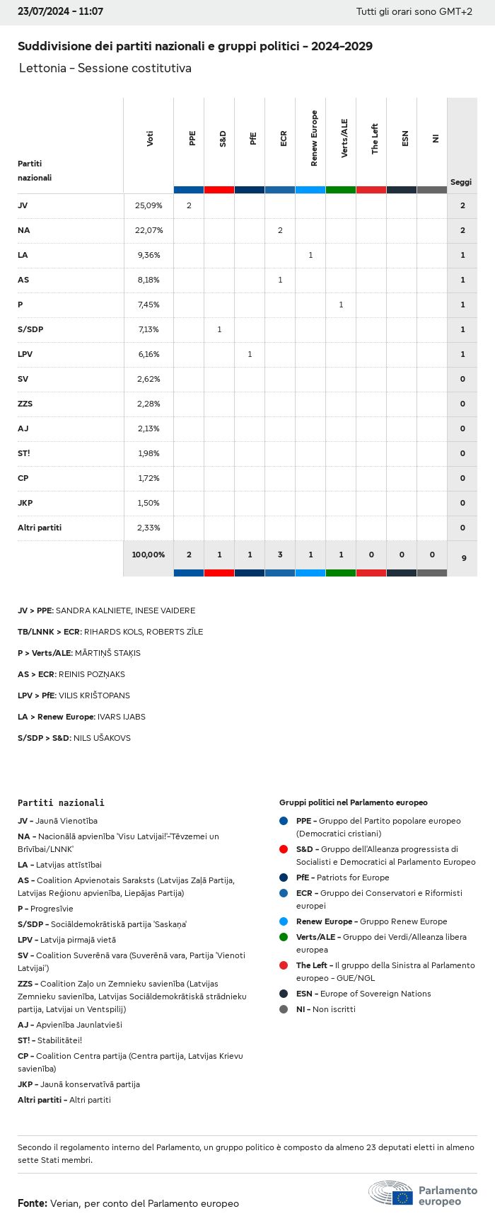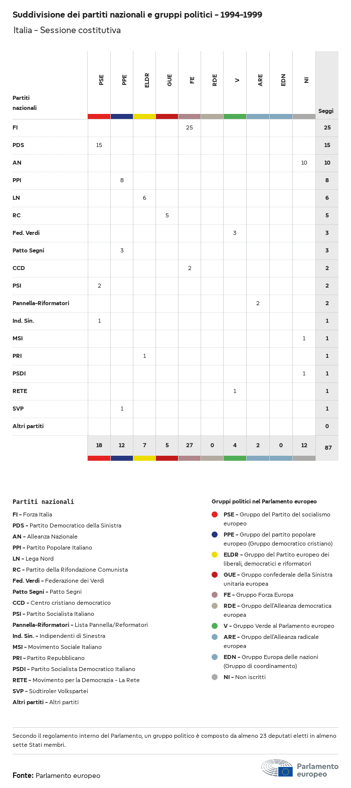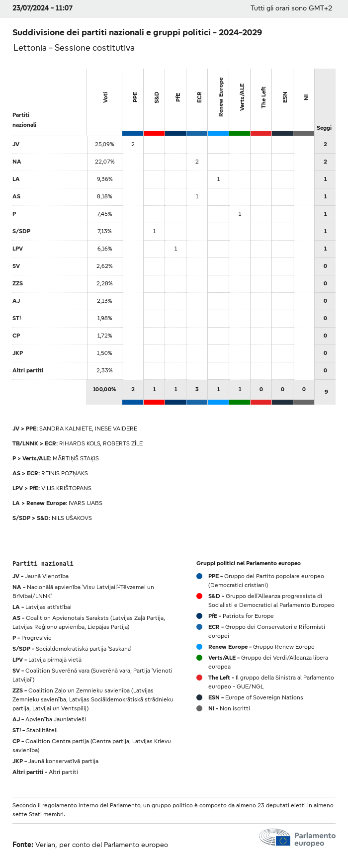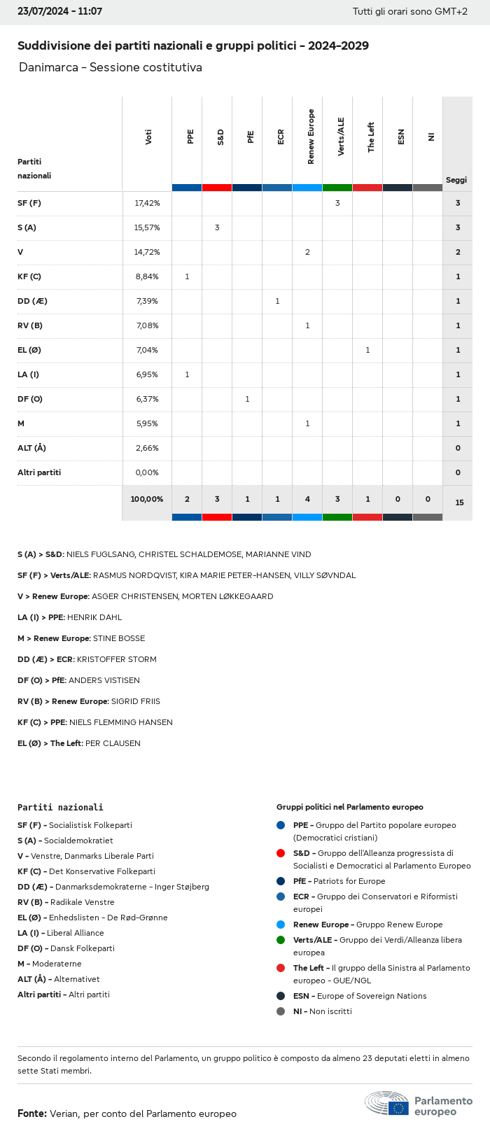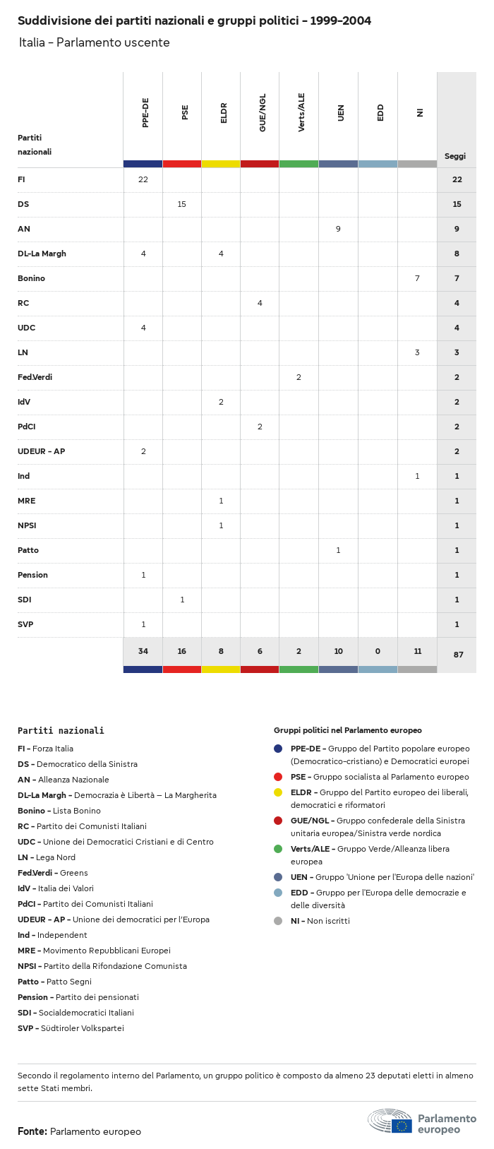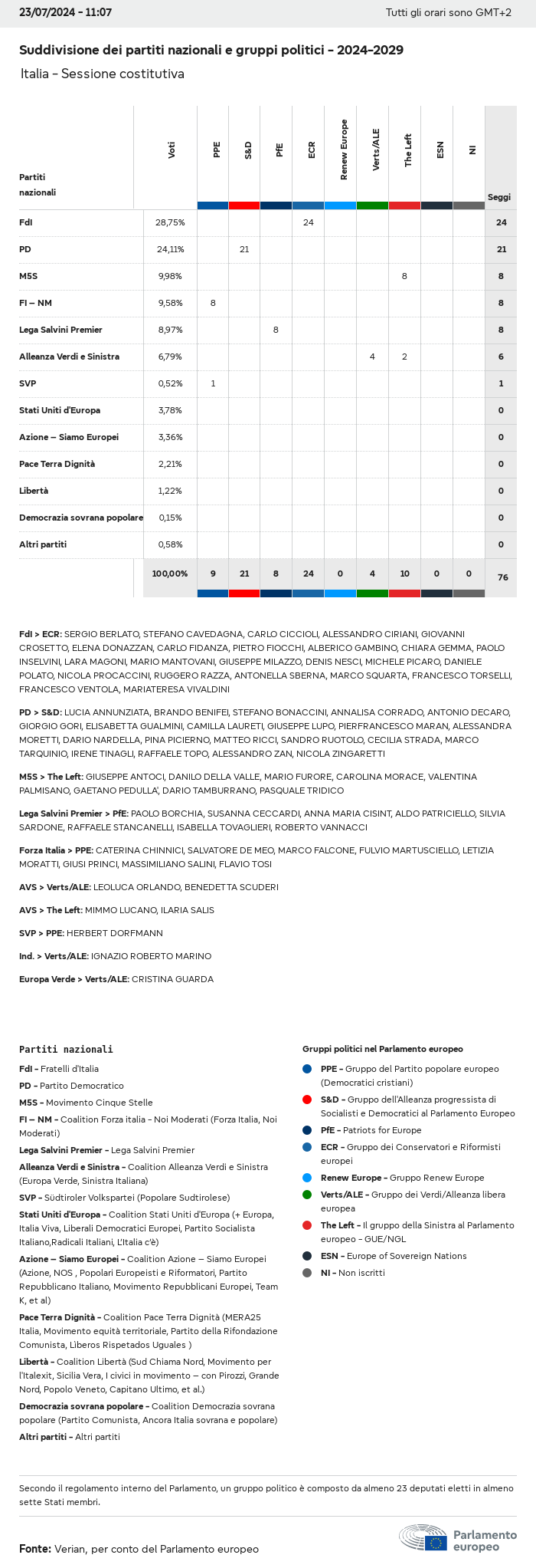 I dati elettorali, per tutte le elezioni europee dal 1979, possono essere scaricati qui sotto in diversi formati. Tenere presente che i file disponibili per il download vengono forniti con una firma digitale accanto ad essi. Le firme possono essere convalidate utilizzando questo certificato, che a sua volta può essere convalidato utilizzando la seguente catena di certificati. Dati delle elezioni europee del 2024. json Comune Etichette (38 Ko) - Firma Affluenza (32 Ko) - Firma Dati sull'equilibrio di genere (7 Ko) - Firma Gruppi politici (40 Ko) - Firma Partiti nazionali (110 Ko) - Firma Dati delle elezioni europee (1 Ko) - Firma Risultati delle elezioni be (7 Ko) - Firma fbe (4 Ko) - Firma gbe (2 Ko) - Firma wbe (3 Ko) - Firma bg (5 Ko) - Firma cz (7 Ko) - Firma dk (5 Ko) - Firma de (8 Ko) - Firma ee (4 Ko) - Firma ie (5 Ko) - Firma el (5 Ko) - Firma es (7 Ko) - Firma fr (8 Ko) - Firma hr (3 Ko) - Firma it (6 Ko) - Firma cy (3 Ko) - Firma lv (5 Ko) - Firma lt (5 Ko) - Firma lu (4 Ko) - Firma hu (5 Ko) - Firma mt (2 Ko) - Firma nl (6 Ko) - Firma at (3 Ko) - Firma pl (7 Ko) - Firma pt (5 Ko) - Firma ro (5 Ko) - Firma si (4 Ko) - Firma sk (5 Ko) - Firma fi (4 Ko) - Firma se (4 Ko) - Firma xml Comune Etichette (63 Ko) - Firma Affluenza (40 Ko) - Firma Dati sull'equilibrio di genere (10 Ko) - Firma Gruppi politici (64 Ko) - Firma Partiti nazionali (123 Ko) - Firma Dati delle elezioni europee (2 Ko) - Firma Risultati delle elezioni be (10 Ko) - Firma fbe (6 Ko) - Firma gbe (3 Ko) - Firma wbe (5 Ko) - Firma bg (7 Ko) - Firma cz (10 Ko) - Firma dk (7 Ko) - Firma de (11 Ko) - Firma ee (6 Ko) - Firma ie (7 Ko) - Firma el (7 Ko) - Firma es (11 Ko) - Firma fr (12 Ko) - Firma hr (5 Ko) - Firma it (9 Ko) - Firma cy (5 Ko) - Firma lv (7 Ko) - Firma lt (7 Ko) - Firma lu (6 Ko) - Firma hu (7 Ko) - Firma mt (3 Ko) - Firma nl (9 Ko) - Firma at (5 Ko) - Firma pl (10 Ko) - Firma pt (7 Ko) - Firma ro (8 Ko) - Firma si (5 Ko) - Firma sk (7 Ko) - Firma fi (6 Ko) - Firma se (6 Ko) - Firma csv Affluenza Affluenza UE (1 Ko) - Firma Affluenza per paese (5 Ko) - Firma Etichette (15 Ko) - Firma Dati sull'equilibrio di genere Equilibrio di genere UE (1 Ko) - Firma Equilibrio di genere per paese (2 Ko) - Firma Gruppi politici (16 Ko) - Firma Partiti nazionali (27 Ko) - Firma Risultati per partito nazionale be (1 Ko) - Firma fbe (1 Ko) - Firma gbe (1 Ko) - Firma wbe (1 Ko) - Firma bg (1 Ko) - Firma cz (1 Ko) - Firma dk (1 Ko) - Firma de (1 Ko) - Firma ee (1 Ko) - Firma ie (1 Ko) - Firma el (1 Ko) - Firma es (1 Ko) - Firma fr (1 Ko) - Firma hr (1 Ko) - Firma it (1 Ko) - Firma cy (1 Ko) - Firma lv (1 Ko) - Firma lt (1 Ko) - Firma lu (1 Ko) - Firma hu (1 Ko) - Firma mt (1 Ko) - Firma nl (1 Ko) - Firma at (1 Ko) - Firma pl (1 Ko) - Firma pt (1 Ko) - Firma ro (1 Ko) - Firma si (1 Ko) - Firma sk (1 Ko) - Firma fi (1 Ko) - Firma se (1 Ko) - Firma Risultati per gruppo politico EU (1 Ko) - Firma be (1 Ko) - Firma fbe (1 Ko) - Firma gbe (1 Ko) - Firma wbe (1 Ko) - Firma bg (1 Ko) - Firma cz (1 Ko) - Firma dk (1 Ko) - Firma de (1 Ko) - Firma ee (1 Ko) - Firma ie (1 Ko) - Firma el (1 Ko) - Firma es (1 Ko) - Firma fr (1 Ko) - Firma hr (1 Ko) - Firma it (1 Ko) - Firma cy (1 Ko) - Firma lv (1 Ko) - Firma lt (1 Ko) - Firma lu (1 Ko) - Firma hu (1 Ko) - Firma mt (1 Ko) - Firma nl (1 Ko) - Firma at (1 Ko) - Firma pl (1 Ko) - Firma pt (1 Ko) - Firma ro (1 Ko) - Firma si (1 Ko) - Firma sk (1 Ko) - Firma fi (1 Ko) - Firma se (1 Ko) - Firma Suddivisione per partiti nazionali e gruppi politici be (1 Ko) - Firma fbe (1 Ko) - Firma gbe (1 Ko) - Firma wbe (1 Ko) - Firma bg (1 Ko) - Firma cz (1 Ko) - Firma dk (1 Ko) - Firma de (1 Ko) - Firma ee (1 Ko) - Firma ie (1 Ko) - Firma el (1 Ko) - Firma es (1 Ko) - Firma fr (1 Ko) - Firma hr (1 Ko) - Firma it (1 Ko) - Firma cy (1 Ko) - Firma lv (1 Ko) - Firma lt (1 Ko) - Firma lu (1 Ko) - Firma hu (1 Ko) - Firma mt (1 Ko) - Firma nl (1 Ko) - Firma at (1 Ko) - Firma pl (1 Ko) - Firma pt (1 Ko) - Firma ro (1 Ko) - Firma si (1 Ko) - Firma sk (1 Ko) - Firma fi (1 Ko) - Firma se (1 Ko) - Firma jpg Affluenza Affluenza per anno (~30 Ko) Affluenza per paese (~140 Ko) Equilibrio di genere degli eurodeputati Equilibrio di genere degli eurodeputati per paese Mappa (~130 Ko) Grafico a barre (~80 Ko) Equilibrio di genere degli eurodeputati per anno (~50 Ko) Risultati delle elezioni Dati europei Emiciclo (~110 Ko) Parlamento europeo (~250 Ko) Dati nazionali BE Risultati per partito nazionale (~90 Ko) Seggi per gruppo politico (~70 Ko) Suddivisione per partiti nazionali e gruppi politici (~180 Ko) Equilibrio di genere degli eurodeputati per anno (~50 Ko) Affluenza per anno (~50 Ko) FBE Risultati per partito nazionale (~90 Ko) Seggi per gruppo politico (~70 Ko) Suddivisione per partiti nazionali e gruppi politici (~180 Ko) GBE Risultati per partito nazionale (~90 Ko) Seggi per gruppo politico (~70 Ko) Suddivisione per partiti nazionali e gruppi politici (~180 Ko) WBE Risultati per partito nazionale (~90 Ko) Seggi per gruppo politico (~70 Ko) Suddivisione per partiti nazionali e gruppi politici (~180 Ko) BG Risultati per partito nazionale (~90 Ko) Seggi per gruppo politico (~70 Ko) Suddivisione per partiti nazionali e gruppi politici (~180 Ko) Equilibrio di genere degli eurodeputati per anno (~50 Ko) Affluenza per anno (~50 Ko) CZ Risultati per partito nazionale (~90 Ko) Seggi per gruppo politico (~70 Ko) Suddivisione per partiti nazionali e gruppi politici (~180 Ko) Equilibrio di genere degli eurodeputati per anno (~50 Ko) Affluenza per anno (~50 Ko) DK Risultati per partito nazionale (~90 Ko) Seggi per gruppo politico (~70 Ko) Suddivisione per partiti nazionali e gruppi politici (~180 Ko) Equilibrio di genere degli eurodeputati per anno (~50 Ko) Affluenza per anno (~50 Ko) DE Risultati per partito nazionale (~90 Ko) Seggi per gruppo politico (~70 Ko) Suddivisione per partiti nazionali e gruppi politici (~180 Ko) Equilibrio di genere degli eurodeputati per anno (~50 Ko) Affluenza per anno (~50 Ko) EE Risultati per parti