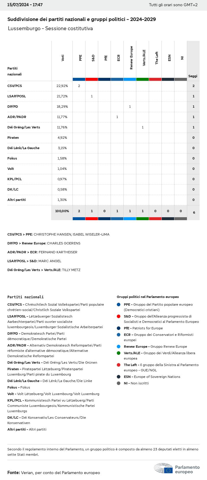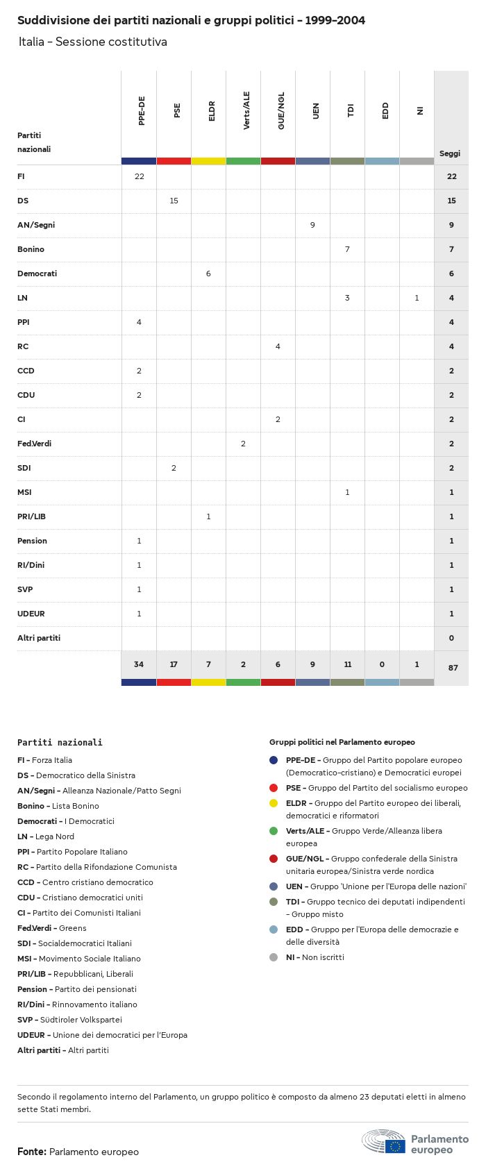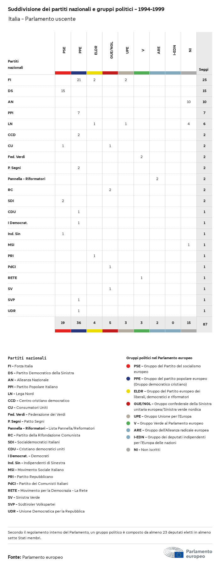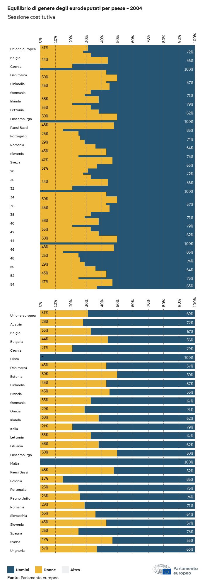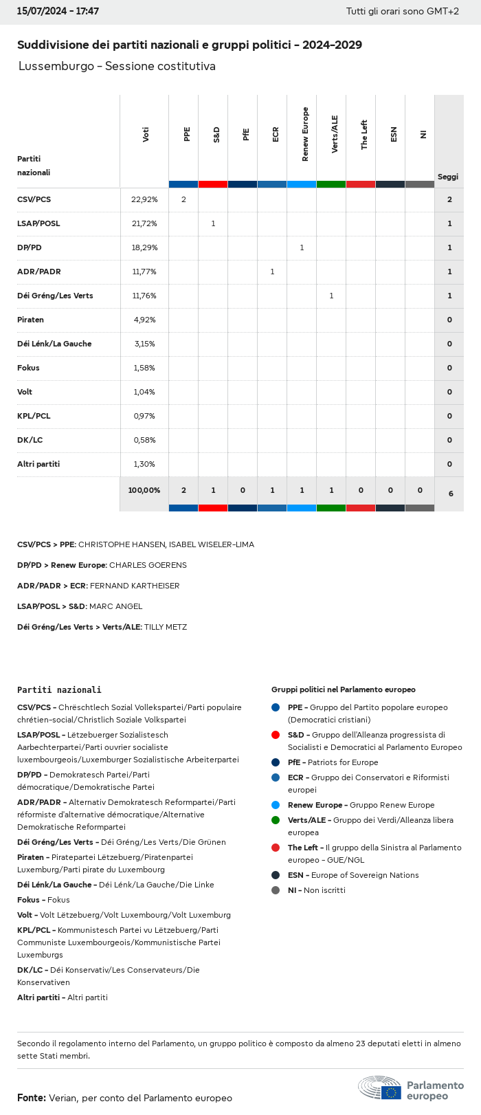 I dati elettorali, per tutte le elezioni europee dal 1979, possono essere scaricati qui sotto in diversi formati. Tenere presente che i file disponibili per il download vengono forniti con una firma digitale accanto ad essi. Le firme possono essere convalidate utilizzando questo certificato, che a sua volta può essere convalidato utilizzando la seguente catena di certificati. Dati delle elezioni europee del 2024. json Comune Etichette (38 Ko) - Firma Affluenza (32 Ko) - Firma Dati sull'equilibrio di genere (7 Ko) - Firma Gruppi politici (40 Ko) - Firma Partiti nazionali (110 Ko) - Firma Dati delle elezioni europee (1 Ko) - Firma Risultati delle elezioni be (7 Ko) - Firma fbe (4 Ko) - Firma gbe (2 Ko) - Firma wbe (3 Ko) - Firma bg (5 Ko) - Firma cz (7 Ko) - Firma dk (5 Ko) - Firma de (8 Ko) - Firma ee (4 Ko) - Firma ie (5 Ko) - Firma el (5 Ko) - Firma es (7 Ko) - Firma fr (8 Ko) - Firma hr (3 Ko) - Firma it (6 Ko) - Firma cy (3 Ko) - Firma lv (5 Ko) - Firma lt (5 Ko) - Firma lu (4 Ko) - Firma hu (5 Ko) - Firma mt (2 Ko) - Firma nl (6 Ko) - Firma at (3 Ko) - Firma pl (7 Ko) - Firma pt (5 Ko) - Firma ro (5 Ko) - Firma si (4 Ko) - Firma sk (5 Ko) - Firma fi (4 Ko) - Firma se (4 Ko) - Firma xml Comune Etichette (63 Ko) - Firma Affluenza (40 Ko) - Firma Dati sull'equilibrio di genere (10 Ko) - Firma Gruppi politici (64 Ko) - Firma Partiti nazionali (123 Ko) - Firma Dati delle elezioni europee (2 Ko) - Firma Risultati delle elezioni be (10 Ko) - Firma fbe (6 Ko) - Firma gbe (3 Ko) - Firma wbe (5 Ko) - Firma bg (7 Ko) - Firma cz (10 Ko) - Firma dk (7 Ko) - Firma de (11 Ko) - Firma ee (6 Ko) - Firma ie (7 Ko) - Firma el (7 Ko) - Firma es (11 Ko) - Firma fr (12 Ko) - Firma hr (5 Ko) - Firma it (9 Ko) - Firma cy (5 Ko) - Firma lv (7 Ko) - Firma lt (7 Ko) - Firma lu (6 Ko) - Firma hu (7 Ko) - Firma mt (3 Ko) - Firma nl (9 Ko) - Firma at (5 Ko) - Firma pl (10 Ko) - Firma pt (7 Ko) - Firma ro (8 Ko) - Firma si (5 Ko) - Firma sk (7 Ko) - Firma fi (6 Ko) - Firma se (6 Ko) - Firma csv Affluenza Affluenza UE (1 Ko) - Firma Affluenza per paese (5 Ko) - Firma Etichette (15 Ko) - Firma Dati sull'equilibrio di genere Equilibrio di genere UE (1 Ko) - Firma Equilibrio di genere per paese (2 Ko) - Firma Gruppi politici (16 Ko) - Firma Partiti nazionali (27 Ko) - Firma Risultati per partito nazionale be (1 Ko) - Firma fbe (1 Ko) - Firma gbe (1 Ko) - Firma wbe (1 Ko) - Firma bg (1 Ko) - Firma cz (1 Ko) - Firma dk (1 Ko) - Firma de (1 Ko) - Firma ee (1 Ko) - Firma ie (1 Ko) - Firma el (1 Ko) - Firma es (1 Ko) - Firma fr (1 Ko) - Firma hr (1 Ko) - Firma it (1 Ko) - Firma cy (1 Ko) - Firma lv (1 Ko) - Firma lt (1 Ko) - Firma lu (1 Ko) - Firma hu (1 Ko) - Firma mt (1 Ko) - Firma nl (1 Ko) - Firma at (1 Ko) - Firma pl (1 Ko) - Firma pt (1 Ko) - Firma ro (1 Ko) - Firma si (1 Ko) - Firma sk (1 Ko) - Firma fi (1 Ko) - Firma se (1 Ko) - Firma Risultati per gruppo politico EU (1 Ko) - Firma be (1 Ko) - Firma fbe (1 Ko) - Firma gbe (1 Ko) - Firma wbe (1 Ko) - Firma bg (1 Ko) - Firma cz (1 Ko) - Firma dk (1 Ko) - Firma de (1 Ko) - Firma ee (1 Ko) - Firma ie (1 Ko) - Firma el (1 Ko) - Firma es (1 Ko) - Firma fr (1 Ko) - Firma hr (1 Ko) - Firma it (1 Ko) - Firma cy (1 Ko) - Firma lv (1 Ko) - Firma lt (1 Ko) - Firma lu (1 Ko) - Firma hu (1 Ko) - Firma mt (1 Ko) - Firma nl (1 Ko) - Firma at (1 Ko) - Firma pl (1 Ko) - Firma pt (1 Ko) - Firma ro (1 Ko) - Firma si (1 Ko) - Firma sk (1 Ko) - Firma fi (1 Ko) - Firma se (1 Ko) - Firma Suddivisione per partiti nazionali e gruppi politici be (1 Ko) - Firma fbe (1 Ko) - Firma gbe (1 Ko) - Firma wbe (1 Ko) - Firma bg (1 Ko) - Firma cz (1 Ko) - Firma dk (1 Ko) - Firma de (1 Ko) - Firma ee (1 Ko) - Firma ie (1 Ko) - Firma el (1 Ko) - Firma es (1 Ko) - Firma fr (1 Ko) - Firma hr (1 Ko) - Firma it (1 Ko) - Firma cy (1 Ko) - Firma lv (1 Ko) - Firma lt (1 Ko) - Firma lu (1 Ko) - Firma hu (1 Ko) - Firma mt (1 Ko) - Firma nl (1 Ko) - Firma at (1 Ko) - Firma pl (1 Ko) - Firma pt (1 Ko) - Firma ro (1 Ko) - Firma si (1 Ko) - Firma sk (1 Ko) - Firma fi (1 Ko) - Firma se (1 Ko) - Firma jpg Affluenza Affluenza per anno (~30 Ko) Affluenza per paese (~140 Ko) Equilibrio di genere degli eurodeputati Equilibrio di genere degli eurodeputati per paese Mappa (~130 Ko) Grafico a barre (~80 Ko) Equilibrio di genere degli eurodeputati per anno (~50 Ko) Risultati delle elezioni Dati europei Emiciclo (~110 Ko) Parlamento europeo (~250 Ko) Dati nazionali BE Risultati per partito nazionale (~90 Ko) Seggi per gruppo politico (~70 Ko) Suddivisione per partiti nazionali e gruppi politici (~180 Ko) Equilibrio di genere degli eurodeputati per anno (~50 Ko) Affluenza per anno (~50 Ko) FBE Risultati per partito nazionale (~90 Ko) Seggi per gruppo politico (~70 Ko) Suddivisione per partiti nazionali e gruppi politici (~180 Ko) GBE Risultati per partito nazionale (~90 Ko) Seggi per gruppo politico (~70 Ko) Suddivisione per partiti nazionali e gruppi politici (~180 Ko) WBE Risultati per partito nazionale (~90 Ko) Seggi per gruppo politico (~70 Ko) Suddivisione per partiti nazionali e gruppi politici (~180 Ko) BG Risultati per partito nazionale (~90 Ko) Seggi per gruppo politico (~70 Ko) Suddivisione per partiti nazionali e gruppi politici (~180 Ko) Equilibrio di genere degli eurodeputati per anno (~50 Ko) Affluenza per anno (~50 Ko) CZ Risultati per partito nazionale (~90 Ko) Seggi per gruppo politico (~70 Ko) Suddivisione per partiti nazionali e gruppi politici (~180 Ko) Equilibrio di genere degli eurodeputati per anno (~50 Ko) Affluenza per anno (~50 Ko) DK Risultati per partito nazionale (~90 Ko) Seggi per gruppo politico (~70 Ko) Suddivisione per partiti nazionali e gruppi politici (~180 Ko) Equilibrio di genere degli eurodeputati per anno (~50 Ko) Affluenza per anno (~50 Ko) DE Risultati per partito nazionale (~90 Ko) Seggi per gruppo politico (~70 Ko) Suddivisione per partiti nazionali e gruppi politici (~180 Ko) Equilibrio di genere degli eurodeputati per anno (~50 Ko) Affluenza per anno (~50 Ko) EE Risultati per parti