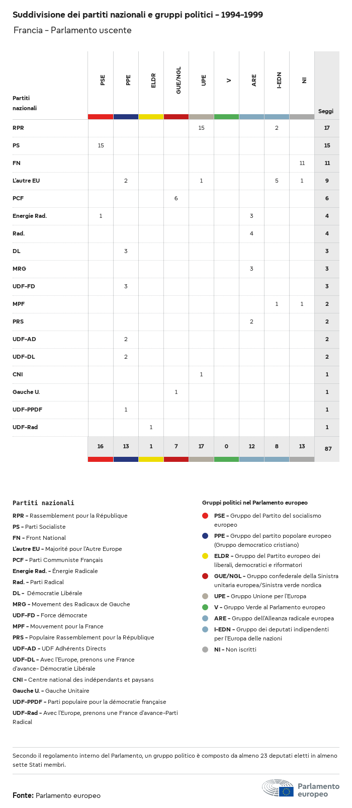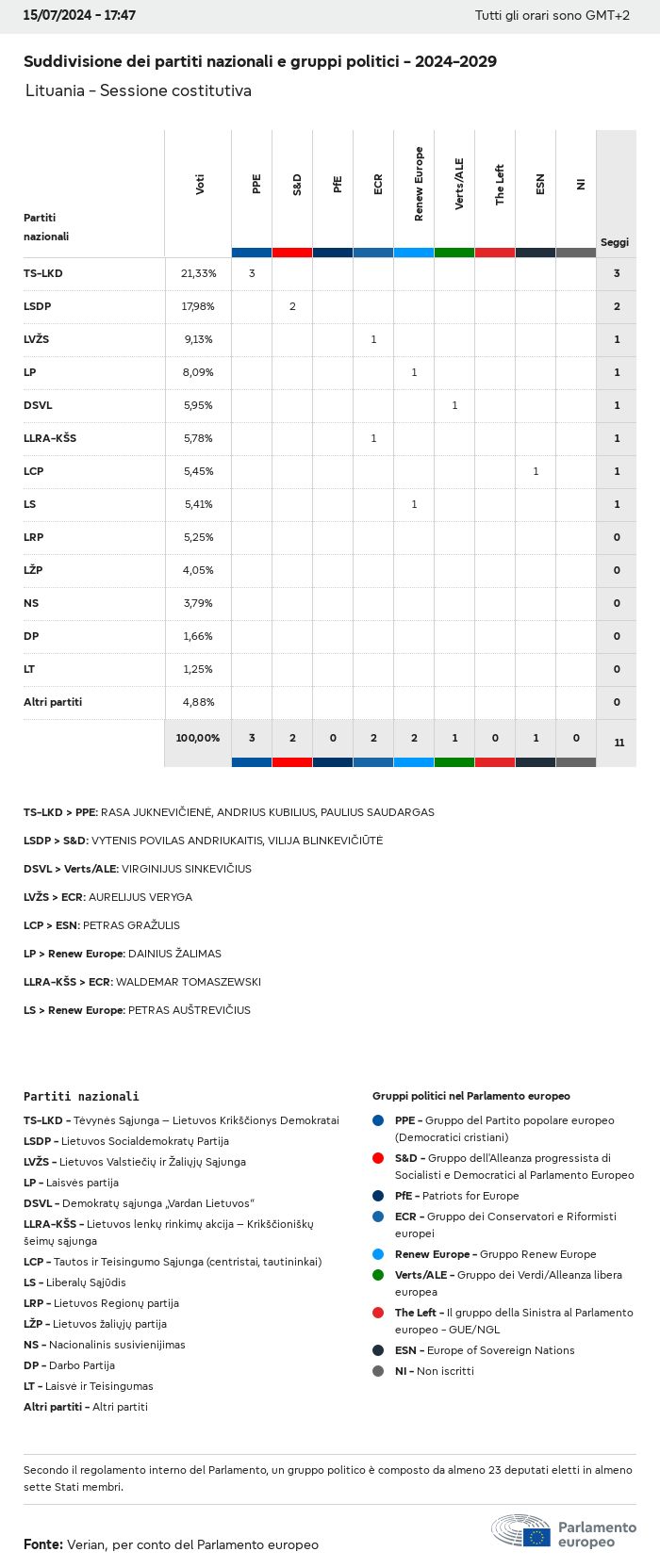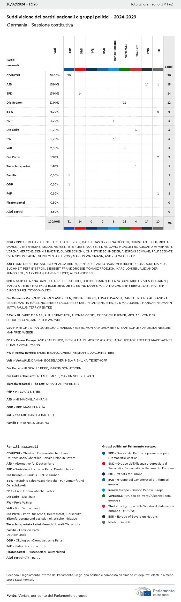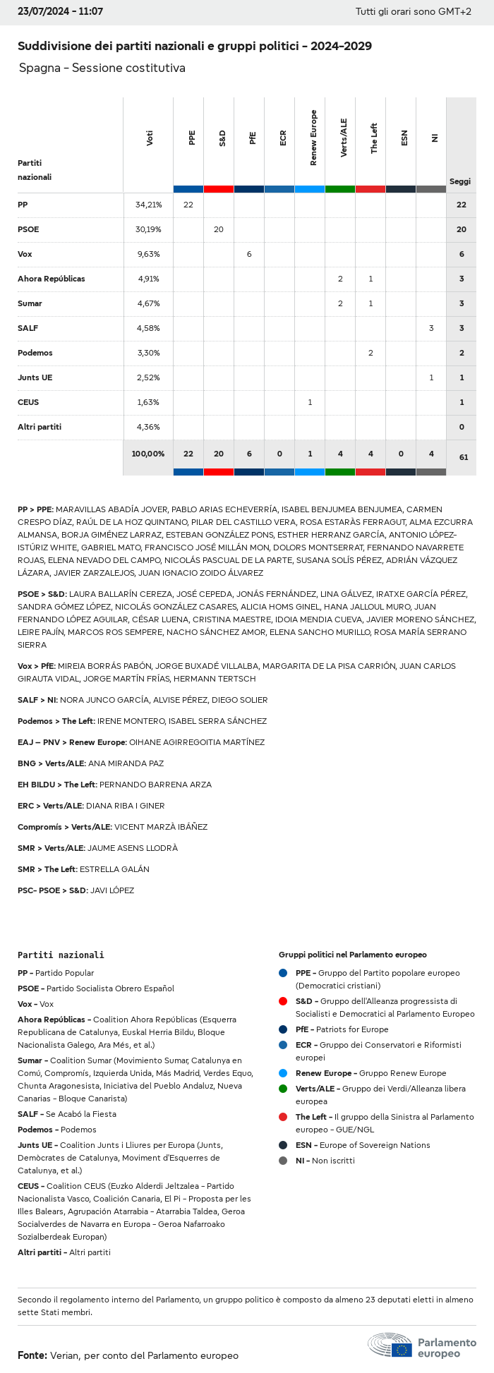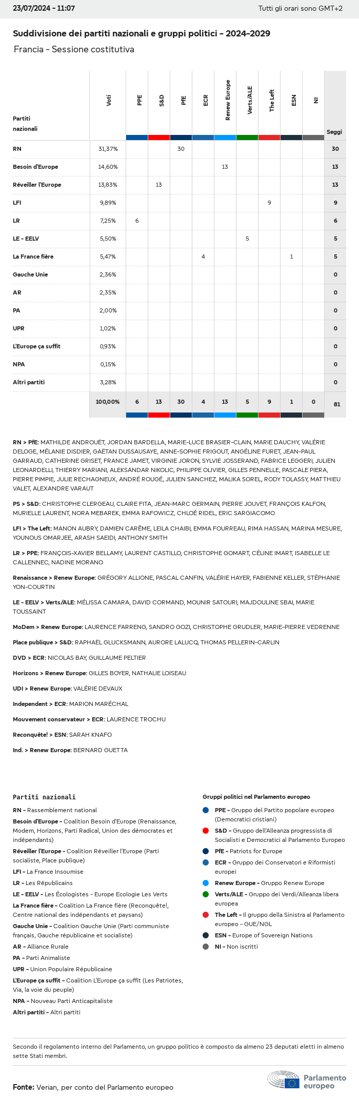 I dati elettorali, per tutte le elezioni europee dal 1979, possono essere scaricati qui sotto in diversi formati. Tenere presente che i file disponibili per il download vengono forniti con una firma digitale accanto ad essi. Le firme possono essere convalidate utilizzando questo certificato, che a sua volta può essere convalidato utilizzando la seguente catena di certificati. Dati delle elezioni europee del 2024. json Comune Etichette (38 Ko) - Firma Affluenza (32 Ko) - Firma Dati sull'equilibrio di genere (7 Ko) - Firma Gruppi politici (40 Ko) - Firma Partiti nazionali (110 Ko) - Firma Dati delle elezioni europee (1 Ko) - Firma Risultati delle elezioni be (7 Ko) - Firma fbe (4 Ko) - Firma gbe (2 Ko) - Firma wbe (3 Ko) - Firma bg (5 Ko) - Firma cz (7 Ko) - Firma dk (5 Ko) - Firma de (8 Ko) - Firma ee (4 Ko) - Firma ie (5 Ko) - Firma el (5 Ko) - Firma es (7 Ko) - Firma fr (8 Ko) - Firma hr (3 Ko) - Firma it (6 Ko) - Firma cy (3 Ko) - Firma lv (5 Ko) - Firma lt (5 Ko) - Firma lu (4 Ko) - Firma hu (5 Ko) - Firma mt (2 Ko) - Firma nl (6 Ko) - Firma at (3 Ko) - Firma pl (7 Ko) - Firma pt (5 Ko) - Firma ro (5 Ko) - Firma si (4 Ko) - Firma sk (5 Ko) - Firma fi (4 Ko) - Firma se (4 Ko) - Firma xml Comune Etichette (63 Ko) - Firma Affluenza (40 Ko) - Firma Dati sull'equilibrio di genere (10 Ko) - Firma Gruppi politici (64 Ko) - Firma Partiti nazionali (123 Ko) - Firma Dati delle elezioni europee (2 Ko) - Firma Risultati delle elezioni be (10 Ko) - Firma fbe (6 Ko) - Firma gbe (3 Ko) - Firma wbe (5 Ko) - Firma bg (7 Ko) - Firma cz (10 Ko) - Firma dk (7 Ko) - Firma de (11 Ko) - Firma ee (6 Ko) - Firma ie (7 Ko) - Firma el (7 Ko) - Firma es (11 Ko) - Firma fr (12 Ko) - Firma hr (5 Ko) - Firma it (9 Ko) - Firma cy (5 Ko) - Firma lv (7 Ko) - Firma lt (7 Ko) - Firma lu (6 Ko) - Firma hu (7 Ko) - Firma mt (3 Ko) - Firma nl (9 Ko) - Firma at (5 Ko) - Firma pl (10 Ko) - Firma pt (7 Ko) - Firma ro (8 Ko) - Firma si (5 Ko) - Firma sk (7 Ko) - Firma fi (6 Ko) - Firma se (6 Ko) - Firma csv Affluenza Affluenza UE (1 Ko) - Firma Affluenza per paese (5 Ko) - Firma Etichette (15 Ko) - Firma Dati sull'equilibrio di genere Equilibrio di genere UE (1 Ko) - Firma Equilibrio di genere per paese (2 Ko) - Firma Gruppi politici (16 Ko) - Firma Partiti nazionali (27 Ko) - Firma Risultati per partito nazionale be (1 Ko) - Firma fbe (1 Ko) - Firma gbe (1 Ko) - Firma wbe (1 Ko) - Firma bg (1 Ko) - Firma cz (1 Ko) - Firma dk (1 Ko) - Firma de (1 Ko) - Firma ee (1 Ko) - Firma ie (1 Ko) - Firma el (1 Ko) - Firma es (1 Ko) - Firma fr (1 Ko) - Firma hr (1 Ko) - Firma it (1 Ko) - Firma cy (1 Ko) - Firma lv (1 Ko) - Firma lt (1 Ko) - Firma lu (1 Ko) - Firma hu (1 Ko) - Firma mt (1 Ko) - Firma nl (1 Ko) - Firma at (1 Ko) - Firma pl (1 Ko) - Firma pt (1 Ko) - Firma ro (1 Ko) - Firma si (1 Ko) - Firma sk (1 Ko) - Firma fi (1 Ko) - Firma se (1 Ko) - Firma Risultati per gruppo politico EU (1 Ko) - Firma be (1 Ko) - Firma fbe (1 Ko) - Firma gbe (1 Ko) - Firma wbe (1 Ko) - Firma bg (1 Ko) - Firma cz (1 Ko) - Firma dk (1 Ko) - Firma de (1 Ko) - Firma ee (1 Ko) - Firma ie (1 Ko) - Firma el (1 Ko) - Firma es (1 Ko) - Firma fr (1 Ko) - Firma hr (1 Ko) - Firma it (1 Ko) - Firma cy (1 Ko) - Firma lv (1 Ko) - Firma lt (1 Ko) - Firma lu (1 Ko) - Firma hu (1 Ko) - Firma mt (1 Ko) - Firma nl (1 Ko) - Firma at (1 Ko) - Firma pl (1 Ko) - Firma pt (1 Ko) - Firma ro (1 Ko) - Firma si (1 Ko) - Firma sk (1 Ko) - Firma fi (1 Ko) - Firma se (1 Ko) - Firma Suddivisione per partiti nazionali e gruppi politici be (1 Ko) - Firma fbe (1 Ko) - Firma gbe (1 Ko) - Firma wbe (1 Ko) - Firma bg (1 Ko) - Firma cz (1 Ko) - Firma dk (1 Ko) - Firma de (1 Ko) - Firma ee (1 Ko) - Firma ie (1 Ko) - Firma el (1 Ko) - Firma es (1 Ko) - Firma fr (1 Ko) - Firma hr (1 Ko) - Firma it (1 Ko) - Firma cy (1 Ko) - Firma lv (1 Ko) - Firma lt (1 Ko) - Firma lu (1 Ko) - Firma hu (1 Ko) - Firma mt (1 Ko) - Firma nl (1 Ko) - Firma at (1 Ko) - Firma pl (1 Ko) - Firma pt (1 Ko) - Firma ro (1 Ko) - Firma si (1 Ko) - Firma sk (1 Ko) - Firma fi (1 Ko) - Firma se (1 Ko) - Firma jpg Affluenza Affluenza per anno (~30 Ko) Affluenza per paese (~140 Ko) Equilibrio di genere degli eurodeputati Equilibrio di genere degli eurodeputati per paese Mappa (~130 Ko) Grafico a barre (~80 Ko) Equilibrio di genere degli eurodeputati per anno (~50 Ko) Risultati delle elezioni Dati europei Emiciclo (~110 Ko) Parlamento europeo (~250 Ko) Dati nazionali BE Risultati per partito nazionale (~90 Ko) Seggi per gruppo politico (~70 Ko) Suddivisione per partiti nazionali e gruppi politici (~180 Ko) Equilibrio di genere degli eurodeputati per anno (~50 Ko) Affluenza per anno (~50 Ko) FBE Risultati per partito nazionale (~90 Ko) Seggi per gruppo politico (~70 Ko) Suddivisione per partiti nazionali e gruppi politici (~180 Ko) GBE Risultati per partito nazionale (~90 Ko) Seggi per gruppo politico (~70 Ko) Suddivisione per partiti nazionali e gruppi politici (~180 Ko) WBE Risultati per partito nazionale (~90 Ko) Seggi per gruppo politico (~70 Ko) Suddivisione per partiti nazionali e gruppi politici (~180 Ko) BG Risultati per partito nazionale (~90 Ko) Seggi per gruppo politico (~70 Ko) Suddivisione per partiti nazionali e gruppi politici (~180 Ko) Equilibrio di genere degli eurodeputati per anno (~50 Ko) Affluenza per anno (~50 Ko) CZ Risultati per partito nazionale (~90 Ko) Seggi per gruppo politico (~70 Ko) Suddivisione per partiti nazionali e gruppi politici (~180 Ko) Equilibrio di genere degli eurodeputati per anno (~50 Ko) Affluenza per anno (~50 Ko) DK Risultati per partito nazionale (~90 Ko) Seggi per gruppo politico (~70 Ko) Suddivisione per partiti nazionali e gruppi politici (~180 Ko) Equilibrio di genere degli eurodeputati per anno (~50 Ko) Affluenza per anno (~50 Ko) DE Risultati per partito nazionale (~90 Ko) Seggi per gruppo politico (~70 Ko) Suddivisione per partiti nazionali e gruppi politici (~180 Ko) Equilibrio di genere degli eurodeputati per anno (~50 Ko) Affluenza per anno (~50 Ko) EE Risultati per parti