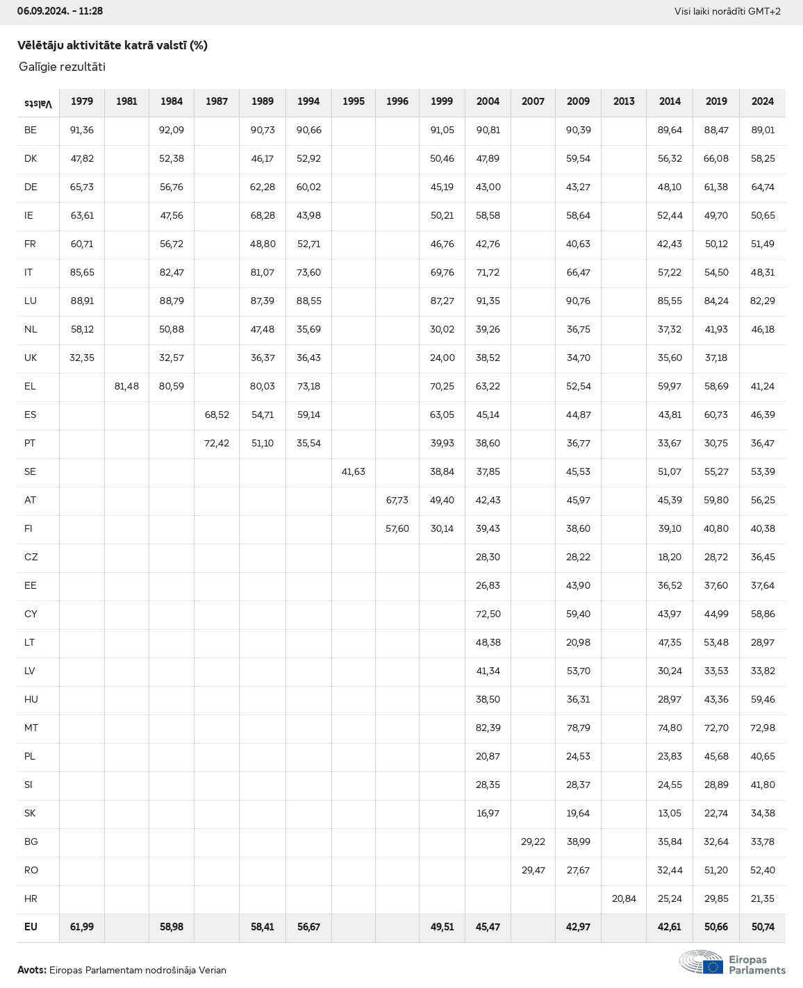2024. gada Eiropas vēlēšanu dati.