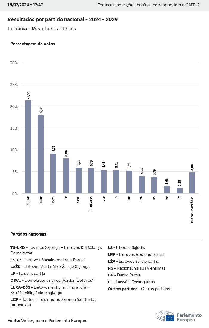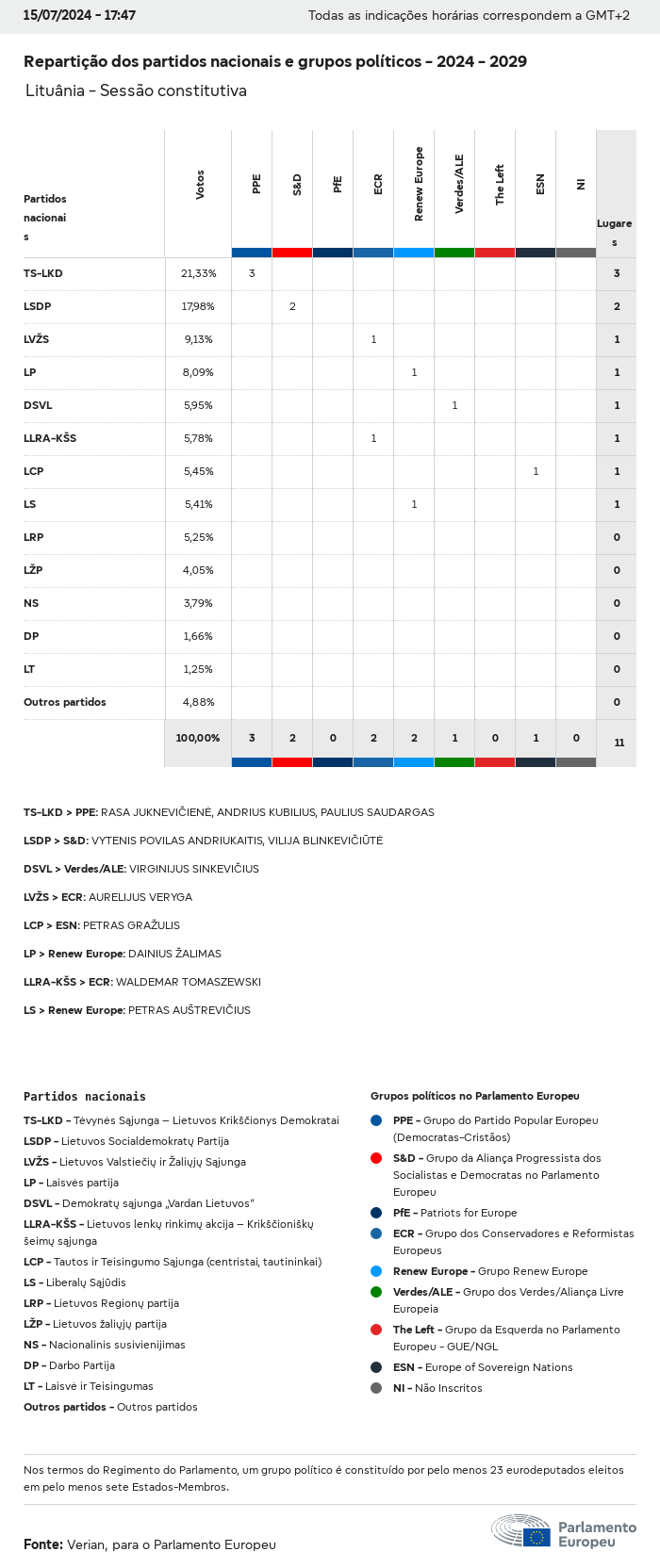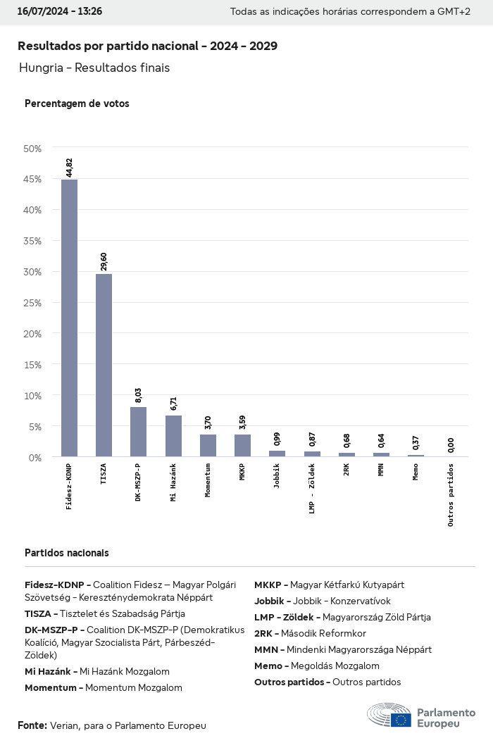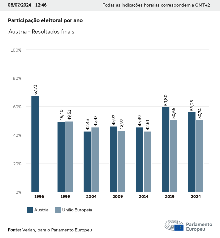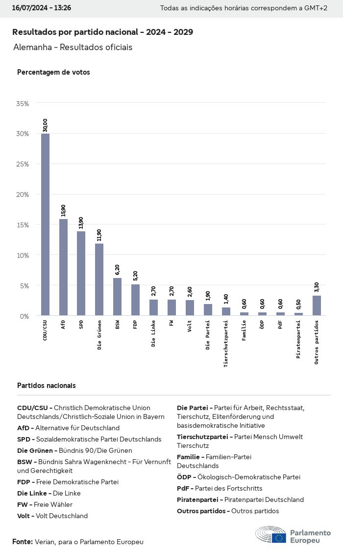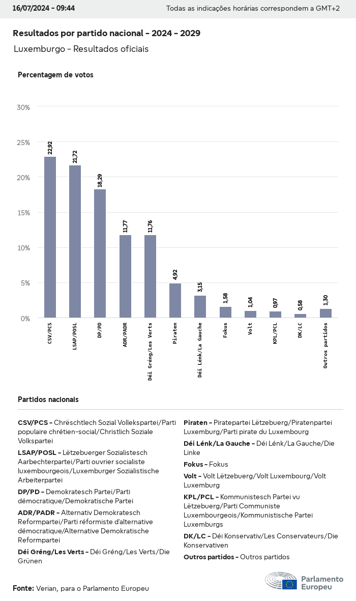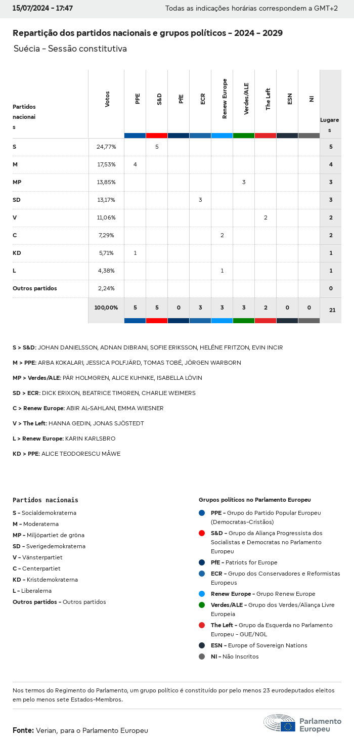 Os dados eleitorais relativos a todas as eleições europeias desde 1979 estão disponíveis abaixo e poderão ser descarregados em vários formatos. Note-se que os ficheiros disponíveis para descarregamento são fornecidos juntamente com uma assinatura digital colocada ao lado dos mesmos. Estas assinaturas podem ser validadas utilizando este certificado, que, por sua vez, pode ser validado utilizando a seguinte cadeia de certificados. Dados das eleições europeias de 2024. json Comum Etiquetas (38 Ko) - Assinatura Participação eleitoral (32 Ko) - Assinatura Dados sobre o equilíbrio de género (7 Ko) - Assinatura Grupos políticos (40 Ko) - Assinatura Partidos nacionais (110 Ko) - Assinatura Dados das eleições europeias (1 Ko) - Assinatura Resultados das eleições be (7 Ko) - Assinatura fbe (4 Ko) - Assinatura gbe (2 Ko) - Assinatura wbe (3 Ko) - Assinatura bg (5 Ko) - Assinatura cz (7 Ko) - Assinatura dk (5 Ko) - Assinatura de (8 Ko) - Assinatura ee (4 Ko) - Assinatura ie (5 Ko) - Assinatura el (5 Ko) - Assinatura es (7 Ko) - Assinatura fr (8 Ko) - Assinatura hr (3 Ko) - Assinatura it (6 Ko) - Assinatura cy (3 Ko) - Assinatura lv (5 Ko) - Assinatura lt (5 Ko) - Assinatura lu (4 Ko) - Assinatura hu (5 Ko) - Assinatura mt (2 Ko) - Assinatura nl (6 Ko) - Assinatura at (3 Ko) - Assinatura pl (7 Ko) - Assinatura pt (5 Ko) - Assinatura ro (5 Ko) - Assinatura si (4 Ko) - Assinatura sk (5 Ko) - Assinatura fi (4 Ko) - Assinatura se (4 Ko) - Assinatura xml Comum Etiquetas (63 Ko) - Assinatura Participação eleitoral (40 Ko) - Assinatura Dados sobre o equilíbrio de género (10 Ko) - Assinatura Grupos políticos (64 Ko) - Assinatura Partidos nacionais (123 Ko) - Assinatura Dados das eleições europeias (2 Ko) - Assinatura Resultados das eleições be (10 Ko) - Assinatura fbe (6 Ko) - Assinatura gbe (3 Ko) - Assinatura wbe (5 Ko) - Assinatura bg (7 Ko) - Assinatura cz (10 Ko) - Assinatura dk (7 Ko) - Assinatura de (11 Ko) - Assinatura ee (6 Ko) - Assinatura ie (7 Ko) - Assinatura el (7 Ko) - Assinatura es (11 Ko) - Assinatura fr (12 Ko) - Assinatura hr (5 Ko) - Assinatura it (9 Ko) - Assinatura cy (5 Ko) - Assinatura lv (7 Ko) - Assinatura lt (7 Ko) - Assinatura lu (6 Ko) - Assinatura hu (7 Ko) - Assinatura mt (3 Ko) - Assinatura nl (9 Ko) - Assinatura at (5 Ko) - Assinatura pl (10 Ko) - Assinatura pt (7 Ko) - Assinatura ro (8 Ko) - Assinatura si (5 Ko) - Assinatura sk (7 Ko) - Assinatura fi (6 Ko) - Assinatura se (6 Ko) - Assinatura csv Participação eleitoral Participação eleitoral a nível da UE (1 Ko) - Assinatura Participação eleitoral por país (5 Ko) - Assinatura Etiquetas (15 Ko) - Assinatura Dados sobre o equilíbrio de género Equilíbrio de género na UE (1 Ko) - Assinatura Equilíbrio de género por país (2 Ko) - Assinatura Grupos políticos (16 Ko) - Assinatura Partidos nacionais (27 Ko) - Assinatura Resultados por partido nacional be (1 Ko) - Assinatura fbe (1 Ko) - Assinatura gbe (1 Ko) - Assinatura wbe (1 Ko) - Assinatura bg (1 Ko) - Assinatura cz (1 Ko) - Assinatura dk (1 Ko) - Assinatura de (1 Ko) - Assinatura ee (1 Ko) - Assinatura ie (1 Ko) - Assinatura el (1 Ko) - Assinatura es (1 Ko) - Assinatura fr (1 Ko) - Assinatura hr (1 Ko) - Assinatura it (1 Ko) - Assinatura cy (1 Ko) - Assinatura lv (1 Ko) - Assinatura lt (1 Ko) - Assinatura lu (1 Ko) - Assinatura hu (1 Ko) - Assinatura mt (1 Ko) - Assinatura nl (1 Ko) - Assinatura at (1 Ko) - Assinatura pl (1 Ko) - Assinatura pt (1 Ko) - Assinatura ro (1 Ko) - Assinatura si (1 Ko) - Assinatura sk (1 Ko) - Assinatura fi (1 Ko) - Assinatura se (1 Ko) - Assinatura Resultados por grupo político EU (1 Ko) - Assinatura be (1 Ko) - Assinatura fbe (1 Ko) - Assinatura gbe (1 Ko) - Assinatura wbe (1 Ko) - Assinatura bg (1 Ko) - Assinatura cz (1 Ko) - Assinatura dk (1 Ko) - Assinatura de (1 Ko) - Assinatura ee (1 Ko) - Assinatura ie (1 Ko) - Assinatura el (1 Ko) - Assinatura es (1 Ko) - Assinatura fr (1 Ko) - Assinatura hr (1 Ko) - Assinatura it (1 Ko) - Assinatura cy (1 Ko) - Assinatura lv (1 Ko) - Assinatura lt (1 Ko) - Assinatura lu (1 Ko) - Assinatura hu (1 Ko) - Assinatura mt (1 Ko) - Assinatura nl (1 Ko) - Assinatura at (1 Ko) - Assinatura pl (1 Ko) - Assinatura pt (1 Ko) - Assinatura ro (1 Ko) - Assinatura si (1 Ko) - Assinatura sk (1 Ko) - Assinatura fi (1 Ko) - Assinatura se (1 Ko) - Assinatura Repartição por partidos nacionais e grupos políticos be (1 Ko) - Assinatura fbe (1 Ko) - Assinatura gbe (1 Ko) - Assinatura wbe (1 Ko) - Assinatura bg (1 Ko) - Assinatura cz (1 Ko) - Assinatura dk (1 Ko) - Assinatura de (1 Ko) - Assinatura ee (1 Ko) - Assinatura ie (1 Ko) - Assinatura el (1 Ko) - Assinatura es (1 Ko) - Assinatura fr (1 Ko) - Assinatura hr (1 Ko) - Assinatura it (1 Ko) - Assinatura cy (1 Ko) - Assinatura lv (1 Ko) - Assinatura lt (1 Ko) - Assinatura lu (1 Ko) - Assinatura hu (1 Ko) - Assinatura mt (1 Ko) - Assinatura nl (1 Ko) - Assinatura at (1 Ko) - Assinatura pl (1 Ko) - Assinatura pt (1 Ko) - Assinatura ro (1 Ko) - Assinatura si (1 Ko) - Assinatura sk (1 Ko) - Assinatura fi (1 Ko) - Assinatura se (1 Ko) - Assinatura jpg Participação eleitoral Participação eleitoral por ano (~30 Ko) Participação eleitoral por país (~140 Ko) Equilíbrio de género entre eurodeputados Equilíbrio de género entre eurodeputados por país Mapa (~130 Ko) Gráfico de barras (~80 Ko) Equilíbrio de género entre eurodeputados por ano (~50 Ko) Resultados das eleições Dados europeus Hemiciclo (~110 Ko) Parlamento Europeu (~250 Ko) Dados nacionais BE Resultados por partido nacional (~90 Ko) Lugares por grupo político (~70 Ko) Repartição por partidos nacionais e grupos políticos (~180 Ko) Equilíbrio de género entre eurodeputados por ano (~50 Ko) Participação eleitoral por ano (~50 Ko) FBE Resultados por partido nacional (~90 Ko) Lugares por grupo político (~70 Ko) Repartição por partidos nacionais e grupos políticos (~180 Ko) GBE Resultados por partido nacional (~90 Ko) Lugares por grupo político (~70 Ko) Repartiç