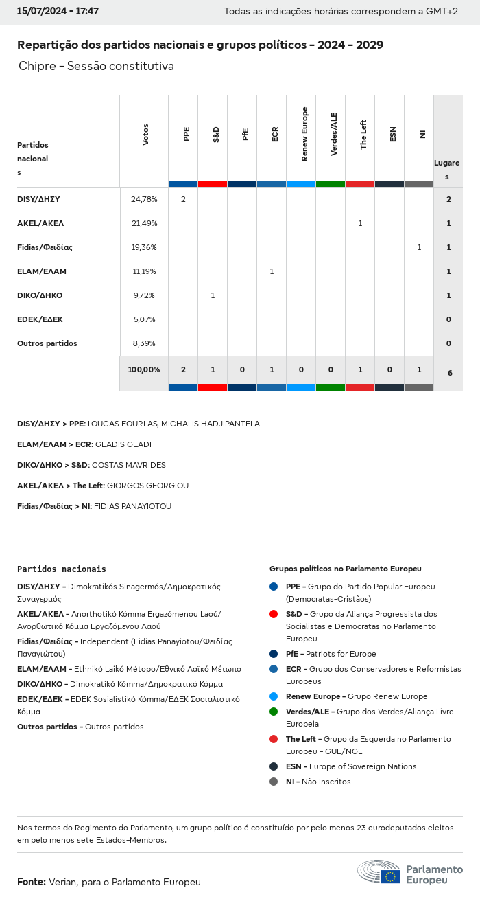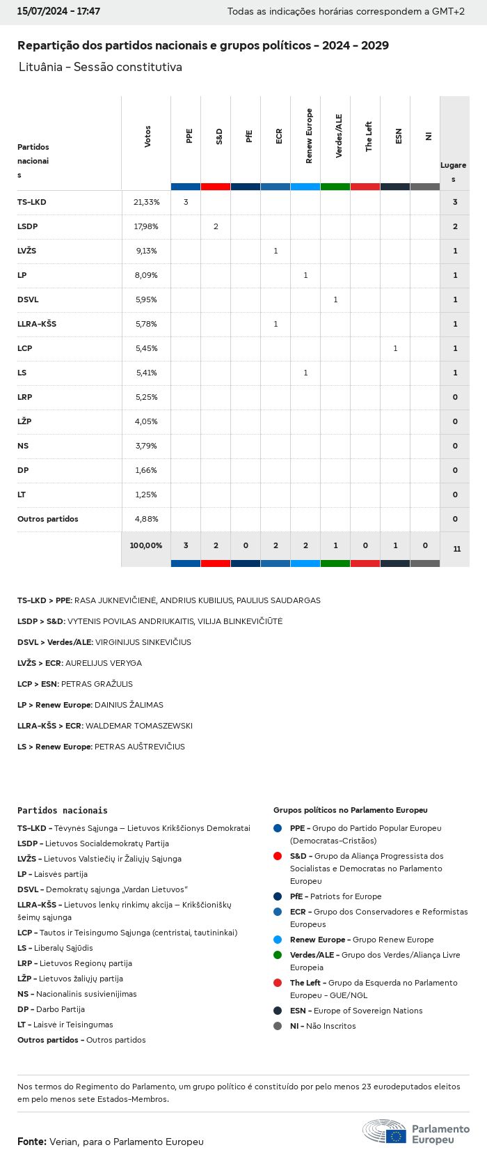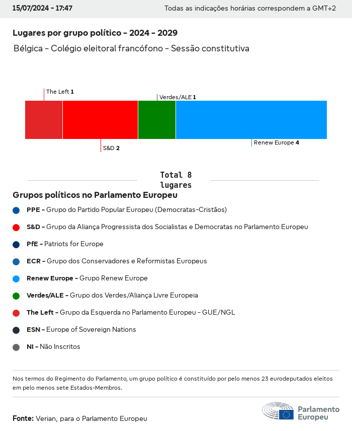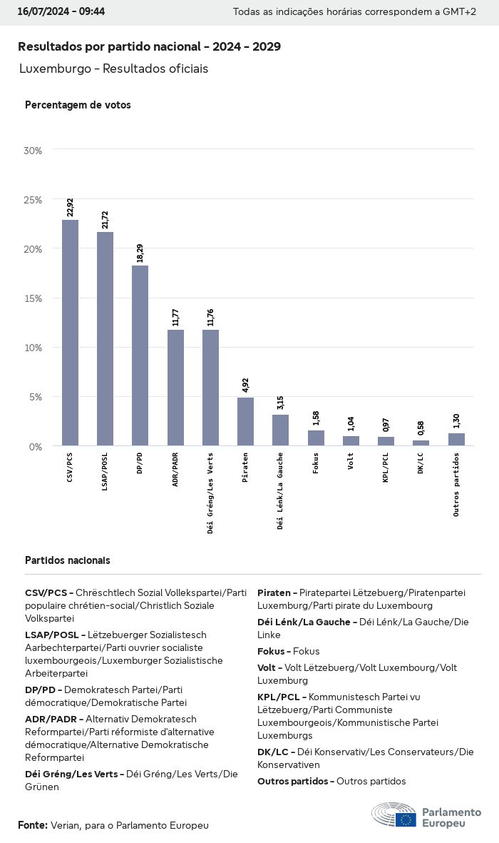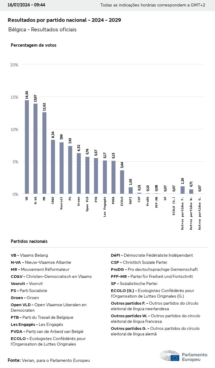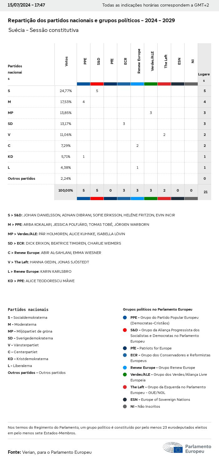 Os dados eleitorais relativos a todas as eleições europeias desde 1979 estão disponíveis abaixo e poderão ser descarregados em vários formatos. Note-se que os ficheiros disponíveis para descarregamento são fornecidos juntamente com uma assinatura digital colocada ao lado dos mesmos. Estas assinaturas podem ser validadas utilizando este certificado, que, por sua vez, pode ser validado utilizando a seguinte cadeia de certificados. Dados das eleições europeias de 2024. json Comum Etiquetas (38 Ko) - Assinatura Participação eleitoral (32 Ko) - Assinatura Dados sobre o equilíbrio de género (7 Ko) - Assinatura Grupos políticos (40 Ko) - Assinatura Partidos nacionais (110 Ko) - Assinatura Dados das eleições europeias (1 Ko) - Assinatura Resultados das eleições be (7 Ko) - Assinatura fbe (4 Ko) - Assinatura gbe (2 Ko) - Assinatura wbe (3 Ko) - Assinatura bg (5 Ko) - Assinatura cz (7 Ko) - Assinatura dk (5 Ko) - Assinatura de (8 Ko) - Assinatura ee (4 Ko) - Assinatura ie (5 Ko) - Assinatura el (5 Ko) - Assinatura es (7 Ko) - Assinatura fr (8 Ko) - Assinatura hr (3 Ko) - Assinatura it (6 Ko) - Assinatura cy (3 Ko) - Assinatura lv (5 Ko) - Assinatura lt (5 Ko) - Assinatura lu (4 Ko) - Assinatura hu (5 Ko) - Assinatura mt (2 Ko) - Assinatura nl (6 Ko) - Assinatura at (3 Ko) - Assinatura pl (7 Ko) - Assinatura pt (5 Ko) - Assinatura ro (5 Ko) - Assinatura si (4 Ko) - Assinatura sk (5 Ko) - Assinatura fi (4 Ko) - Assinatura se (4 Ko) - Assinatura xml Comum Etiquetas (63 Ko) - Assinatura Participação eleitoral (40 Ko) - Assinatura Dados sobre o equilíbrio de género (10 Ko) - Assinatura Grupos políticos (64 Ko) - Assinatura Partidos nacionais (123 Ko) - Assinatura Dados das eleições europeias (2 Ko) - Assinatura Resultados das eleições be (10 Ko) - Assinatura fbe (6 Ko) - Assinatura gbe (3 Ko) - Assinatura wbe (5 Ko) - Assinatura bg (7 Ko) - Assinatura cz (10 Ko) - Assinatura dk (7 Ko) - Assinatura de (11 Ko) - Assinatura ee (6 Ko) - Assinatura ie (7 Ko) - Assinatura el (7 Ko) - Assinatura es (11 Ko) - Assinatura fr (12 Ko) - Assinatura hr (5 Ko) - Assinatura it (9 Ko) - Assinatura cy (5 Ko) - Assinatura lv (7 Ko) - Assinatura lt (7 Ko) - Assinatura lu (6 Ko) - Assinatura hu (7 Ko) - Assinatura mt (3 Ko) - Assinatura nl (9 Ko) - Assinatura at (5 Ko) - Assinatura pl (10 Ko) - Assinatura pt (7 Ko) - Assinatura ro (8 Ko) - Assinatura si (5 Ko) - Assinatura sk (7 Ko) - Assinatura fi (6 Ko) - Assinatura se (6 Ko) - Assinatura csv Participação eleitoral Participação eleitoral a nível da UE (1 Ko) - Assinatura Participação eleitoral por país (5 Ko) - Assinatura Etiquetas (15 Ko) - Assinatura Dados sobre o equilíbrio de género Equilíbrio de género na UE (1 Ko) - Assinatura Equilíbrio de género por país (2 Ko) - Assinatura Grupos políticos (16 Ko) - Assinatura Partidos nacionais (27 Ko) - Assinatura Resultados por partido nacional be (1 Ko) - Assinatura fbe (1 Ko) - Assinatura gbe (1 Ko) - Assinatura wbe (1 Ko) - Assinatura bg (1 Ko) - Assinatura cz (1 Ko) - Assinatura dk (1 Ko) - Assinatura de (1 Ko) - Assinatura ee (1 Ko) - Assinatura ie (1 Ko) - Assinatura el (1 Ko) - Assinatura es (1 Ko) - Assinatura fr (1 Ko) - Assinatura hr (1 Ko) - Assinatura it (1 Ko) - Assinatura cy (1 Ko) - Assinatura lv (1 Ko) - Assinatura lt (1 Ko) - Assinatura lu (1 Ko) - Assinatura hu (1 Ko) - Assinatura mt (1 Ko) - Assinatura nl (1 Ko) - Assinatura at (1 Ko) - Assinatura pl (1 Ko) - Assinatura pt (1 Ko) - Assinatura ro (1 Ko) - Assinatura si (1 Ko) - Assinatura sk (1 Ko) - Assinatura fi (1 Ko) - Assinatura se (1 Ko) - Assinatura Resultados por grupo político EU (1 Ko) - Assinatura be (1 Ko) - Assinatura fbe (1 Ko) - Assinatura gbe (1 Ko) - Assinatura wbe (1 Ko) - Assinatura bg (1 Ko) - Assinatura cz (1 Ko) - Assinatura dk (1 Ko) - Assinatura de (1 Ko) - Assinatura ee (1 Ko) - Assinatura ie (1 Ko) - Assinatura el (1 Ko) - Assinatura es (1 Ko) - Assinatura fr (1 Ko) - Assinatura hr (1 Ko) - Assinatura it (1 Ko) - Assinatura cy (1 Ko) - Assinatura lv (1 Ko) - Assinatura lt (1 Ko) - Assinatura lu (1 Ko) - Assinatura hu (1 Ko) - Assinatura mt (1 Ko) - Assinatura nl (1 Ko) - Assinatura at (1 Ko) - Assinatura pl (1 Ko) - Assinatura pt (1 Ko) - Assinatura ro (1 Ko) - Assinatura si (1 Ko) - Assinatura sk (1 Ko) - Assinatura fi (1 Ko) - Assinatura se (1 Ko) - Assinatura Repartição por partidos nacionais e grupos políticos be (1 Ko) - Assinatura fbe (1 Ko) - Assinatura gbe (1 Ko) - Assinatura wbe (1 Ko) - Assinatura bg (1 Ko) - Assinatura cz (1 Ko) - Assinatura dk (1 Ko) - Assinatura de (1 Ko) - Assinatura ee (1 Ko) - Assinatura ie (1 Ko) - Assinatura el (1 Ko) - Assinatura es (1 Ko) - Assinatura fr (1 Ko) - Assinatura hr (1 Ko) - Assinatura it (1 Ko) - Assinatura cy (1 Ko) - Assinatura lv (1 Ko) - Assinatura lt (1 Ko) - Assinatura lu (1 Ko) - Assinatura hu (1 Ko) - Assinatura mt (1 Ko) - Assinatura nl (1 Ko) - Assinatura at (1 Ko) - Assinatura pl (1 Ko) - Assinatura pt (1 Ko) - Assinatura ro (1 Ko) - Assinatura si (1 Ko) - Assinatura sk (1 Ko) - Assinatura fi (1 Ko) - Assinatura se (1 Ko) - Assinatura jpg Participação eleitoral Participação eleitoral por ano (~30 Ko) Participação eleitoral por país (~140 Ko) Equilíbrio de género entre eurodeputados Equilíbrio de género entre eurodeputados por país Mapa (~130 Ko) Gráfico de barras (~80 Ko) Equilíbrio de género entre eurodeputados por ano (~50 Ko) Resultados das eleições Dados europeus Hemiciclo (~110 Ko) Parlamento Europeu (~250 Ko) Dados nacionais BE Resultados por partido nacional (~90 Ko) Lugares por grupo político (~70 Ko) Repartição por partidos nacionais e grupos políticos (~180 Ko) Equilíbrio de género entre eurodeputados por ano (~50 Ko) Participação eleitoral por ano (~50 Ko) FBE Resultados por partido nacional (~90 Ko) Lugares por grupo político (~70 Ko) Repartição por partidos nacionais e grupos políticos (~180 Ko) GBE Resultados por partido nacional (~90 Ko) Lugares por grupo político (~70 Ko) Repartiç
