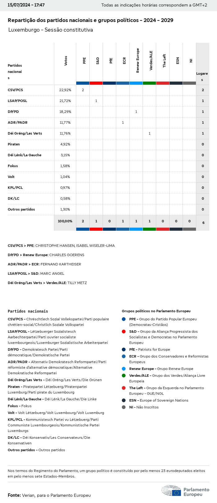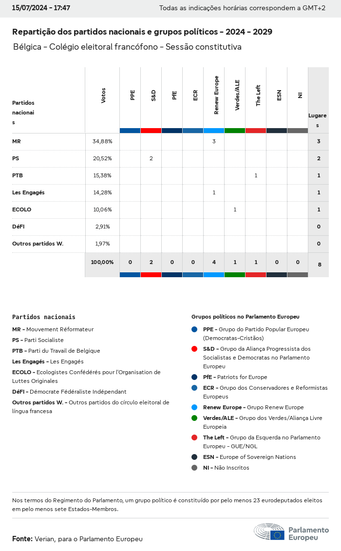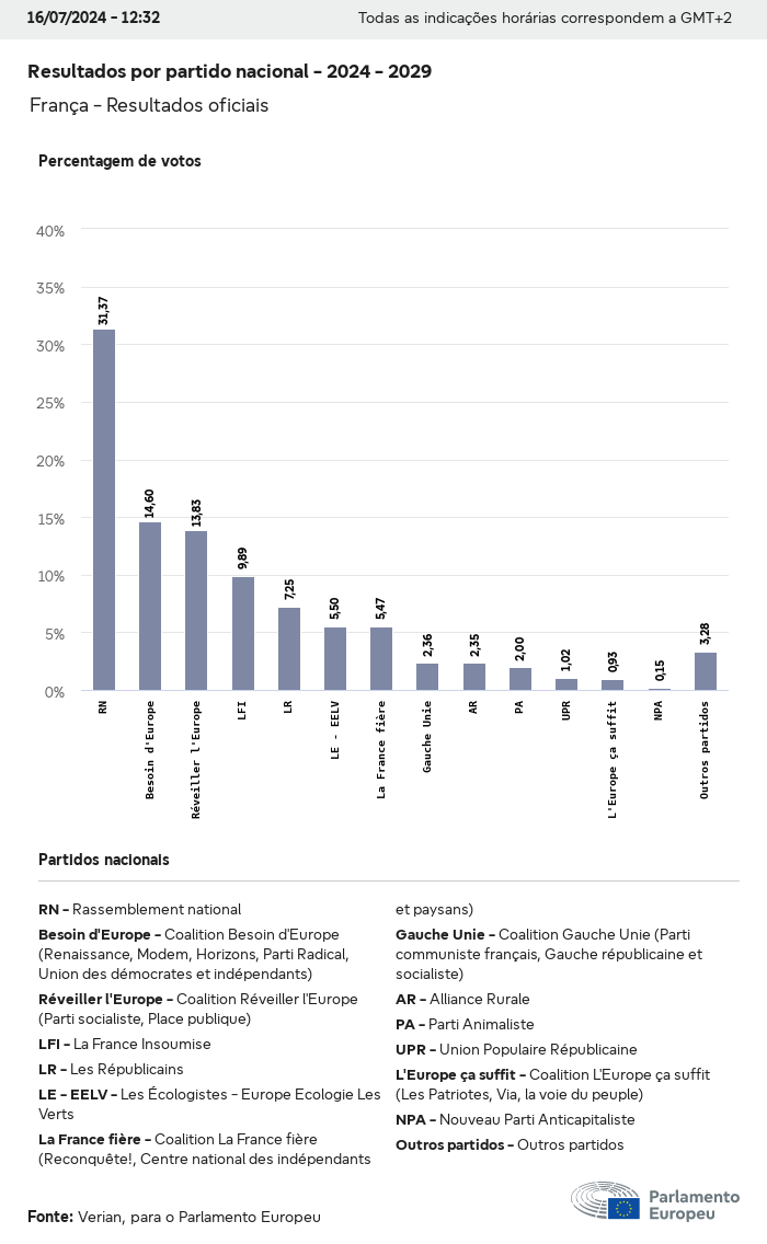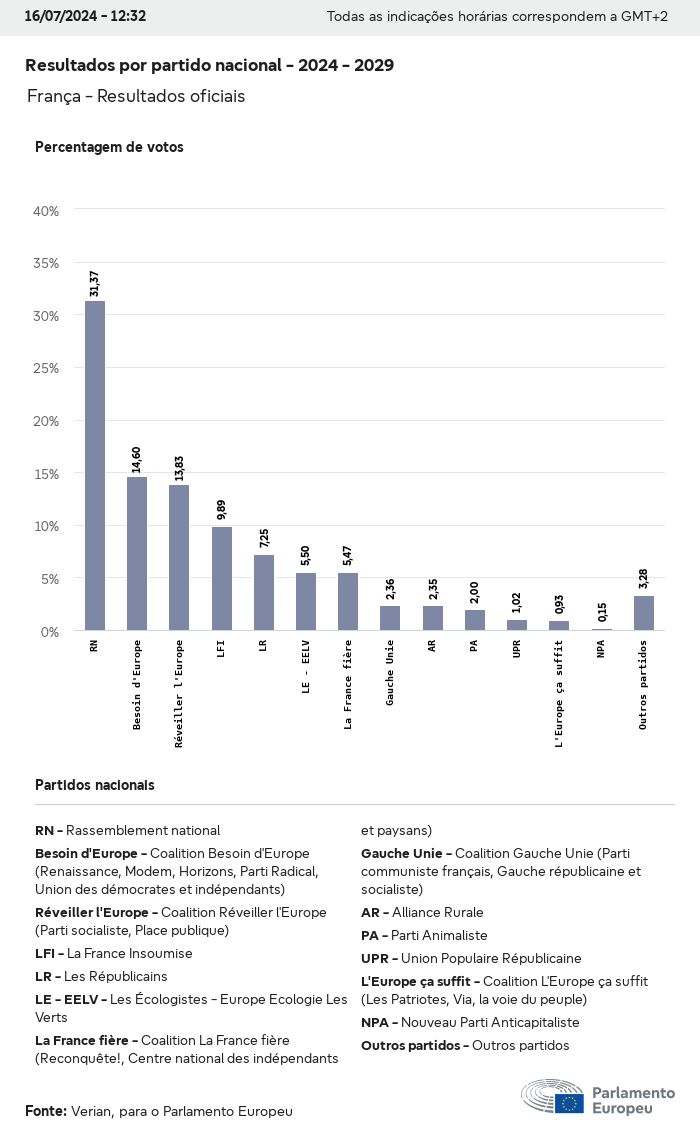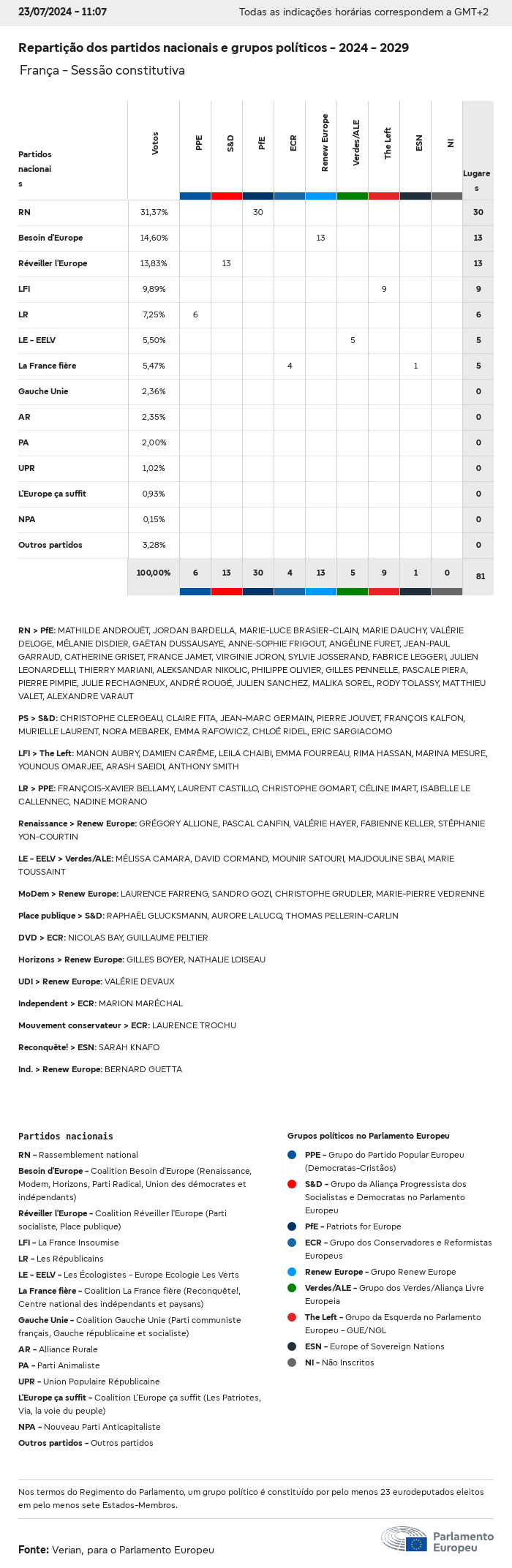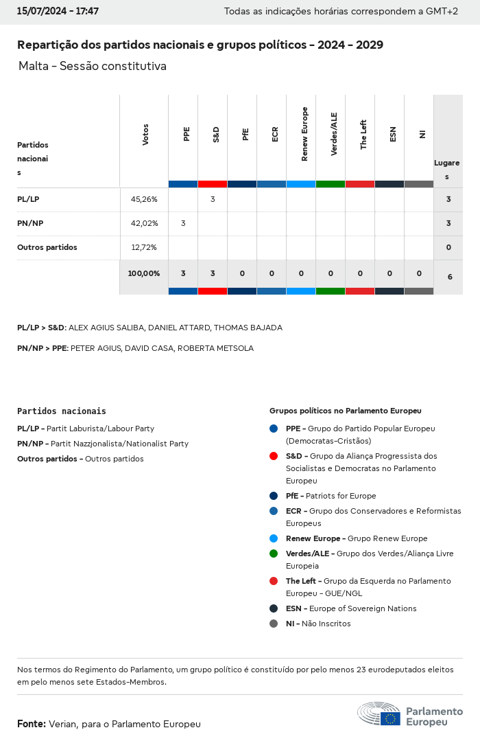Os dados eleitorais relativos a todas as eleições europeias desde 1979 estão disponíveis abaixo e poderão ser descarregados em vários formatos. Note-se que os ficheiros disponíveis para descarregamento são fornecidos juntamente com uma assinatura digital colocada ao lado dos mesmos. Estas assinaturas podem ser validadas utilizando este certificado, que, por sua vez, pode ser validado utilizando a seguinte cadeia de certificados. Dados das eleições europeias de 2024. json Comum Etiquetas (38 Ko) - Assinatura Participação eleitoral (32 Ko) - Assinatura Dados sobre o equilíbrio de género (7 Ko) - Assinatura Grupos políticos (40 Ko) - Assinatura Partidos nacionais (110 Ko) - Assinatura Dados das eleições europeias (1 Ko) - Assinatura Resultados das eleições be (7 Ko) - Assinatura fbe (4 Ko) - Assinatura gbe (2 Ko) - Assinatura wbe (3 Ko) - Assinatura bg (5 Ko) - Assinatura cz (7 Ko) - Assinatura dk (5 Ko) - Assinatura de (8 Ko) - Assinatura ee (4 Ko) - Assinatura ie (5 Ko) - Assinatura el (5 Ko) - Assinatura es (7 Ko) - Assinatura fr (8 Ko) - Assinatura hr (3 Ko) - Assinatura it (6 Ko) - Assinatura cy (3 Ko) - Assinatura lv (5 Ko) - Assinatura lt (5 Ko) - Assinatura lu (4 Ko) - Assinatura hu (5 Ko) - Assinatura mt (2 Ko) - Assinatura nl (6 Ko) - Assinatura at (3 Ko) - Assinatura pl (7 Ko) - Assinatura pt (5 Ko) - Assinatura ro (5 Ko) - Assinatura si (4 Ko) - Assinatura sk (5 Ko) - Assinatura fi (4 Ko) - Assinatura se (4 Ko) - Assinatura xml Comum Etiquetas (63 Ko) - Assinatura Participação eleitoral (40 Ko) - Assinatura Dados sobre o equilíbrio de género (10 Ko) - Assinatura Grupos políticos (64 Ko) - Assinatura Partidos nacionais (123 Ko) - Assinatura Dados das eleições europeias (2 Ko) - Assinatura Resultados das eleições be (10 Ko) - Assinatura fbe (6 Ko) - Assinatura gbe (3 Ko) - Assinatura wbe (5 Ko) - Assinatura bg (7 Ko) - Assinatura cz (10 Ko) - Assinatura dk (7 Ko) - Assinatura de (11 Ko) - Assinatura ee (6 Ko) - Assinatura ie (7 Ko) - Assinatura el (7 Ko) - Assinatura es (11 Ko) - Assinatura fr (12 Ko) - Assinatura hr (5 Ko) - Assinatura it (9 Ko) - Assinatura cy (5 Ko) - Assinatura lv (7 Ko) - Assinatura lt (7 Ko) - Assinatura lu (6 Ko) - Assinatura hu (7 Ko) - Assinatura mt (3 Ko) - Assinatura nl (9 Ko) - Assinatura at (5 Ko) - Assinatura pl (10 Ko) - Assinatura pt (7 Ko) - Assinatura ro (8 Ko) - Assinatura si (5 Ko) - Assinatura sk (7 Ko) - Assinatura fi (6 Ko) - Assinatura se (6 Ko) - Assinatura csv Participação eleitoral Participação eleitoral a nível da UE (1 Ko) - Assinatura Participação eleitoral por país (5 Ko) - Assinatura Etiquetas (15 Ko) - Assinatura Dados sobre o equilíbrio de género Equilíbrio de género na UE (1 Ko) - Assinatura Equilíbrio de género por país (2 Ko) - Assinatura Grupos políticos (16 Ko) - Assinatura Partidos nacionais (27 Ko) - Assinatura Resultados por partido nacional be (1 Ko) - Assinatura fbe (1 Ko) - Assinatura gbe (1 Ko) - Assinatura wbe (1 Ko) - Assinatura bg (1 Ko) - Assinatura cz (1 Ko) - Assinatura dk (1 Ko) - Assinatura de (1 Ko) - Assinatura ee (1 Ko) - Assinatura ie (1 Ko) - Assinatura el (1 Ko) - Assinatura es (1 Ko) - Assinatura fr (1 Ko) - Assinatura hr (1 Ko) - Assinatura it (1 Ko) - Assinatura cy (1 Ko) - Assinatura lv (1 Ko) - Assinatura lt (1 Ko) - Assinatura lu (1 Ko) - Assinatura hu (1 Ko) - Assinatura mt (1 Ko) - Assinatura nl (1 Ko) - Assinatura at (1 Ko) - Assinatura pl (1 Ko) - Assinatura pt (1 Ko) - Assinatura ro (1 Ko) - Assinatura si (1 Ko) - Assinatura sk (1 Ko) - Assinatura fi (1 Ko) - Assinatura se (1 Ko) - Assinatura Resultados por grupo político EU (1 Ko) - Assinatura be (1 Ko) - Assinatura fbe (1 Ko) - Assinatura gbe (1 Ko) - Assinatura wbe (1 Ko) - Assinatura bg (1 Ko) - Assinatura cz (1 Ko) - Assinatura dk (1 Ko) - Assinatura de (1 Ko) - Assinatura ee (1 Ko) - Assinatura ie (1 Ko) - Assinatura el (1 Ko) - Assinatura es (1 Ko) - Assinatura fr (1 Ko) - Assinatura hr (1 Ko) - Assinatura it (1 Ko) - Assinatura cy (1 Ko) - Assinatura lv (1 Ko) - Assinatura lt (1 Ko) - Assinatura lu (1 Ko) - Assinatura hu (1 Ko) - Assinatura mt (1 Ko) - Assinatura nl (1 Ko) - Assinatura at (1 Ko) - Assinatura pl (1 Ko) - Assinatura pt (1 Ko) - Assinatura ro (1 Ko) - Assinatura si (1 Ko) - Assinatura sk (1 Ko) - Assinatura fi (1 Ko) - Assinatura se (1 Ko) - Assinatura Repartição por partidos nacionais e grupos políticos be (1 Ko) - Assinatura fbe (1 Ko) - Assinatura gbe (1 Ko) - Assinatura wbe (1 Ko) - Assinatura bg (1 Ko) - Assinatura cz (1 Ko) - Assinatura dk (1 Ko) - Assinatura de (1 Ko) - Assinatura ee (1 Ko) - Assinatura ie (1 Ko) - Assinatura el (1 Ko) - Assinatura es (1 Ko) - Assinatura fr (1 Ko) - Assinatura hr (1 Ko) - Assinatura it (1 Ko) - Assinatura cy (1 Ko) - Assinatura lv (1 Ko) - Assinatura lt (1 Ko) - Assinatura lu (1 Ko) - Assinatura hu (1 Ko) - Assinatura mt (1 Ko) - Assinatura nl (1 Ko) - Assinatura at (1 Ko) - Assinatura pl (1 Ko) - Assinatura pt (1 Ko) - Assinatura ro (1 Ko) - Assinatura si (1 Ko) - Assinatura sk (1 Ko) - Assinatura fi (1 Ko) - Assinatura se (1 Ko) - Assinatura jpg Participação eleitoral Participação eleitoral por ano (~30 Ko) Participação eleitoral por país (~140 Ko) Equilíbrio de género entre eurodeputados Equilíbrio de género entre eurodeputados por país Mapa (~130 Ko) Gráfico de barras (~80 Ko) Equilíbrio de género entre eurodeputados por ano (~50 Ko) Resultados das eleições Dados europeus Hemiciclo (~110 Ko) Parlamento Europeu (~250 Ko) Dados nacionais BE Resultados por partido nacional (~90 Ko) Lugares por grupo político (~70 Ko) Repartição por partidos nacionais e grupos políticos (~180 Ko) Equilíbrio de género entre eurodeputados por ano (~50 Ko) Participação eleitoral por ano (~50 Ko) FBE Resultados por partido nacional (~90 Ko) Lugares por grupo político (~70 Ko) Repartição por partidos nacionais e grupos políticos (~180 Ko) GBE Resultados por partido nacional (~90 Ko) Lugares por grupo político (~70 Ko) Repartiç