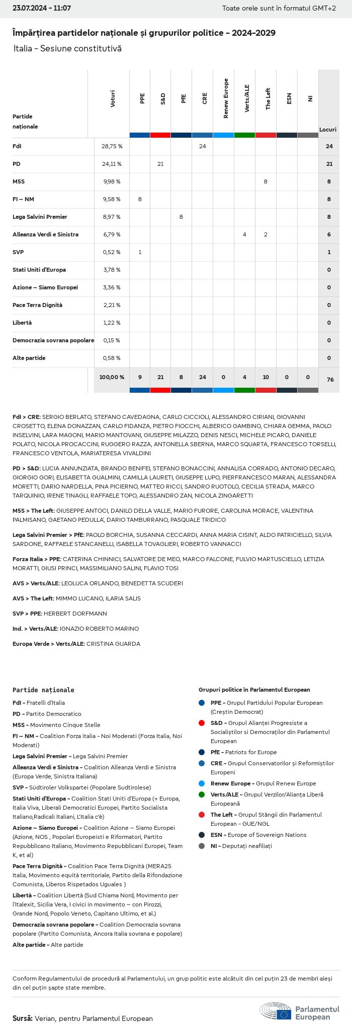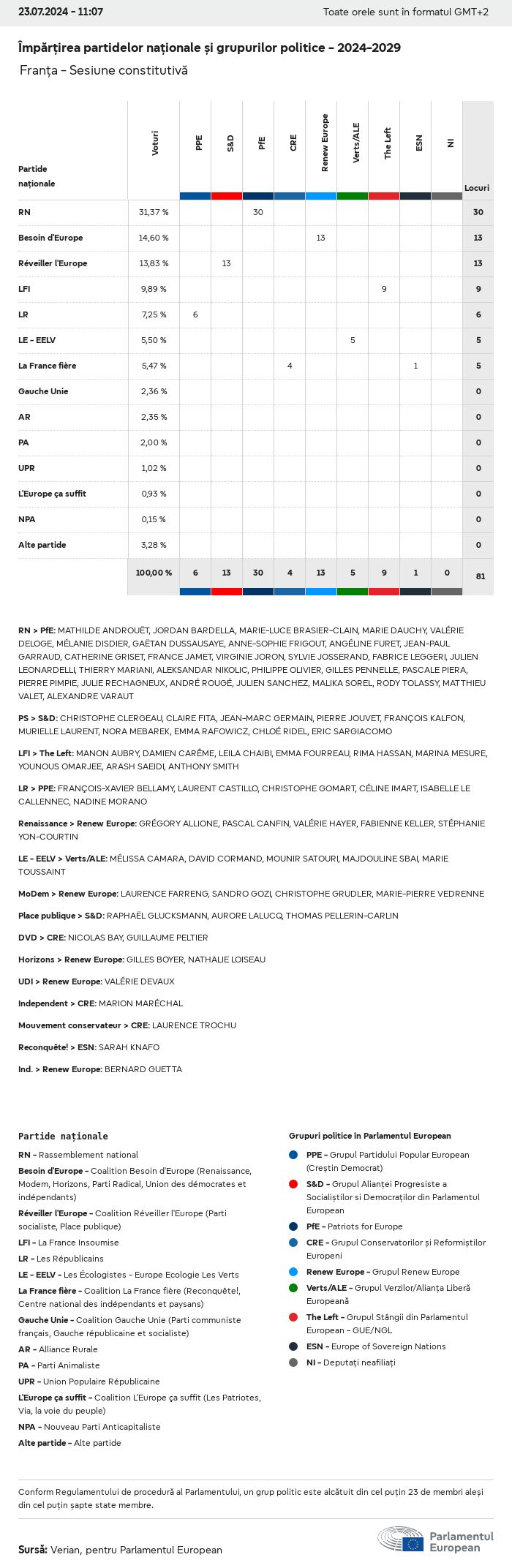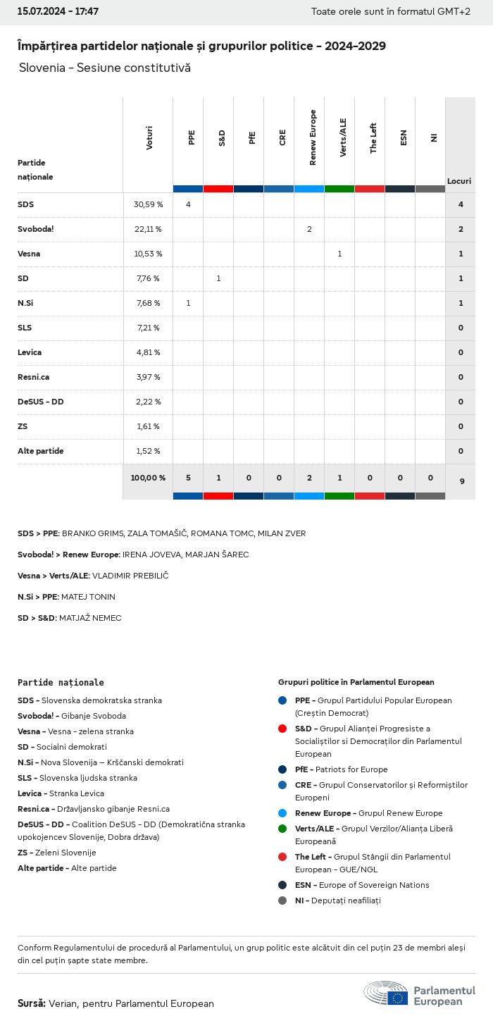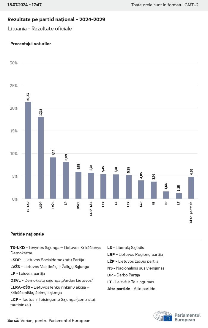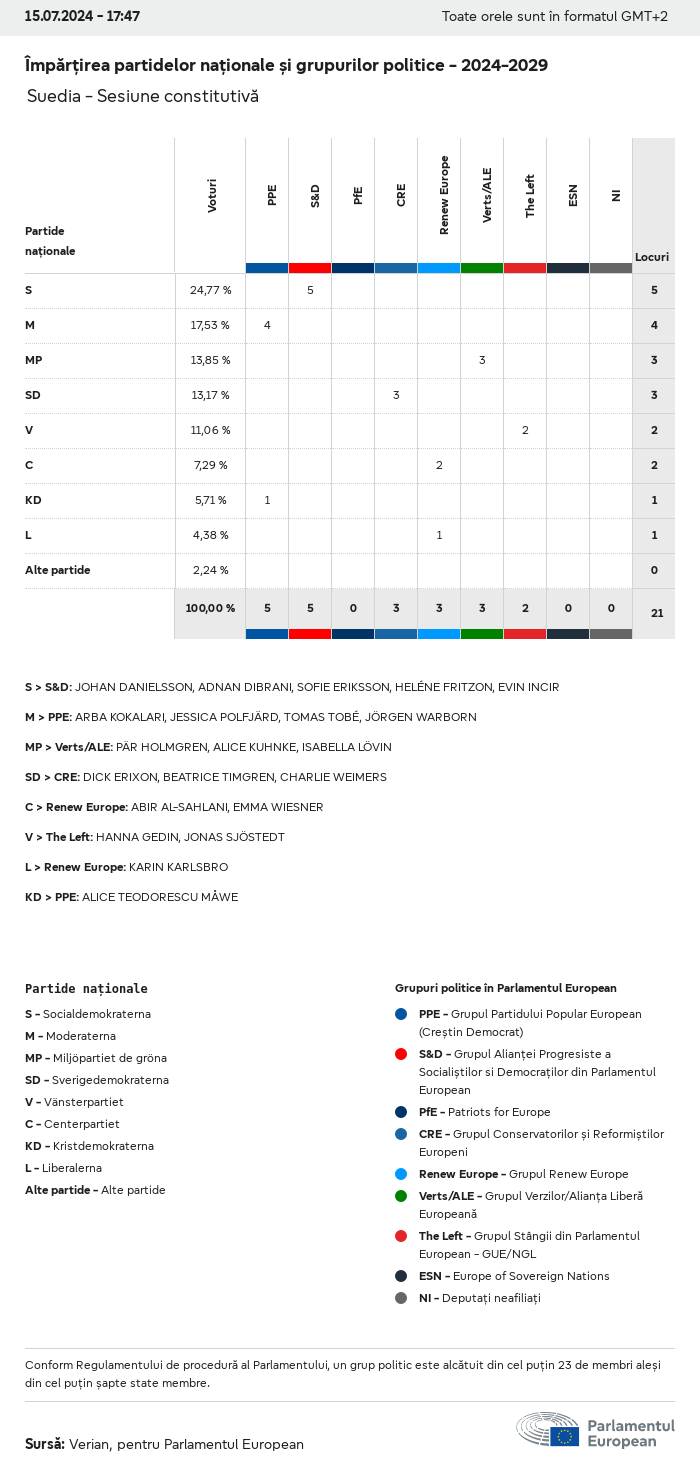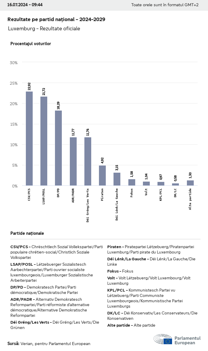 Datele electorale pentru toate alegerile europene începând cu 1979 sunt disponibile pentru descărcare mai jos în diverse formate. Rețineți că fișierele disponibile pentru descărcare sunt furnizate împreună cu o semnătură digitală. Aceste semnături pot fi validate utilizând acest certificat, care la rândul său poate fi validat utilizând următorul lanț de certificate. Date electorale europene 2024. json Obișnuit Etichete (38 Ko) - Semnătura Rată de participare (32 Ko) - Semnătura Date despre echilibrul de gen (7 Ko) - Semnătura Grupuri politice (40 Ko) - Semnătura Partide naționale (110 Ko) - Semnătura Date electorale europene (1 Ko) - Semnătura Rezultate electorale be (7 Ko) - Semnătura fbe (4 Ko) - Semnătura gbe (2 Ko) - Semnătura wbe (3 Ko) - Semnătura bg (5 Ko) - Semnătura cz (7 Ko) - Semnătura dk (5 Ko) - Semnătura de (8 Ko) - Semnătura ee (4 Ko) - Semnătura ie (5 Ko) - Semnătura el (5 Ko) - Semnătura es (7 Ko) - Semnătura fr (8 Ko) - Semnătura hr (3 Ko) - Semnătura it (6 Ko) - Semnătura cy (3 Ko) - Semnătura lv (5 Ko) - Semnătura lt (5 Ko) - Semnătura lu (4 Ko) - Semnătura hu (5 Ko) - Semnătura mt (2 Ko) - Semnătura nl (6 Ko) - Semnătura at (3 Ko) - Semnătura pl (7 Ko) - Semnătura pt (5 Ko) - Semnătura ro (5 Ko) - Semnătura si (4 Ko) - Semnătura sk (5 Ko) - Semnătura fi (4 Ko) - Semnătura se (4 Ko) - Semnătura xml Obișnuit Etichete (63 Ko) - Semnătura Rată de participare (40 Ko) - Semnătura Date despre echilibrul de gen (10 Ko) - Semnătura Grupuri politice (64 Ko) - Semnătura Partide naționale (123 Ko) - Semnătura Date electorale europene (2 Ko) - Semnătura Rezultate electorale be (10 Ko) - Semnătura fbe (6 Ko) - Semnătura gbe (3 Ko) - Semnătura wbe (5 Ko) - Semnătura bg (7 Ko) - Semnătura cz (10 Ko) - Semnătura dk (7 Ko) - Semnătura de (11 Ko) - Semnătura ee (6 Ko) - Semnătura ie (7 Ko) - Semnătura el (7 Ko) - Semnătura es (11 Ko) - Semnătura fr (12 Ko) - Semnătura hr (5 Ko) - Semnătura it (9 Ko) - Semnătura cy (5 Ko) - Semnătura lv (7 Ko) - Semnătura lt (7 Ko) - Semnătura lu (6 Ko) - Semnătura hu (7 Ko) - Semnătura mt (3 Ko) - Semnătura nl (9 Ko) - Semnătura at (5 Ko) - Semnătura pl (10 Ko) - Semnătura pt (7 Ko) - Semnătura ro (8 Ko) - Semnătura si (5 Ko) - Semnătura sk (7 Ko) - Semnătura fi (6 Ko) - Semnătura se (6 Ko) - Semnătura csv Rată de participare Rată de participare în UE (1 Ko) - Semnătura Rată de participare în funcție de țară (5 Ko) - Semnătura Etichete (15 Ko) - Semnătura Date despre echilibrul de gen Echilibrul de gen în UE (1 Ko) - Semnătura Echilibrul de gen în funcție de țară (2 Ko) - Semnătura Grupuri politice (16 Ko) - Semnătura Partide naționale (27 Ko) - Semnătura Rezultate pe partid național be (1 Ko) - Semnătura fbe (1 Ko) - Semnătura gbe (1 Ko) - Semnătura wbe (1 Ko) - Semnătura bg (1 Ko) - Semnătura cz (1 Ko) - Semnătura dk (1 Ko) - Semnătura de (1 Ko) - Semnătura ee (1 Ko) - Semnătura ie (1 Ko) - Semnătura el (1 Ko) - Semnătura es (1 Ko) - Semnătura fr (1 Ko) - Semnătura hr (1 Ko) - Semnătura it (1 Ko) - Semnătura cy (1 Ko) - Semnătura lv (1 Ko) - Semnătura lt (1 Ko) - Semnătura lu (1 Ko) - Semnătura hu (1 Ko) - Semnătura mt (1 Ko) - Semnătura nl (1 Ko) - Semnătura at (1 Ko) - Semnătura pl (1 Ko) - Semnătura pt (1 Ko) - Semnătura ro (1 Ko) - Semnătura si (1 Ko) - Semnătura sk (1 Ko) - Semnătura fi (1 Ko) - Semnătura se (1 Ko) - Semnătura Rezultate în funcție de grupul politic EU (1 Ko) - Semnătura be (1 Ko) - Semnătura fbe (1 Ko) - Semnătura gbe (1 Ko) - Semnătura wbe (1 Ko) - Semnătura bg (1 Ko) - Semnătura cz (1 Ko) - Semnătura dk (1 Ko) - Semnătura de (1 Ko) - Semnătura ee (1 Ko) - Semnătura ie (1 Ko) - Semnătura el (1 Ko) - Semnătura es (1 Ko) - Semnătura fr (1 Ko) - Semnătura hr (1 Ko) - Semnătura it (1 Ko) - Semnătura cy (1 Ko) - Semnătura lv (1 Ko) - Semnătura lt (1 Ko) - Semnătura lu (1 Ko) - Semnătura hu (1 Ko) - Semnătura mt (1 Ko) - Semnătura nl (1 Ko) - Semnătura at (1 Ko) - Semnătura pl (1 Ko) - Semnătura pt (1 Ko) - Semnătura ro (1 Ko) - Semnătura si (1 Ko) - Semnătura sk (1 Ko) - Semnătura fi (1 Ko) - Semnătura se (1 Ko) - Semnătura Împărțire în funcție de partide naționale și grupuri politice be (1 Ko) - Semnătura fbe (1 Ko) - Semnătura gbe (1 Ko) - Semnătura wbe (1 Ko) - Semnătura bg (1 Ko) - Semnătura cz (1 Ko) - Semnătura dk (1 Ko) - Semnătura de (1 Ko) - Semnătura ee (1 Ko) - Semnătura ie (1 Ko) - Semnătura el (1 Ko) - Semnătura es (1 Ko) - Semnătura fr (1 Ko) - Semnătura hr (1 Ko) - Semnătura it (1 Ko) - Semnătura cy (1 Ko) - Semnătura lv (1 Ko) - Semnătura lt (1 Ko) - Semnătura lu (1 Ko) - Semnătura hu (1 Ko) - Semnătura mt (1 Ko) - Semnătura nl (1 Ko) - Semnătura at (1 Ko) - Semnătura pl (1 Ko) - Semnătura pt (1 Ko) - Semnătura ro (1 Ko) - Semnătura si (1 Ko) - Semnătura sk (1 Ko) - Semnătura fi (1 Ko) - Semnătura se (1 Ko) - Semnătura jpg Rată de participare Rată de participare în funcție de an (~30 Ko) Rată de participare în funcție de țară (~140 Ko) Echilibrul de gen al deputaților europeni Echilibrul de gen al deputaților europeni în funcție de țară Hartă (~130 Ko) Diagramă cu bare (~80 Ko) Echilibrul de gen al deputaților europeni în funcție de an (~50 Ko) Rezultate electorale Date europene Hemiciclu (~110 Ko) Parlamentul European (~250 Ko) Date naționale BE Rezultate pe partid național (~90 Ko) Locuri în funcție de grupul politic (~70 Ko) Împărțire în funcție de partide naționale și grupuri politice (~180 Ko) Echilibrul de gen al deputaților europeni în funcție de an (~50 Ko) Rată de participare în funcție de an (~50 Ko) FBE Rezultate pe partid național (~90 Ko) Locuri în funcție de grupul politic (~70 Ko) Împărțire în funcție de partide naționale și grupuri politice (~180 Ko) GBE Rezultate pe partid național (~90 Ko) Locuri în funcție de grupul politic (~70 Ko)