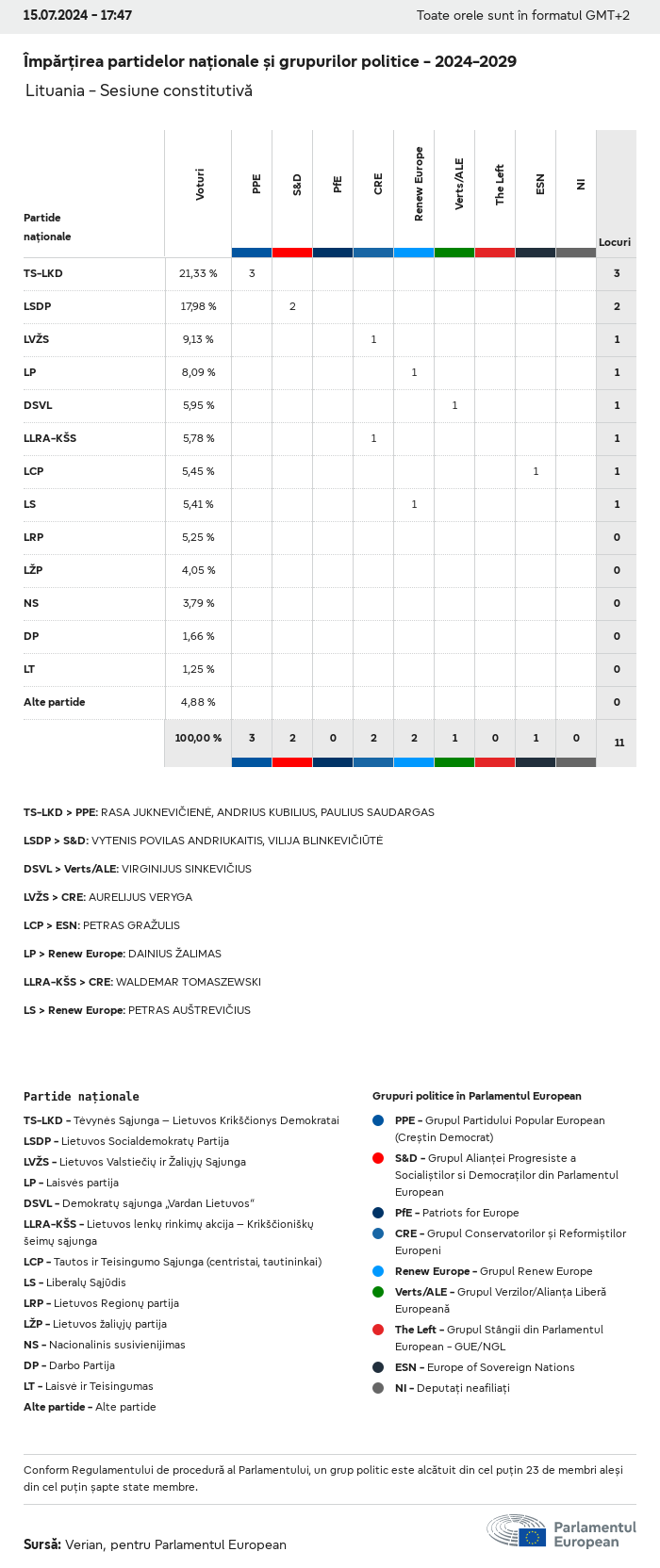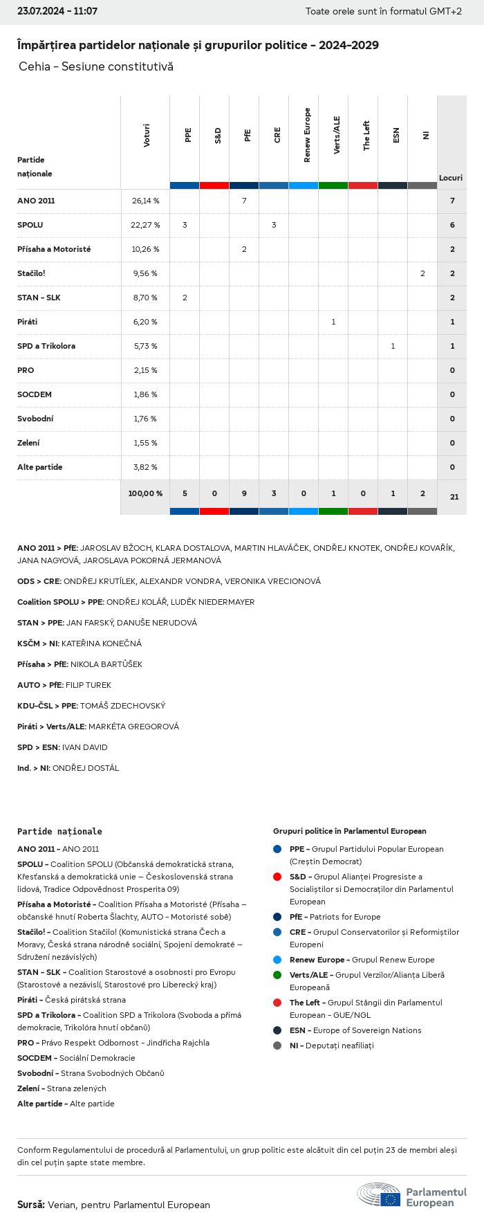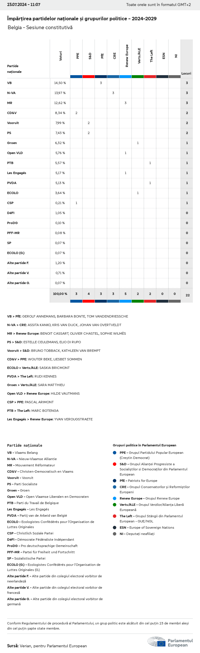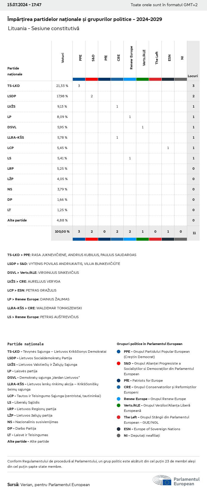 Datele electorale pentru toate alegerile europene începând cu 1979 sunt disponibile pentru descărcare mai jos în diverse formate. Rețineți că fișierele disponibile pentru descărcare sunt furnizate împreună cu o semnătură digitală. Aceste semnături pot fi validate utilizând acest certificat, care la rândul său poate fi validat utilizând următorul lanț de certificate. Date electorale europene 2024. json Obișnuit Etichete (38 Ko) - Semnătura Rată de participare (32 Ko) - Semnătura Date despre echilibrul de gen (7 Ko) - Semnătura Grupuri politice (40 Ko) - Semnătura Partide naționale (110 Ko) - Semnătura Date electorale europene (1 Ko) - Semnătura Rezultate electorale be (7 Ko) - Semnătura fbe (4 Ko) - Semnătura gbe (2 Ko) - Semnătura wbe (3 Ko) - Semnătura bg (5 Ko) - Semnătura cz (7 Ko) - Semnătura dk (5 Ko) - Semnătura de (8 Ko) - Semnătura ee (4 Ko) - Semnătura ie (5 Ko) - Semnătura el (5 Ko) - Semnătura es (7 Ko) - Semnătura fr (8 Ko) - Semnătura hr (3 Ko) - Semnătura it (6 Ko) - Semnătura cy (3 Ko) - Semnătura lv (5 Ko) - Semnătura lt (5 Ko) - Semnătura lu (4 Ko) - Semnătura hu (5 Ko) - Semnătura mt (2 Ko) - Semnătura nl (6 Ko) - Semnătura at (3 Ko) - Semnătura pl (7 Ko) - Semnătura pt (5 Ko) - Semnătura ro (5 Ko) - Semnătura si (4 Ko) - Semnătura sk (5 Ko) - Semnătura fi (4 Ko) - Semnătura se (4 Ko) - Semnătura xml Obișnuit Etichete (63 Ko) - Semnătura Rată de participare (40 Ko) - Semnătura Date despre echilibrul de gen (10 Ko) - Semnătura Grupuri politice (64 Ko) - Semnătura Partide naționale (123 Ko) - Semnătura Date electorale europene (2 Ko) - Semnătura Rezultate electorale be (10 Ko) - Semnătura fbe (6 Ko) - Semnătura gbe (3 Ko) - Semnătura wbe (5 Ko) - Semnătura bg (7 Ko) - Semnătura cz (10 Ko) - Semnătura dk (7 Ko) - Semnătura de (11 Ko) - Semnătura ee (6 Ko) - Semnătura ie (7 Ko) - Semnătura el (7 Ko) - Semnătura es (11 Ko) - Semnătura fr (12 Ko) - Semnătura hr (5 Ko) - Semnătura it (9 Ko) - Semnătura cy (5 Ko) - Semnătura lv (7 Ko) - Semnătura lt (7 Ko) - Semnătura lu (6 Ko) - Semnătura hu (7 Ko) - Semnătura mt (3 Ko) - Semnătura nl (9 Ko) - Semnătura at (5 Ko) - Semnătura pl (10 Ko) - Semnătura pt (7 Ko) - Semnătura ro (8 Ko) - Semnătura si (5 Ko) - Semnătura sk (7 Ko) - Semnătura fi (6 Ko) - Semnătura se (6 Ko) - Semnătura csv Rată de participare Rată de participare în UE (1 Ko) - Semnătura Rată de participare în funcție de țară (5 Ko) - Semnătura Etichete (15 Ko) - Semnătura Date despre echilibrul de gen Echilibrul de gen în UE (1 Ko) - Semnătura Echilibrul de gen în funcție de țară (2 Ko) - Semnătura Grupuri politice (16 Ko) - Semnătura Partide naționale (27 Ko) - Semnătura Rezultate pe partid național be (1 Ko) - Semnătura fbe (1 Ko) - Semnătura gbe (1 Ko) - Semnătura wbe (1 Ko) - Semnătura bg (1 Ko) - Semnătura cz (1 Ko) - Semnătura dk (1 Ko) - Semnătura de (1 Ko) - Semnătura ee (1 Ko) - Semnătura ie (1 Ko) - Semnătura el (1 Ko) - Semnătura es (1 Ko) - Semnătura fr (1 Ko) - Semnătura hr (1 Ko) - Semnătura it (1 Ko) - Semnătura cy (1 Ko) - Semnătura lv (1 Ko) - Semnătura lt (1 Ko) - Semnătura lu (1 Ko) - Semnătura hu (1 Ko) - Semnătura mt (1 Ko) - Semnătura nl (1 Ko) - Semnătura at (1 Ko) - Semnătura pl (1 Ko) - Semnătura pt (1 Ko) - Semnătura ro (1 Ko) - Semnătura si (1 Ko) - Semnătura sk (1 Ko) - Semnătura fi (1 Ko) - Semnătura se (1 Ko) - Semnătura Rezultate în funcție de grupul politic EU (1 Ko) - Semnătura be (1 Ko) - Semnătura fbe (1 Ko) - Semnătura gbe (1 Ko) - Semnătura wbe (1 Ko) - Semnătura bg (1 Ko) - Semnătura cz (1 Ko) - Semnătura dk (1 Ko) - Semnătura de (1 Ko) - Semnătura ee (1 Ko) - Semnătura ie (1 Ko) - Semnătura el (1 Ko) - Semnătura es (1 Ko) - Semnătura fr (1 Ko) - Semnătura hr (1 Ko) - Semnătura it (1 Ko) - Semnătura cy (1 Ko) - Semnătura lv (1 Ko) - Semnătura lt (1 Ko) - Semnătura lu (1 Ko) - Semnătura hu (1 Ko) - Semnătura mt (1 Ko) - Semnătura nl (1 Ko) - Semnătura at (1 Ko) - Semnătura pl (1 Ko) - Semnătura pt (1 Ko) - Semnătura ro (1 Ko) - Semnătura si (1 Ko) - Semnătura sk (1 Ko) - Semnătura fi (1 Ko) - Semnătura se (1 Ko) - Semnătura Împărțire în funcție de partide naționale și grupuri politice be (1 Ko) - Semnătura fbe (1 Ko) - Semnătura gbe (1 Ko) - Semnătura wbe (1 Ko) - Semnătura bg (1 Ko) - Semnătura cz (1 Ko) - Semnătura dk (1 Ko) - Semnătura de (1 Ko) - Semnătura ee (1 Ko) - Semnătura ie (1 Ko) - Semnătura el (1 Ko) - Semnătura es (1 Ko) - Semnătura fr (1 Ko) - Semnătura hr (1 Ko) - Semnătura it (1 Ko) - Semnătura cy (1 Ko) - Semnătura lv (1 Ko) - Semnătura lt (1 Ko) - Semnătura lu (1 Ko) - Semnătura hu (1 Ko) - Semnătura mt (1 Ko) - Semnătura nl (1 Ko) - Semnătura at (1 Ko) - Semnătura pl (1 Ko) - Semnătura pt (1 Ko) - Semnătura ro (1 Ko) - Semnătura si (1 Ko) - Semnătura sk (1 Ko) - Semnătura fi (1 Ko) - Semnătura se (1 Ko) - Semnătura jpg Rată de participare Rată de participare în funcție de an (~30 Ko) Rată de participare în funcție de țară (~140 Ko) Echilibrul de gen al deputaților europeni Echilibrul de gen al deputaților europeni în funcție de țară Hartă (~130 Ko) Diagramă cu bare (~80 Ko) Echilibrul de gen al deputaților europeni în funcție de an (~50 Ko) Rezultate electorale Date europene Hemiciclu (~110 Ko) Parlamentul European (~250 Ko) Date naționale BE Rezultate pe partid național (~90 Ko) Locuri în funcție de grupul politic (~70 Ko) Împărțire în funcție de partide naționale și grupuri politice (~180 Ko) Echilibrul de gen al deputaților europeni în funcție de an (~50 Ko) Rată de participare în funcție de an (~50 Ko) FBE Rezultate pe partid național (~90 Ko) Locuri în funcție de grupul politic (~70 Ko) Împărțire în funcție de partide naționale și grupuri politice (~180 Ko) GBE Rezultate pe partid național (~90 Ko) Locuri în funcție de grupul politic (~70 Ko)