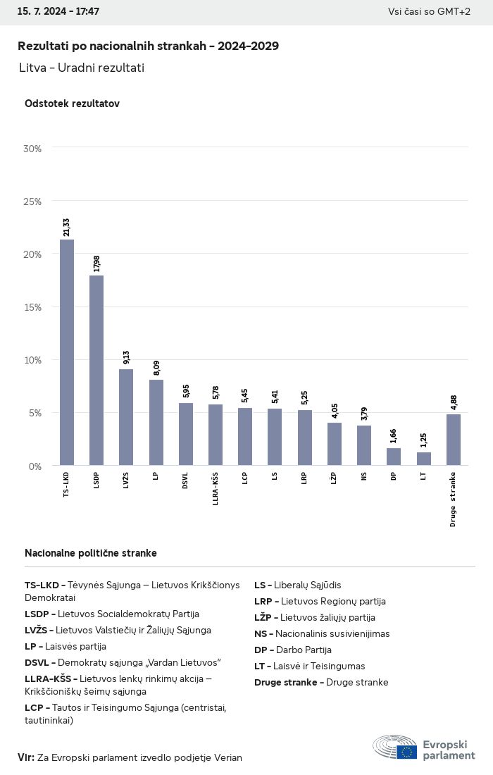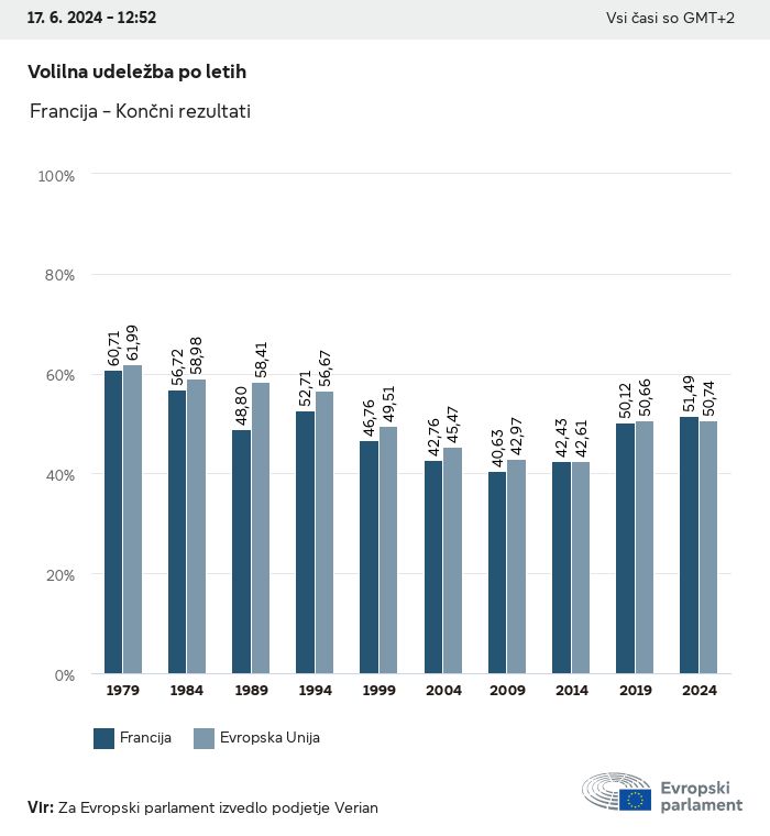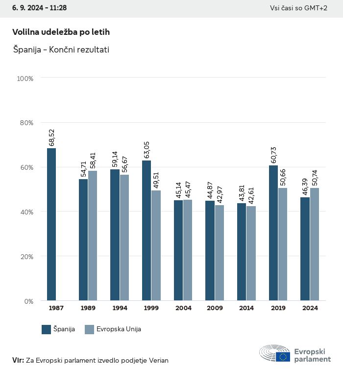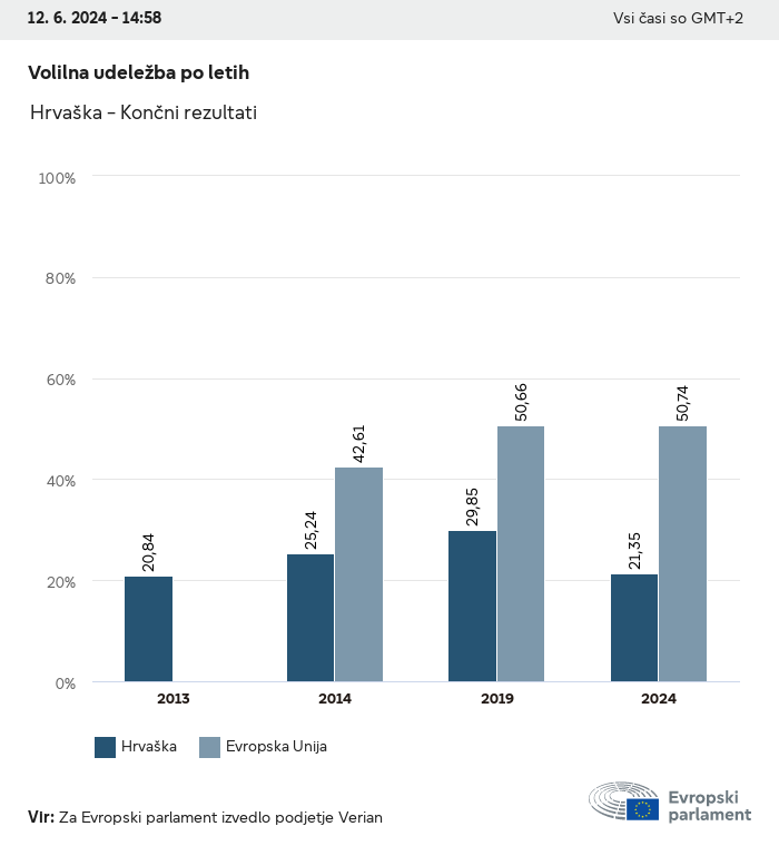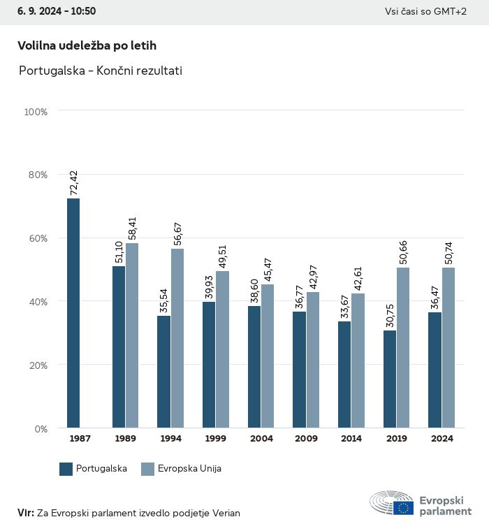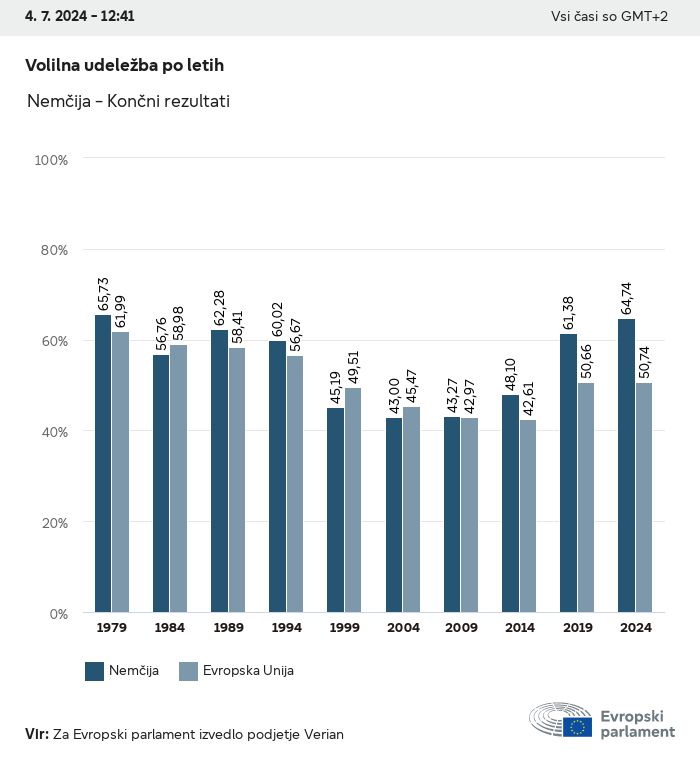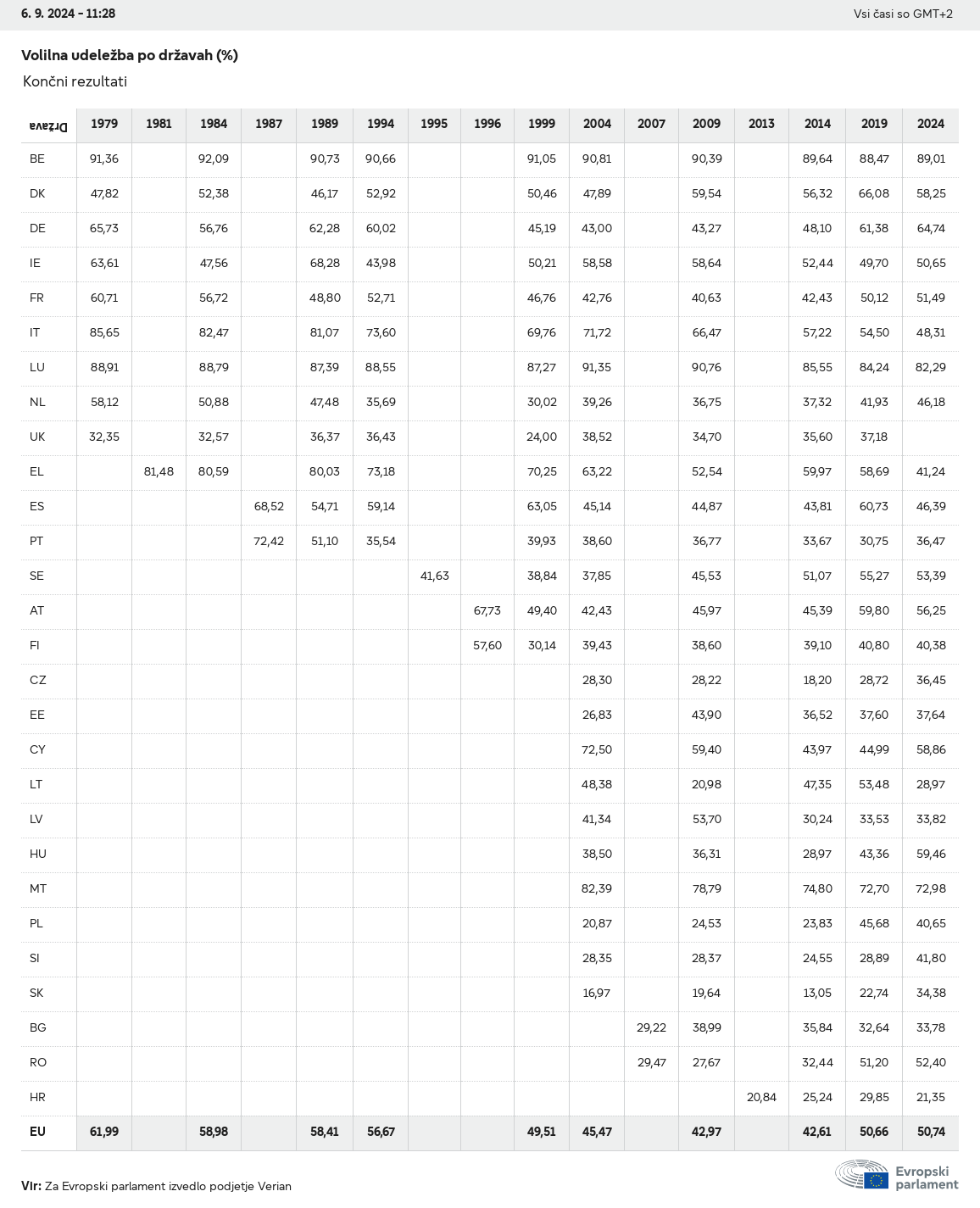 Volilni podatki za vse evropske volitve od leta 1979 so na voljo v različnih oblikah za prenos. Datoteke, ki so na voljo za prenos, so na voljo skupaj z digitalnim podpisom. Podpise je mogoče preveriti s certifikatom, tega pa je mogoče preveriti z verigo certifikatov. Podatki o evropskih volitvah 2024. json Splošno Oznake (38 Ko) - Podpis Volilna udeležba (32 Ko) - Podpis Podatki o zastopanosti spolov (7 Ko) - Podpis Politične skupine (40 Ko) - Podpis Nacionalne politične stranke (110 Ko) - Podpis Podatki o evropskih volitvah (1 Ko) - Podpis Rezultati volitev be (7 Ko) - Podpis fbe (4 Ko) - Podpis gbe (2 Ko) - Podpis wbe (3 Ko) - Podpis bg (5 Ko) - Podpis cz (7 Ko) - Podpis dk (5 Ko) - Podpis de (8 Ko) - Podpis ee (4 Ko) - Podpis ie (5 Ko) - Podpis el (5 Ko) - Podpis es (7 Ko) - Podpis fr (8 Ko) - Podpis hr (3 Ko) - Podpis it (6 Ko) - Podpis cy (3 Ko) - Podpis lv (5 Ko) - Podpis lt (5 Ko) - Podpis lu (4 Ko) - Podpis hu (5 Ko) - Podpis mt (2 Ko) - Podpis nl (6 Ko) - Podpis at (3 Ko) - Podpis pl (7 Ko) - Podpis pt (5 Ko) - Podpis ro (5 Ko) - Podpis si (4 Ko) - Podpis sk (5 Ko) - Podpis fi (4 Ko) - Podpis se (4 Ko) - Podpis xml Splošno Oznake (63 Ko) - Podpis Volilna udeležba (40 Ko) - Podpis Podatki o zastopanosti spolov (10 Ko) - Podpis Politične skupine (64 Ko) - Podpis Nacionalne politične stranke (123 Ko) - Podpis Podatki o evropskih volitvah (2 Ko) - Podpis Rezultati volitev be (10 Ko) - Podpis fbe (6 Ko) - Podpis gbe (3 Ko) - Podpis wbe (5 Ko) - Podpis bg (7 Ko) - Podpis cz (10 Ko) - Podpis dk (7 Ko) - Podpis de (11 Ko) - Podpis ee (6 Ko) - Podpis ie (7 Ko) - Podpis el (7 Ko) - Podpis es (11 Ko) - Podpis fr (12 Ko) - Podpis hr (5 Ko) - Podpis it (9 Ko) - Podpis cy (5 Ko) - Podpis lv (7 Ko) - Podpis lt (7 Ko) - Podpis lu (6 Ko) - Podpis hu (7 Ko) - Podpis mt (3 Ko) - Podpis nl (9 Ko) - Podpis at (5 Ko) - Podpis pl (10 Ko) - Podpis pt (7 Ko) - Podpis ro (8 Ko) - Podpis si (5 Ko) - Podpis sk (7 Ko) - Podpis fi (6 Ko) - Podpis se (6 Ko) - Podpis csv Volilna udeležba Volilna udeležba v EU (1 Ko) - Podpis Volilna udeležba po državah (5 Ko) - Podpis Oznake (15 Ko) - Podpis Podatki o zastopanosti spolov Zastopanost spolov za EU (1 Ko) - Podpis Zastopanost spolov po državah (2 Ko) - Podpis Politične skupine (16 Ko) - Podpis Nacionalne politične stranke (27 Ko) - Podpis Rezultati po nacionalnih strankah be (1 Ko) - Podpis fbe (1 Ko) - Podpis gbe (1 Ko) - Podpis wbe (1 Ko) - Podpis bg (1 Ko) - Podpis cz (1 Ko) - Podpis dk (1 Ko) - Podpis de (1 Ko) - Podpis ee (1 Ko) - Podpis ie (1 Ko) - Podpis el (1 Ko) - Podpis es (1 Ko) - Podpis fr (1 Ko) - Podpis hr (1 Ko) - Podpis it (1 Ko) - Podpis cy (1 Ko) - Podpis lv (1 Ko) - Podpis lt (1 Ko) - Podpis lu (1 Ko) - Podpis hu (1 Ko) - Podpis mt (1 Ko) - Podpis nl (1 Ko) - Podpis at (1 Ko) - Podpis pl (1 Ko) - Podpis pt (1 Ko) - Podpis ro (1 Ko) - Podpis si (1 Ko) - Podpis sk (1 Ko) - Podpis fi (1 Ko) - Podpis se (1 Ko) - Podpis Rezultati po političnih skupinah EU (1 Ko) - Podpis be (1 Ko) - Podpis fbe (1 Ko) - Podpis gbe (1 Ko) - Podpis wbe (1 Ko) - Podpis bg (1 Ko) - Podpis cz (1 Ko) - Podpis dk (1 Ko) - Podpis de (1 Ko) - Podpis ee (1 Ko) - Podpis ie (1 Ko) - Podpis el (1 Ko) - Podpis es (1 Ko) - Podpis fr (1 Ko) - Podpis hr (1 Ko) - Podpis it (1 Ko) - Podpis cy (1 Ko) - Podpis lv (1 Ko) - Podpis lt (1 Ko) - Podpis lu (1 Ko) - Podpis hu (1 Ko) - Podpis mt (1 Ko) - Podpis nl (1 Ko) - Podpis at (1 Ko) - Podpis pl (1 Ko) - Podpis pt (1 Ko) - Podpis ro (1 Ko) - Podpis si (1 Ko) - Podpis sk (1 Ko) - Podpis fi (1 Ko) - Podpis se (1 Ko) - Podpis Razčlenitev po nacionalnih strankah in političnih skupinah be (1 Ko) - Podpis fbe (1 Ko) - Podpis gbe (1 Ko) - Podpis wbe (1 Ko) - Podpis bg (1 Ko) - Podpis cz (1 Ko) - Podpis dk (1 Ko) - Podpis de (1 Ko) - Podpis ee (1 Ko) - Podpis ie (1 Ko) - Podpis el (1 Ko) - Podpis es (1 Ko) - Podpis fr (1 Ko) - Podpis hr (1 Ko) - Podpis it (1 Ko) - Podpis cy (1 Ko) - Podpis lv (1 Ko) - Podpis lt (1 Ko) - Podpis lu (1 Ko) - Podpis hu (1 Ko) - Podpis mt (1 Ko) - Podpis nl (1 Ko) - Podpis at (1 Ko) - Podpis pl (1 Ko) - Podpis pt (1 Ko) - Podpis ro (1 Ko) - Podpis si (1 Ko) - Podpis sk (1 Ko) - Podpis fi (1 Ko) - Podpis se (1 Ko) - Podpis jpg Volilna udeležba Udeležba po letih (~30 Ko) Volilna udeležba po državah (~140 Ko) Zastopanost spolov med poslanci EP Zastopanost spolov med poslanci EP po državah Zemljevid (~130 Ko) Stolpčni prikaz (~80 Ko) Zastopanost spolov med poslanci EP po letih (~50 Ko) Rezultati volitev Evropski podatki Plenarna dvorana (~110 Ko) Evropski parlament (~250 Ko) Nacionalni podatki BE Rezultati po nacionalnih strankah (~90 Ko) Sedeži po političnih skupinah (~70 Ko) Razčlenitev po nacionalnih strankah in političnih skupinah (~180 Ko) Zastopanost spolov med poslanci EP po letih (~50 Ko) Udeležba po letih (~50 Ko) FBE Rezultati po nacionalnih strankah (~90 Ko) Sedeži po političnih skupinah (~70 Ko) Razčlenitev po nacionalnih strankah in političnih skupinah (~180 Ko) GBE Rezultati po nacionalnih strankah (~90 Ko) Sedeži po političnih skupinah (~70 Ko) Razčlenitev po nacionalnih strankah in političnih skupinah (~180 Ko) WBE Rezultati po nacionalnih strankah (~90 Ko) Sedeži po političnih skupinah (~70 Ko) Razčlenitev po nacionalnih strankah in političnih skupinah (~180 Ko) BG Rezultati po nacionalnih strankah (~90 Ko) Sedeži po političnih skupinah (~70 Ko) Razčlenitev po nacionalnih strankah in političnih skupinah (~180 Ko) Zastopanost spolov med poslanci EP po letih (~50 Ko) Udeležba po letih (~50 Ko) CZ Rezultati po nacionalnih strankah (~90 Ko) Sedeži po političnih skupinah (~70 Ko) Razčlenitev po nacionalnih strankah in političnih skupinah (~180 Ko) Zastopanost spolov med poslanci EP po letih (~50 Ko) Udeležba po letih (~50 Ko) DK Rezultati po nacionalnih strankah (~90 Ko) Sedeži po političnih skupinah (~70 Ko) Razčlenitev po nacionalnih strankah in političnih skupinah (~180 Ko) Zastopanost spolov med poslanci EP po letih (~50 Ko) Udeležba po letih (~50 